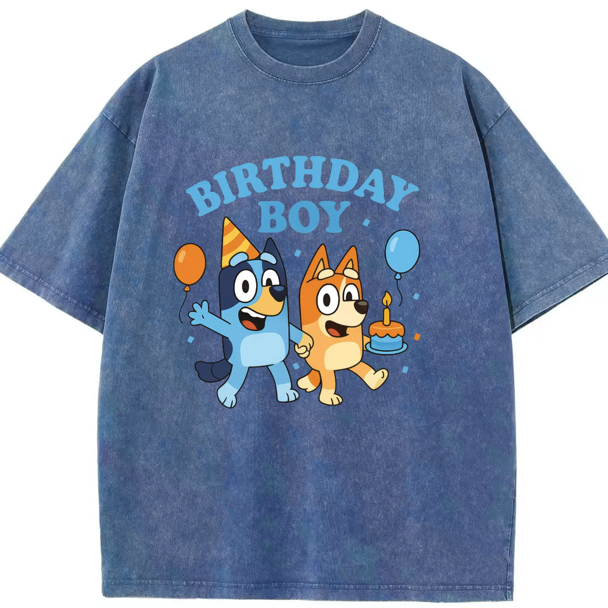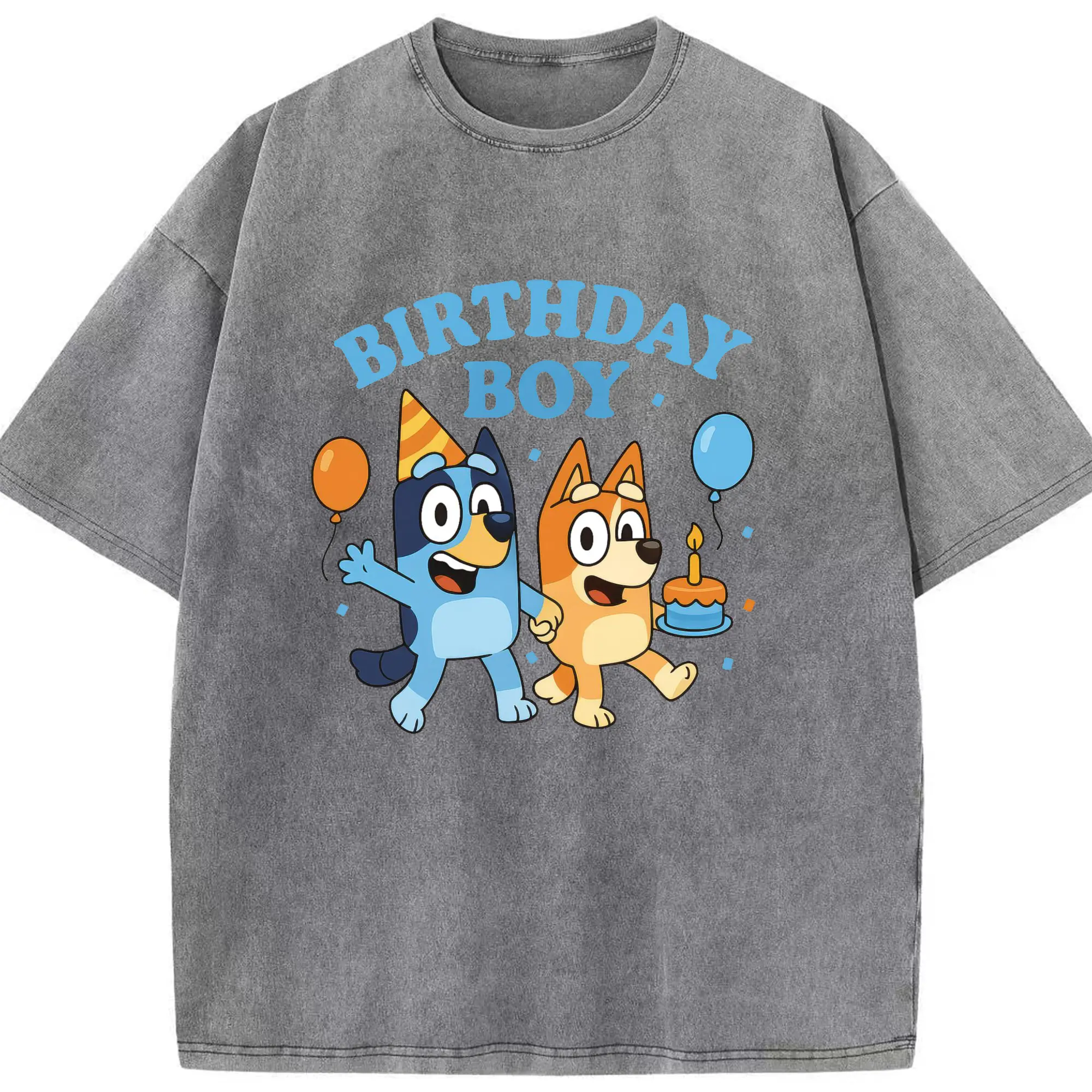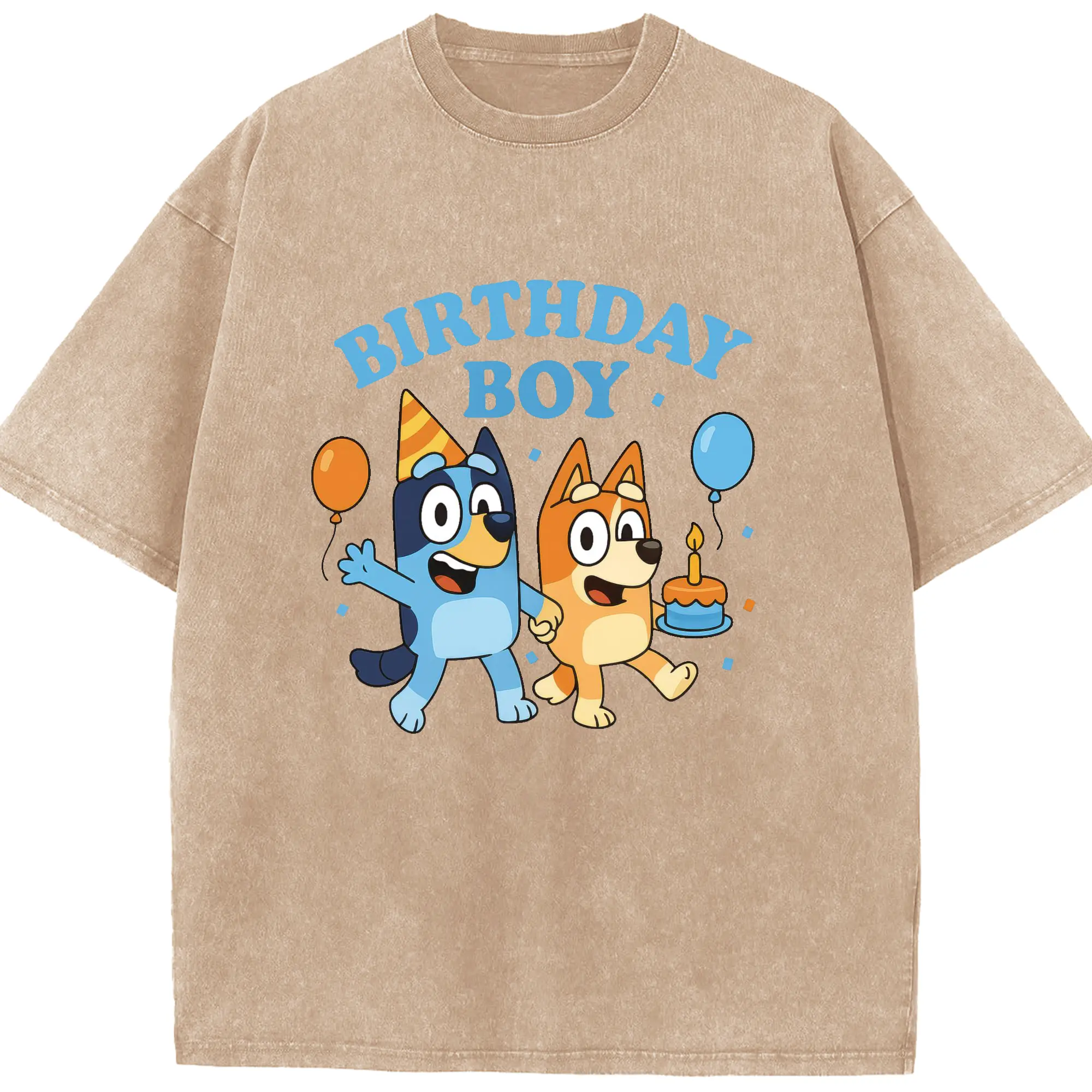 Bluey & Bingo Inspired Birthday Boy Trendy Kids DIY - Washed Vintage Look 230g Cotton Oversized T-Shirt With Front Heat Transfer Print – Soft, Lightweight, Stylish Fit – Comfortable Casual Wear For Sports & Everyday Use