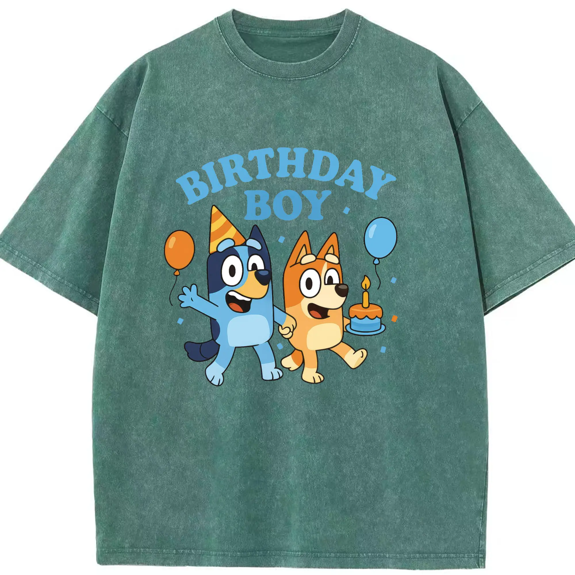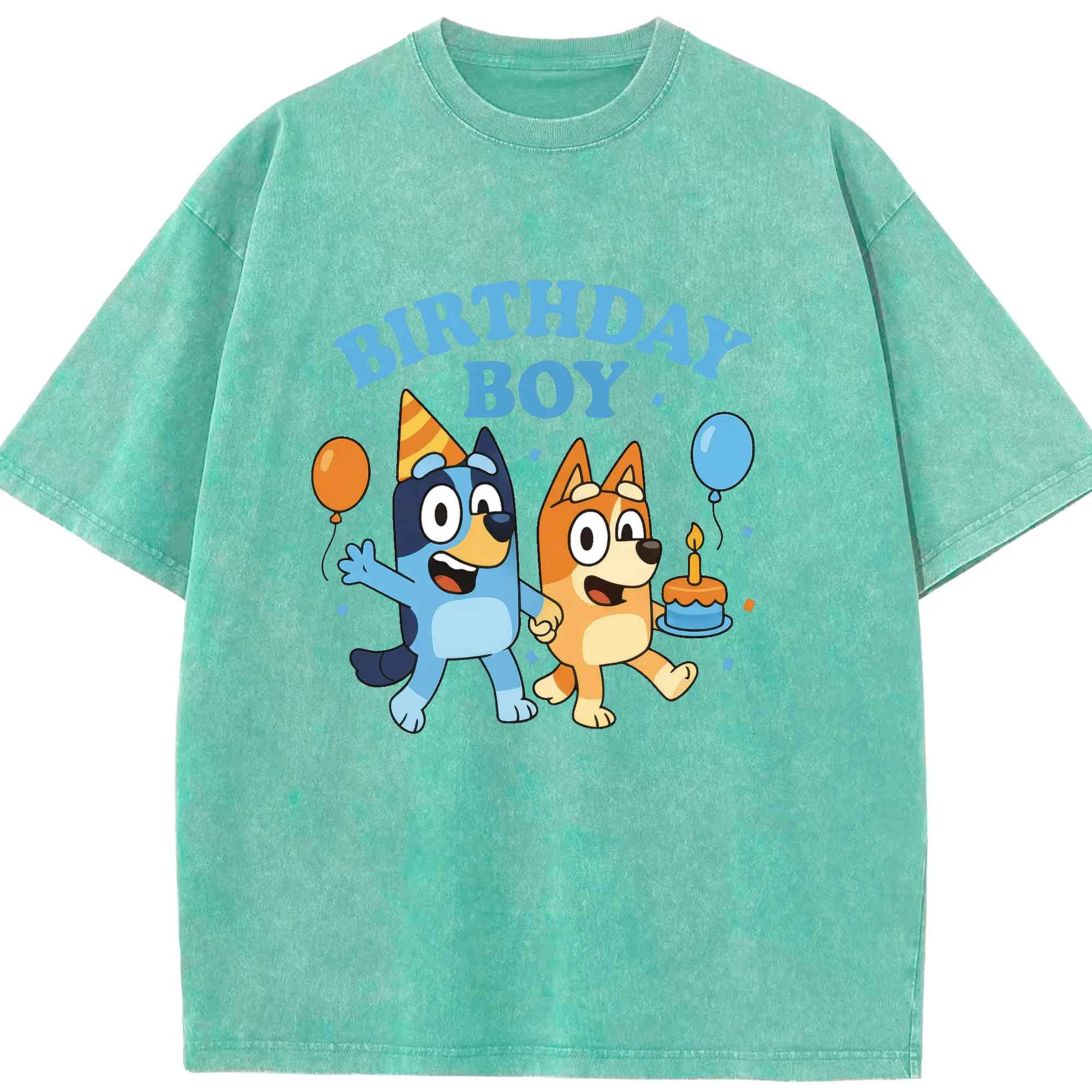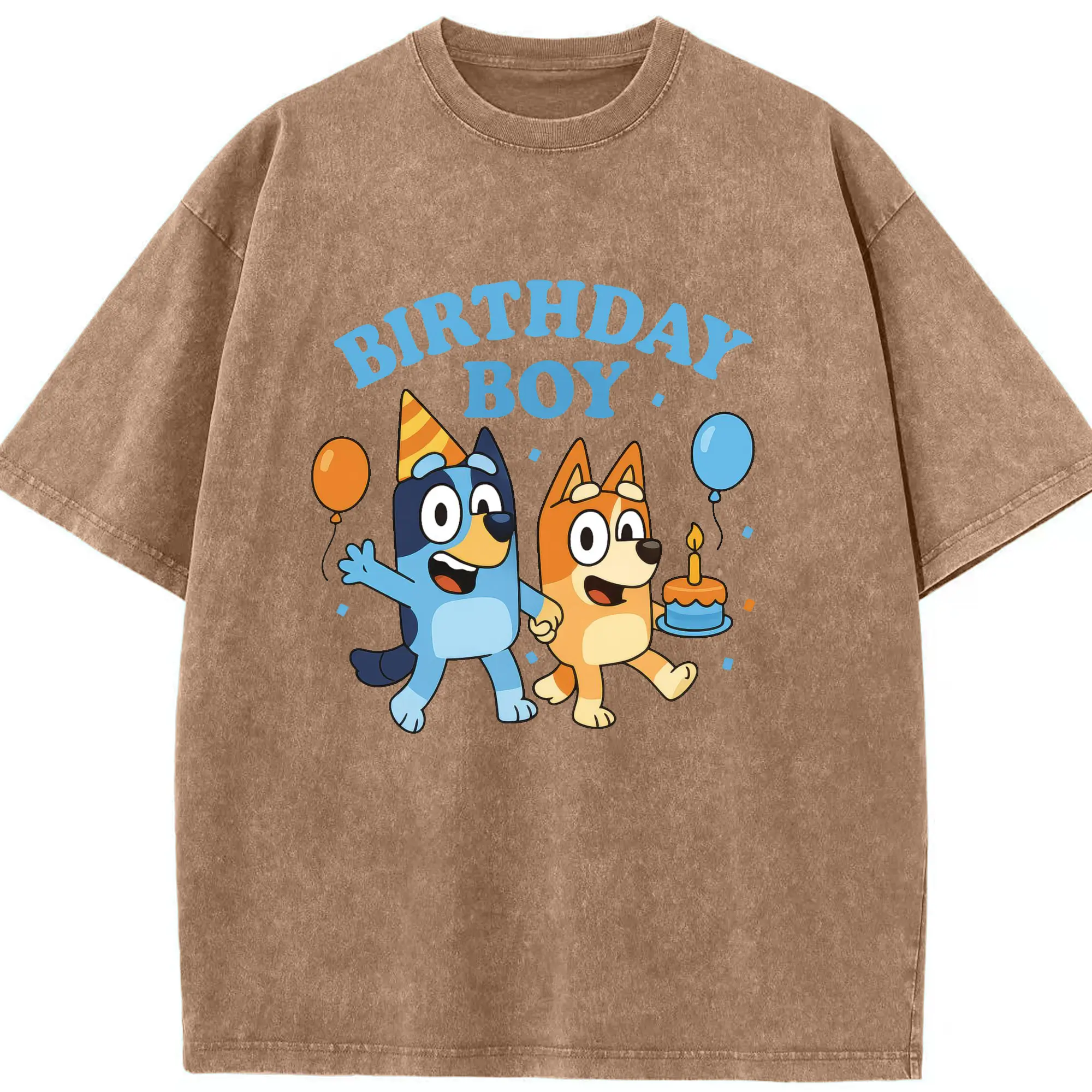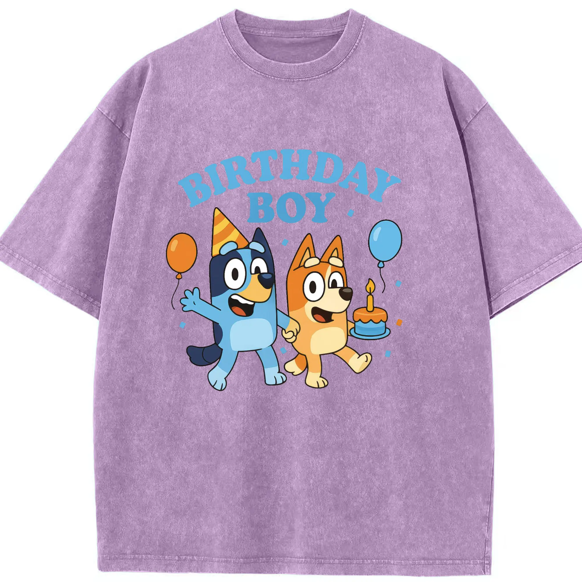 Bluey & Bingo Inspired Birthday Boy Trendy Kids DIY - Washed Vintage Look 230g Cotton Oversized T-Shirt With Front Heat Transfer Print – Soft, Lightweight, Stylish Fit – Comfortable Casual Wear For Sports & Everyday Use