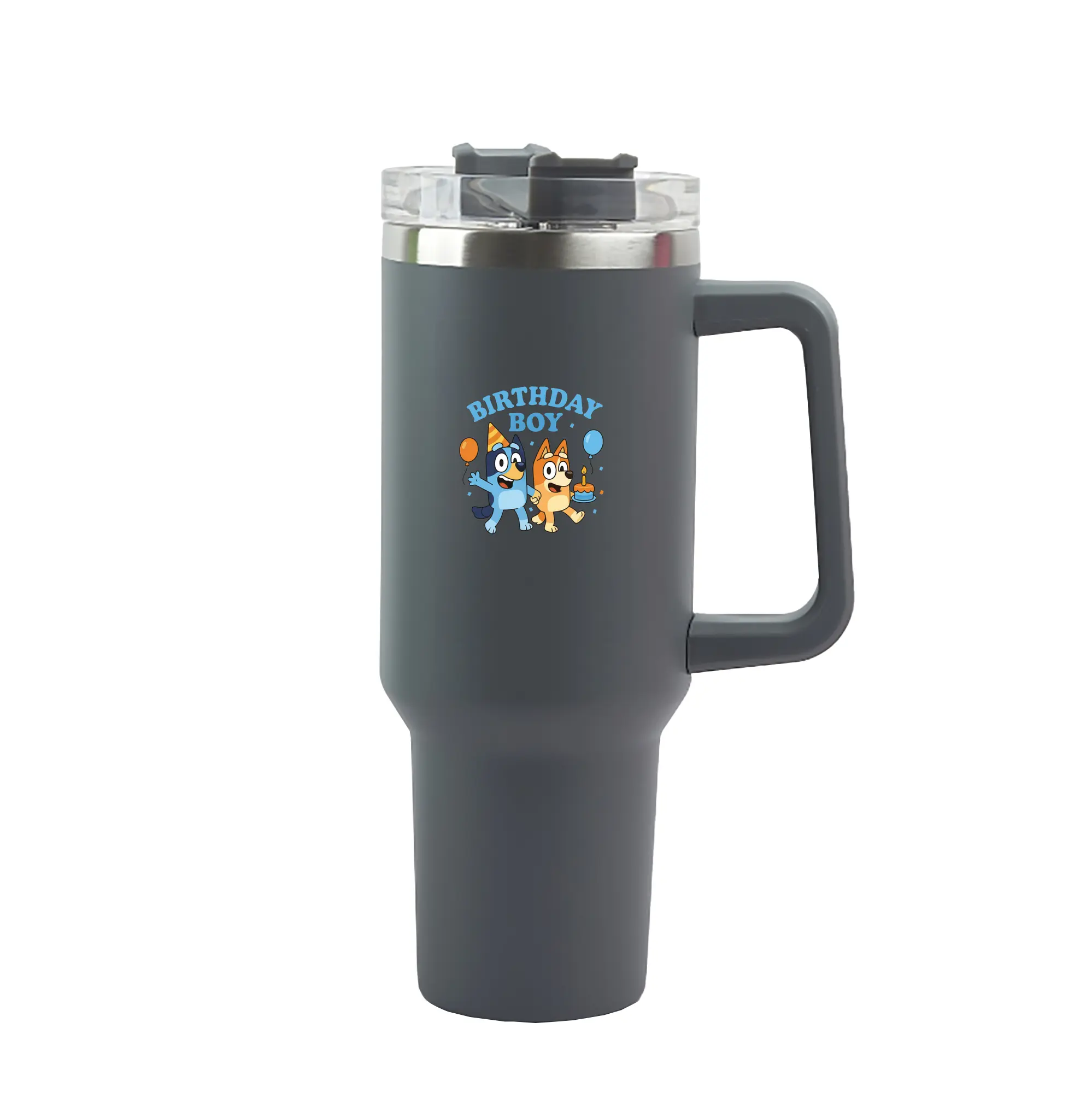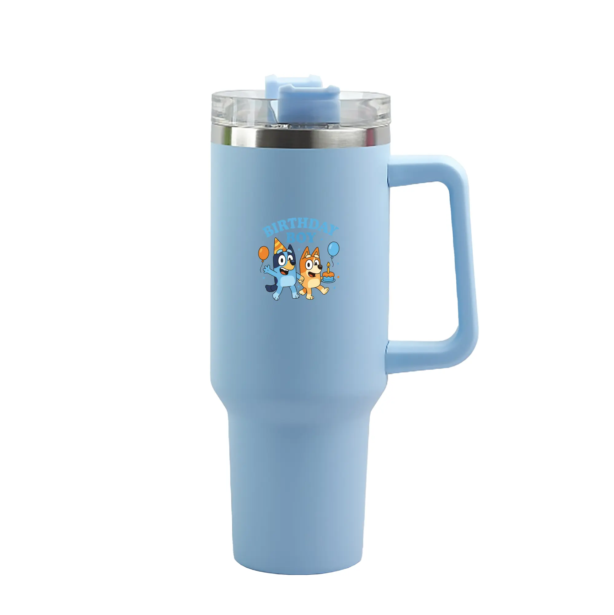 Bluey & Bingo Inspired Birthday Boy Trendy Kids DIY - 40oz Handle Car Tumbler – Durable Stainless Steel Travel Mug With UV Print – Double Wall Insulated, Fits Most Car Cup Holders
