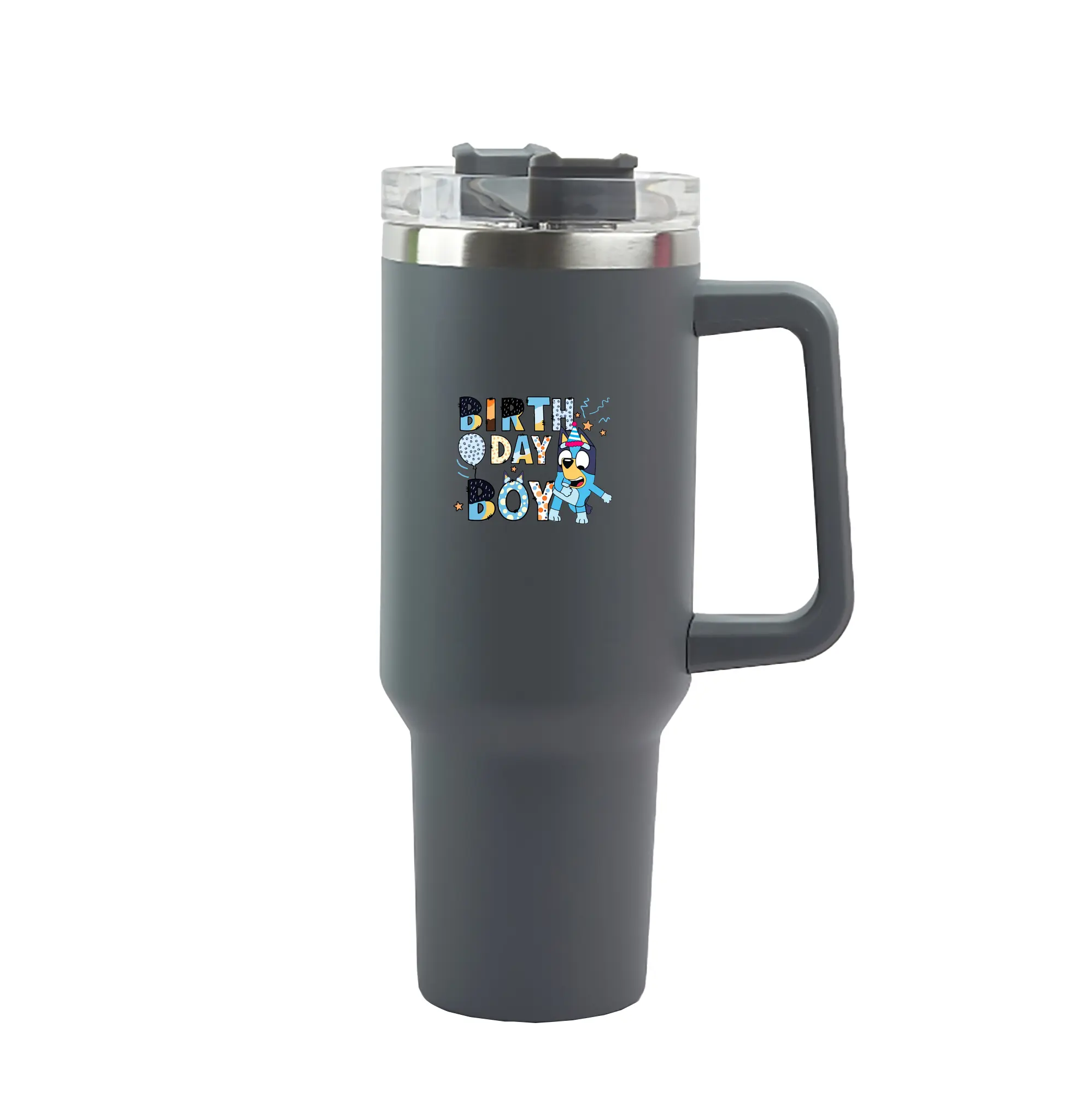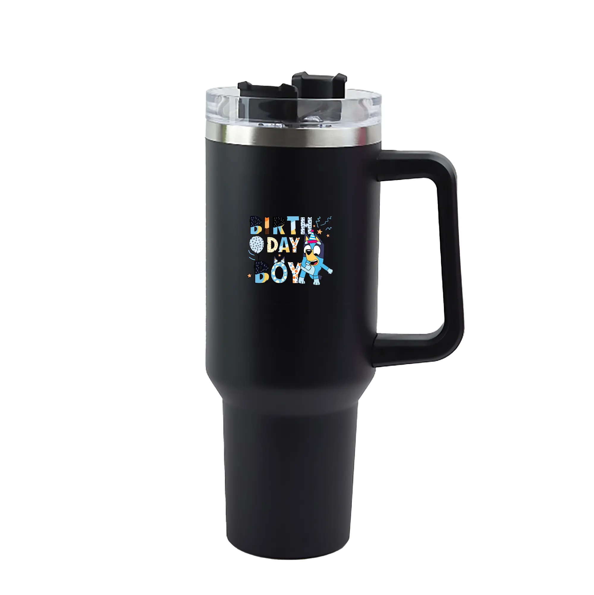 Bluey Birthday Boy DIY - 40oz Handle Car Tumbler – Durable Stainless Steel Travel Mug With UV Print – Double Wall Insulated, Fits Most Car Cup Holders