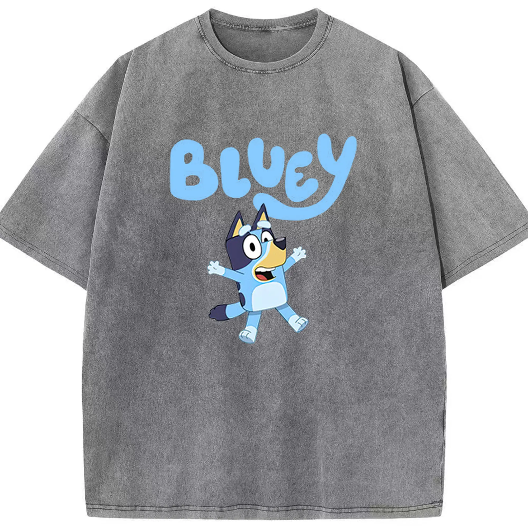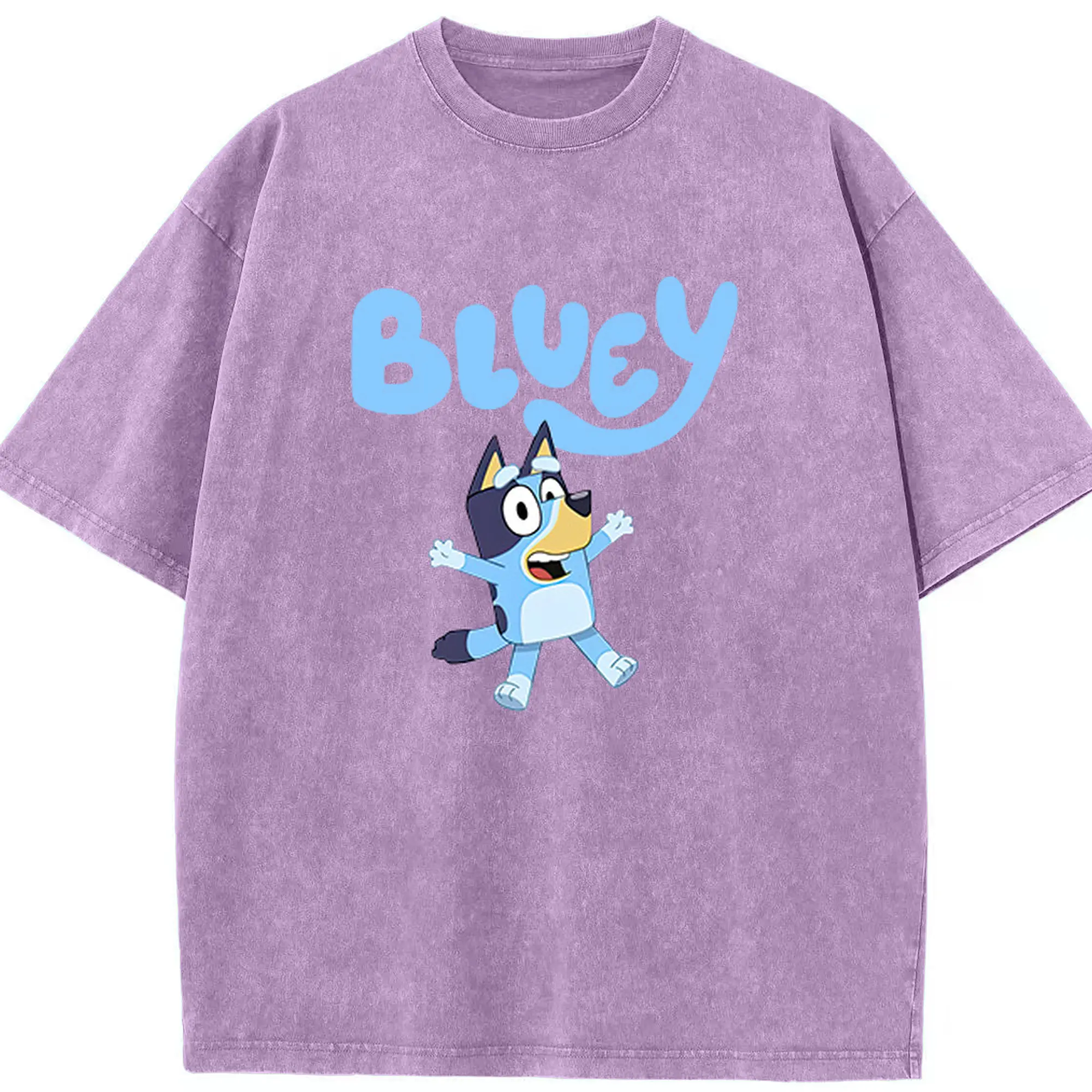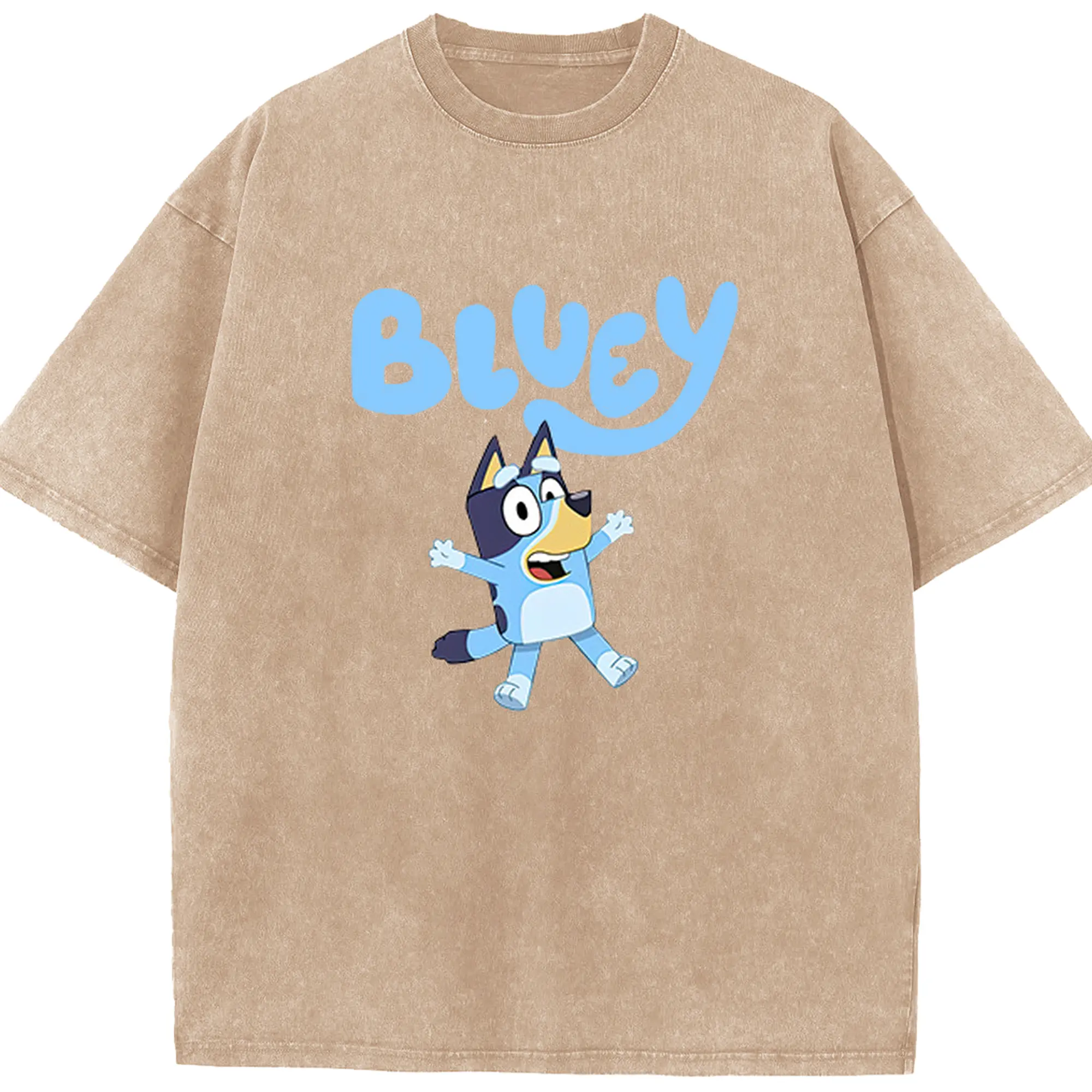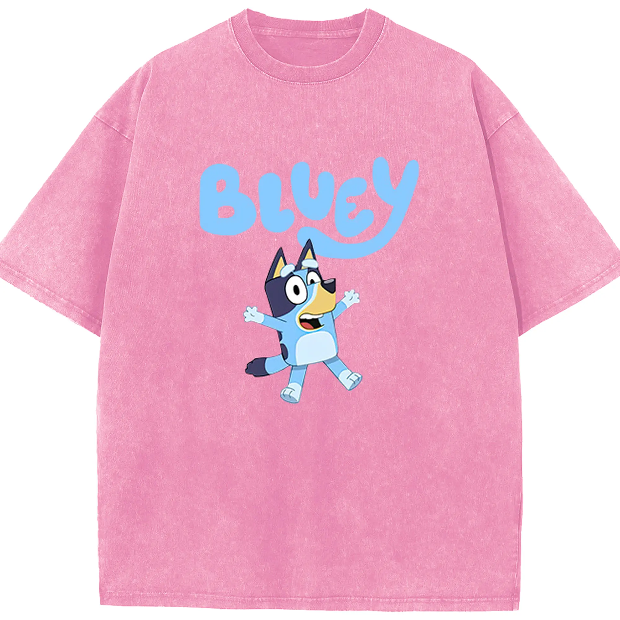 Bluey Cute Cartoon DIY - Washed Vintage Look 230g Cotton Oversized T-Shirt With Front Heat Transfer Print – Soft, Lightweight, Stylish Fit – Comfortable Casual Wear For Sports & Everyday Use