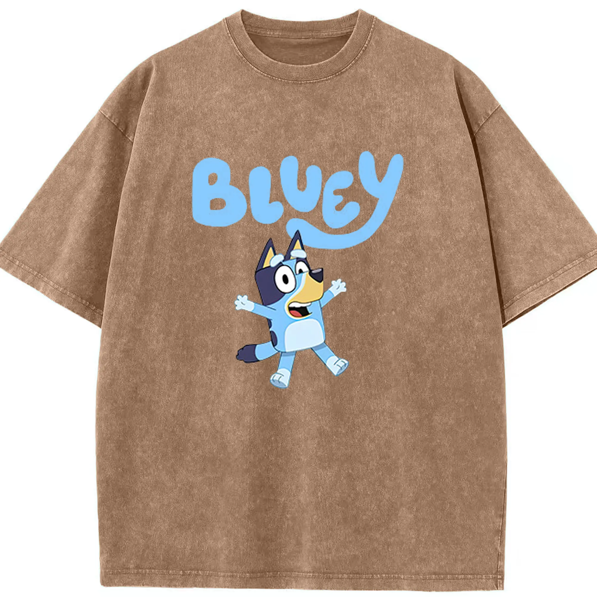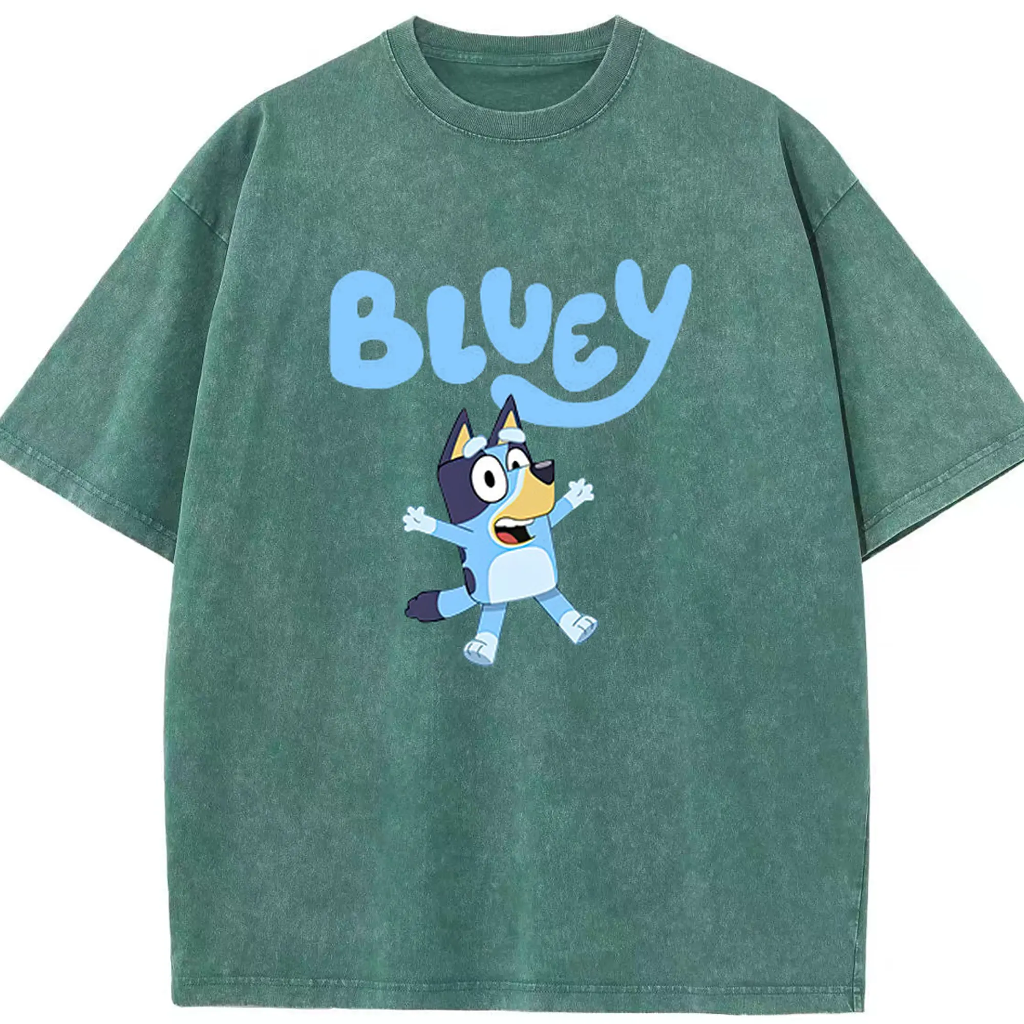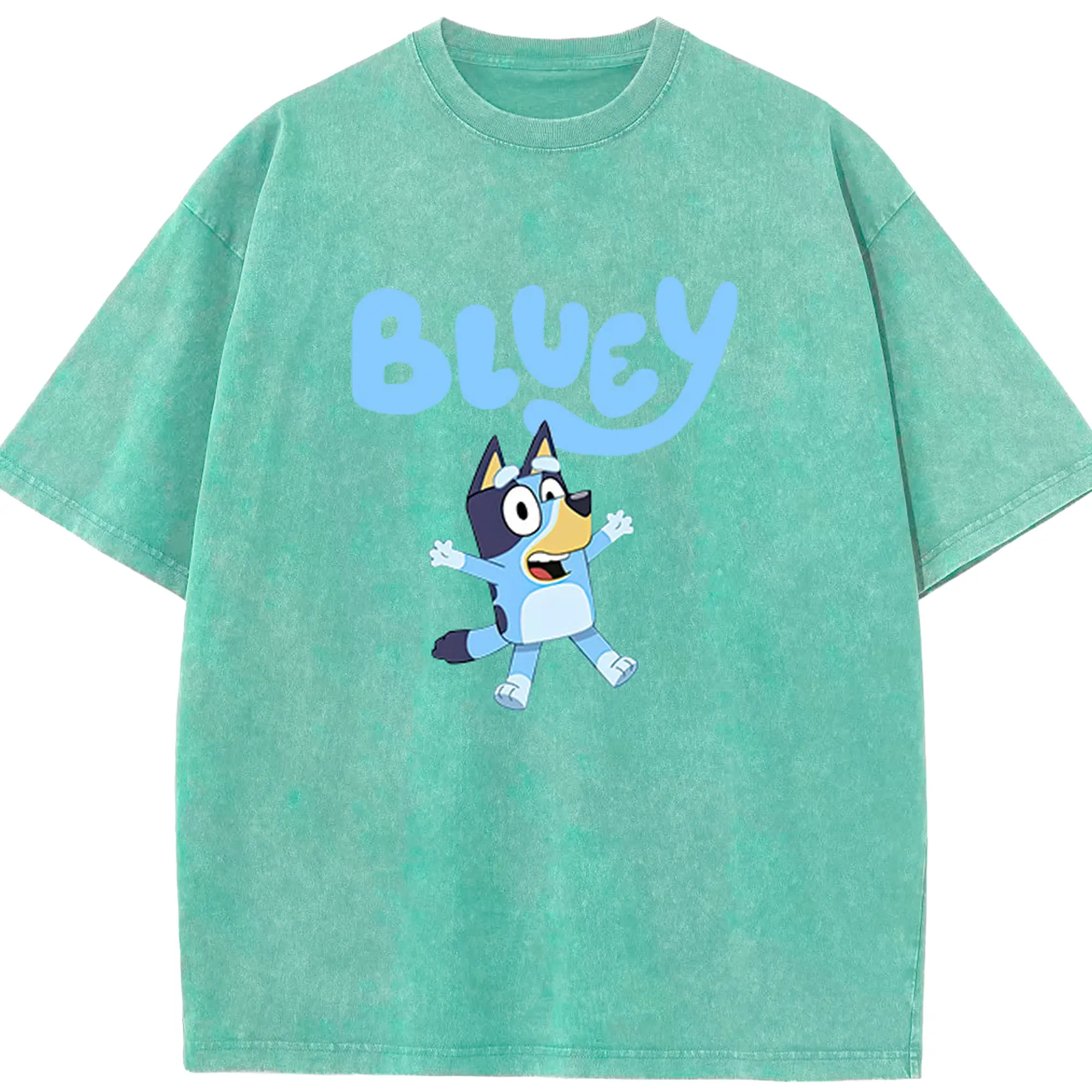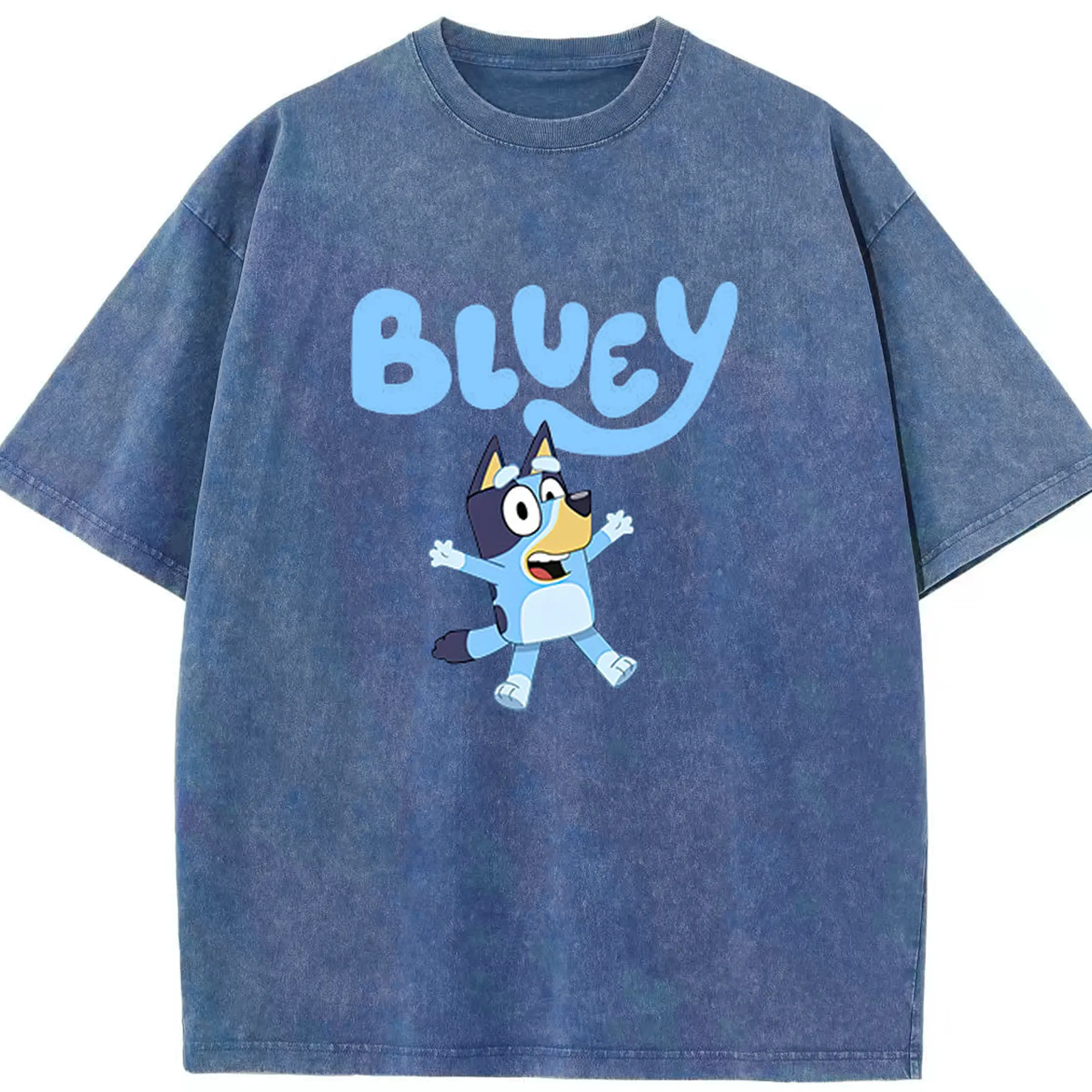 Bluey Cute Cartoon DIY - Washed Vintage Look 230g Cotton Oversized T-Shirt With Front Heat Transfer Print – Soft, Lightweight, Stylish Fit – Comfortable Casual Wear For Sports & Everyday Use