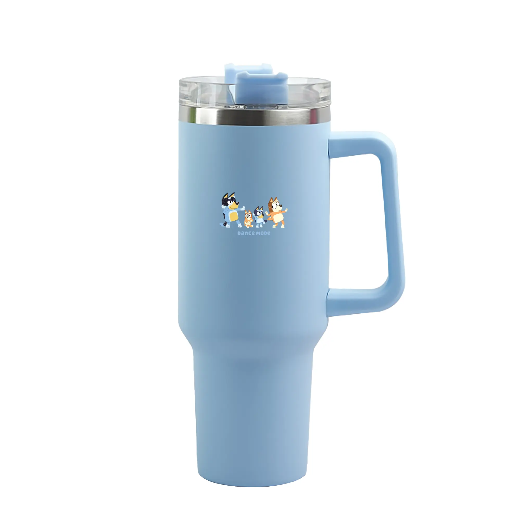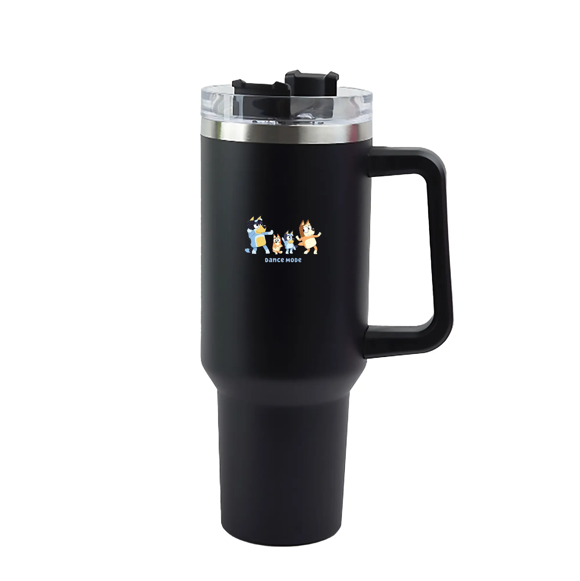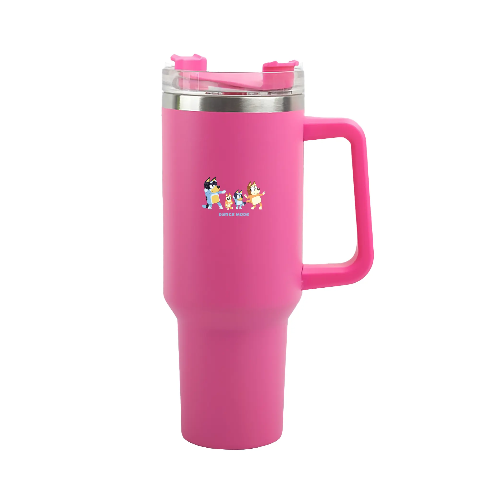 Bluey Family Dance Mode DIY - 40oz Handle Car Tumbler – Durable Stainless Steel Travel Mug With UV Print – Double Wall Insulated, Fits Most Car Cup Holders