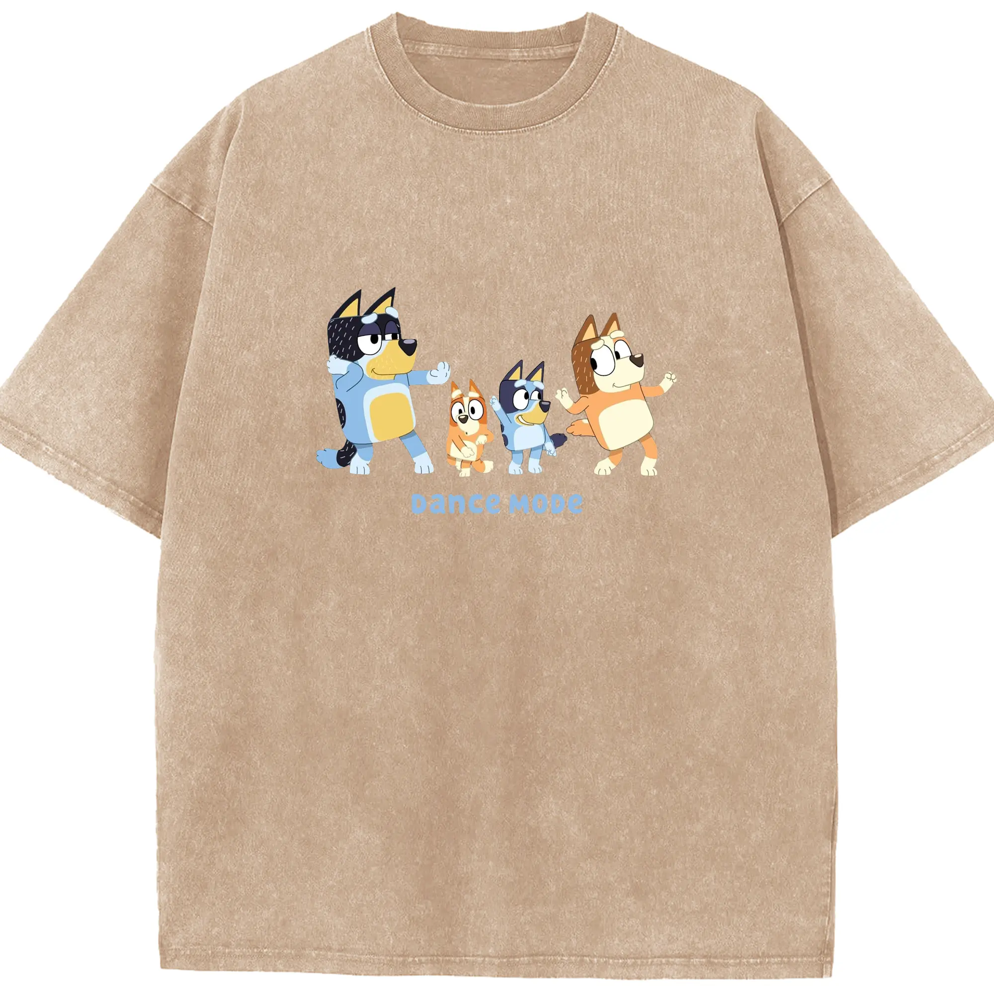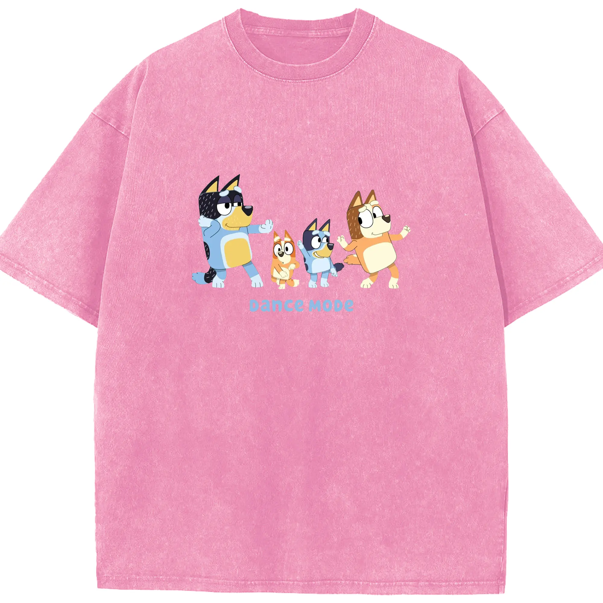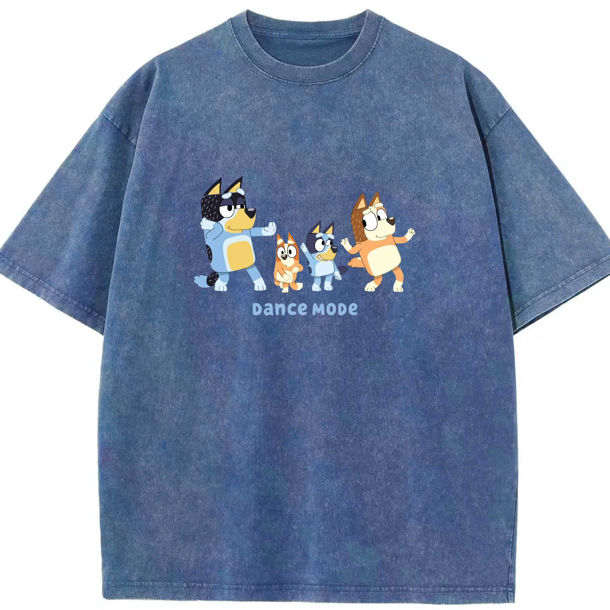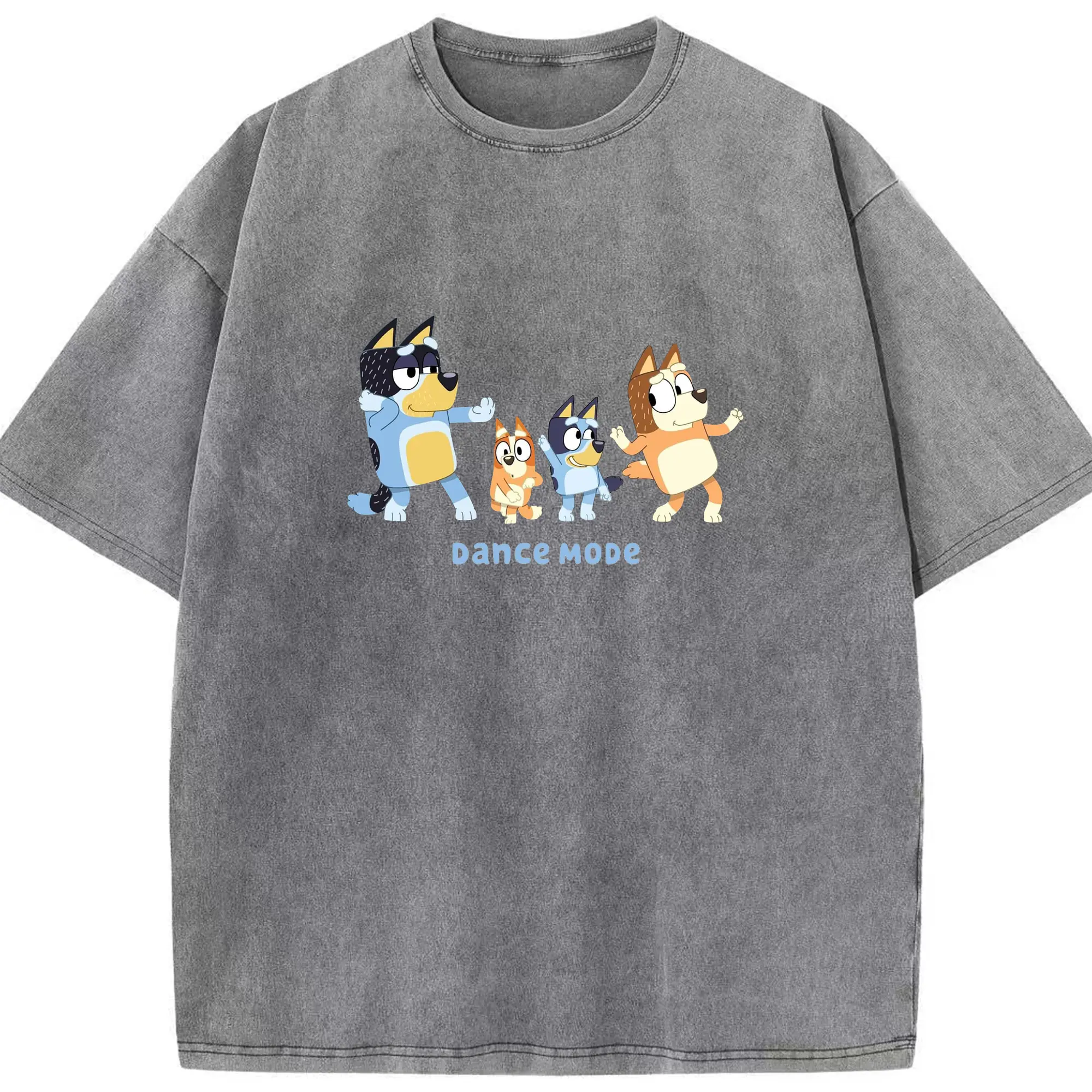 Bluey Family Dance Mode DIY - Washed Vintage Look 230g Cotton Oversized T-Shirt With Front Heat Transfer Print – Soft, Lightweight, Stylish Fit – Comfortable Casual Wear For Sports & Everyday Use