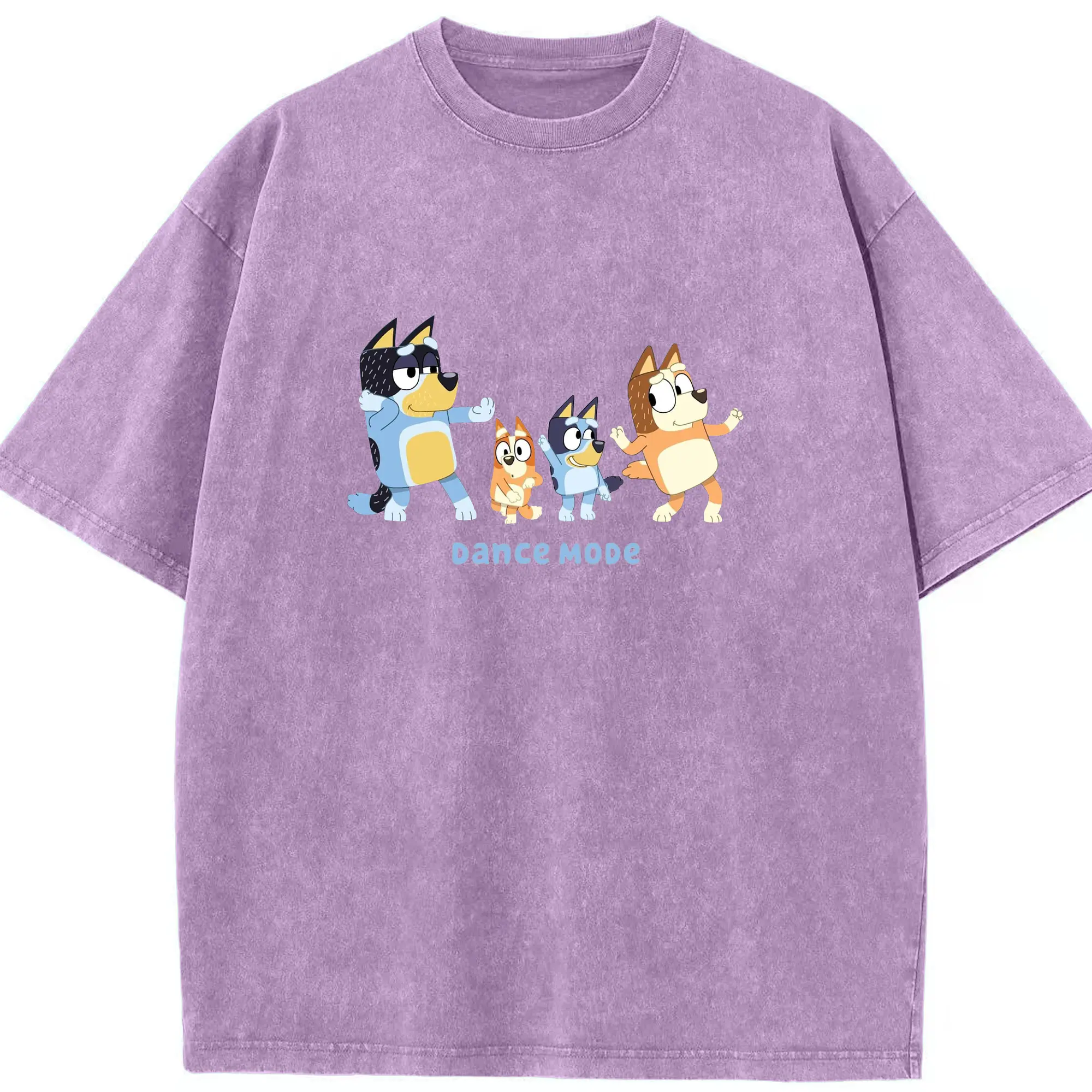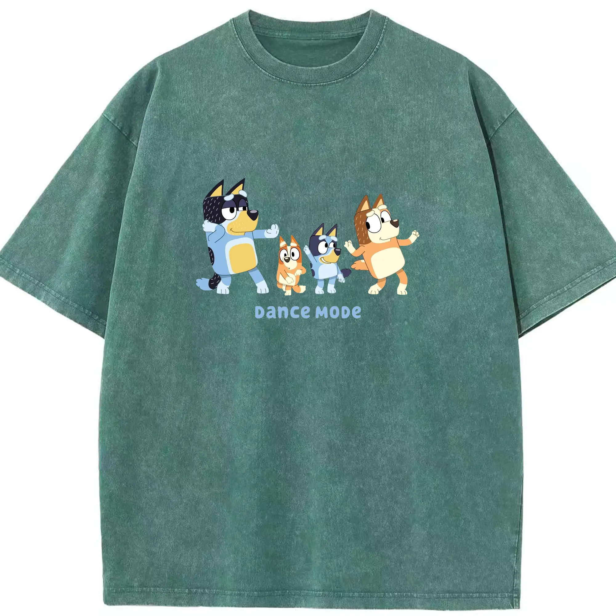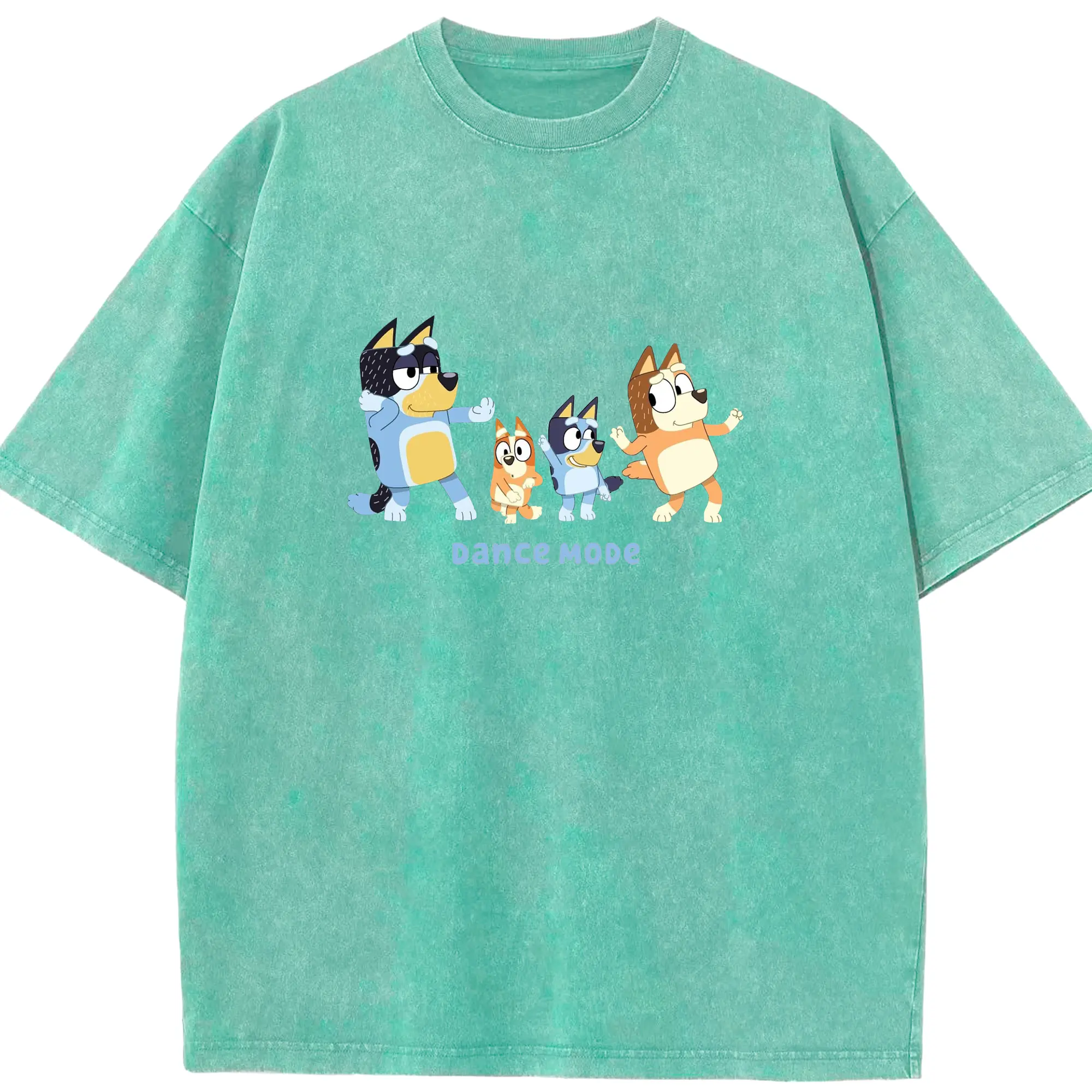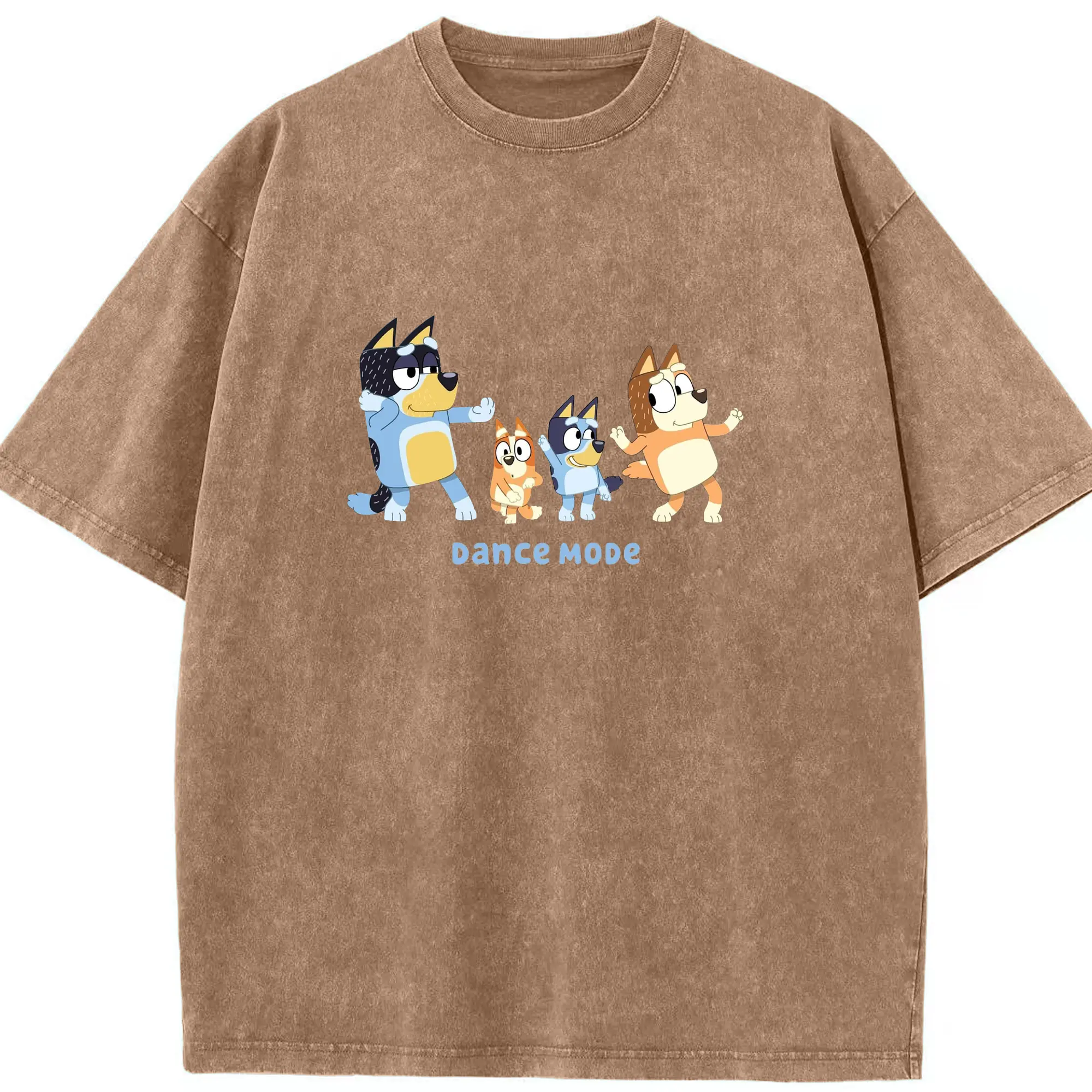 Bluey Family Dance Mode DIY - Washed Vintage Look 230g Cotton Oversized T-Shirt With Front Heat Transfer Print – Soft, Lightweight, Stylish Fit – Comfortable Casual Wear For Sports & Everyday Use