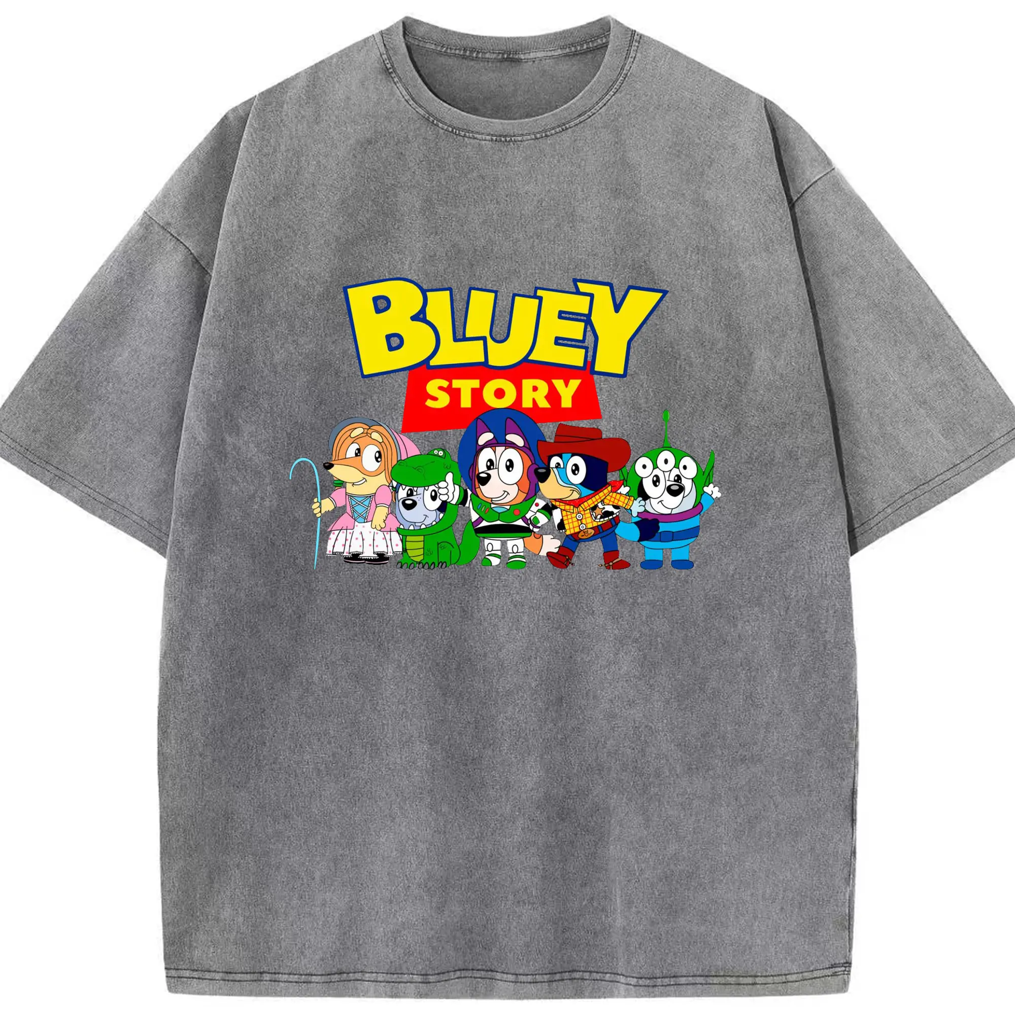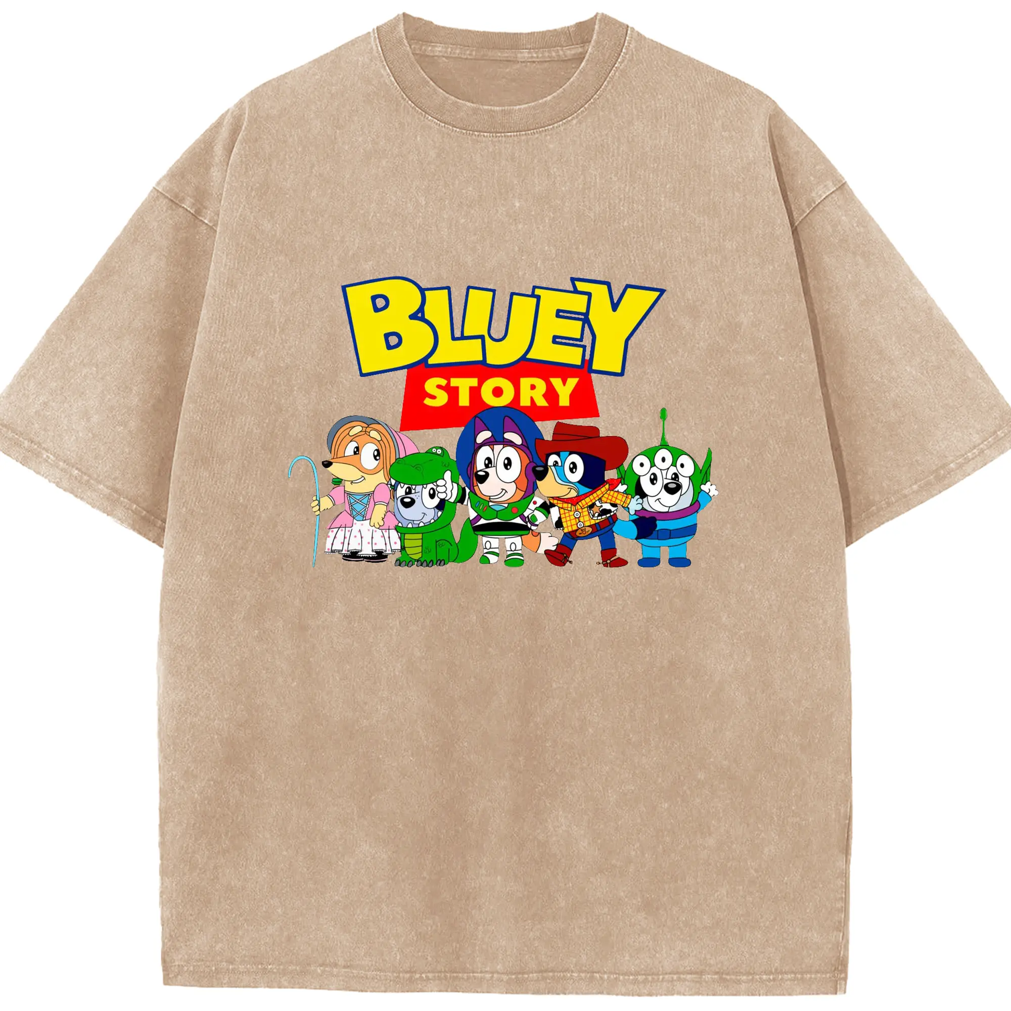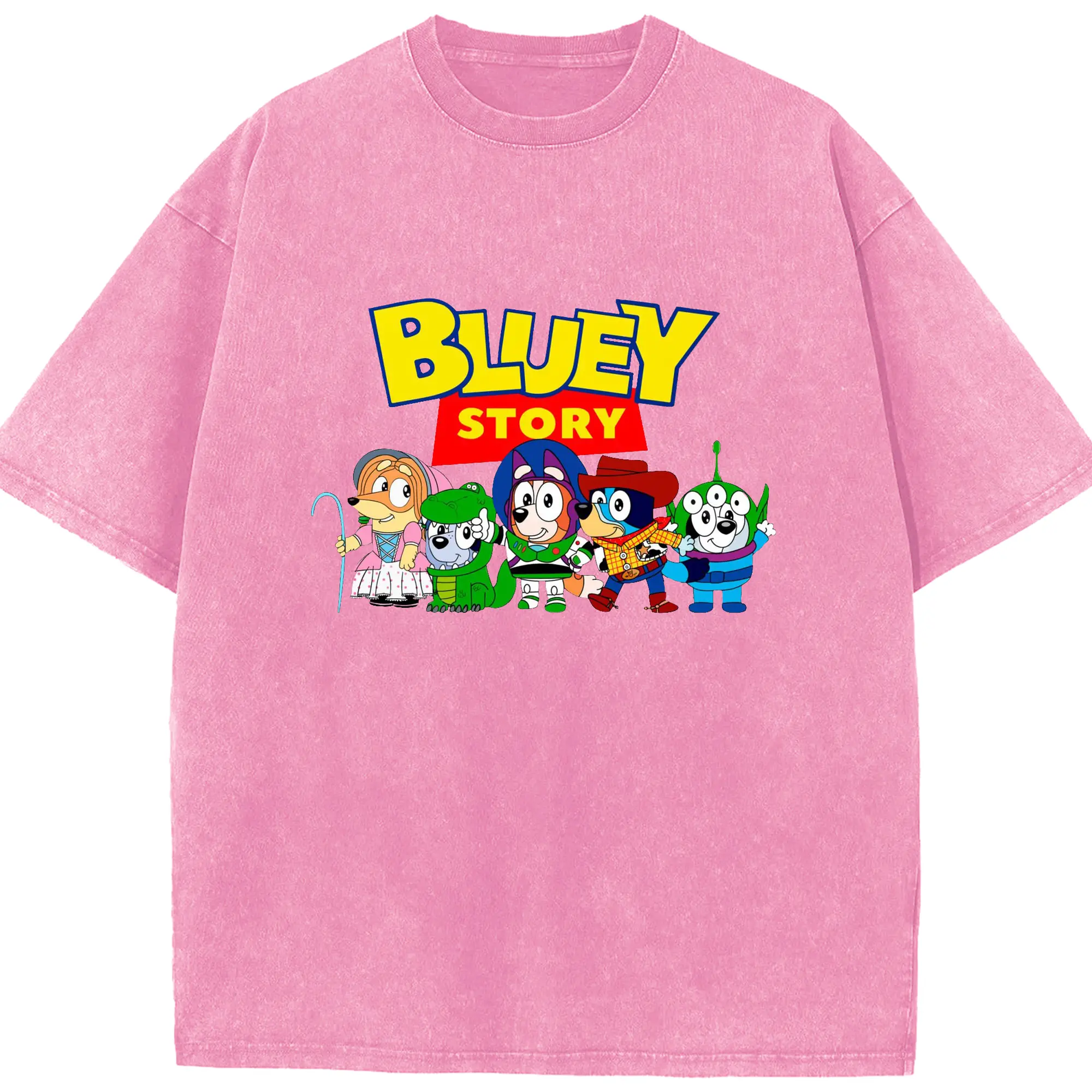 Bluey x Toy Story Crossover DIY - Washed Vintage Look 230g Cotton Oversized T-Shirt With Front Heat Transfer Print – Soft, Lightweight, Stylish Fit – Comfortable Casual Wear For Sports & Everyday Use