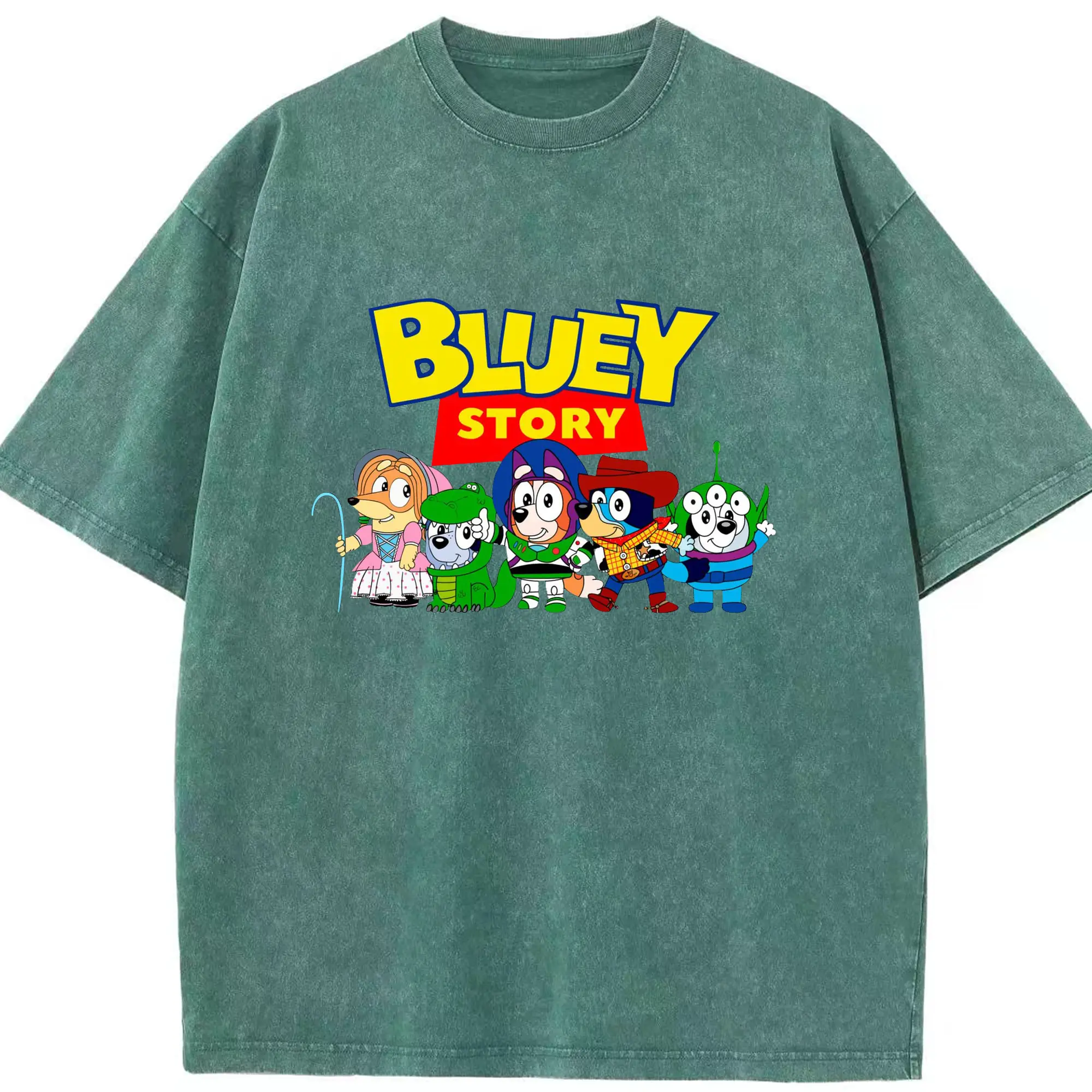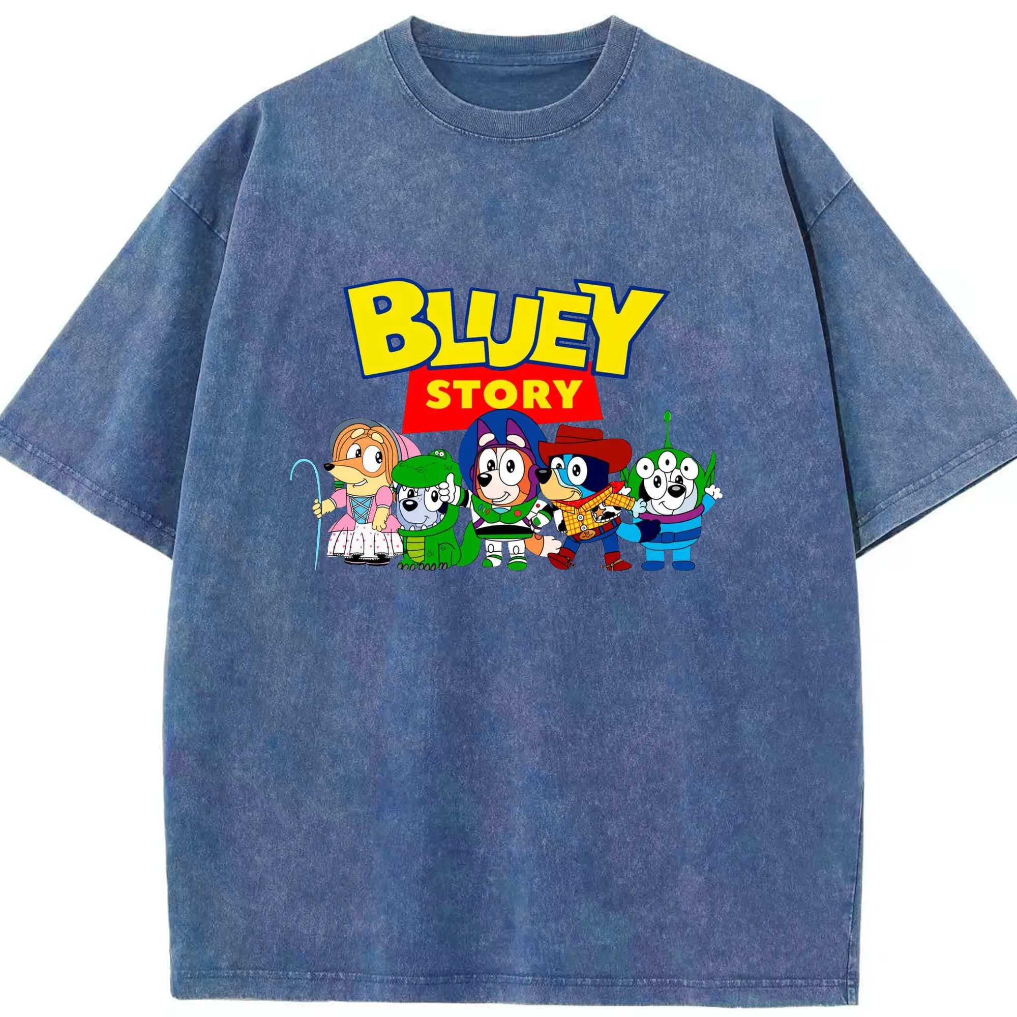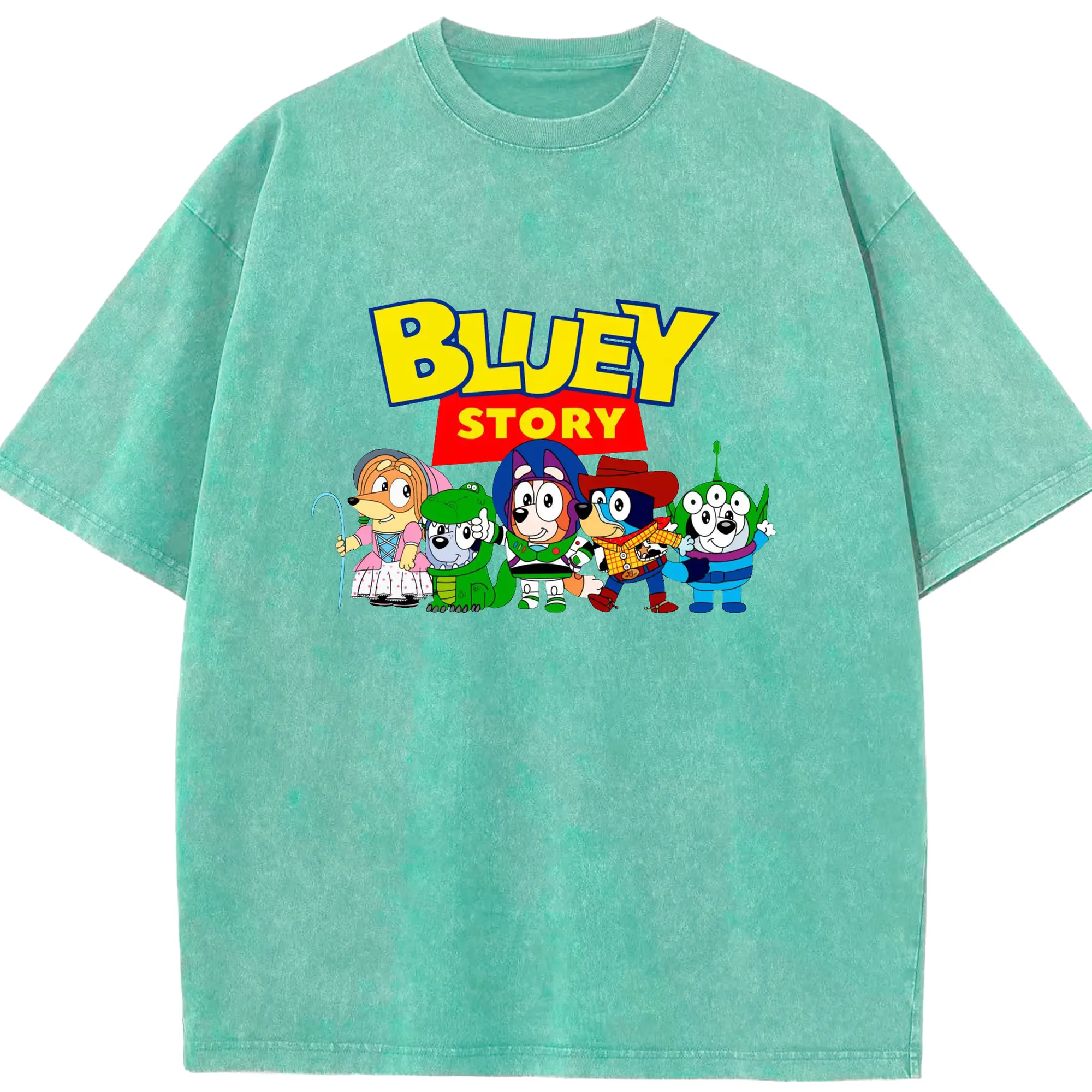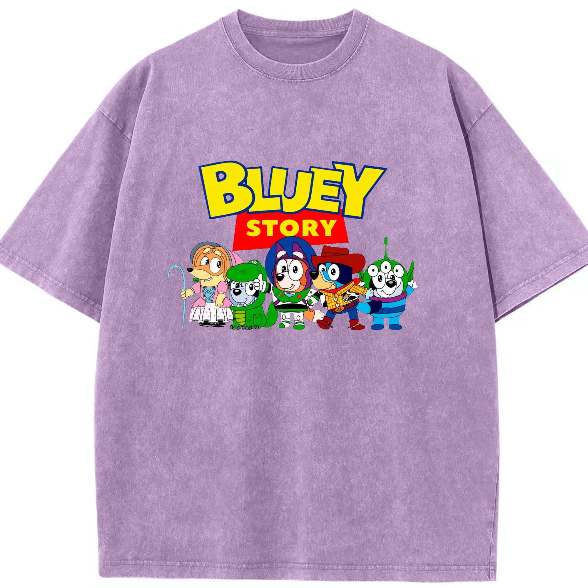 Bluey x Toy Story Crossover DIY - Washed Vintage Look 230g Cotton Oversized T-Shirt With Front Heat Transfer Print – Soft, Lightweight, Stylish Fit – Comfortable Casual Wear For Sports & Everyday Use