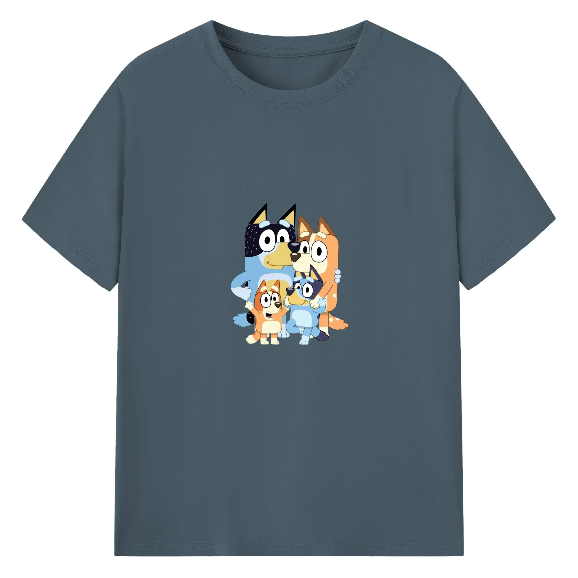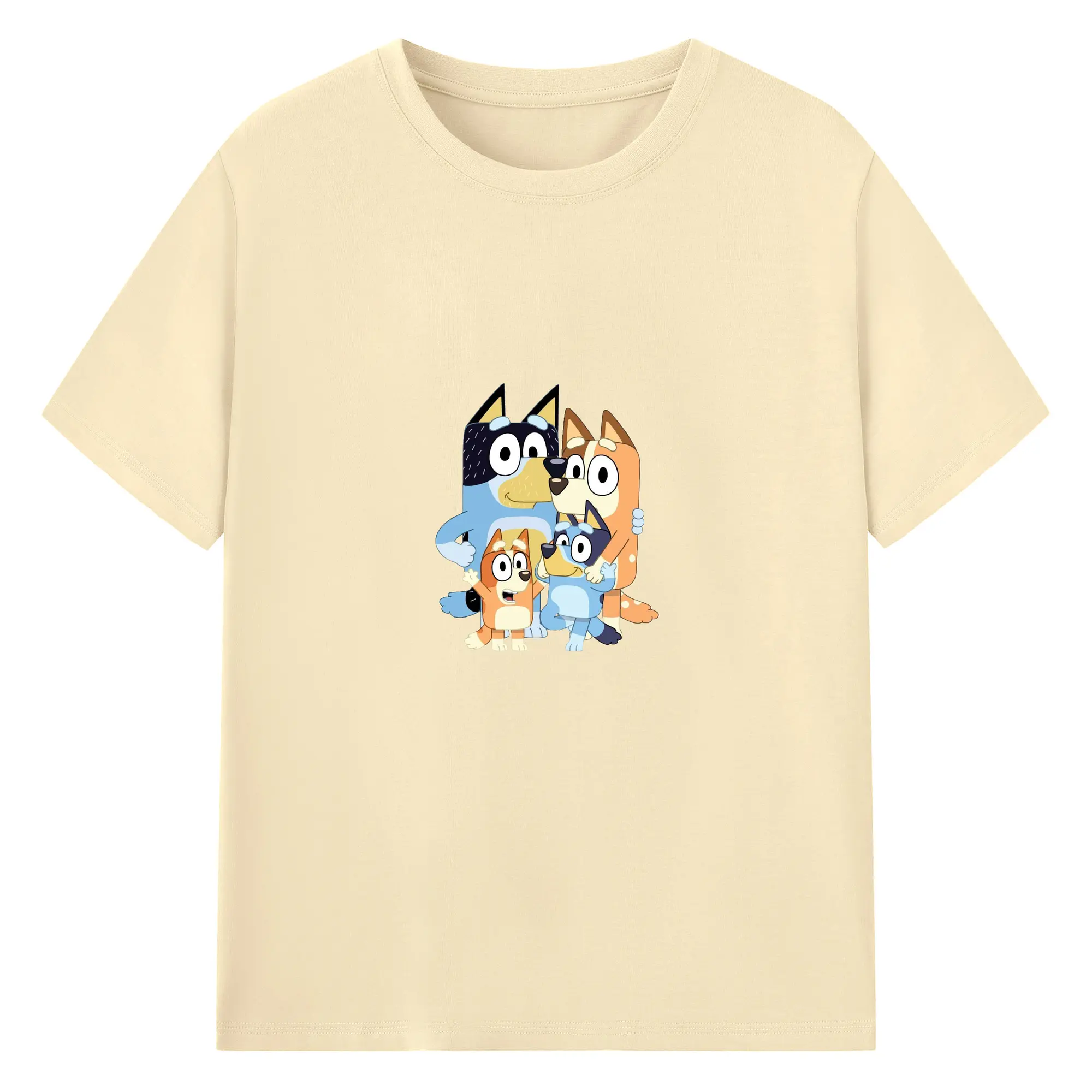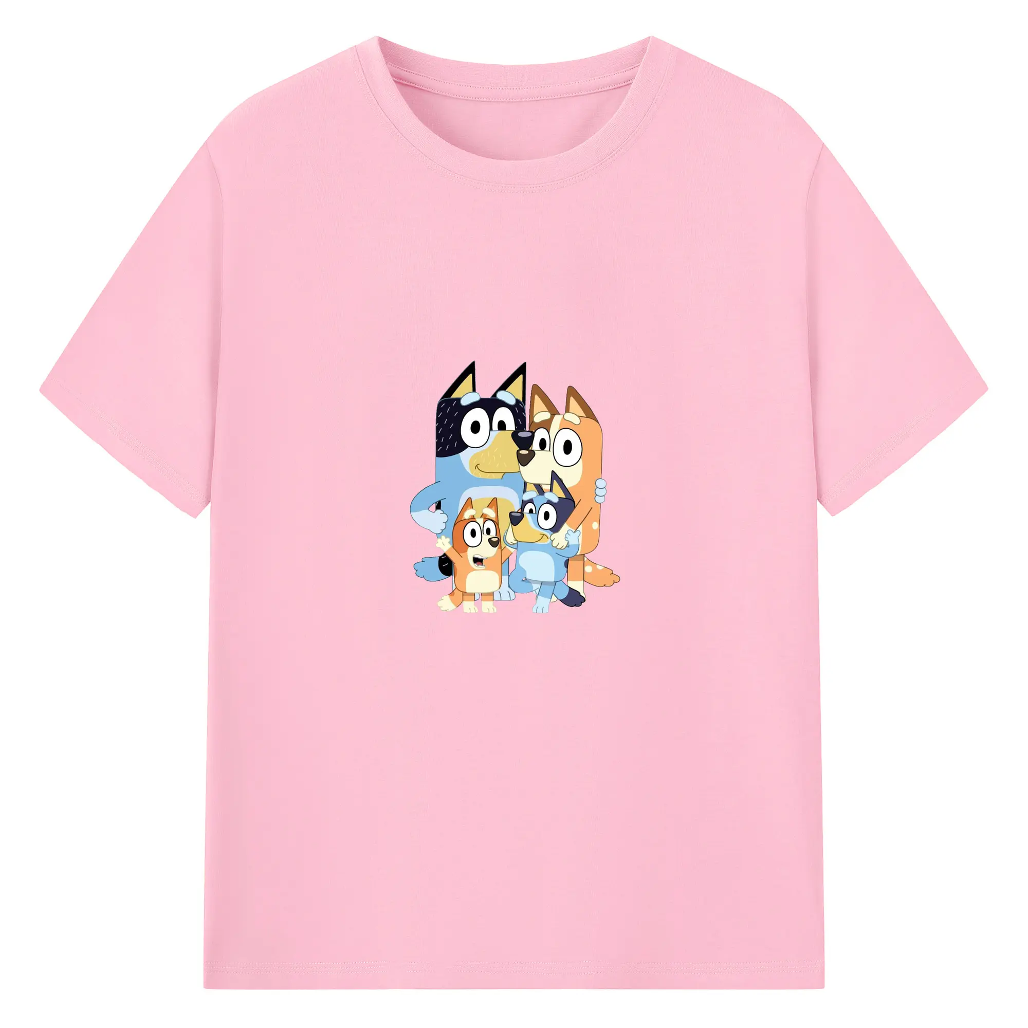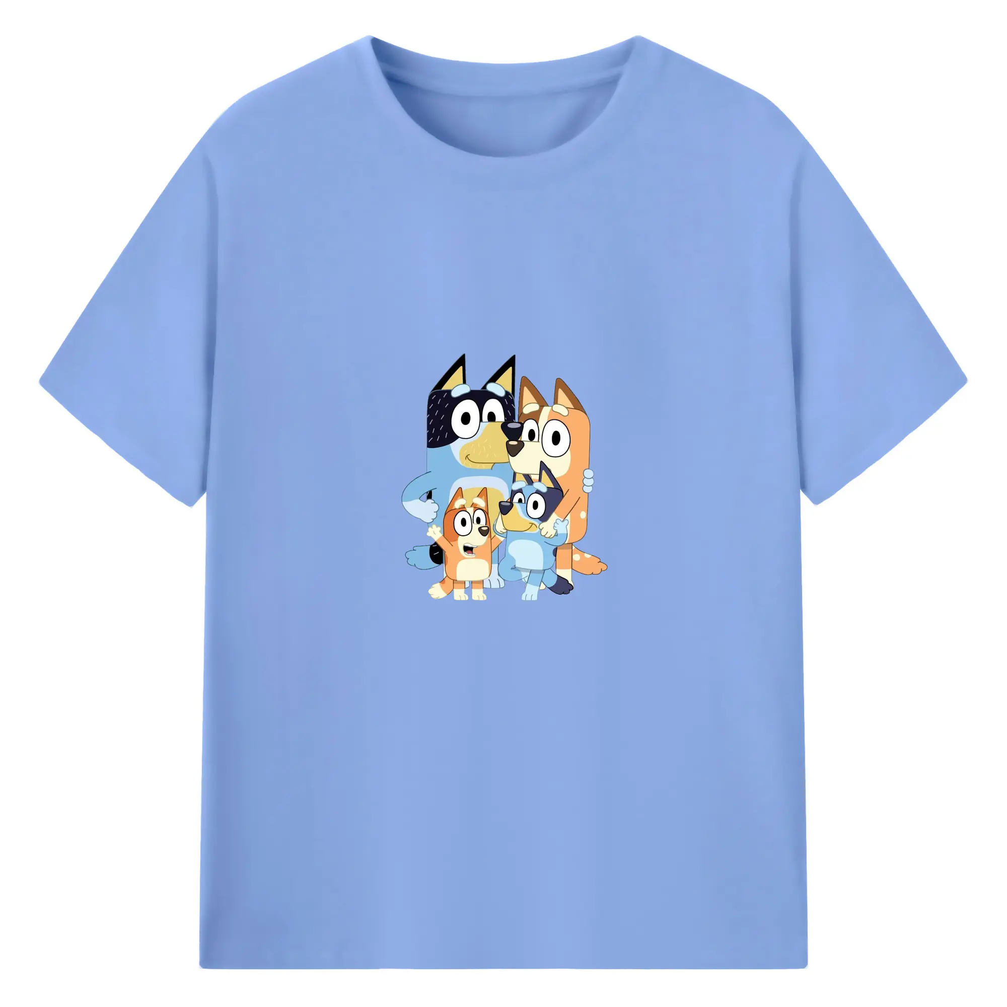 Bluey-Inspired Family Theme Trendy DIY - 180g Cotton T-Shirt With Front Heat Transfer Print – Soft, Lightweight, Fitted Design – Comfortable Casual Wear For Sports & Everyday Use