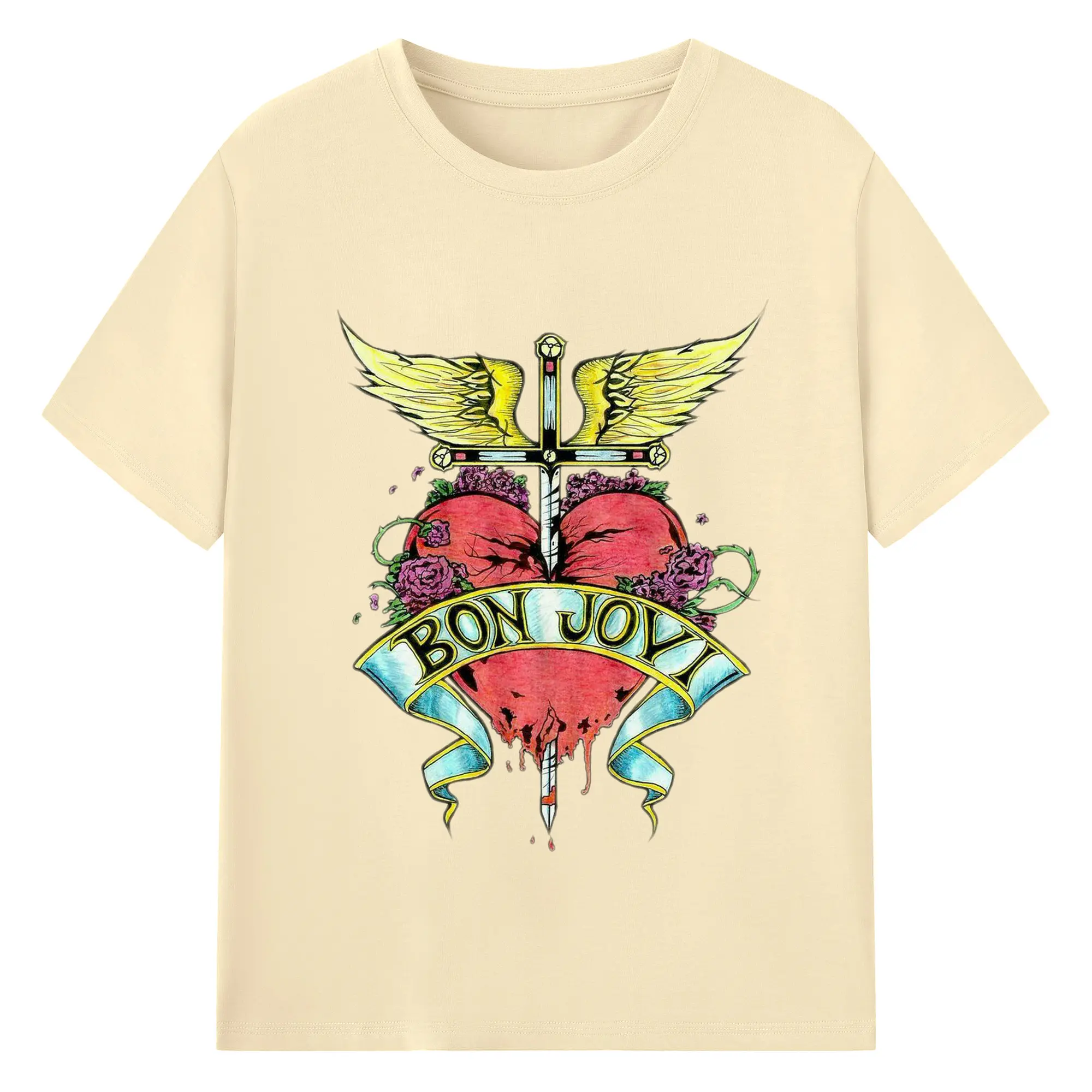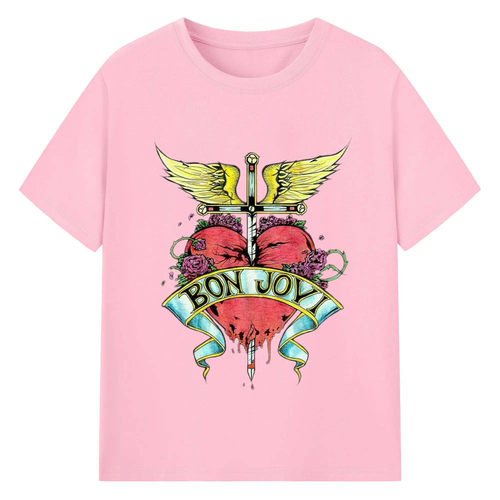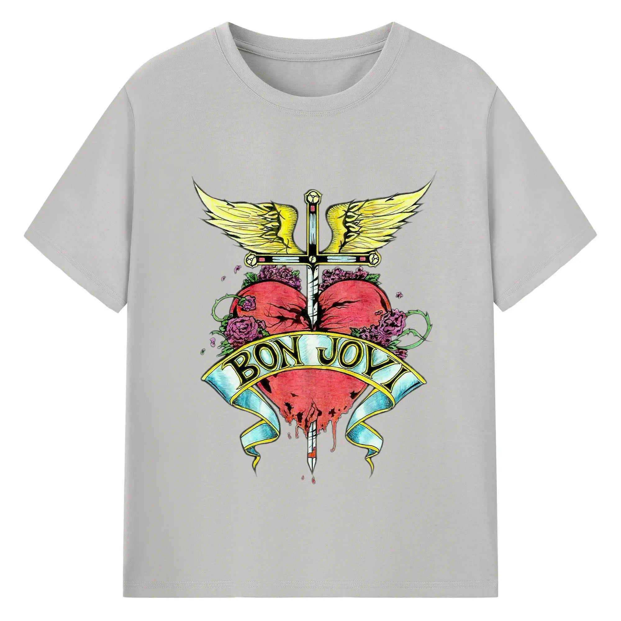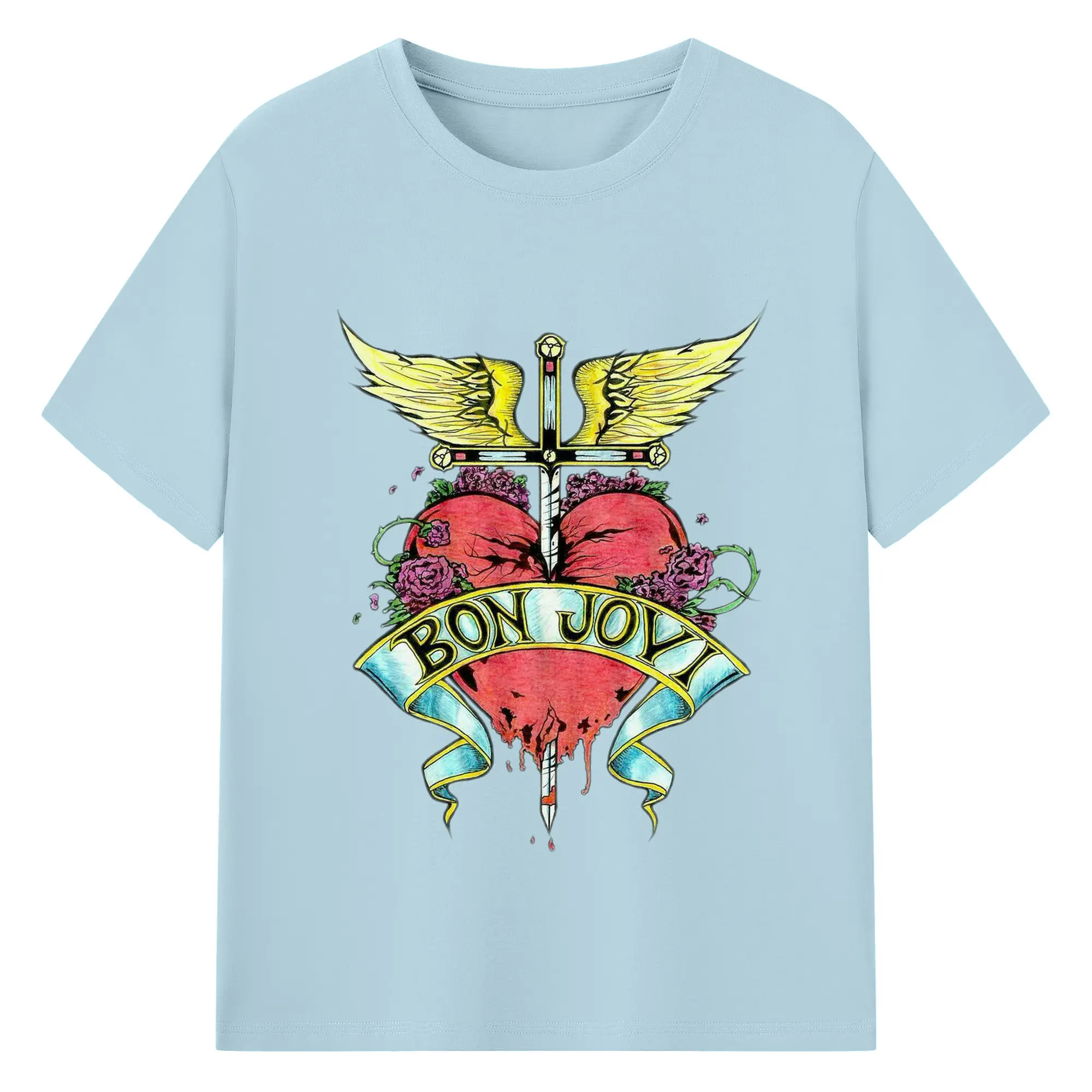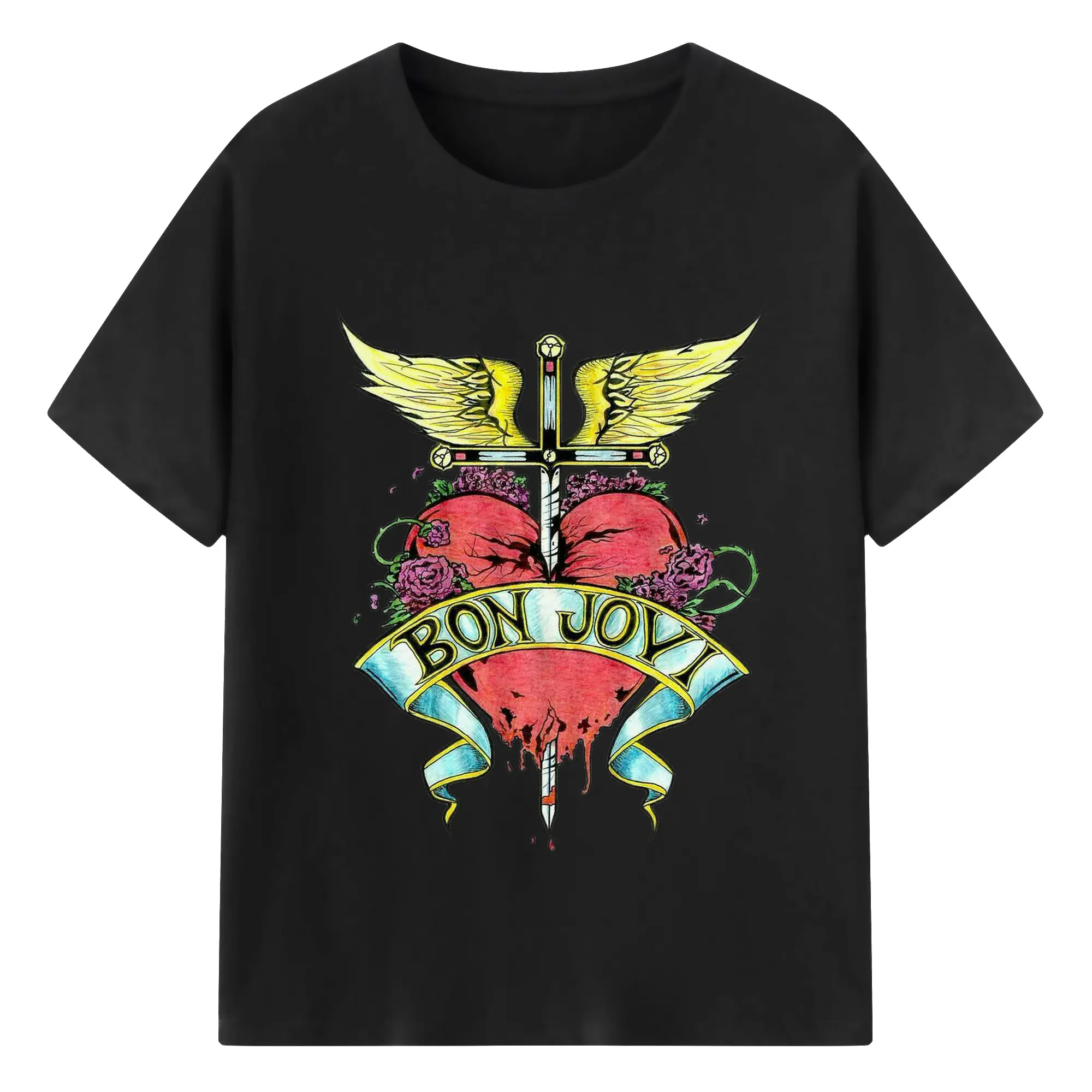 Bon Jovi Rock Heart Cross DIY Sihirt - 180g Cotton T-Shirt With Front Heat Transfer Print – Soft, Lightweight, Fitted Design – Comfortable Casual Wear For Sports & Everyday Use