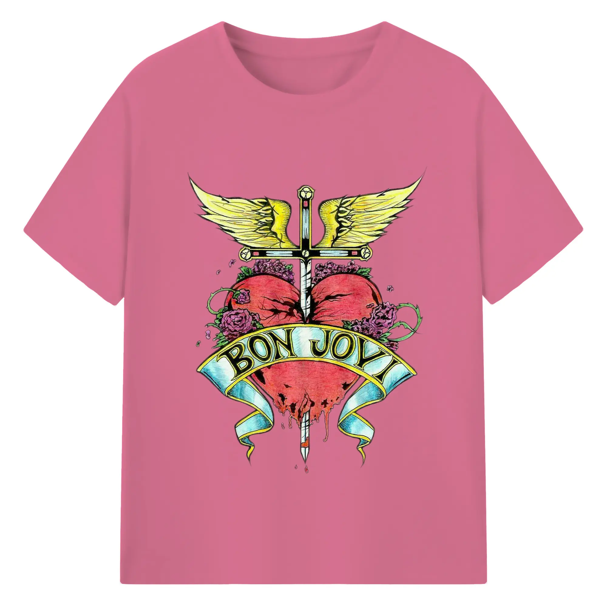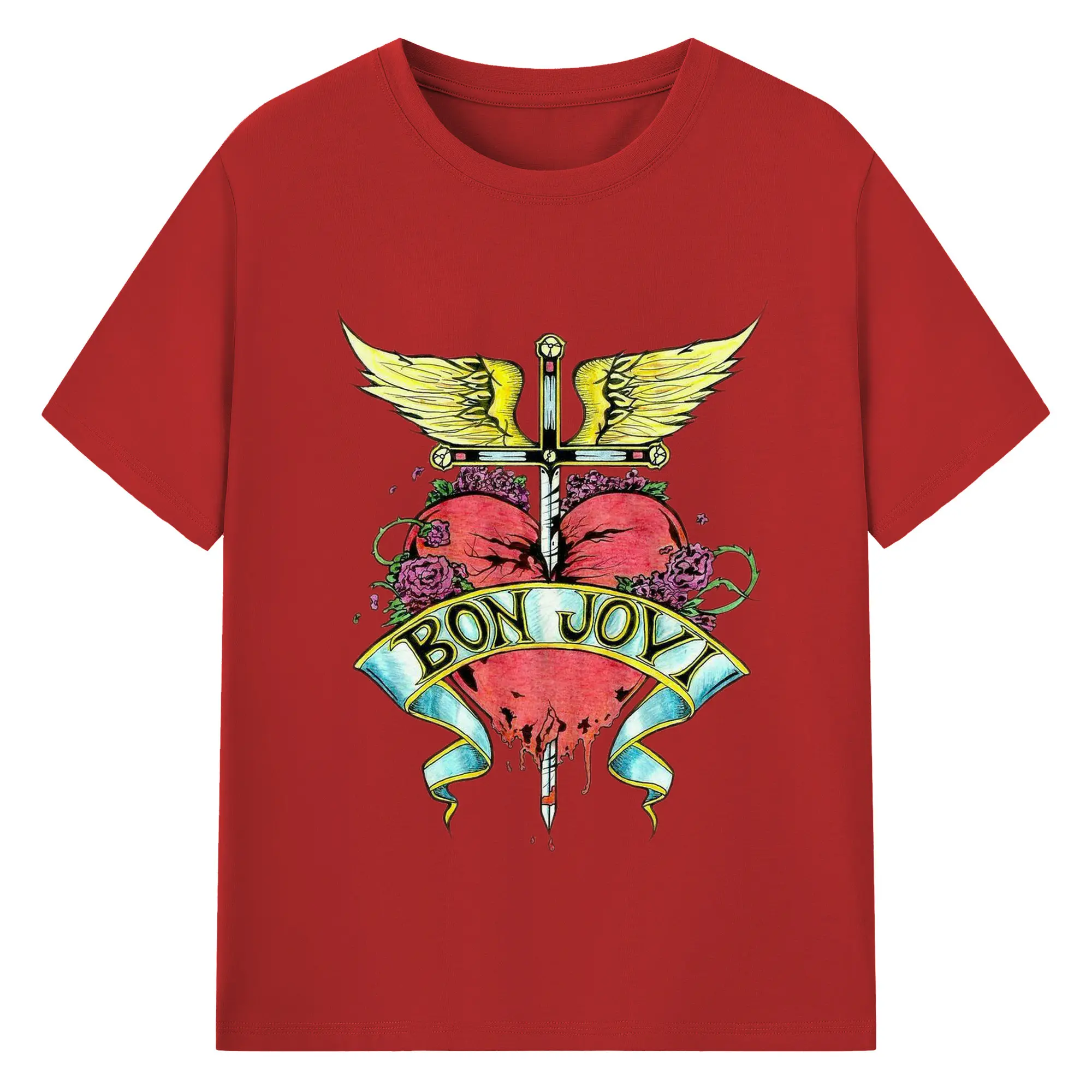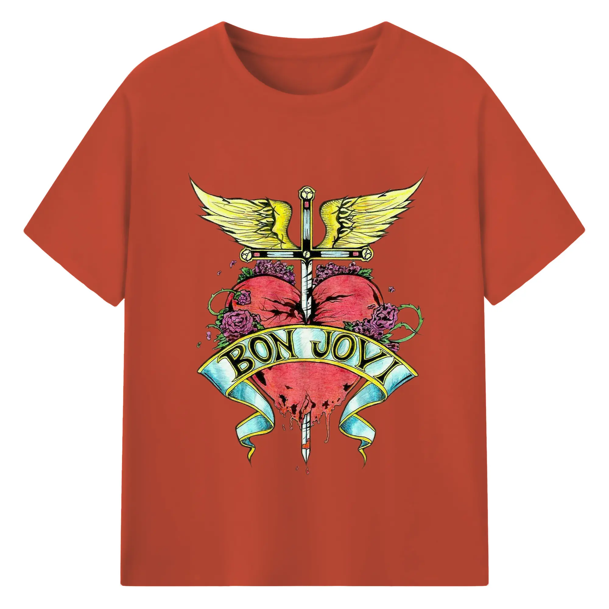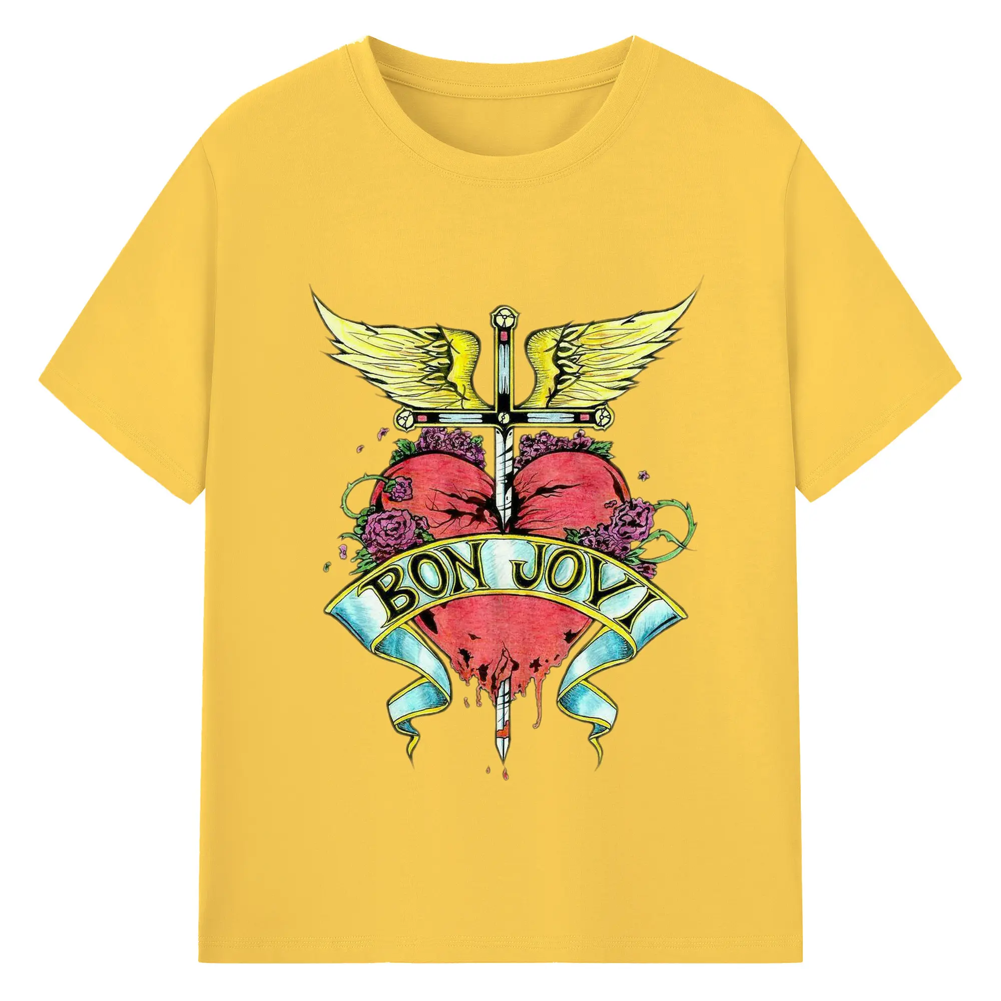 Bon Jovi Rock Heart Cross DIY Sihirt - 180g Cotton T-Shirt With Front Heat Transfer Print – Soft, Lightweight, Fitted Design – Comfortable Casual Wear For Sports & Everyday Use