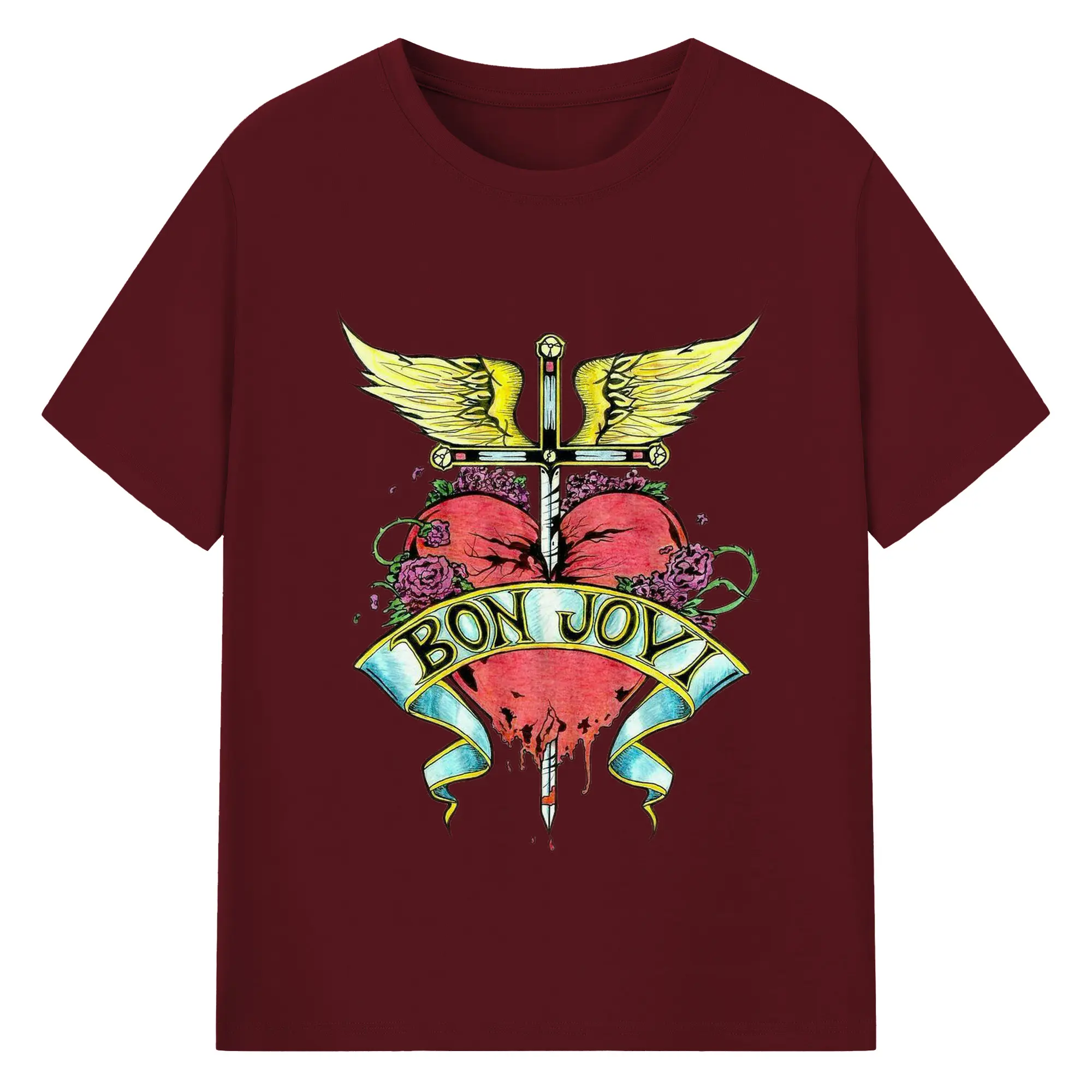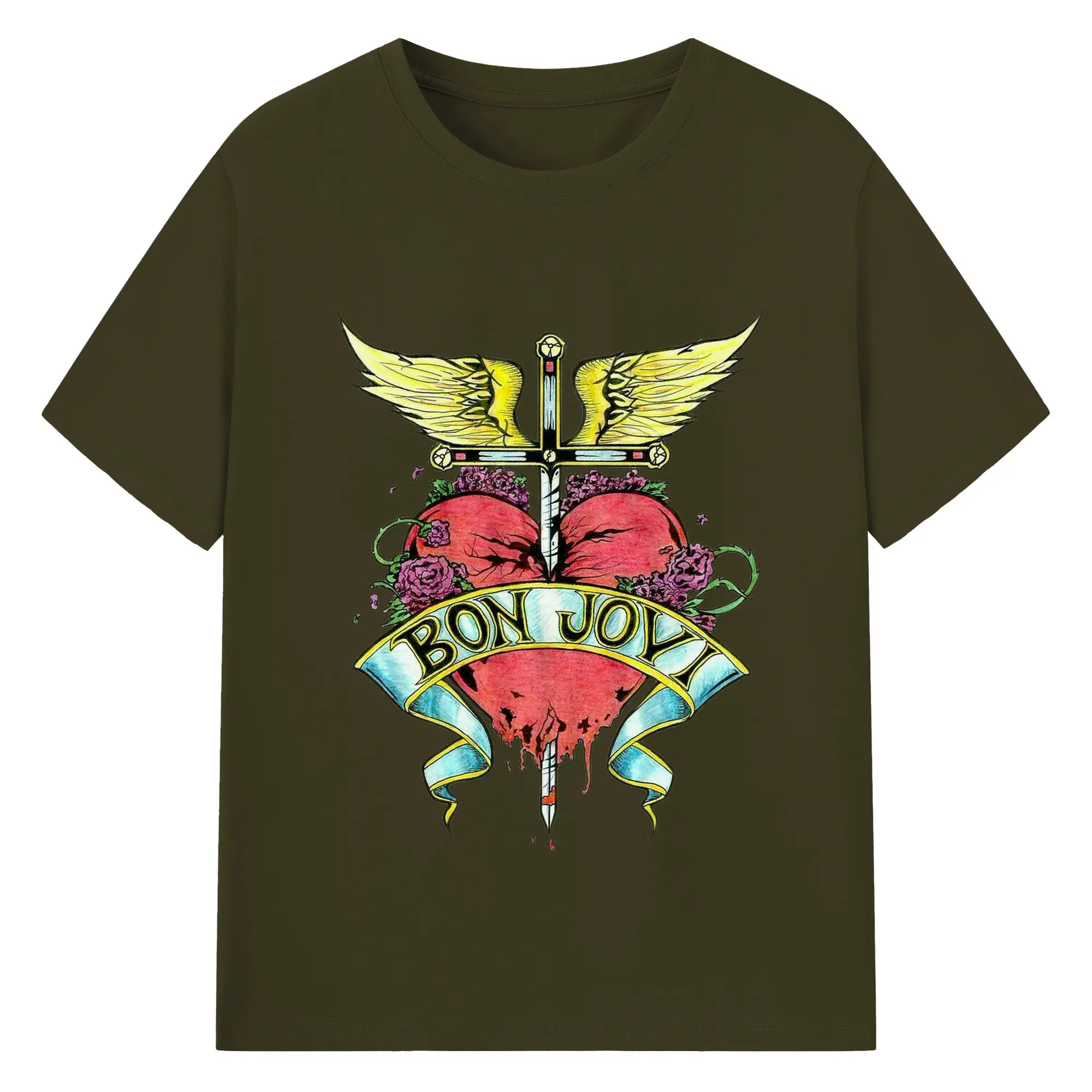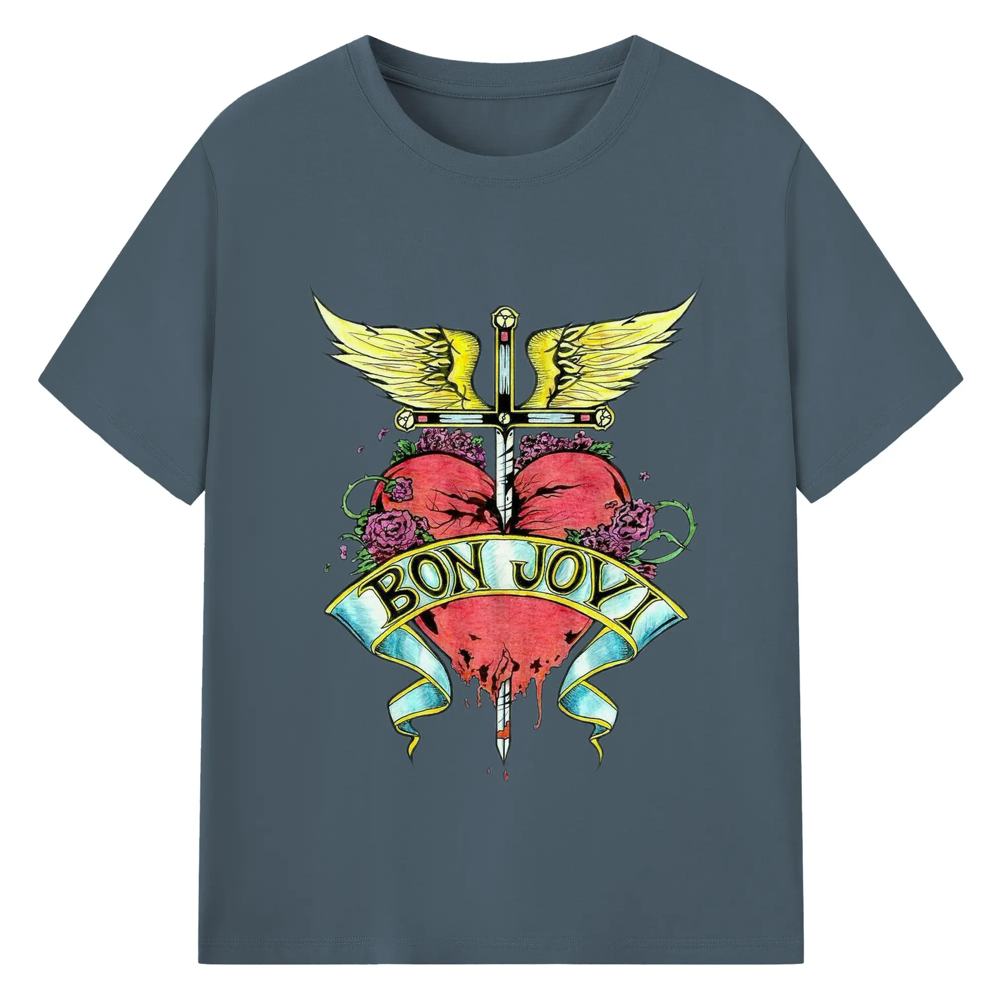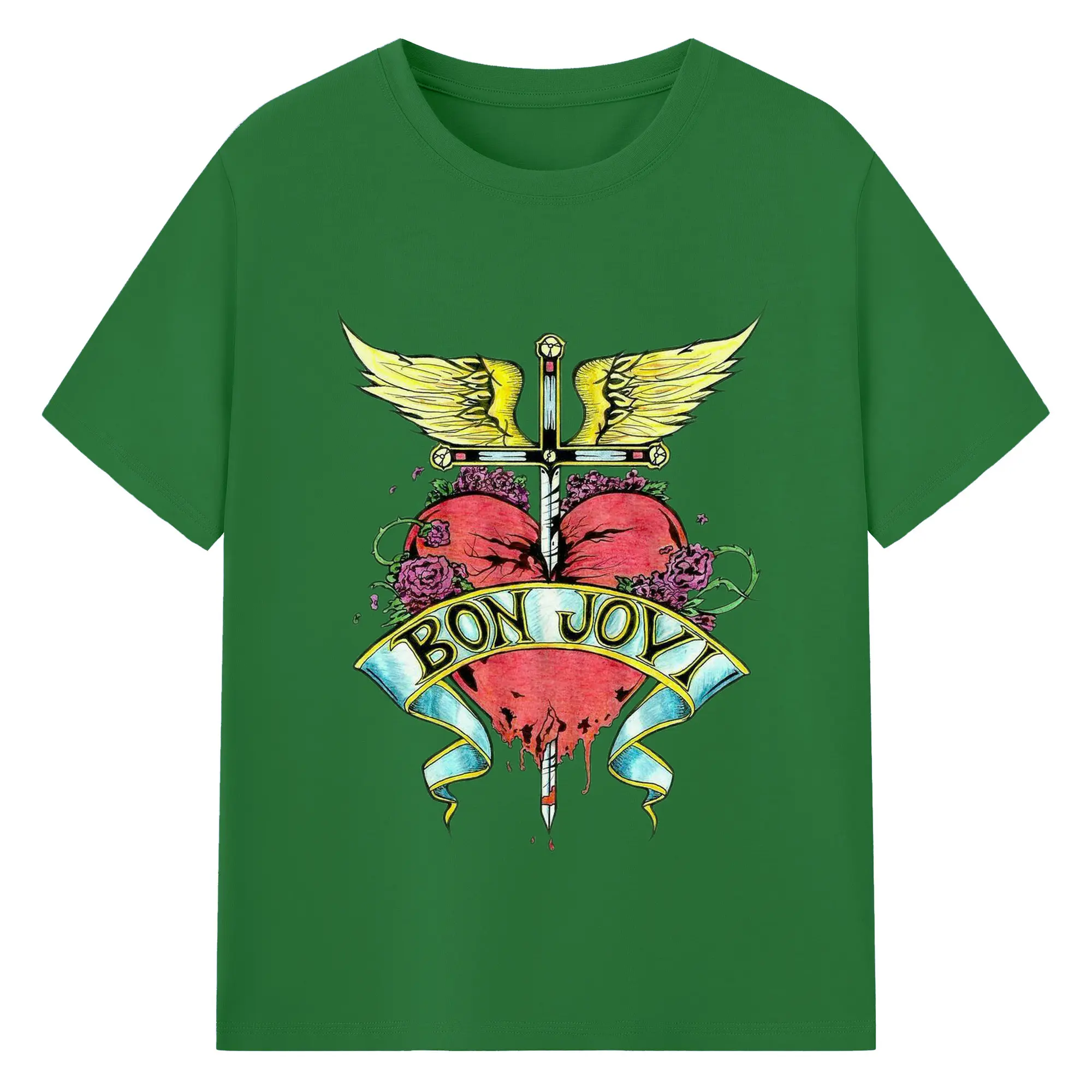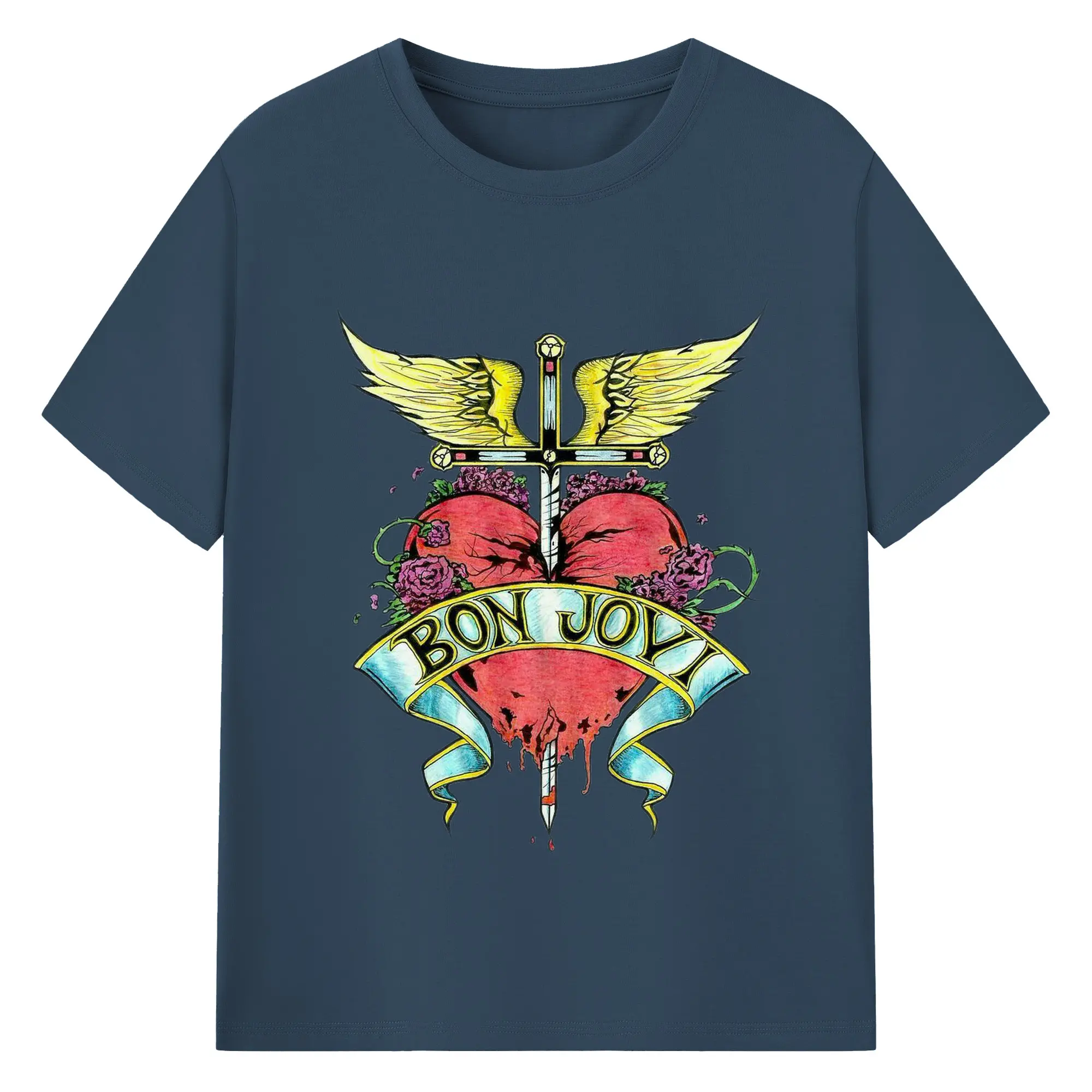 Bon Jovi Rock Heart Cross DIY Sihirt - 180g Cotton T-Shirt With Front Heat Transfer Print – Soft, Lightweight, Fitted Design – Comfortable Casual Wear For Sports & Everyday Use