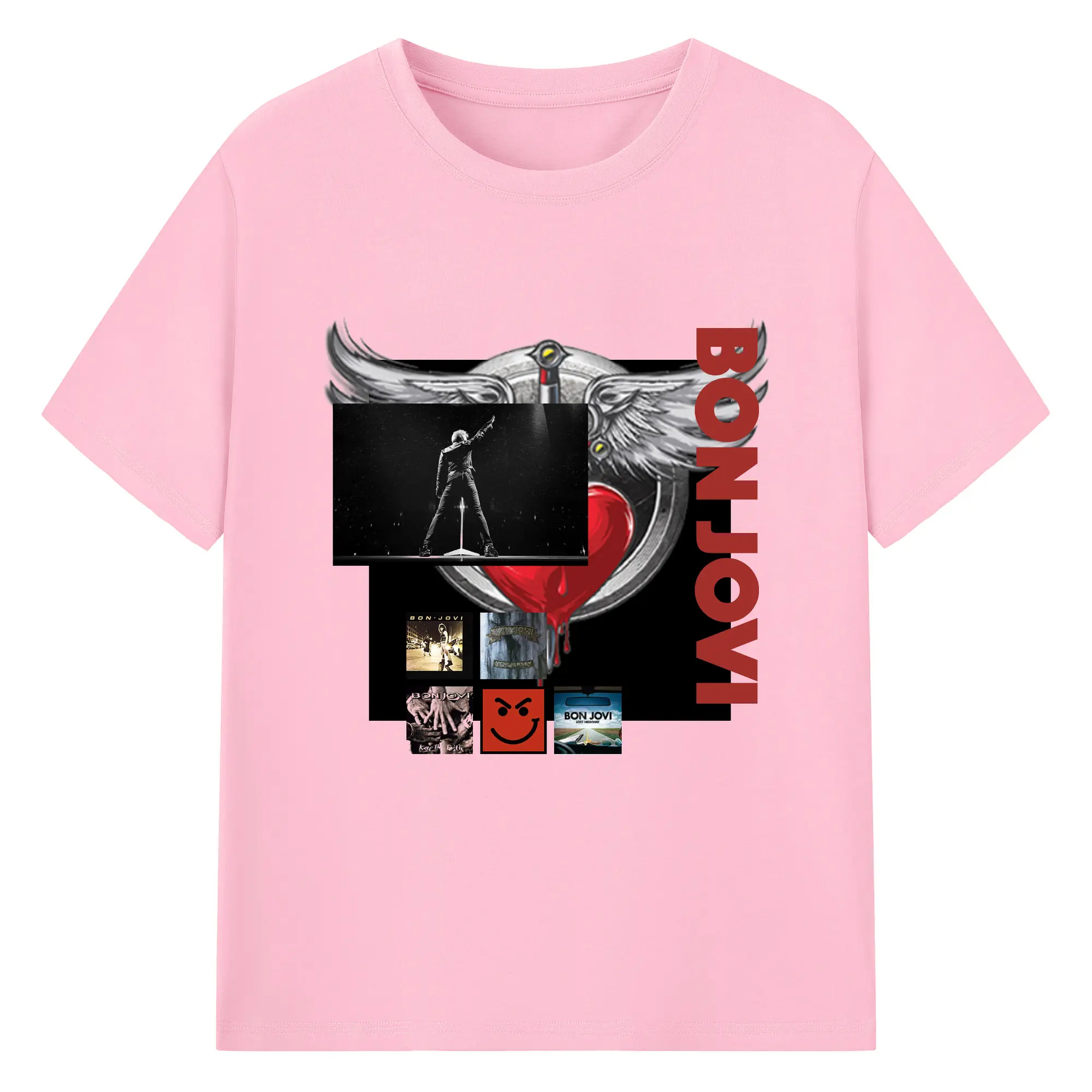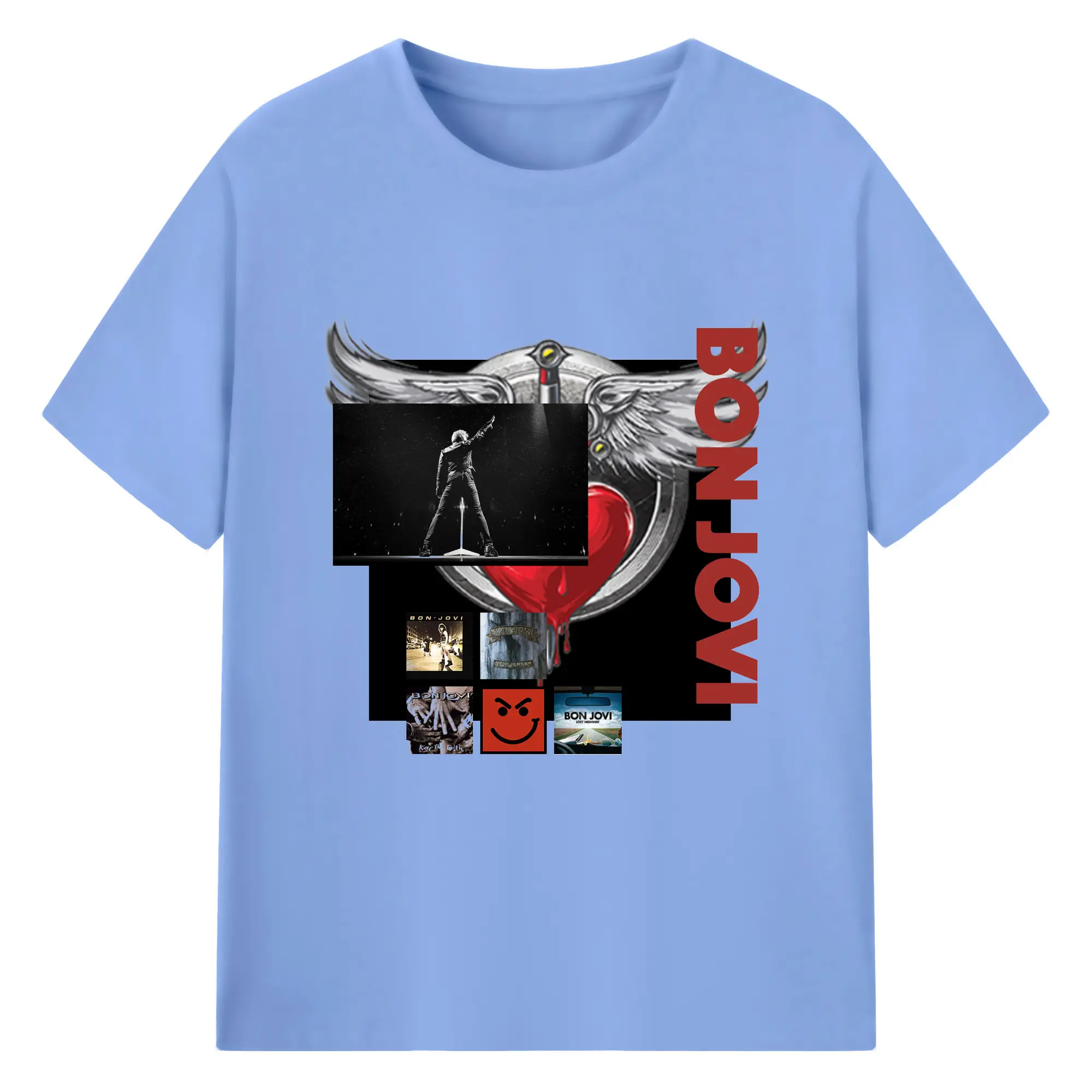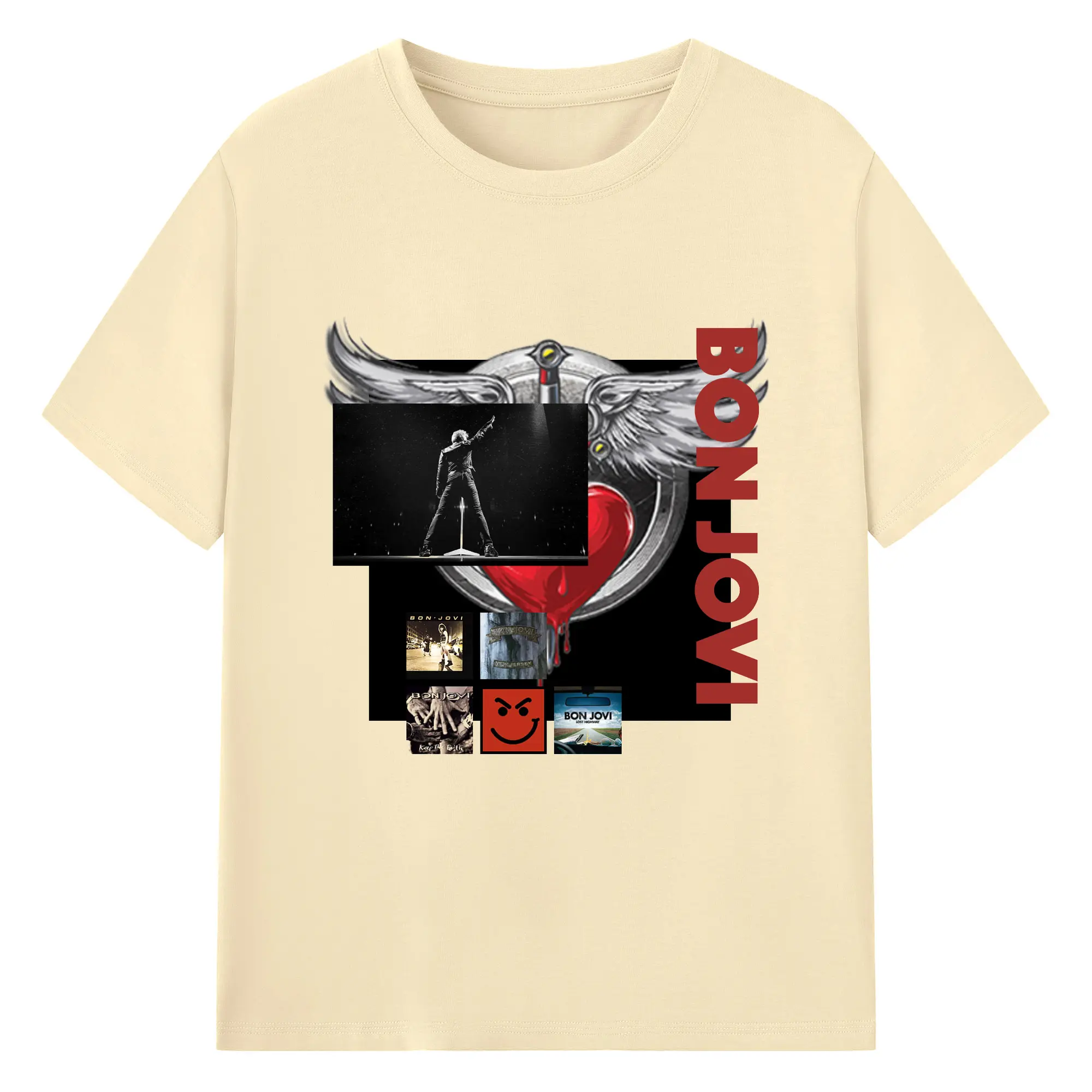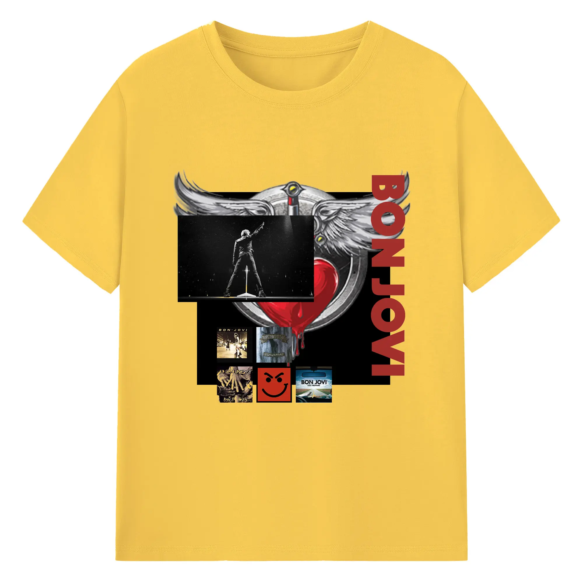 Bon Jovi Vintage Rock-Classic Album Art Shirt - 180g Cotton T-Shirt With Front Heat Transfer Print – Soft, Lightweight, Fitted Design – Comfortable Casual Wear For Sports & Everyday Use