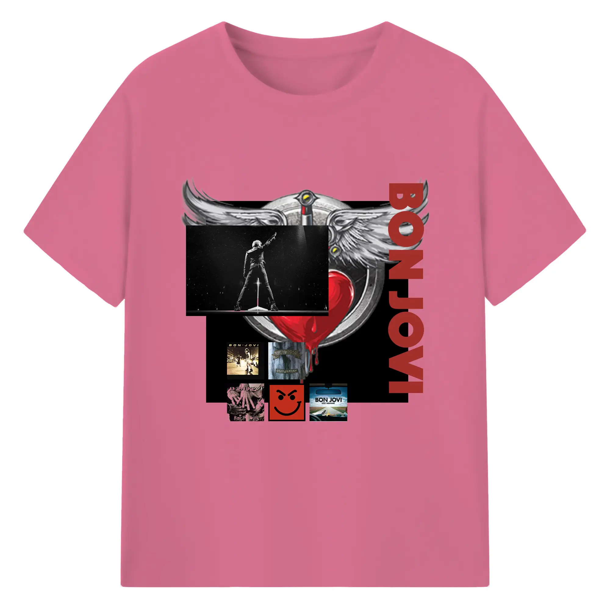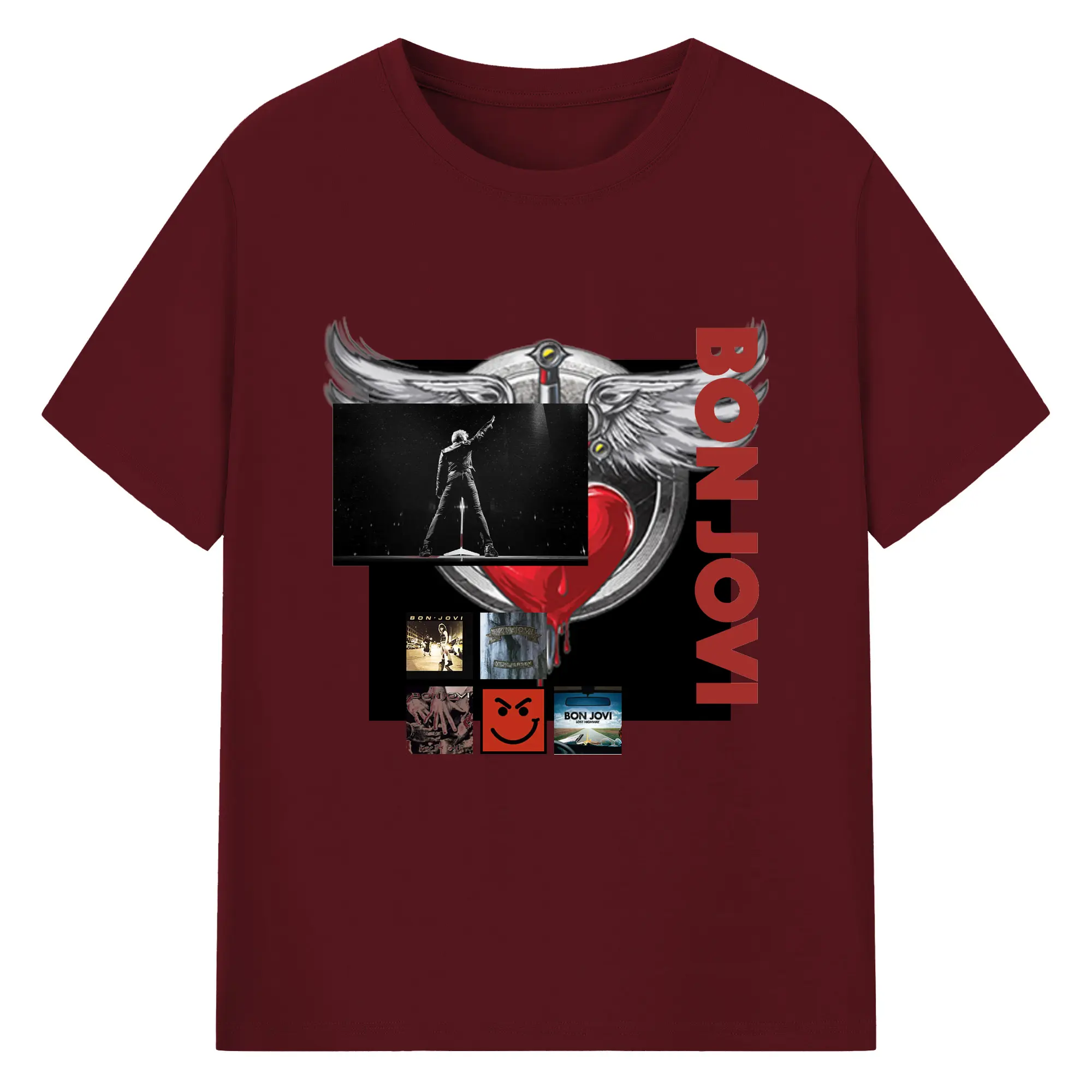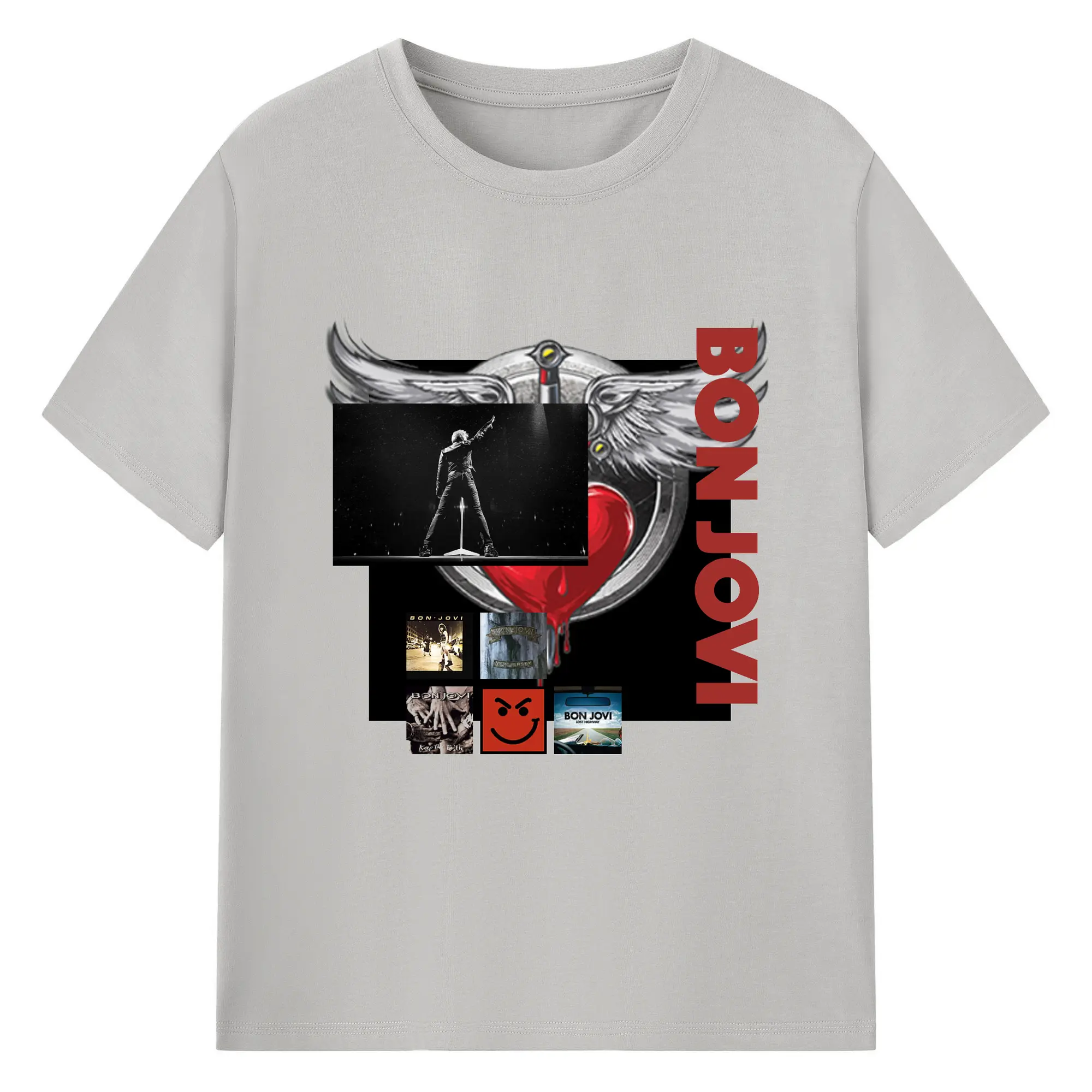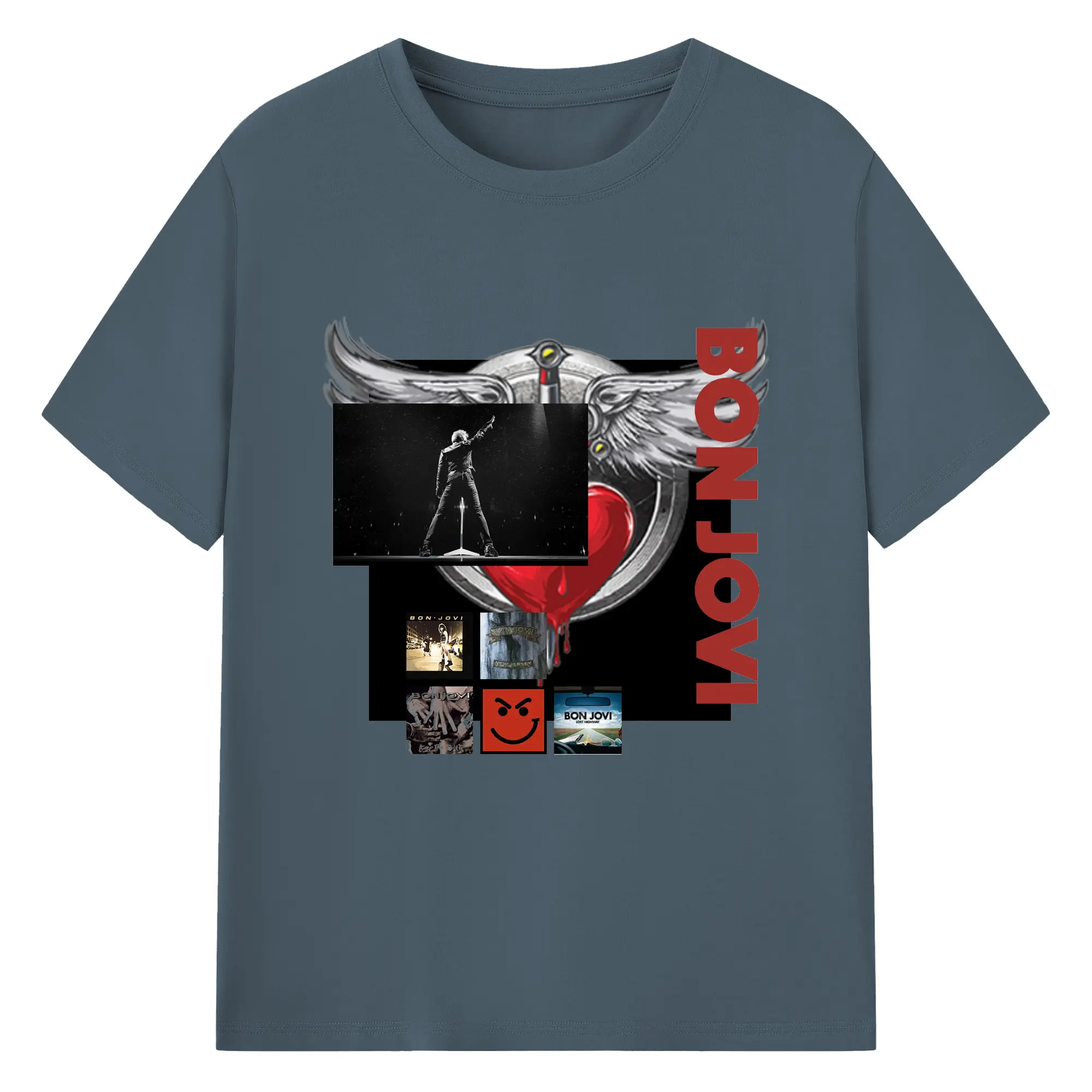 Bon Jovi Vintage Rock-Classic Album Art Shirt - 180g Cotton T-Shirt With Front Heat Transfer Print – Soft, Lightweight, Fitted Design – Comfortable Casual Wear For Sports & Everyday Use
