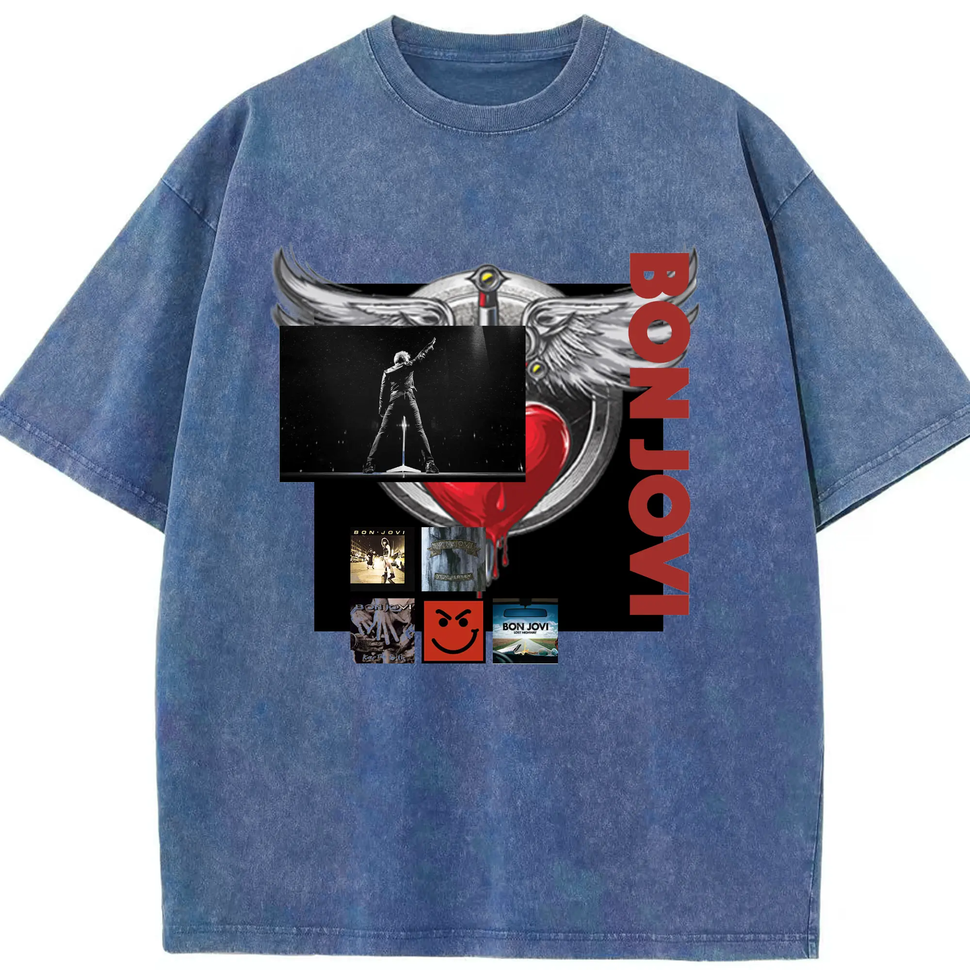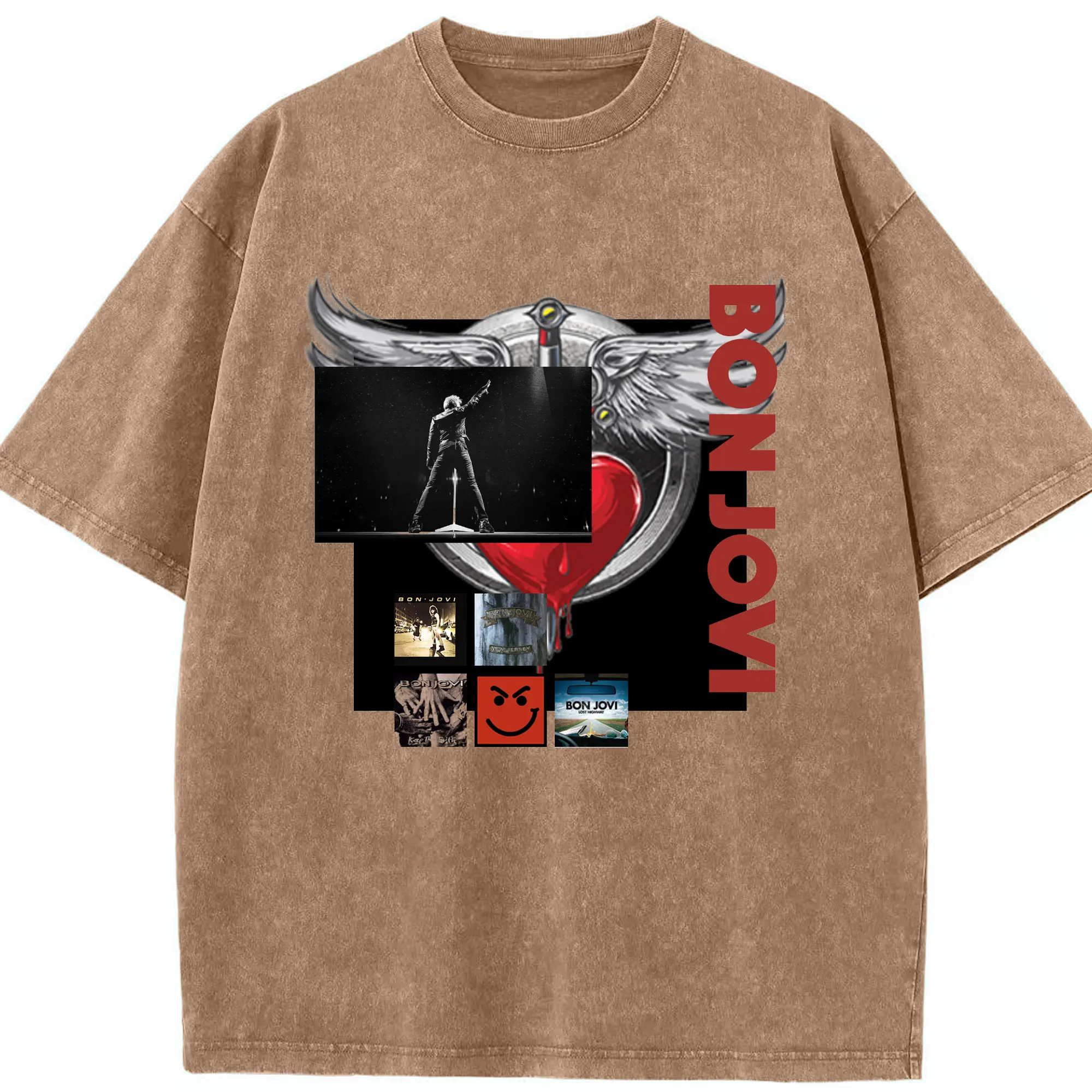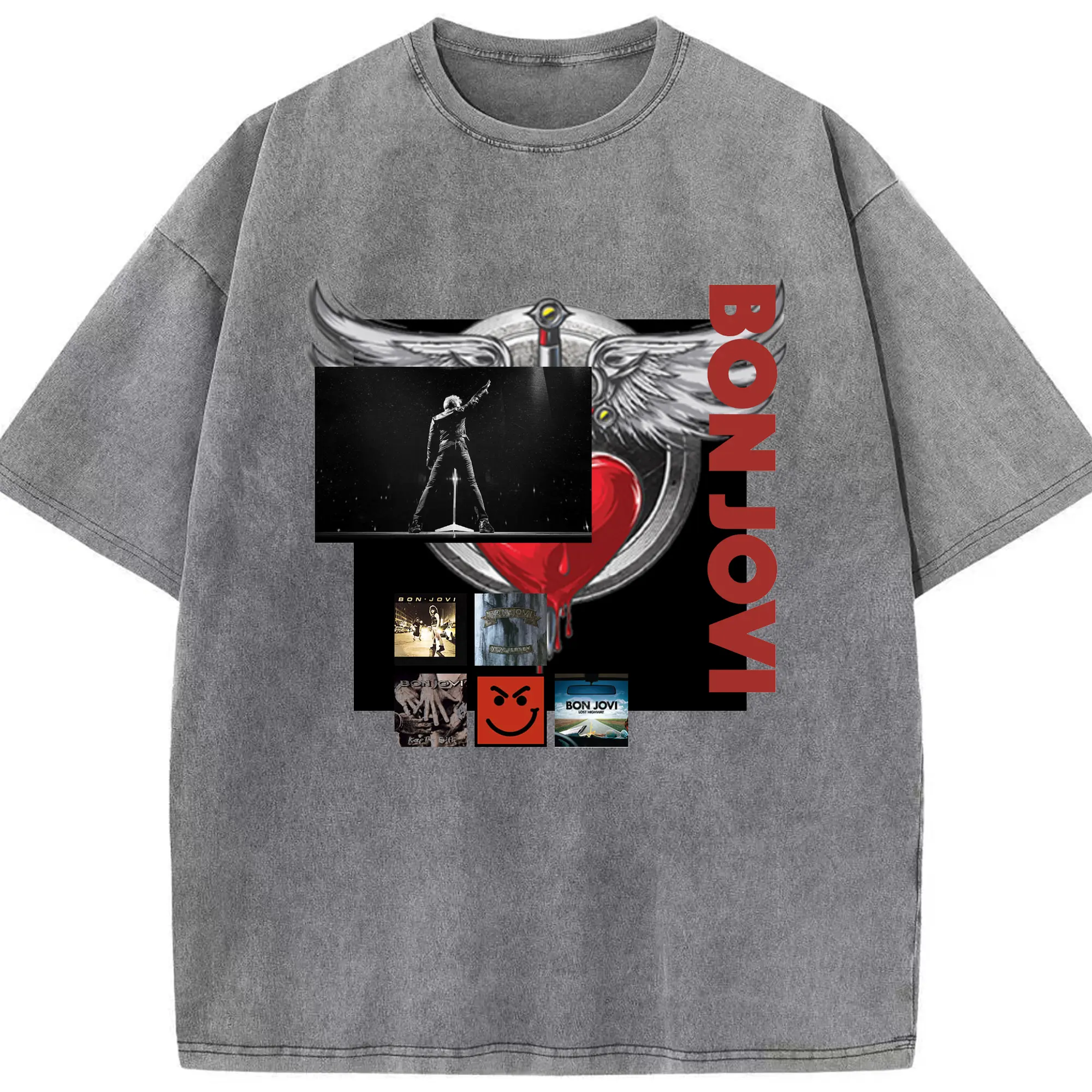 Bon Jovi Vintage Rock-Classic Album Art Shirt - Washed Vintage Look 230g Cotton Oversized T-Shirt With Front Heat Transfer Print – Soft, Lightweight, Stylish Fit – Comfortable Casual Wear For Sports & Everyday Use