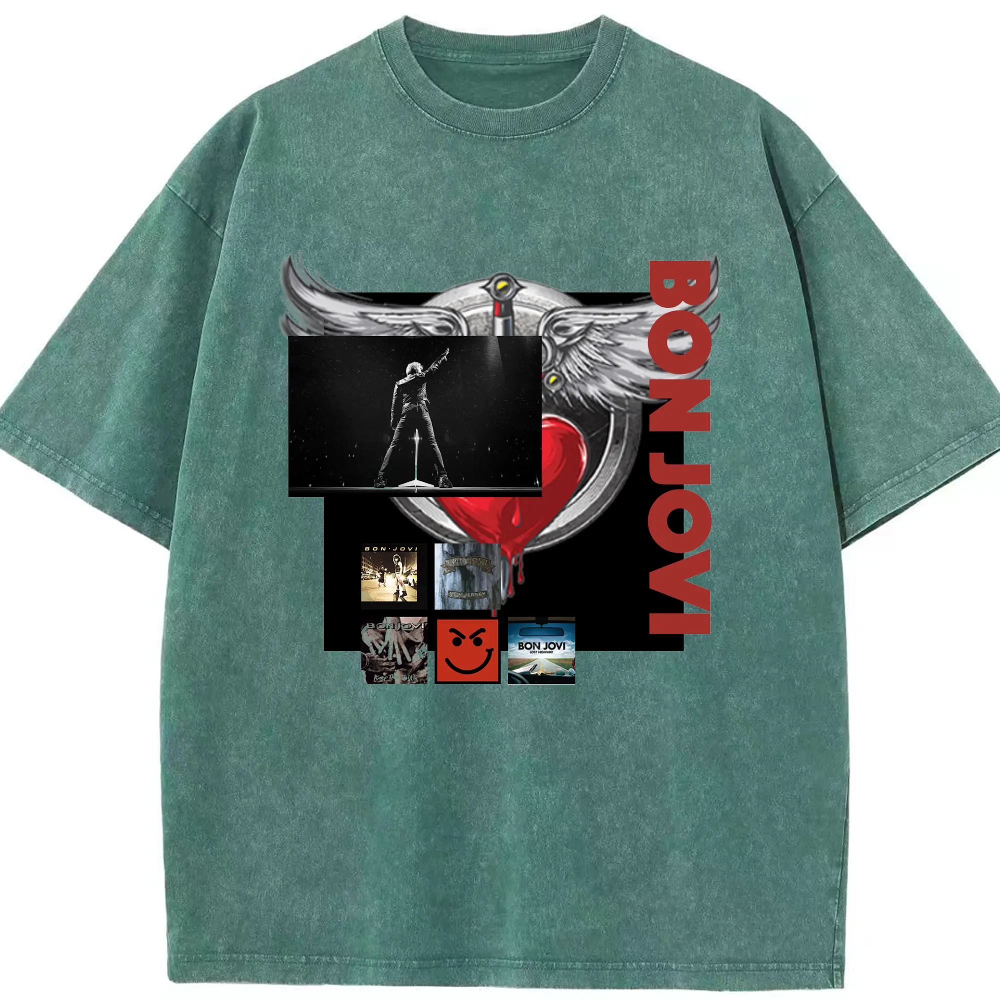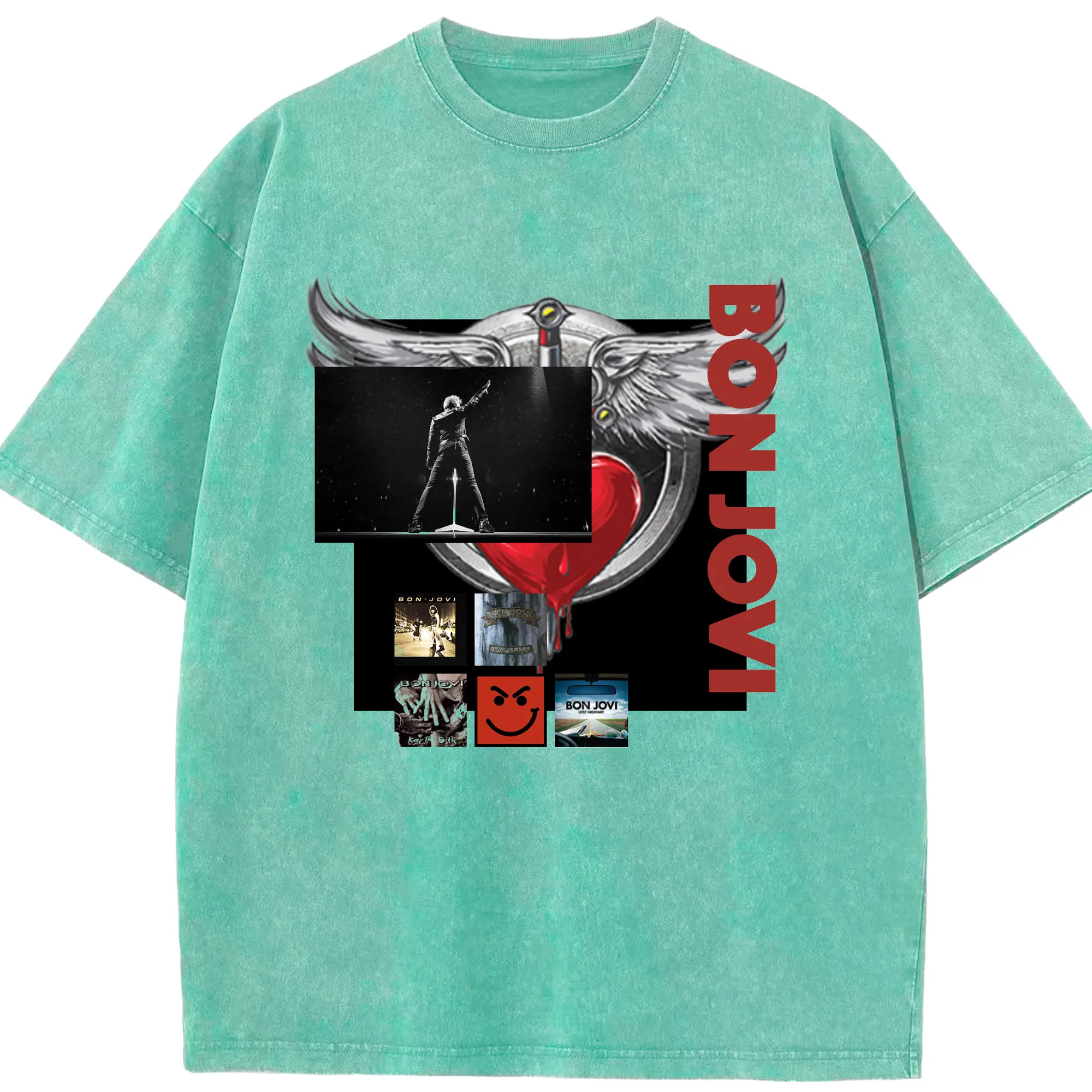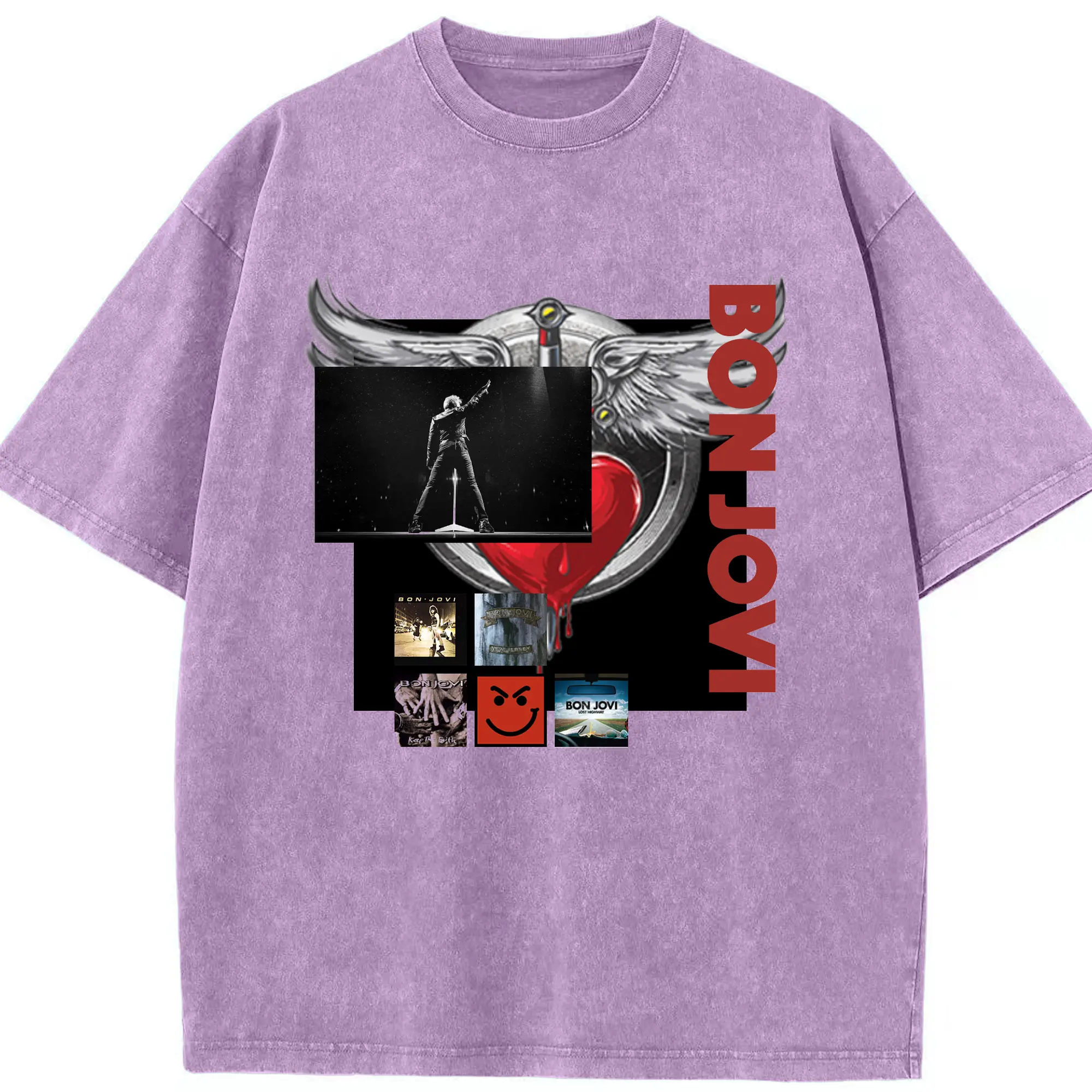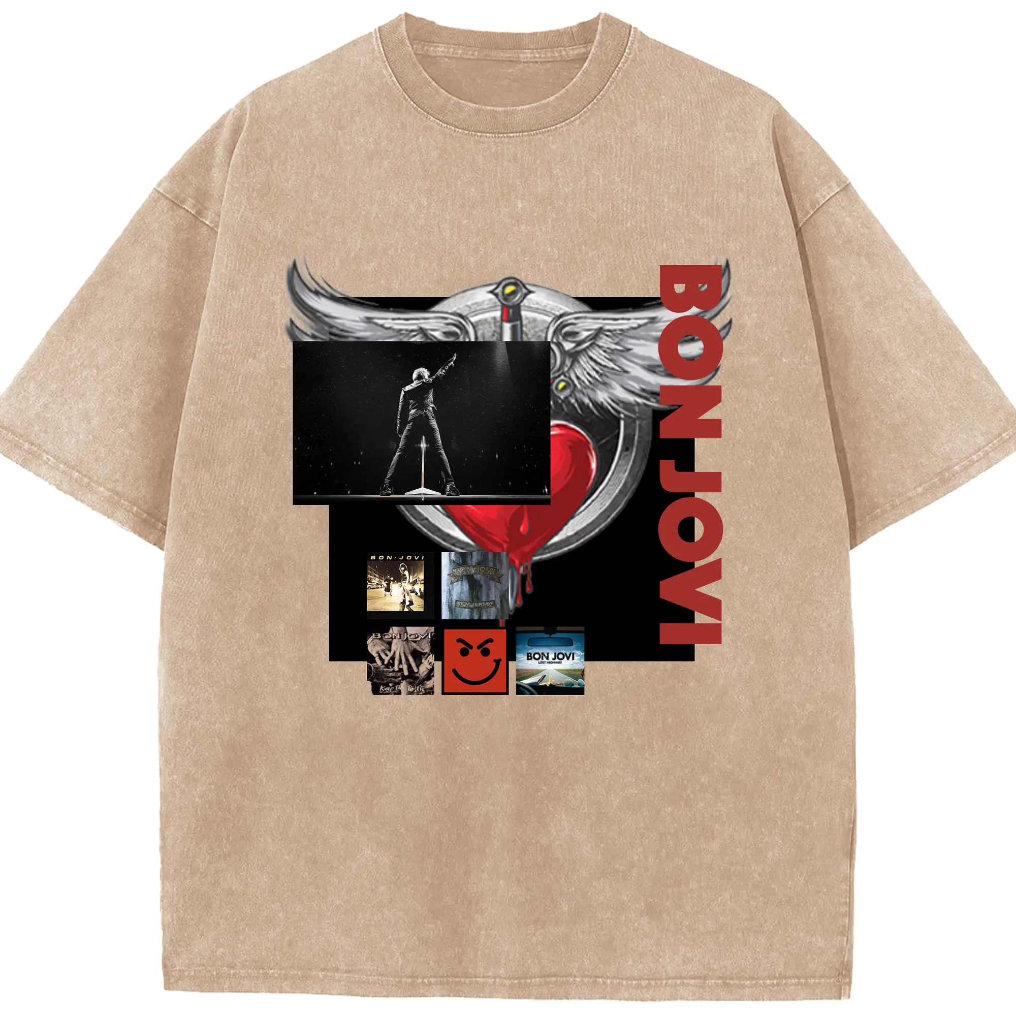 Bon Jovi Vintage Rock-Classic Album Art Shirt - Washed Vintage Look 230g Cotton Oversized T-Shirt With Front Heat Transfer Print – Soft, Lightweight, Stylish Fit – Comfortable Casual Wear For Sports & Everyday Use