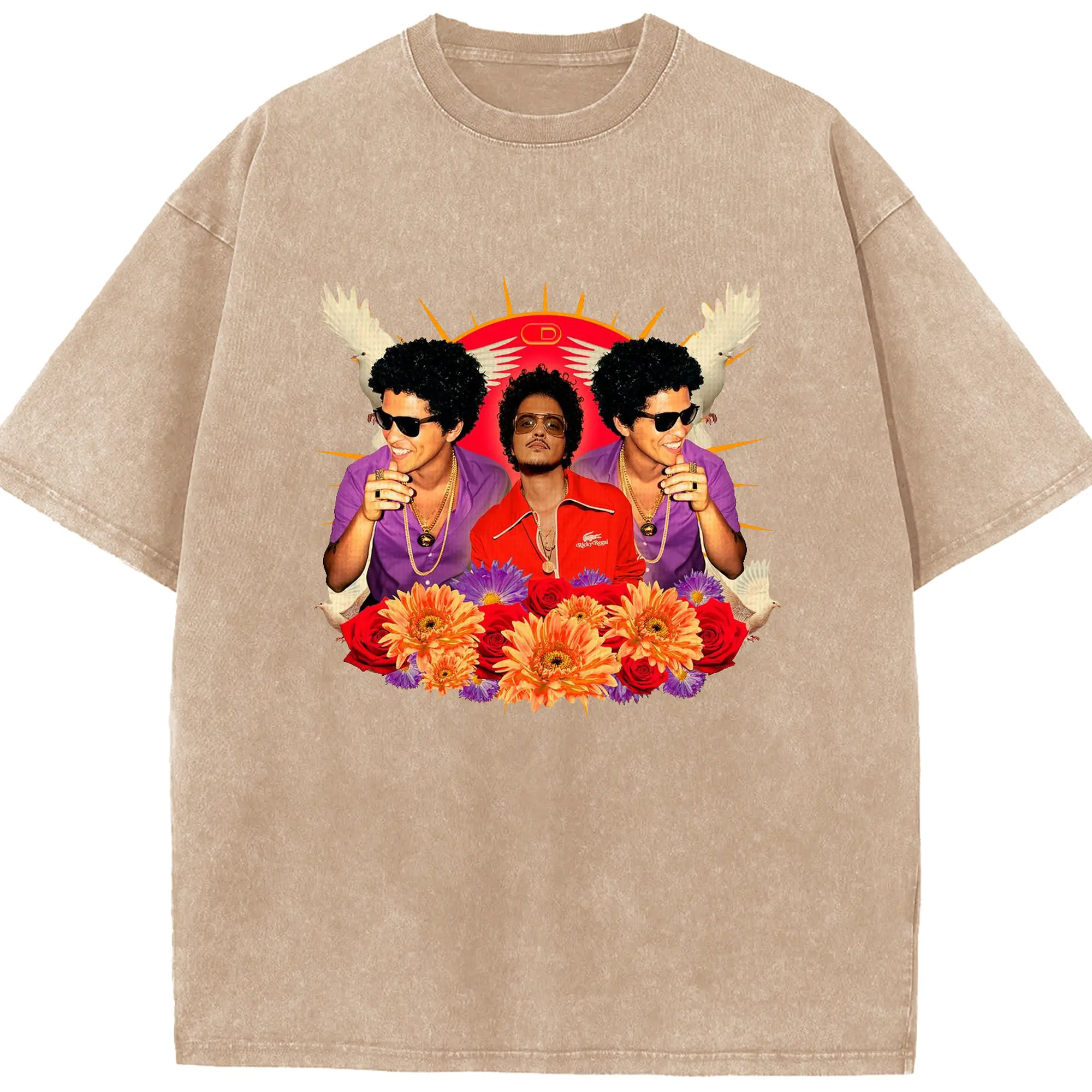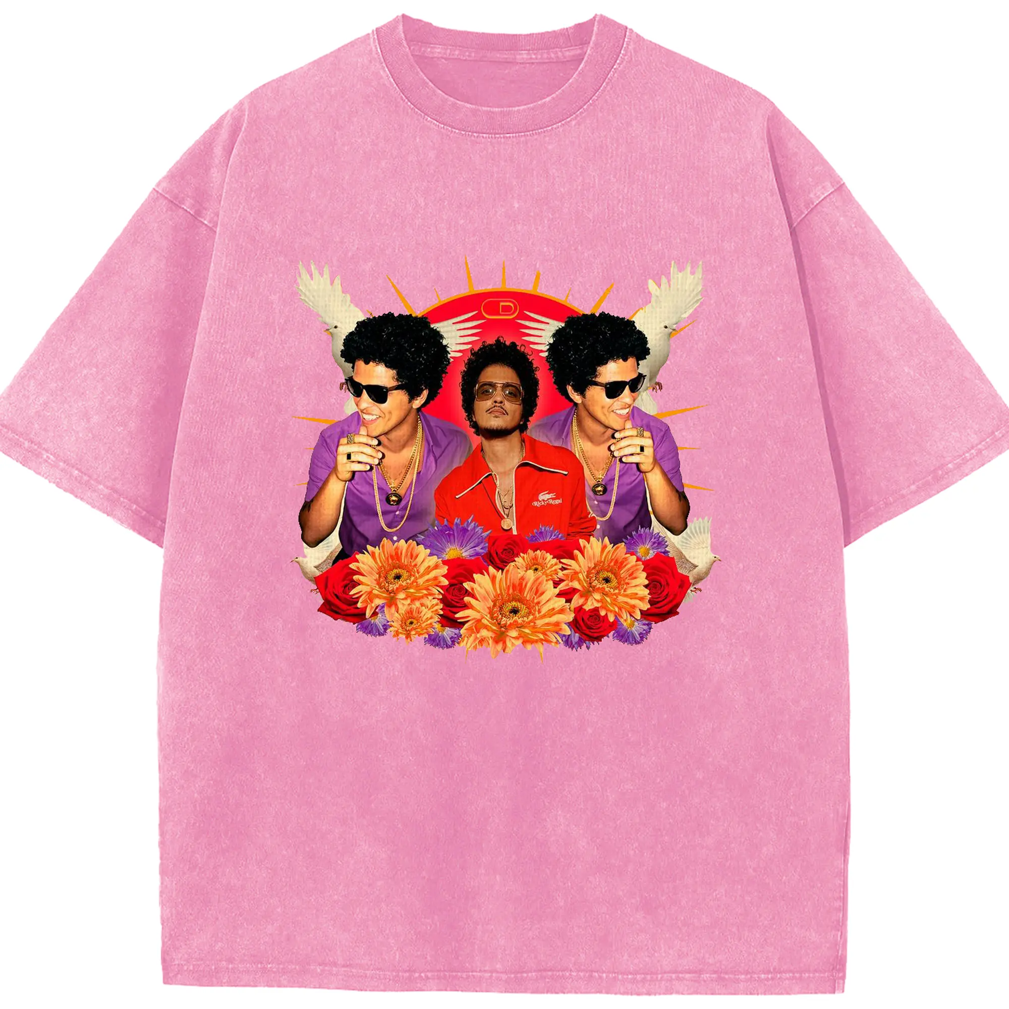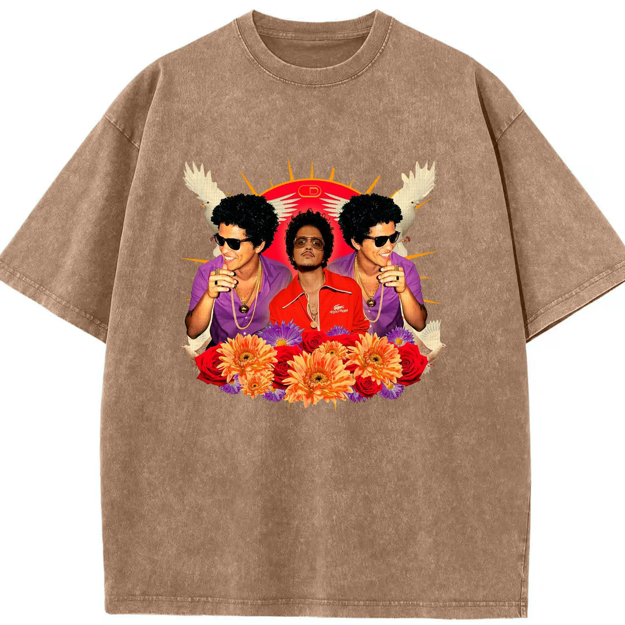 Bruno Mars Retro Funk Tropical DIY - Washed Vintage Look 230g Cotton Oversized T-Shirt With Front Heat Transfer Print – Soft, Lightweight, Stylish Fit – Comfortable Casual Wear For Sports & Everyday Use