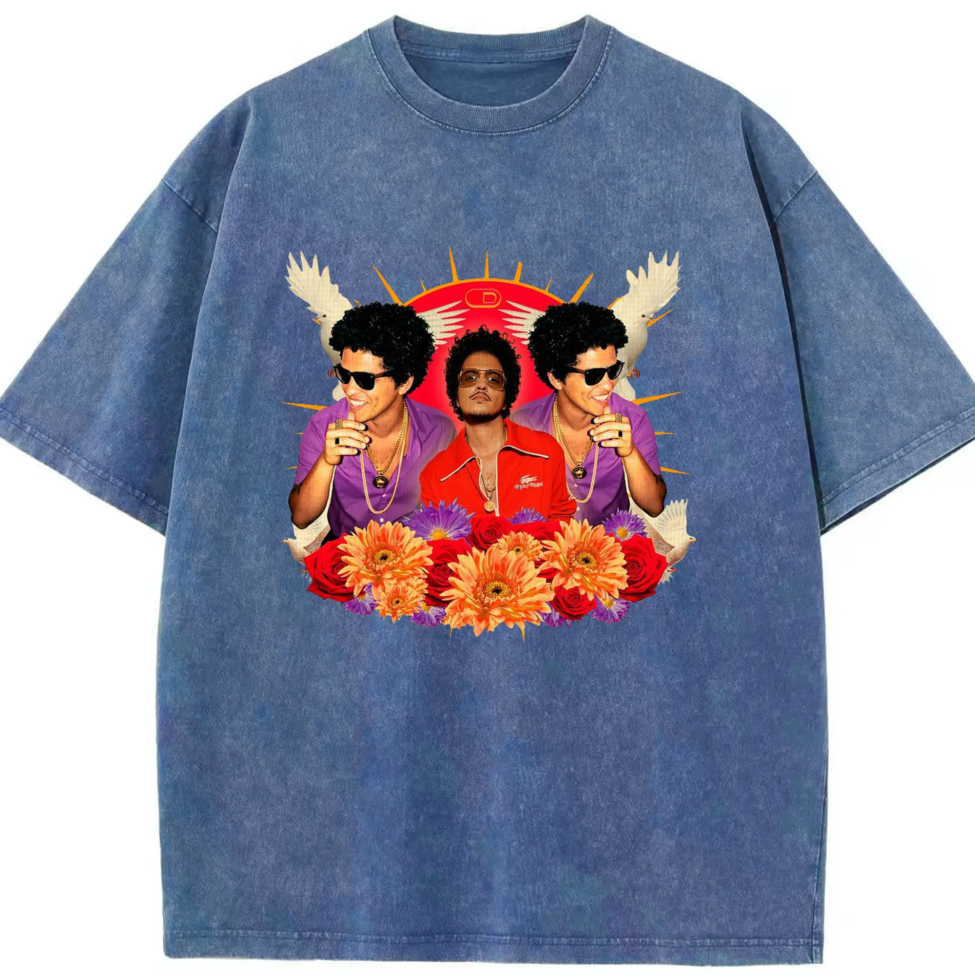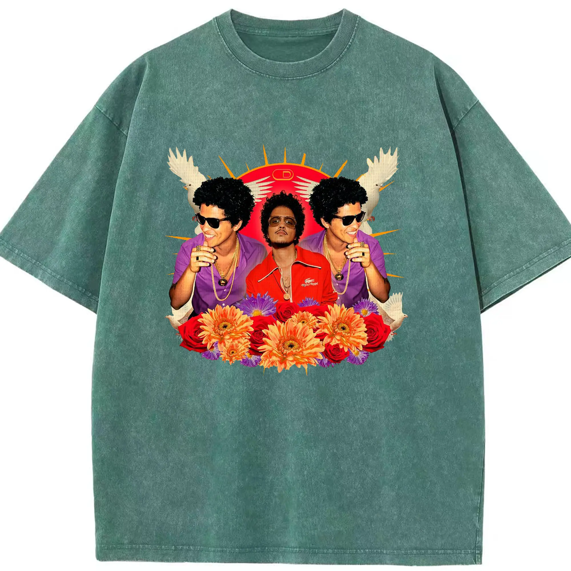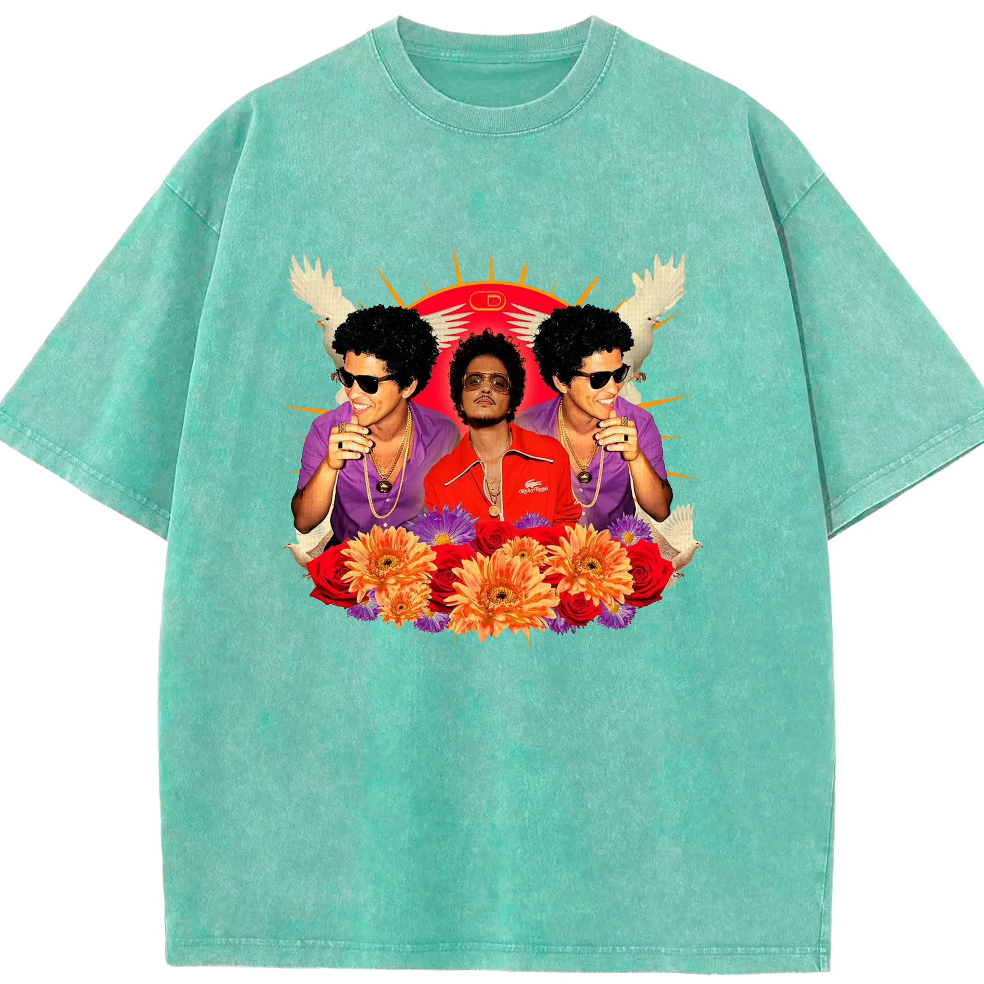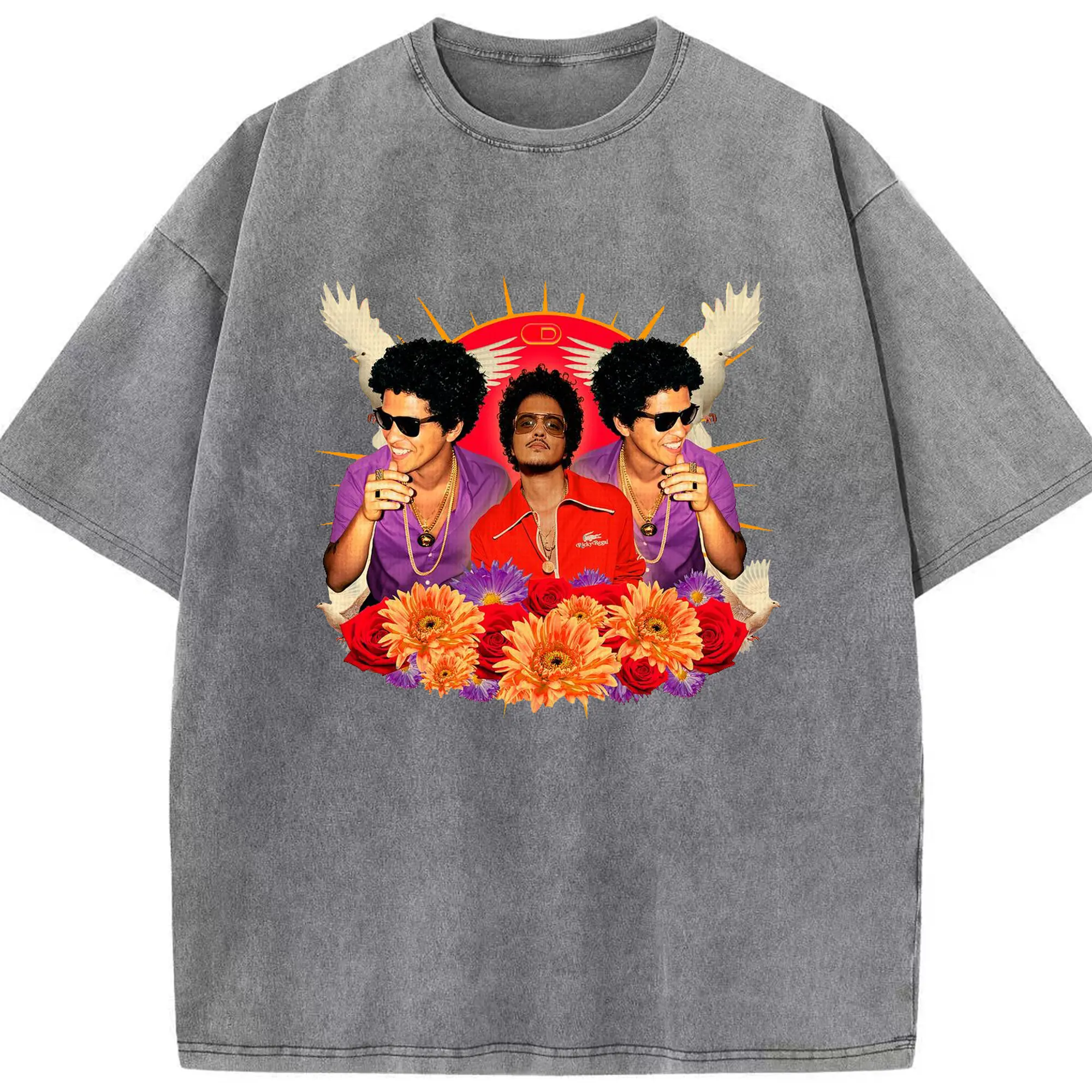 Bruno Mars Retro Funk Tropical DIY - Washed Vintage Look 230g Cotton Oversized T-Shirt With Front Heat Transfer Print – Soft, Lightweight, Stylish Fit – Comfortable Casual Wear For Sports & Everyday Use