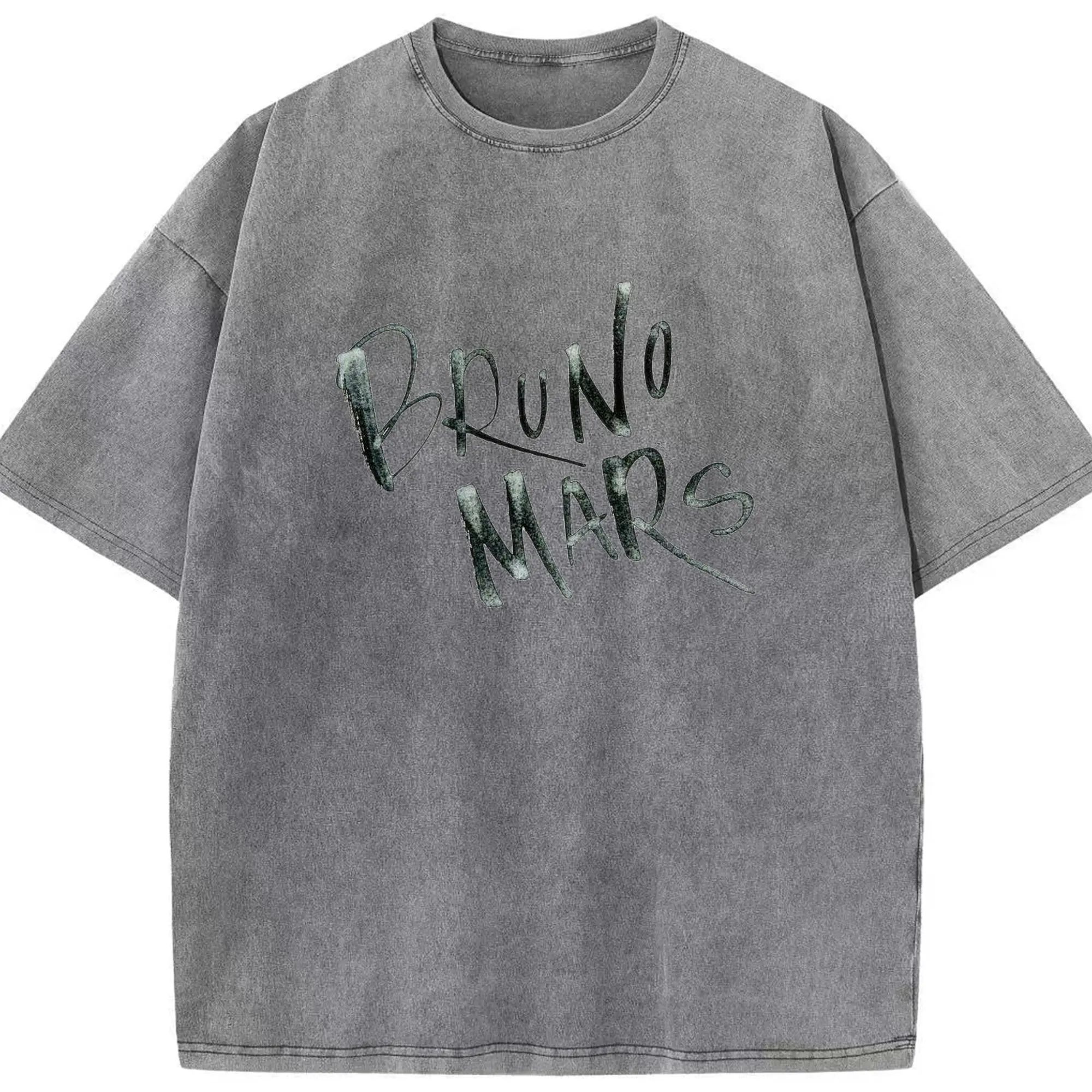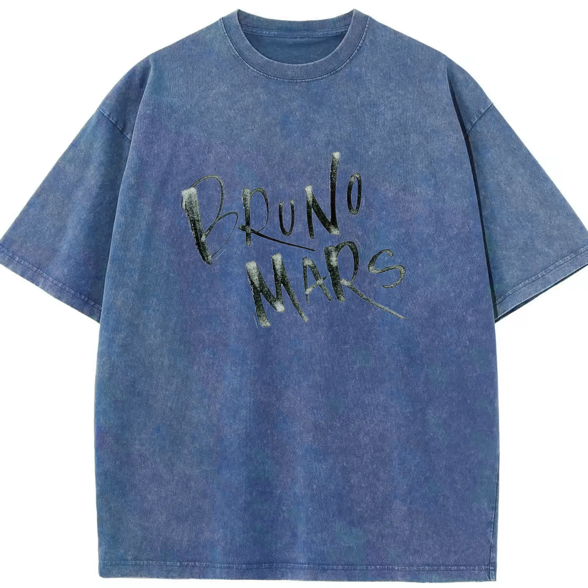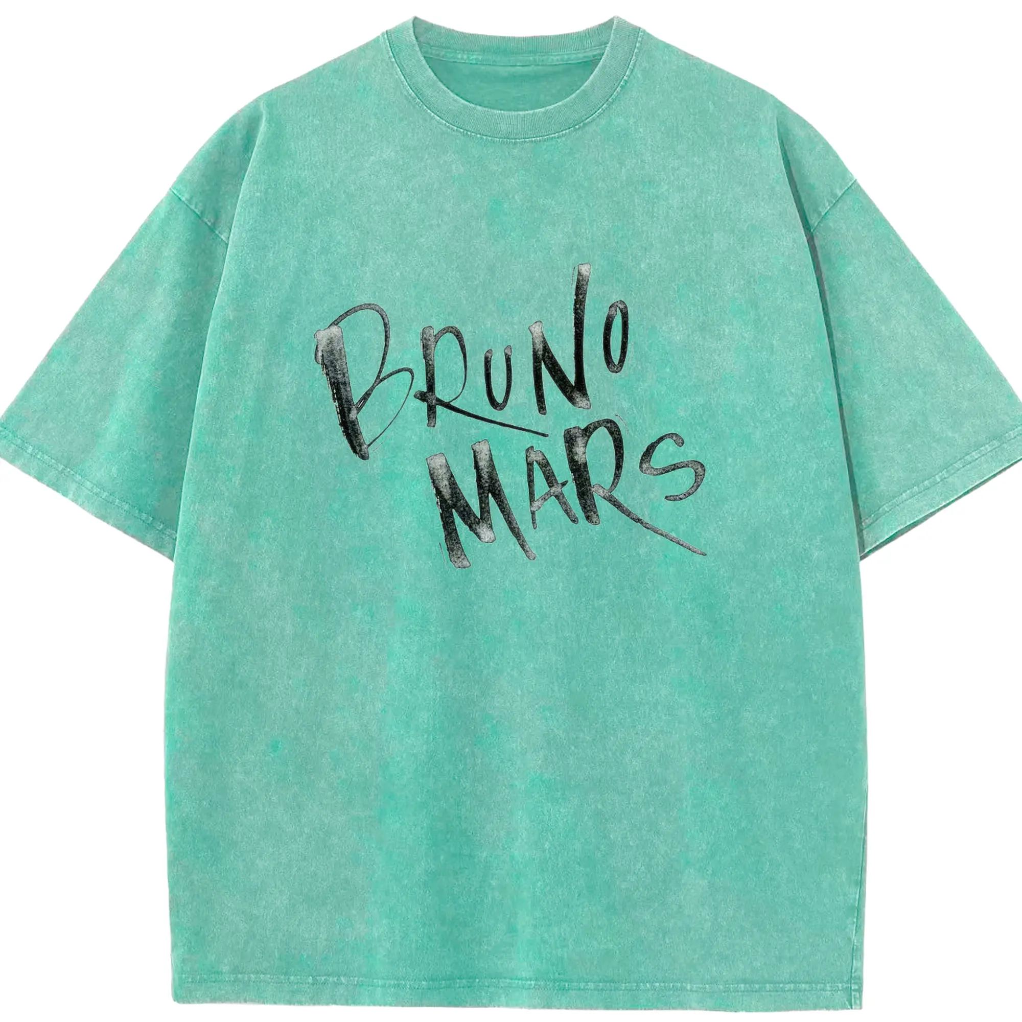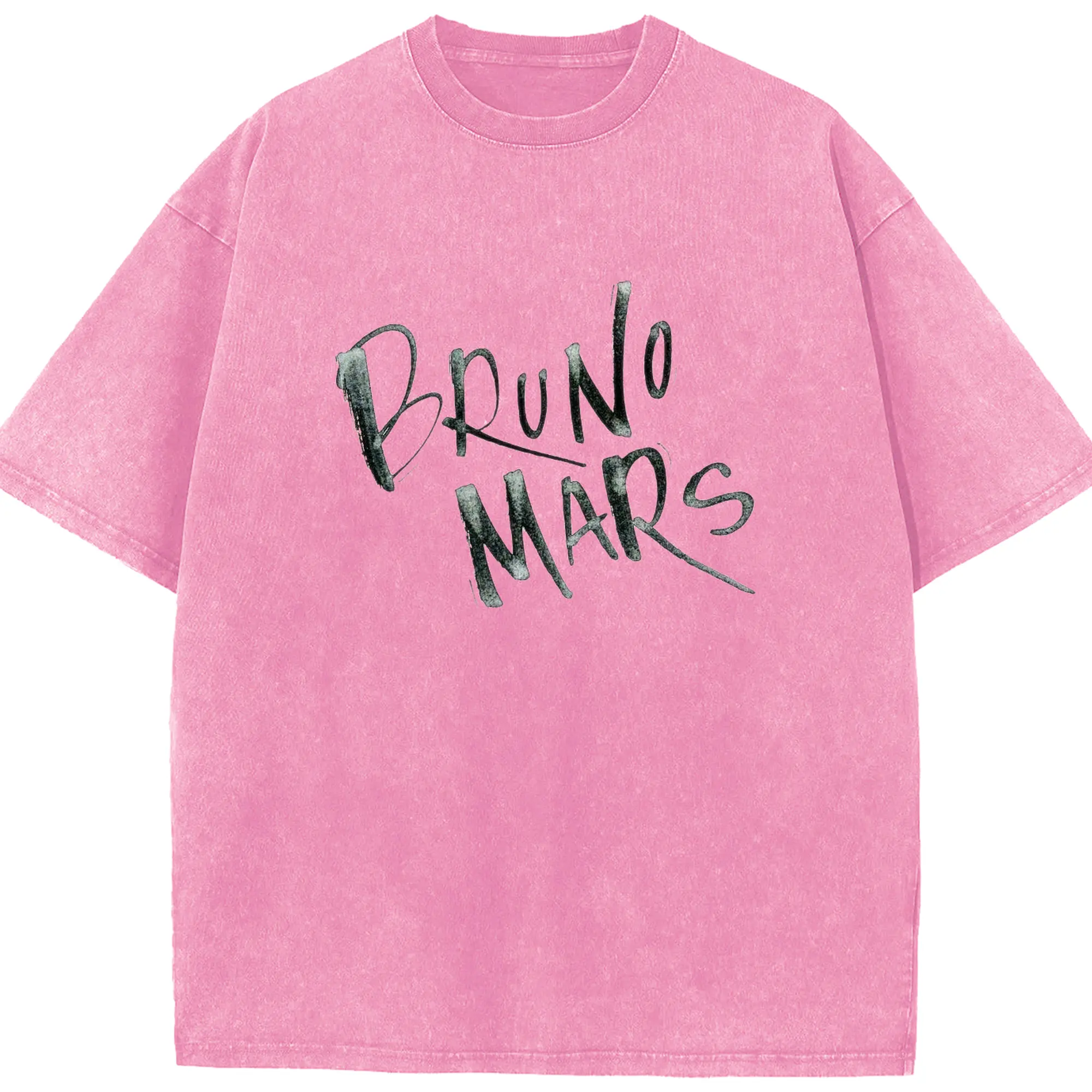 Bruno Mars Retro Handwritten Art DIY - Washed Vintage Look 230g Cotton Oversized T-Shirt With Front Heat Transfer Print – Soft, Lightweight, Stylish Fit – Comfortable Casual Wear For Sports & Everyday Use