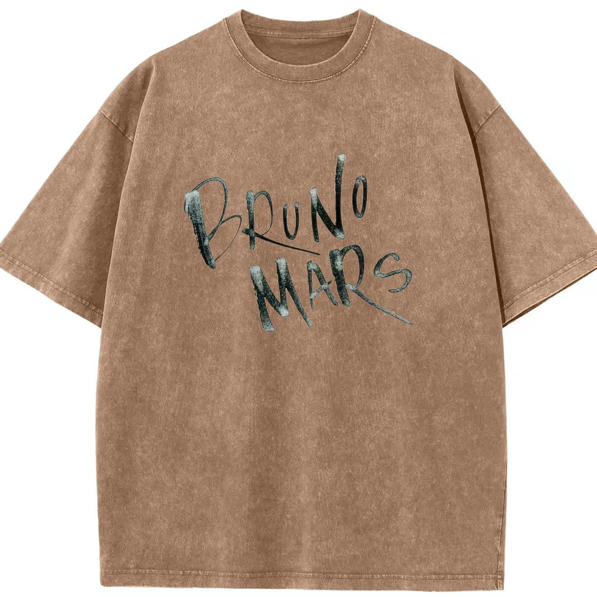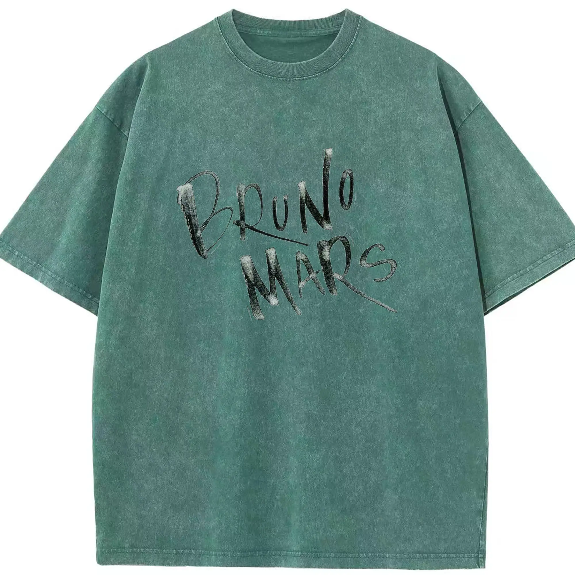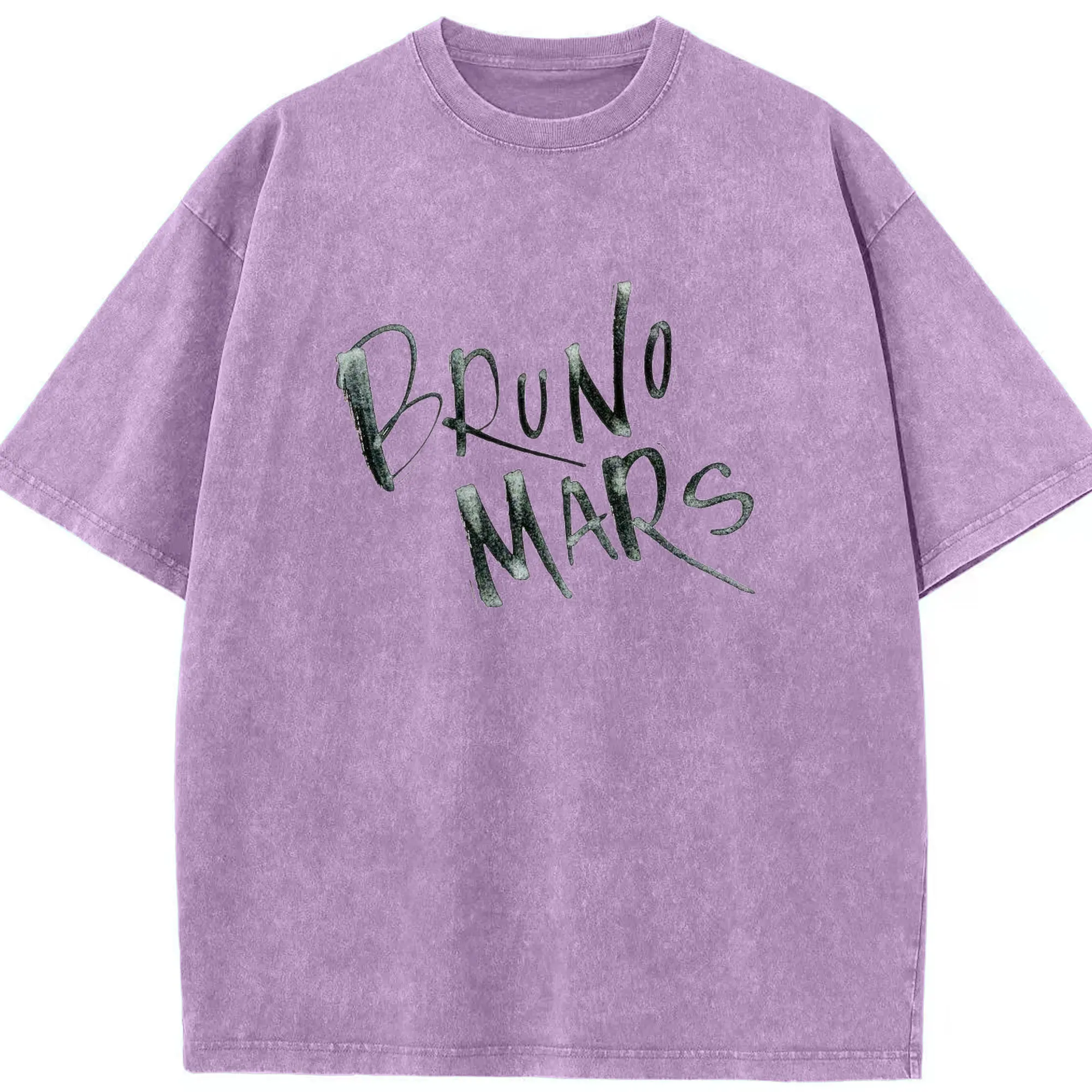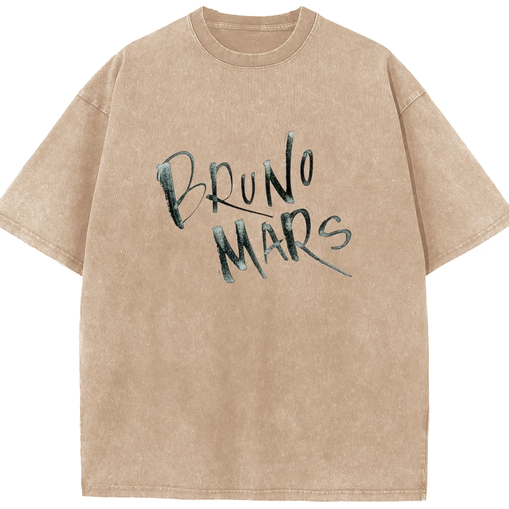 Bruno Mars Retro Handwritten Art DIY - Washed Vintage Look 230g Cotton Oversized T-Shirt With Front Heat Transfer Print – Soft, Lightweight, Stylish Fit – Comfortable Casual Wear For Sports & Everyday Use