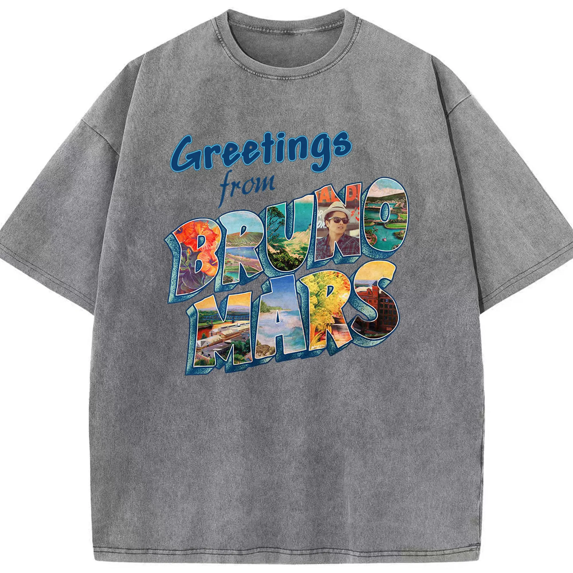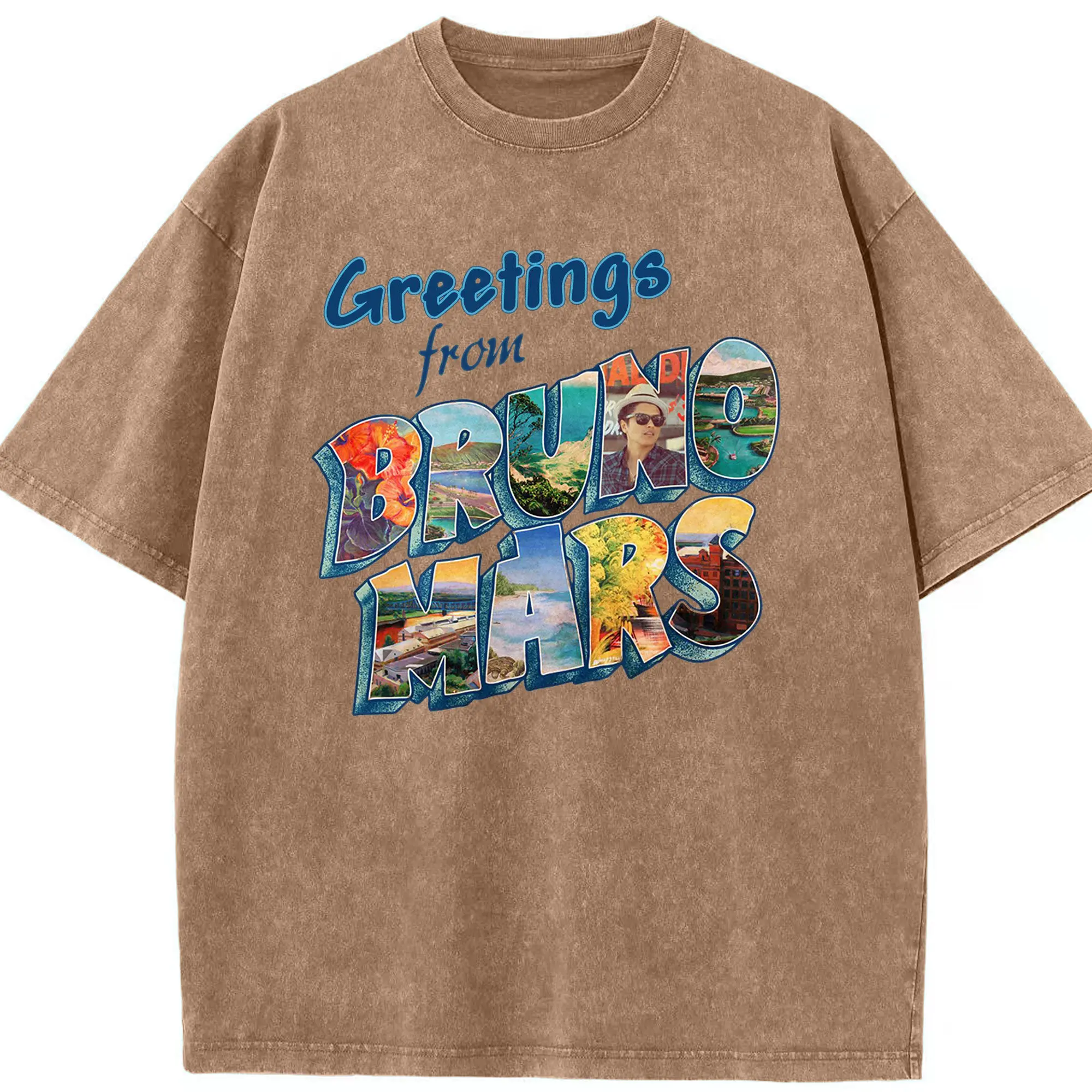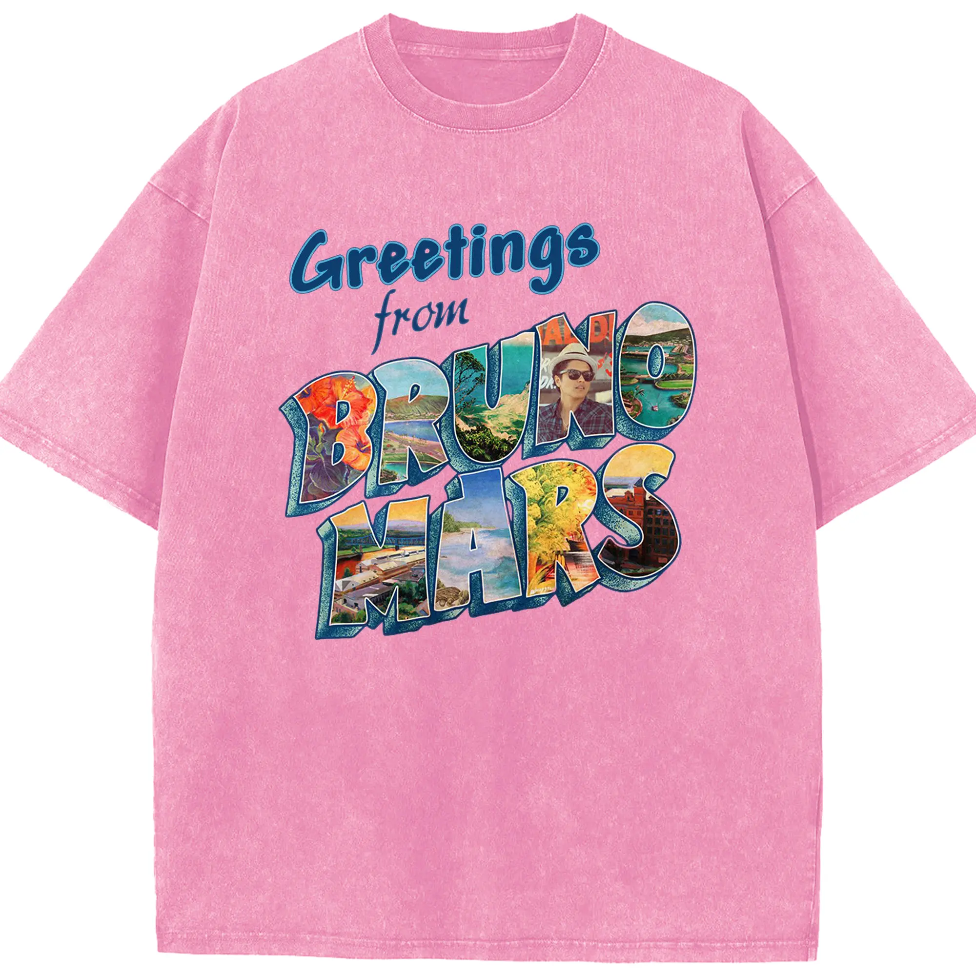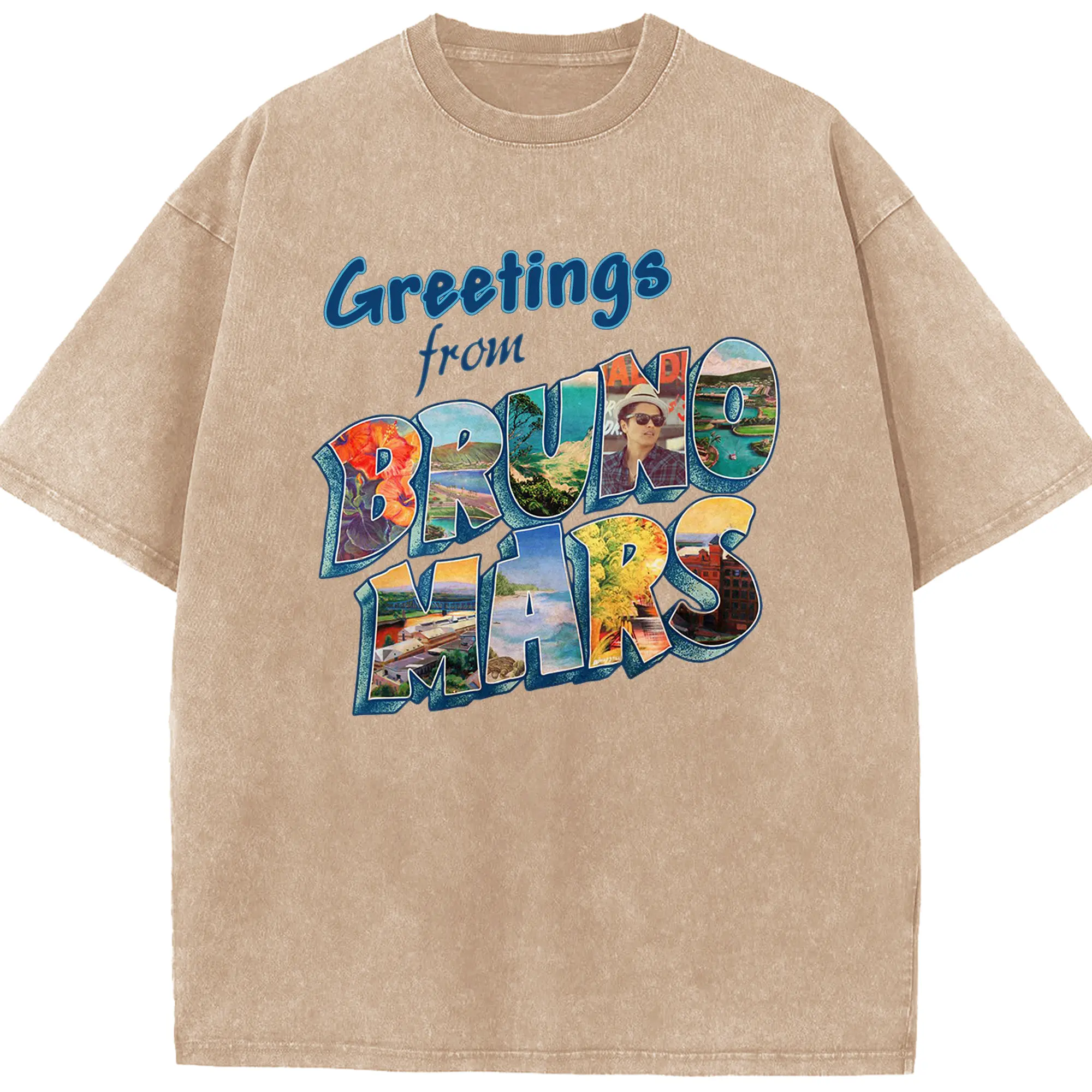 Bruno Mars Retro Travel Tropical DIY - Washed Vintage Look 230g Cotton Oversized T-Shirt With Front Heat Transfer Print – Soft, Lightweight, Stylish Fit – Comfortable Casual Wear For Sports & Everyday Use