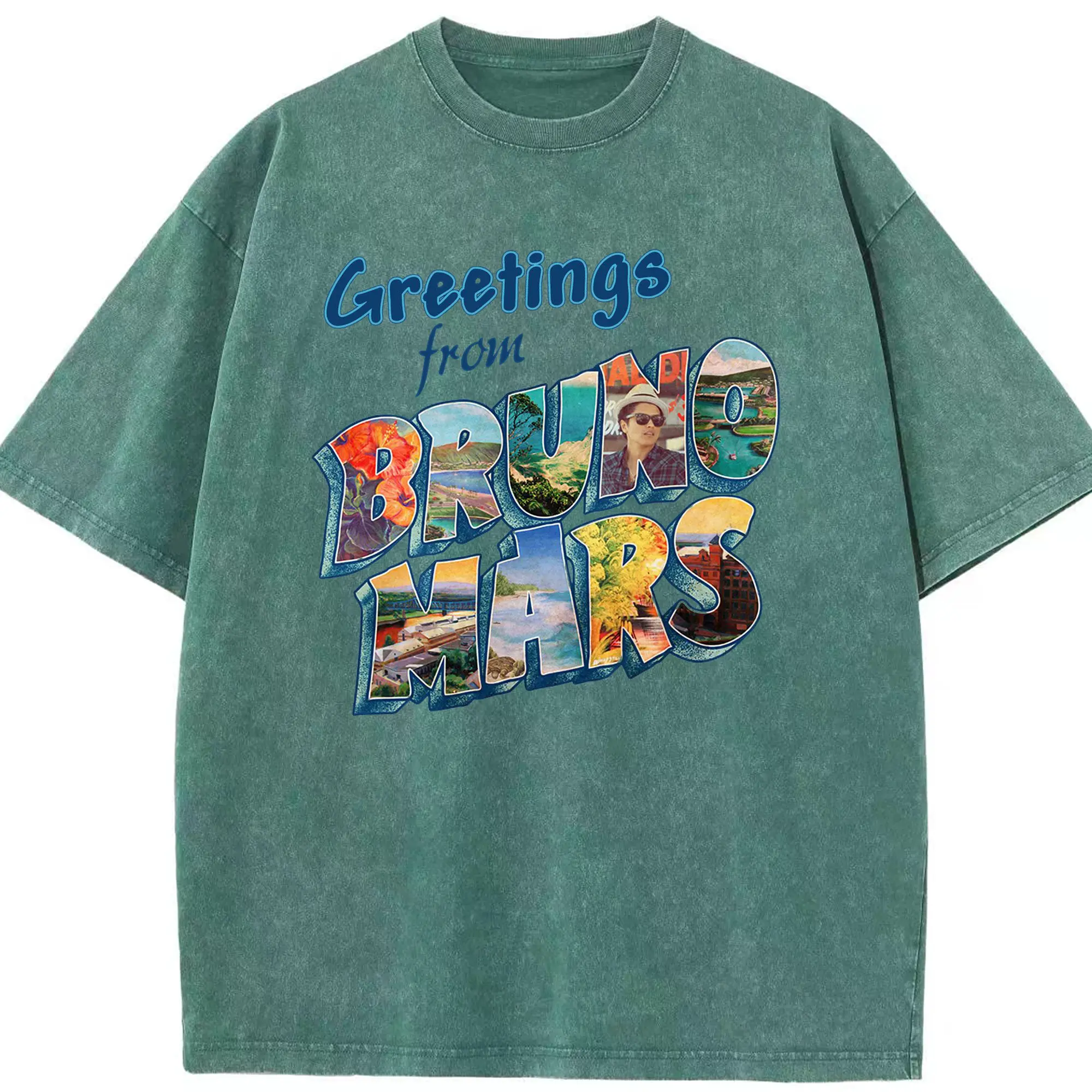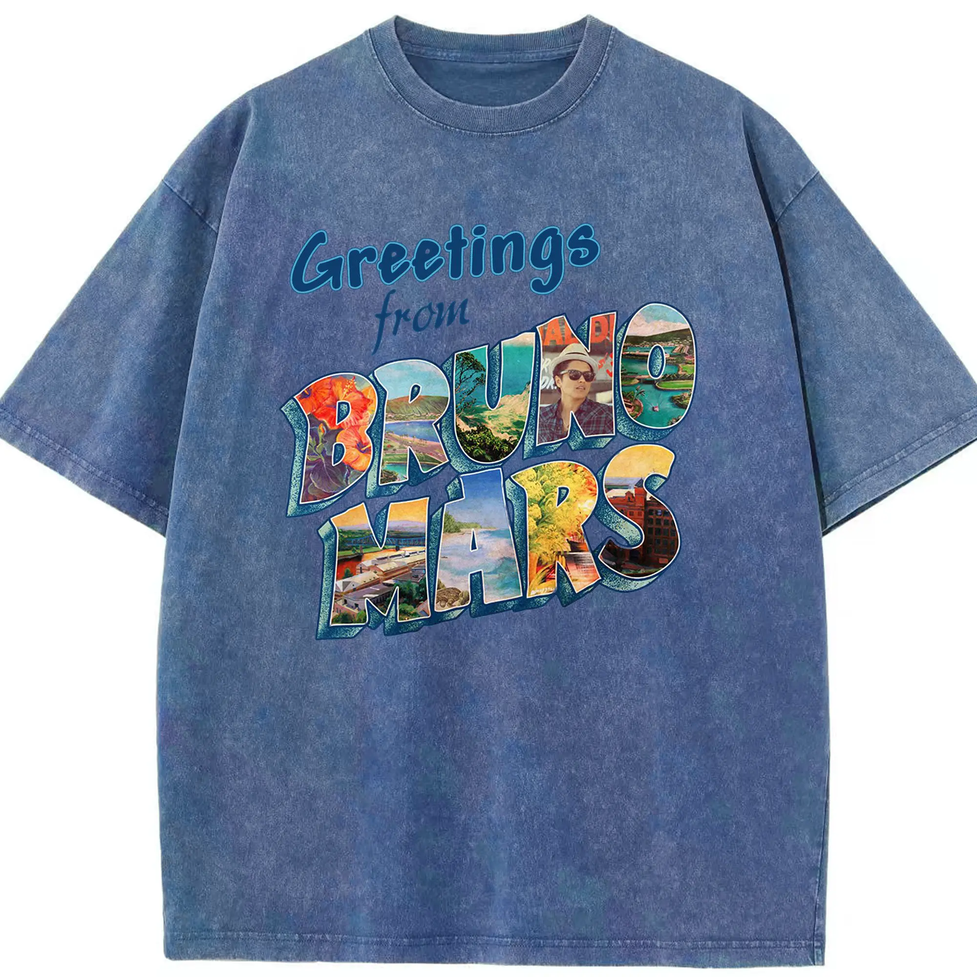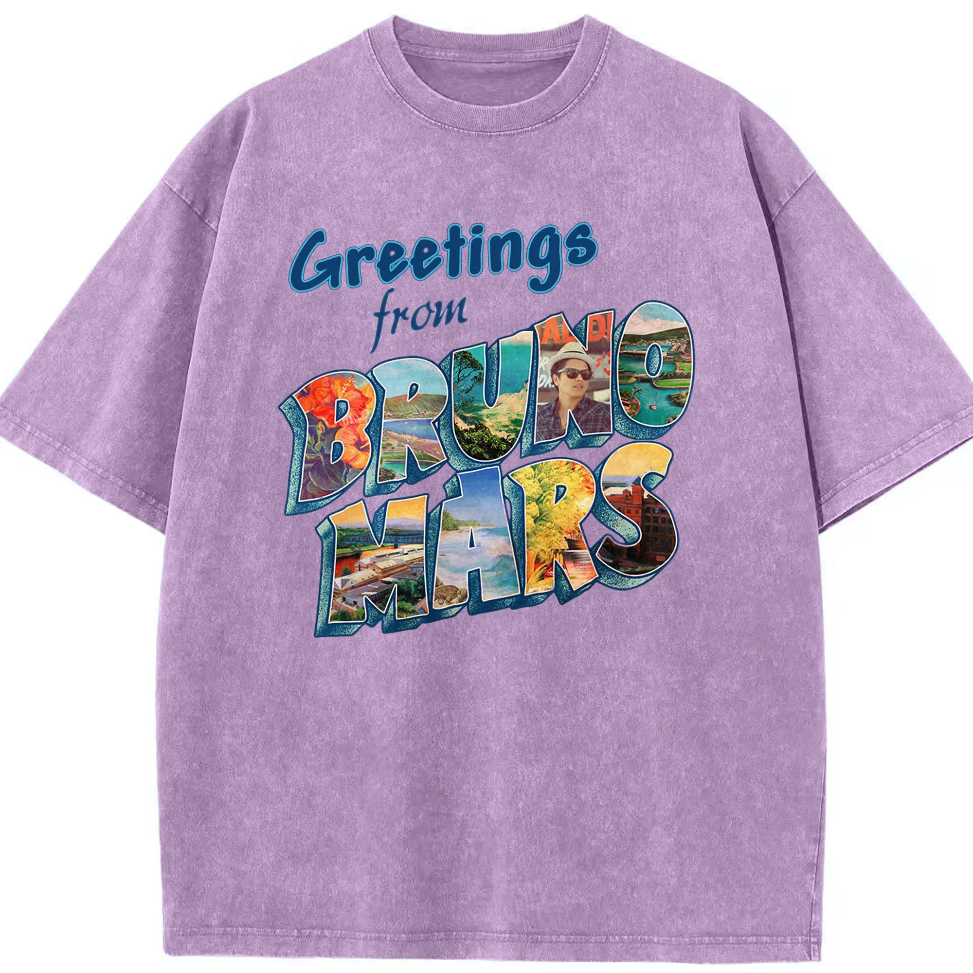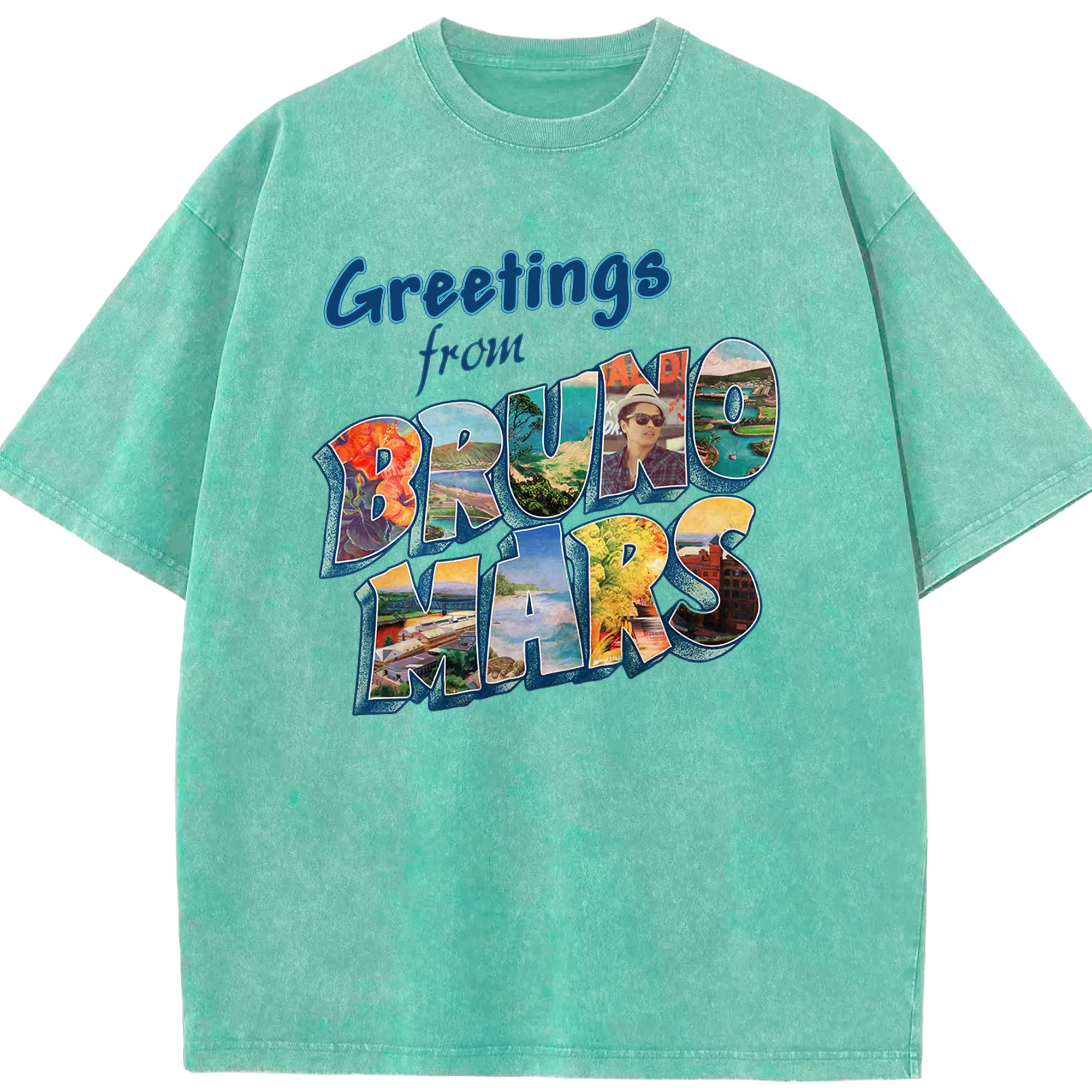 Bruno Mars Retro Travel Tropical DIY - Washed Vintage Look 230g Cotton Oversized T-Shirt With Front Heat Transfer Print – Soft, Lightweight, Stylish Fit – Comfortable Casual Wear For Sports & Everyday Use