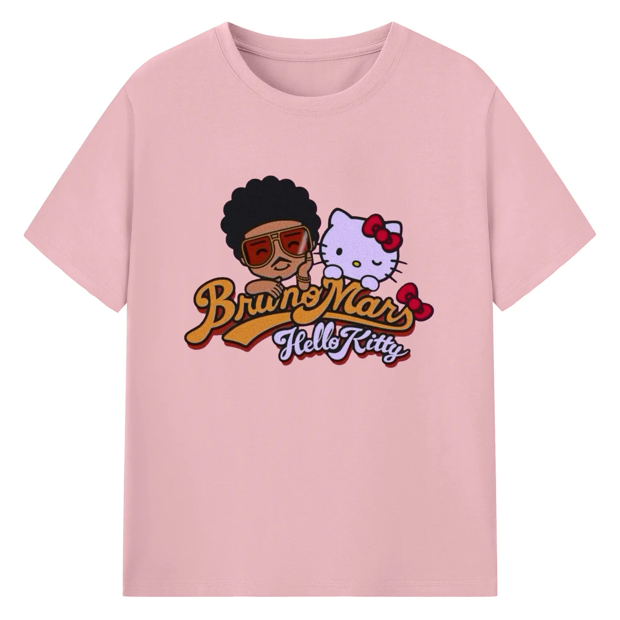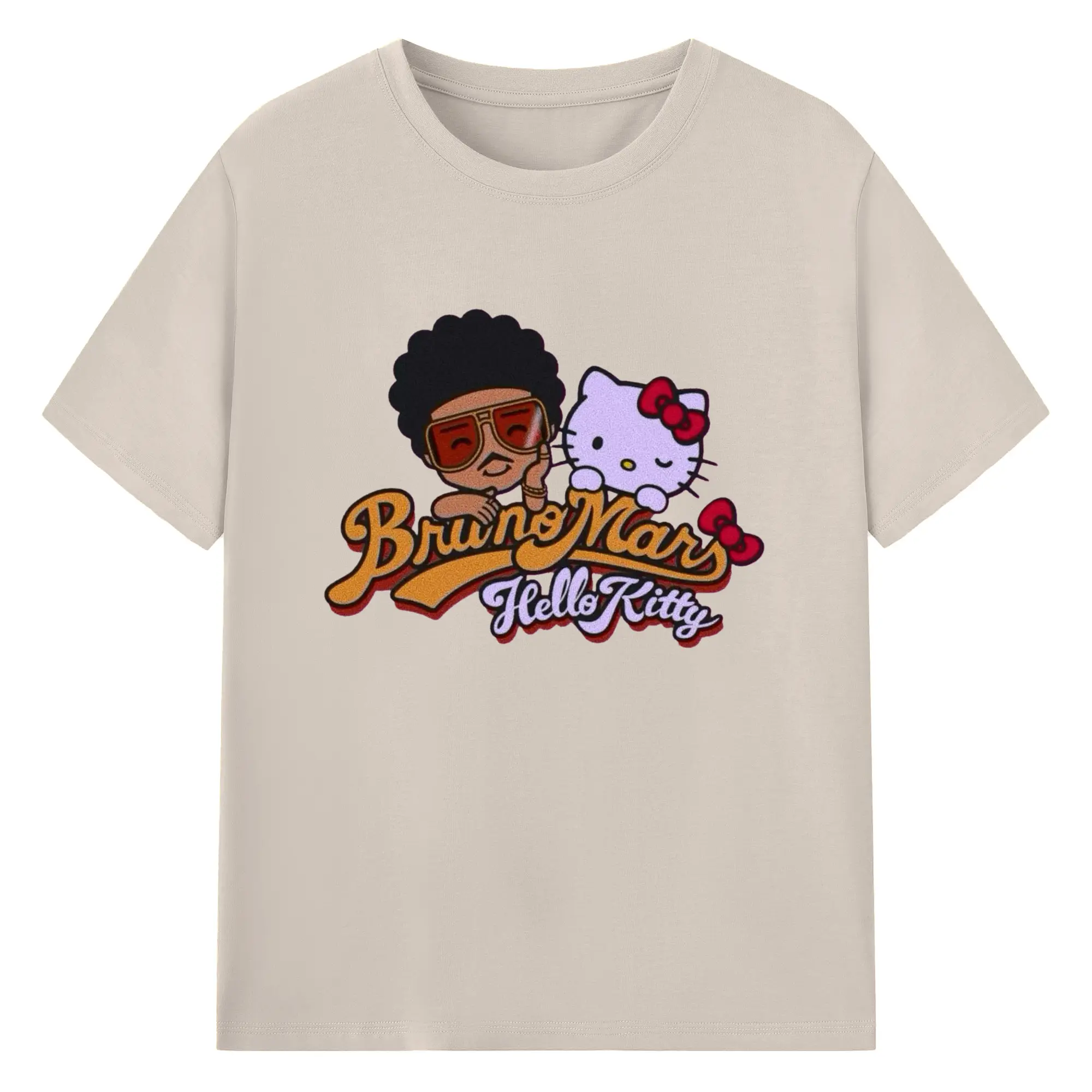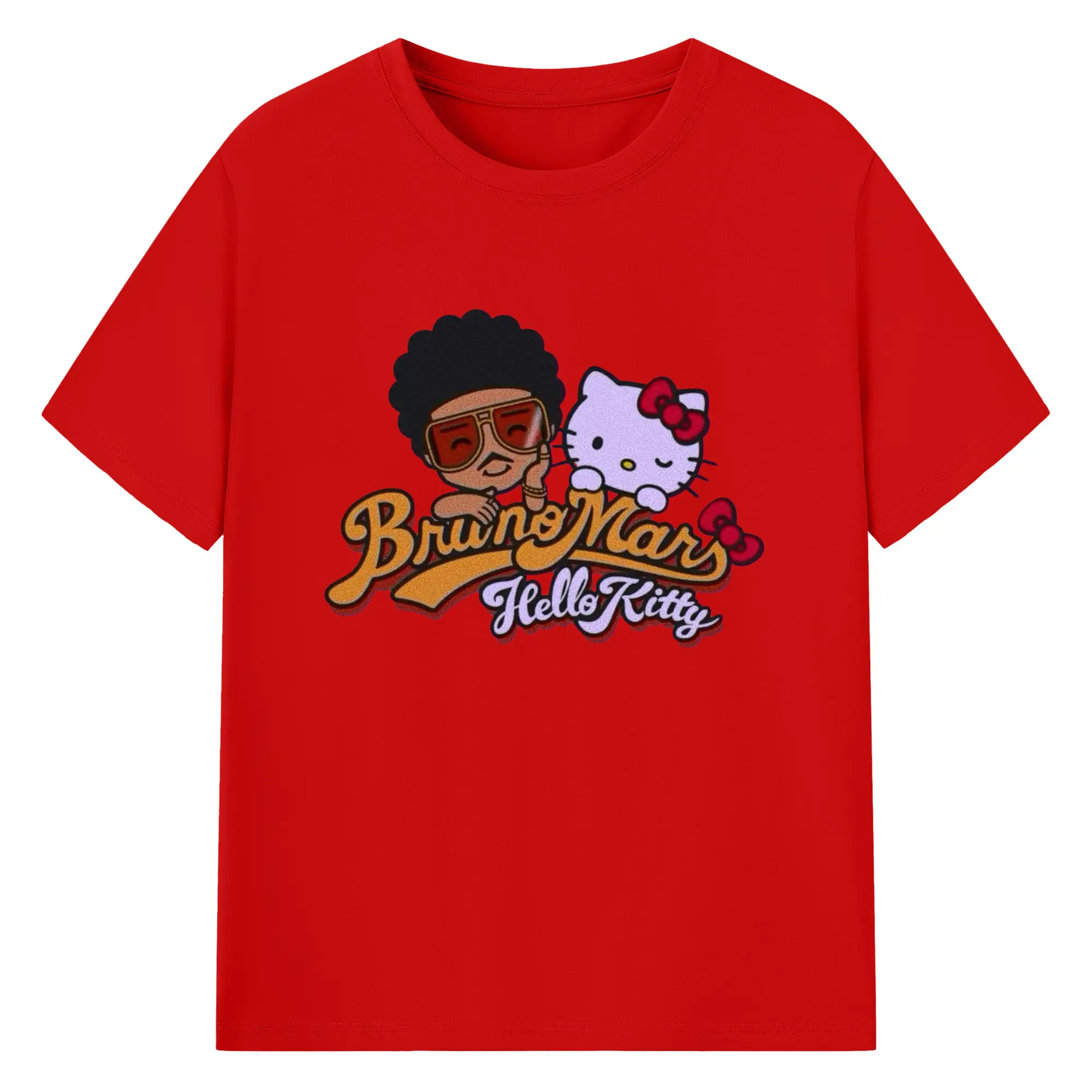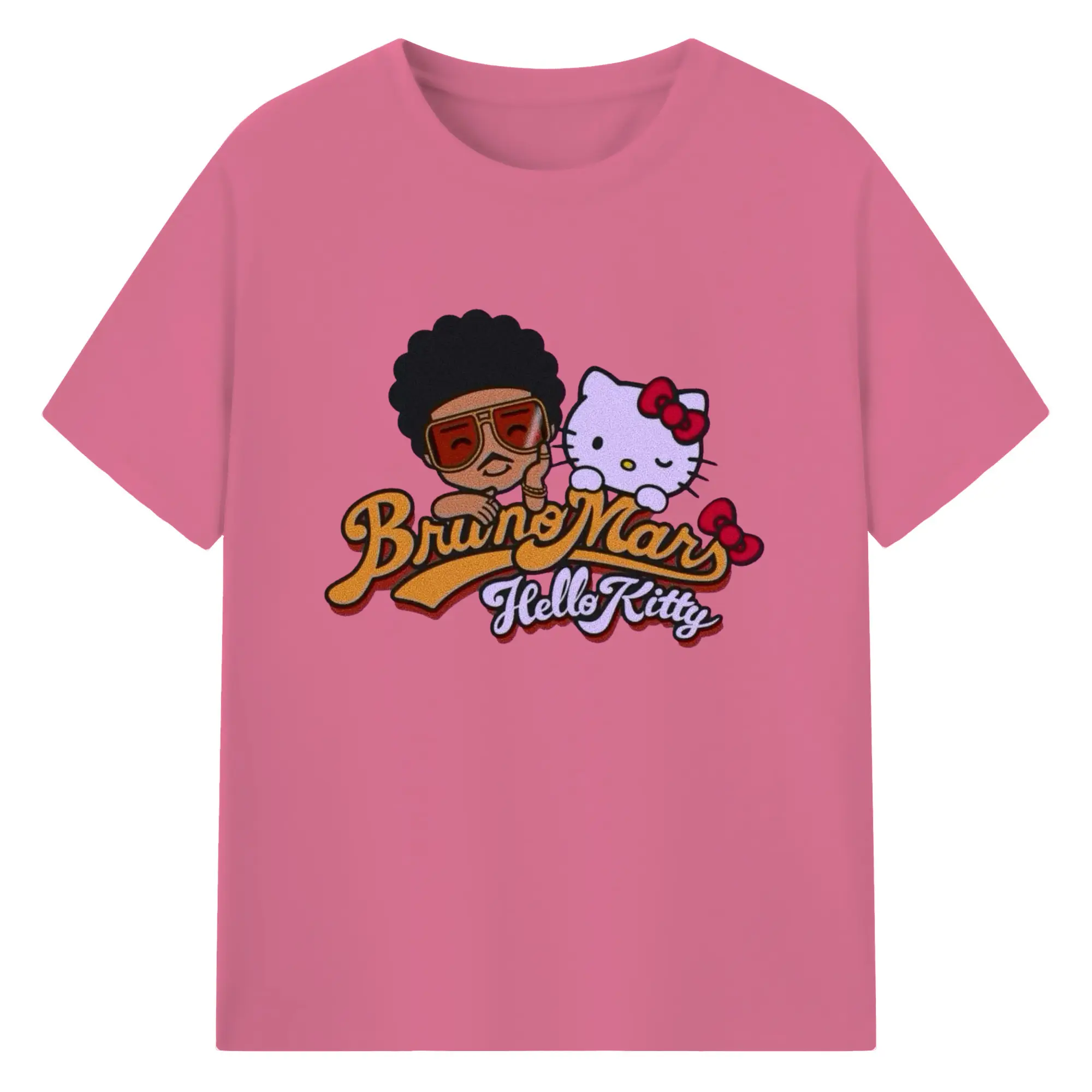 Bruno Mars x Hello Kitty Crossover DIY Shirt - 180g Cotton T-Shirt With Front Heat Transfer Print – Soft, Lightweight, Fitted Design – Comfortable Casual Wear For Sports & Everyday Use