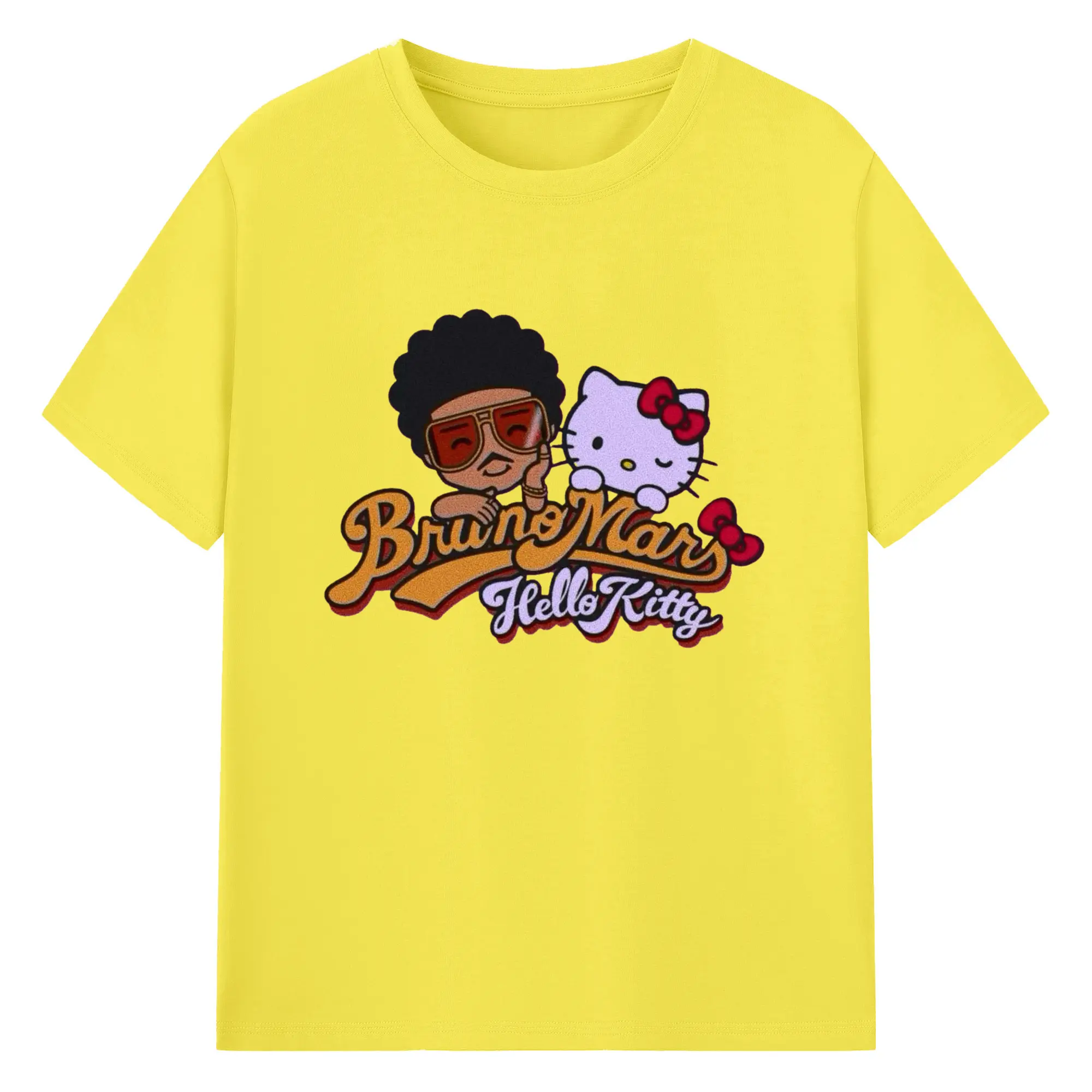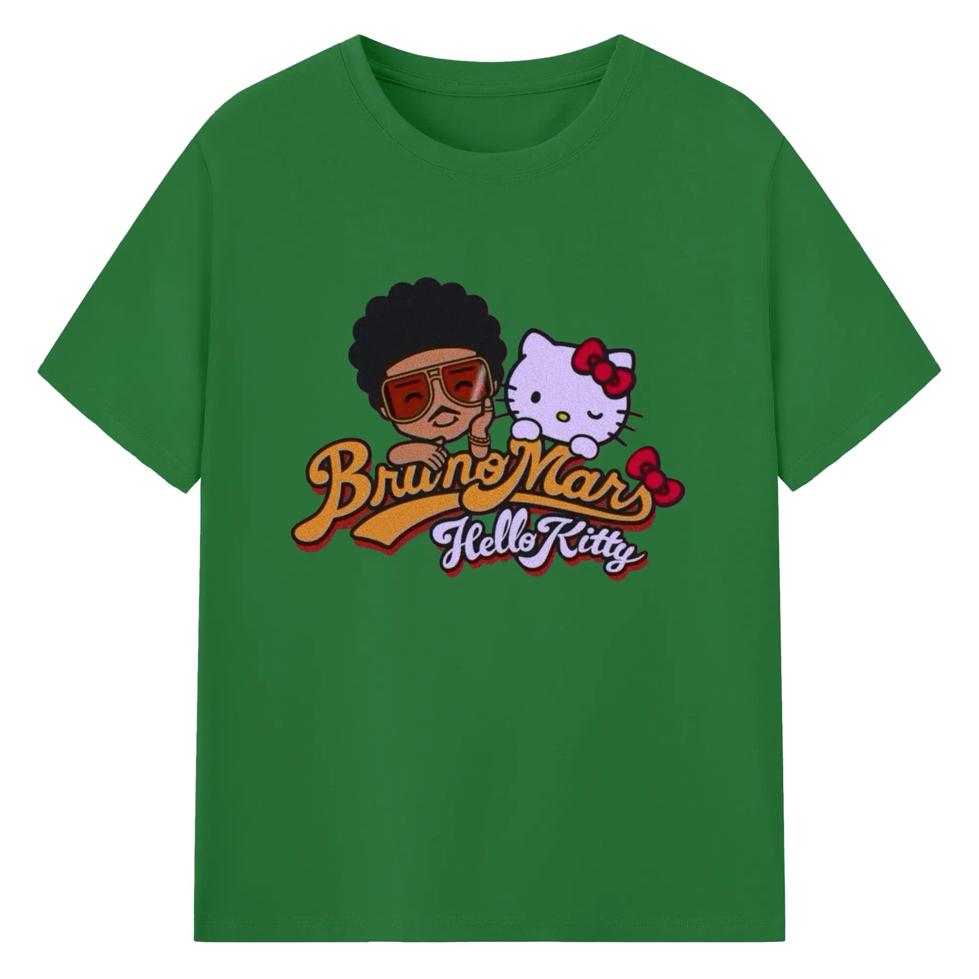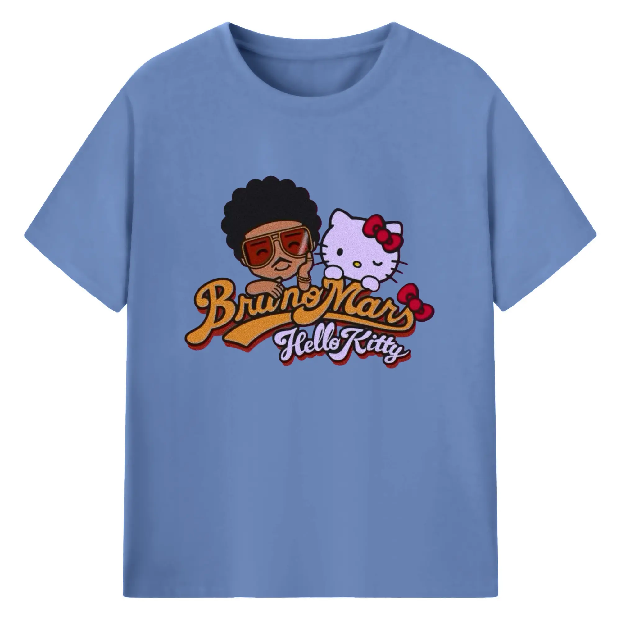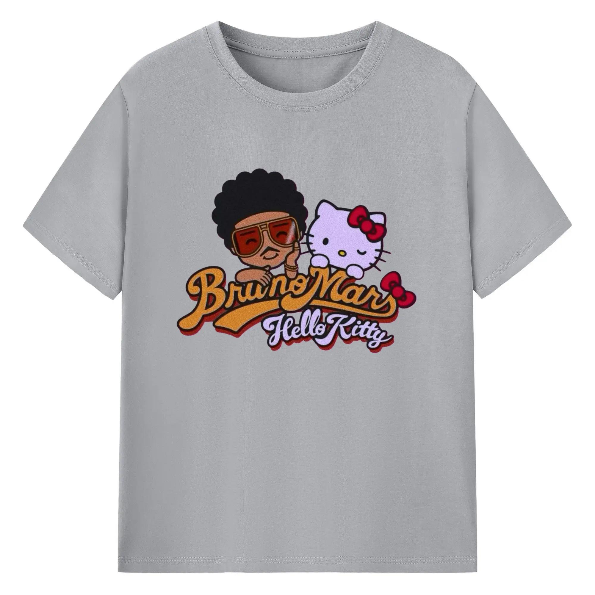 Bruno Mars x Hello Kitty Crossover DIY Shirt - 180g Cotton T-Shirt With Front Heat Transfer Print – Soft, Lightweight, Fitted Design – Comfortable Casual Wear For Sports & Everyday Use