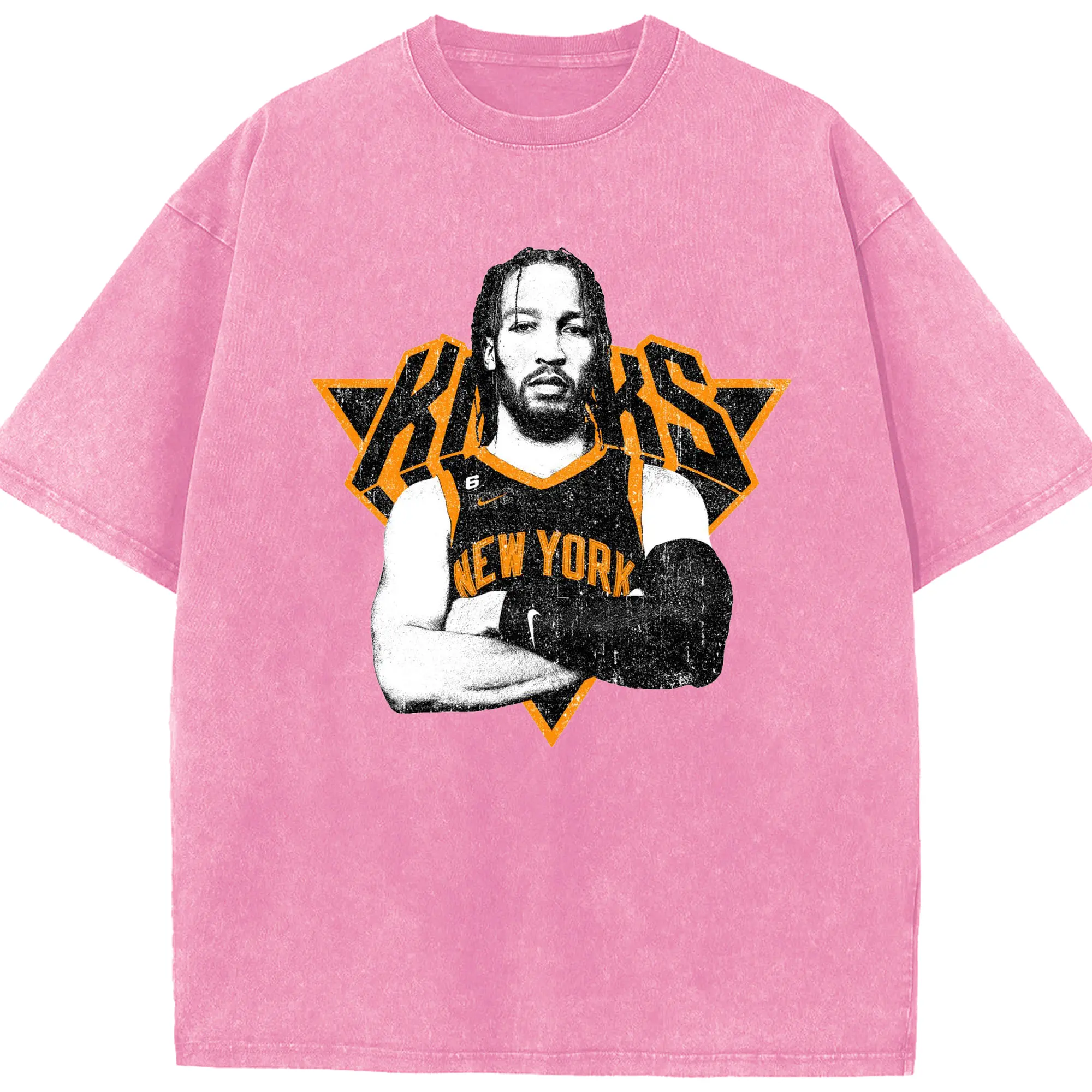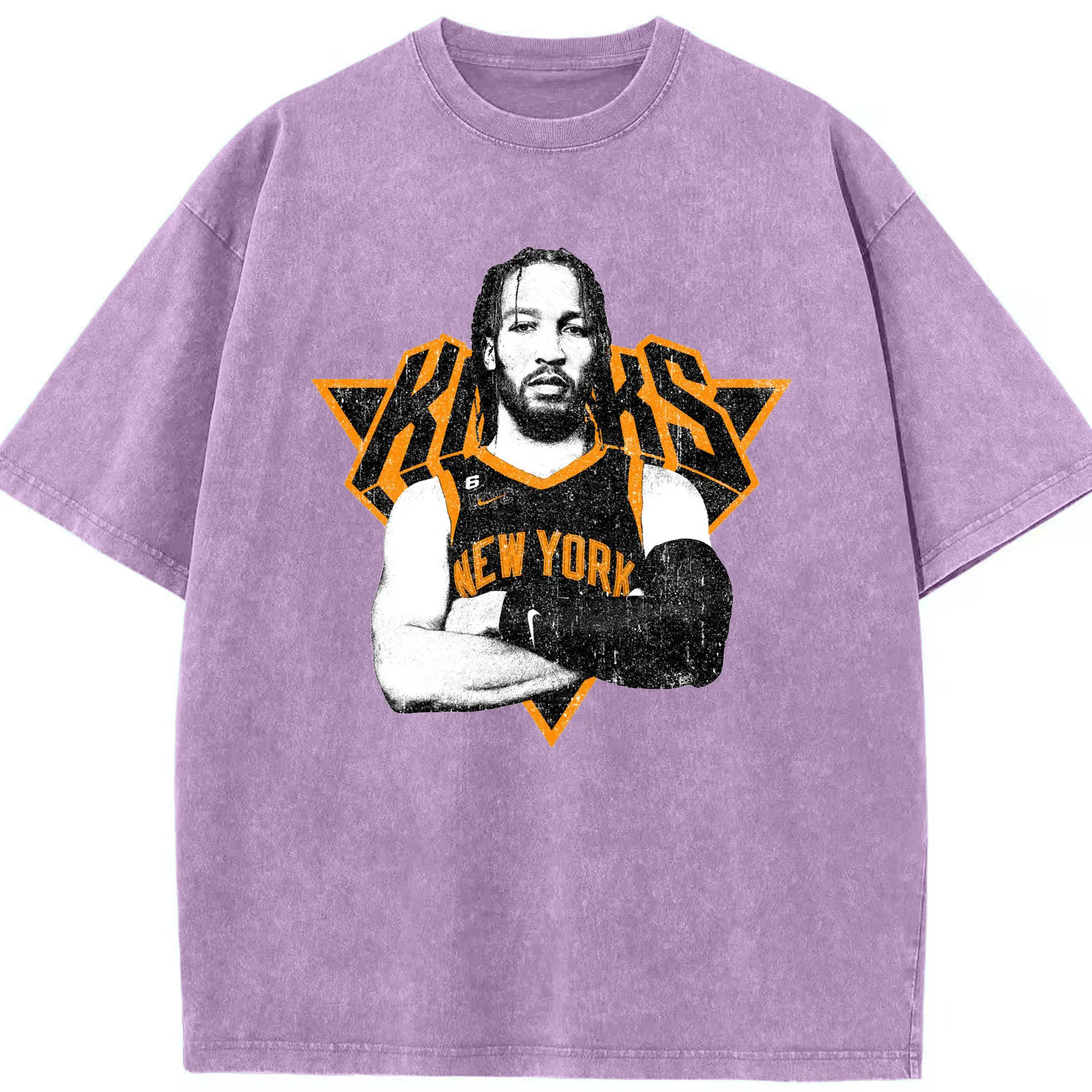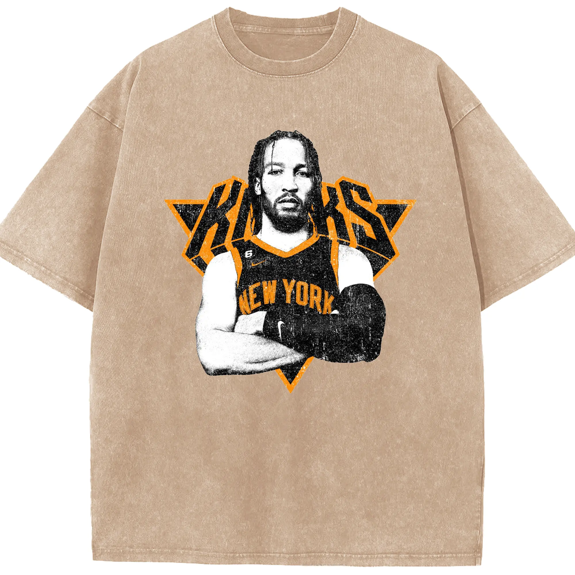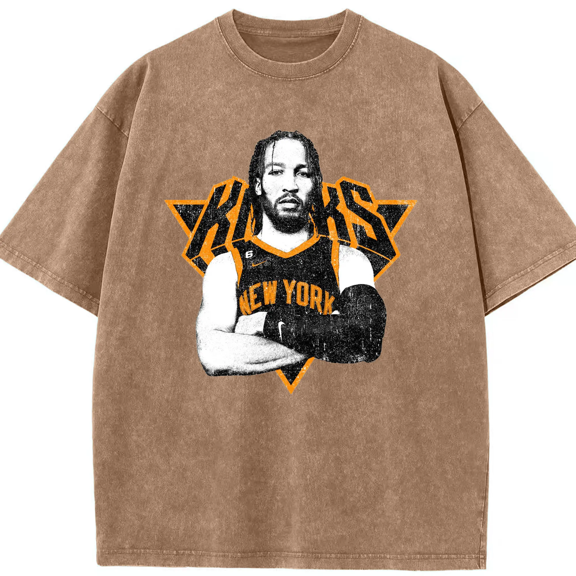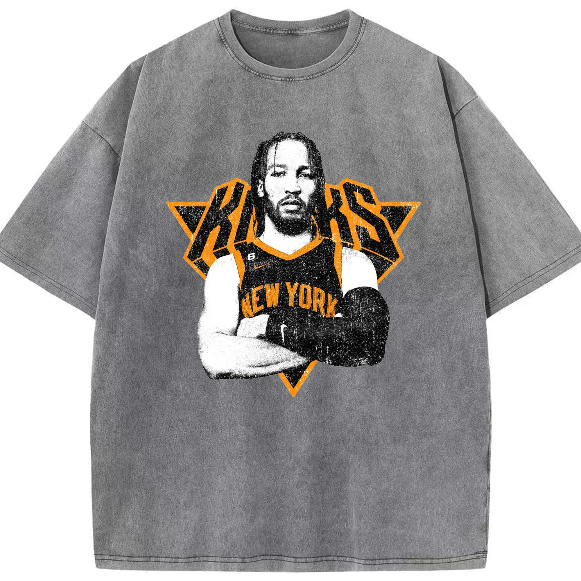 Brunson x NYC Hardcore Streetball Graphic Shirt - Washed Vintage Look 230g Cotton Oversized T-Shirt With Front Heat Transfer Print – Soft, Lightweight, Stylish Fit – Comfortable Casual Wear For Sports & Everyday Use