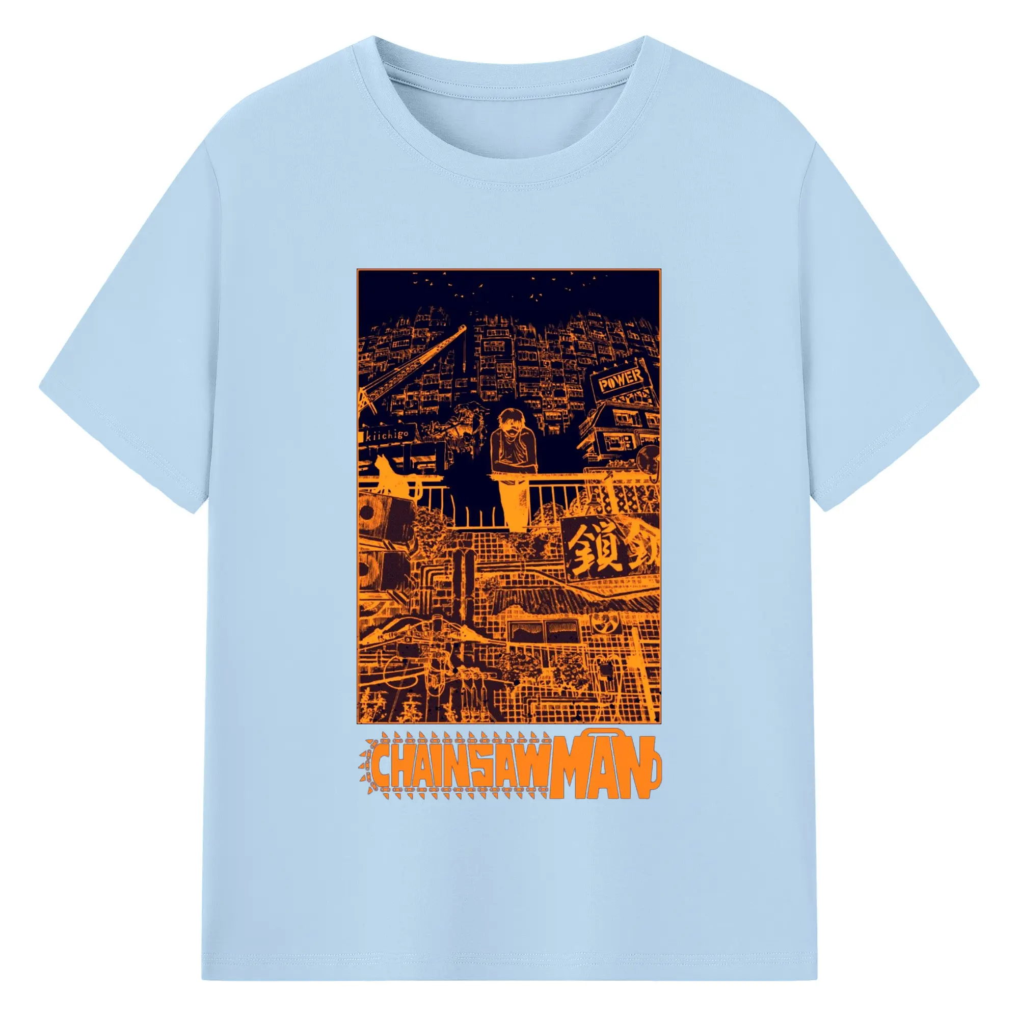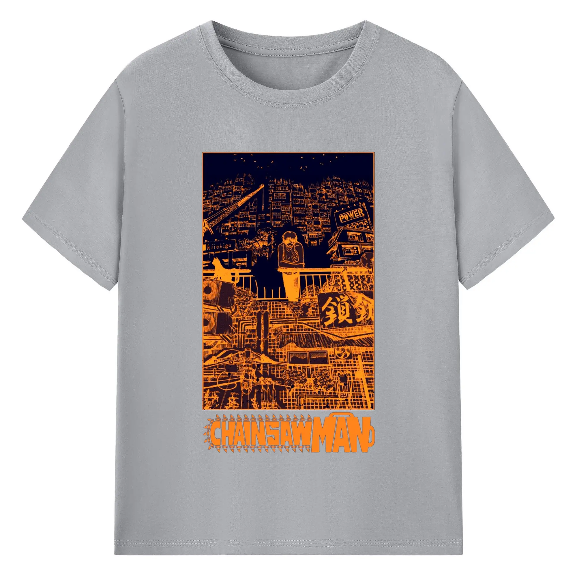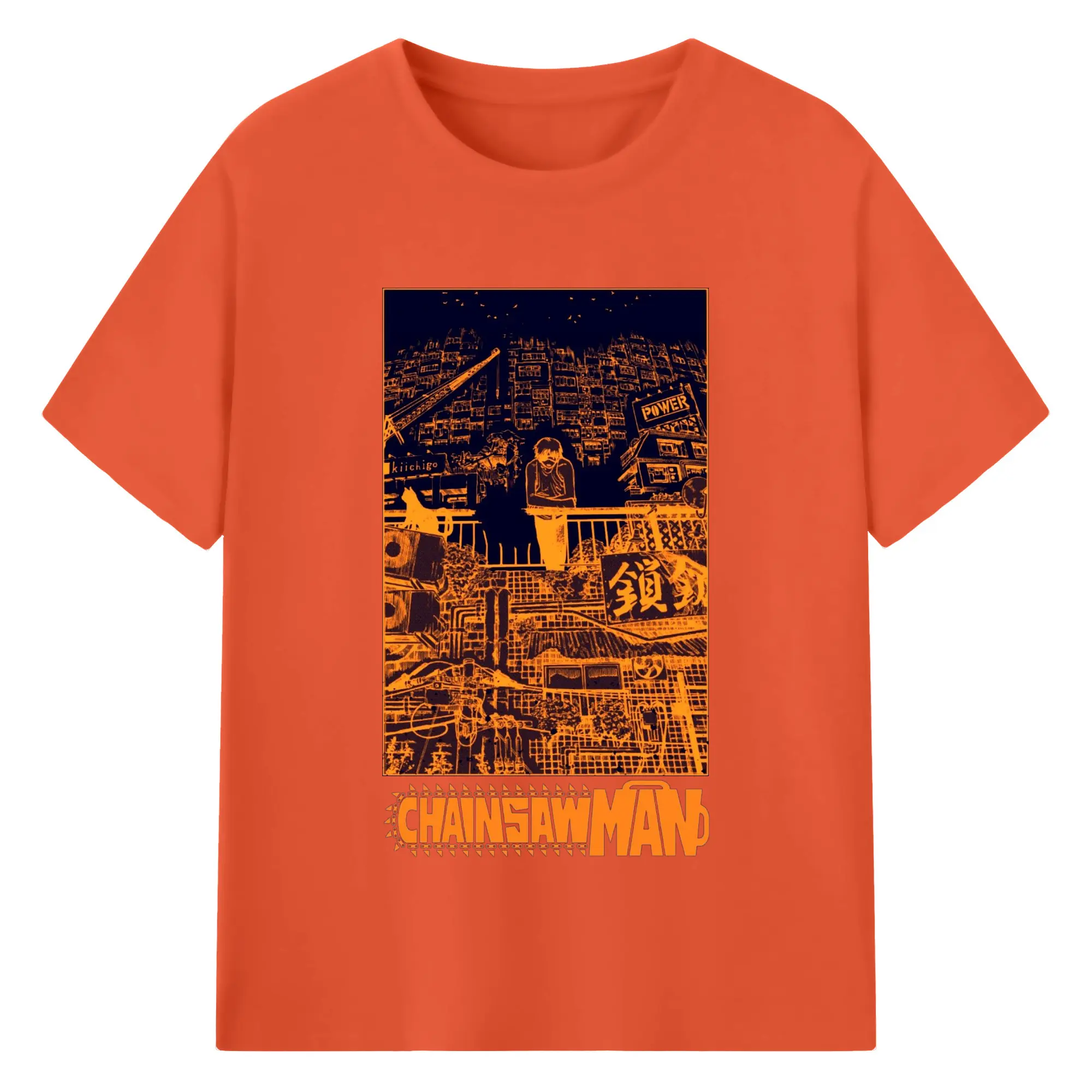 Chainsaw Man Cyber City Orange Aesthetic DIY Shirt - 180g Cotton T-Shirt With Front Heat Transfer Print – Soft, Lightweight, Fitted Design – Comfortable Casual Wear For Sports & Everyday Use