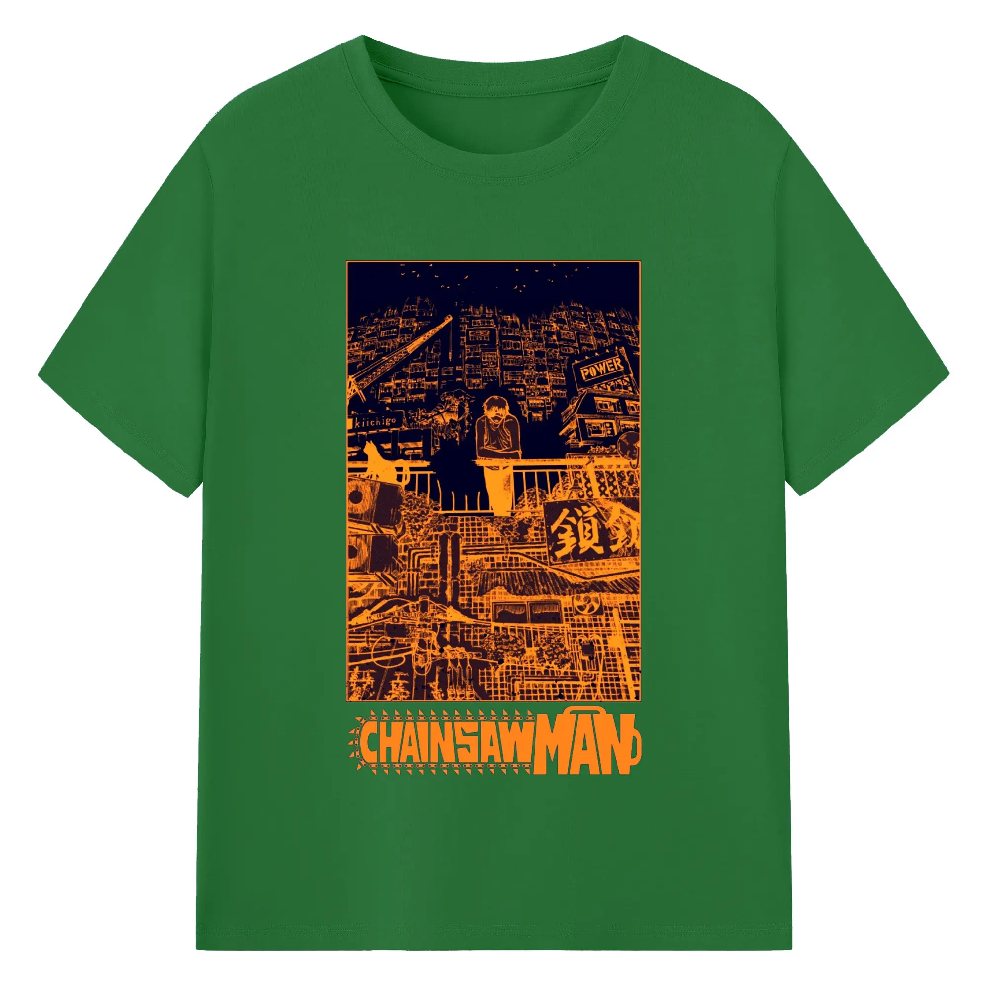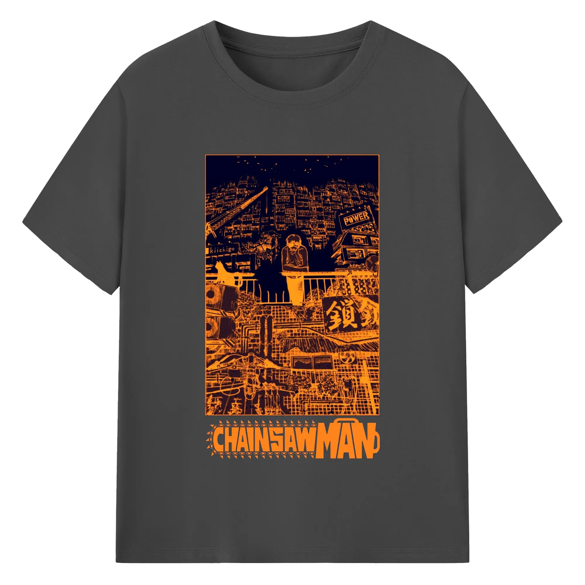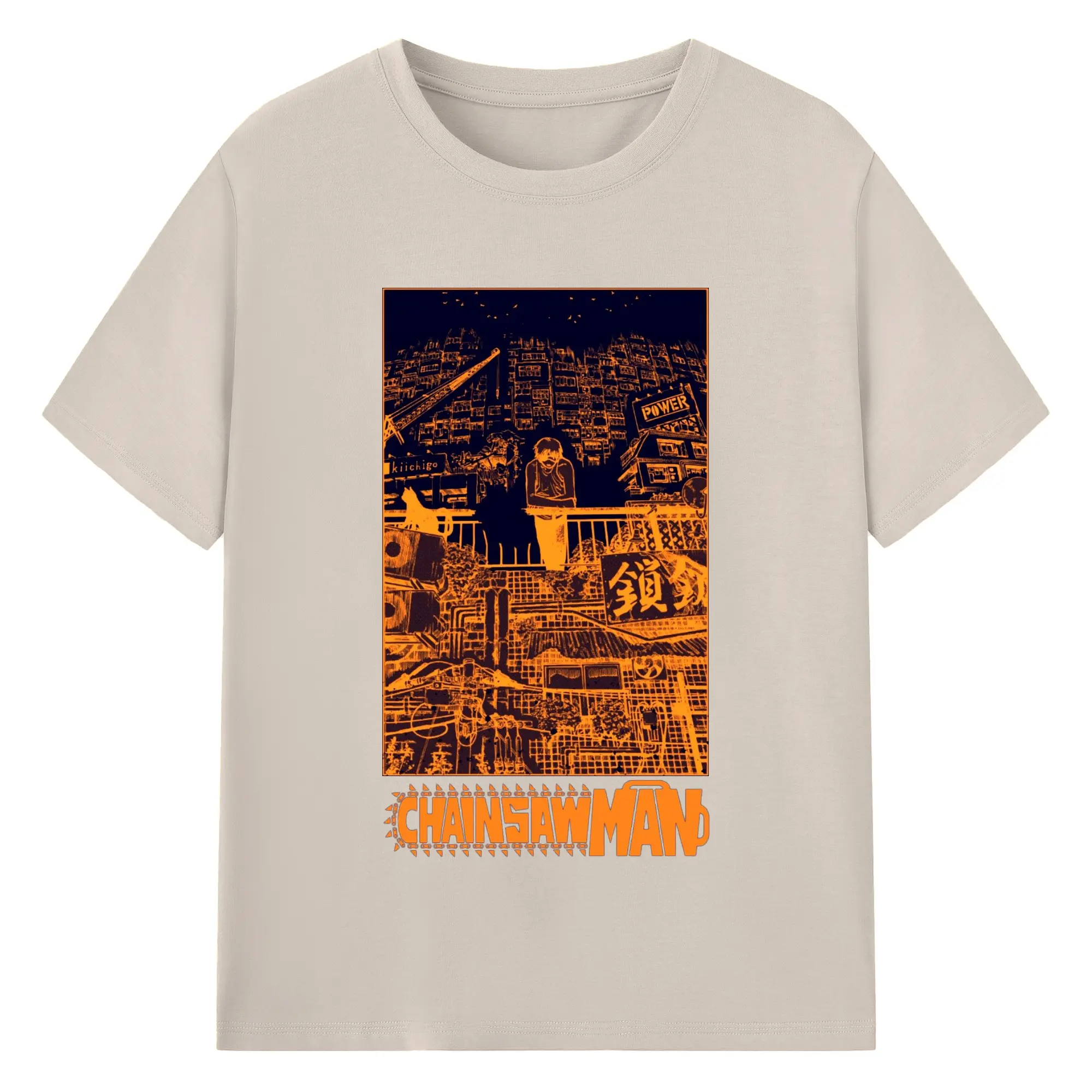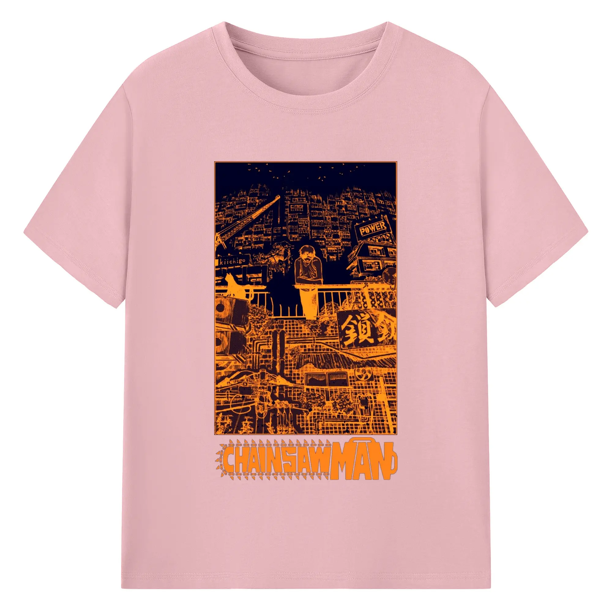 Chainsaw Man Cyber City Orange Aesthetic DIY Shirt - 180g Cotton T-Shirt With Front Heat Transfer Print – Soft, Lightweight, Fitted Design – Comfortable Casual Wear For Sports & Everyday Use