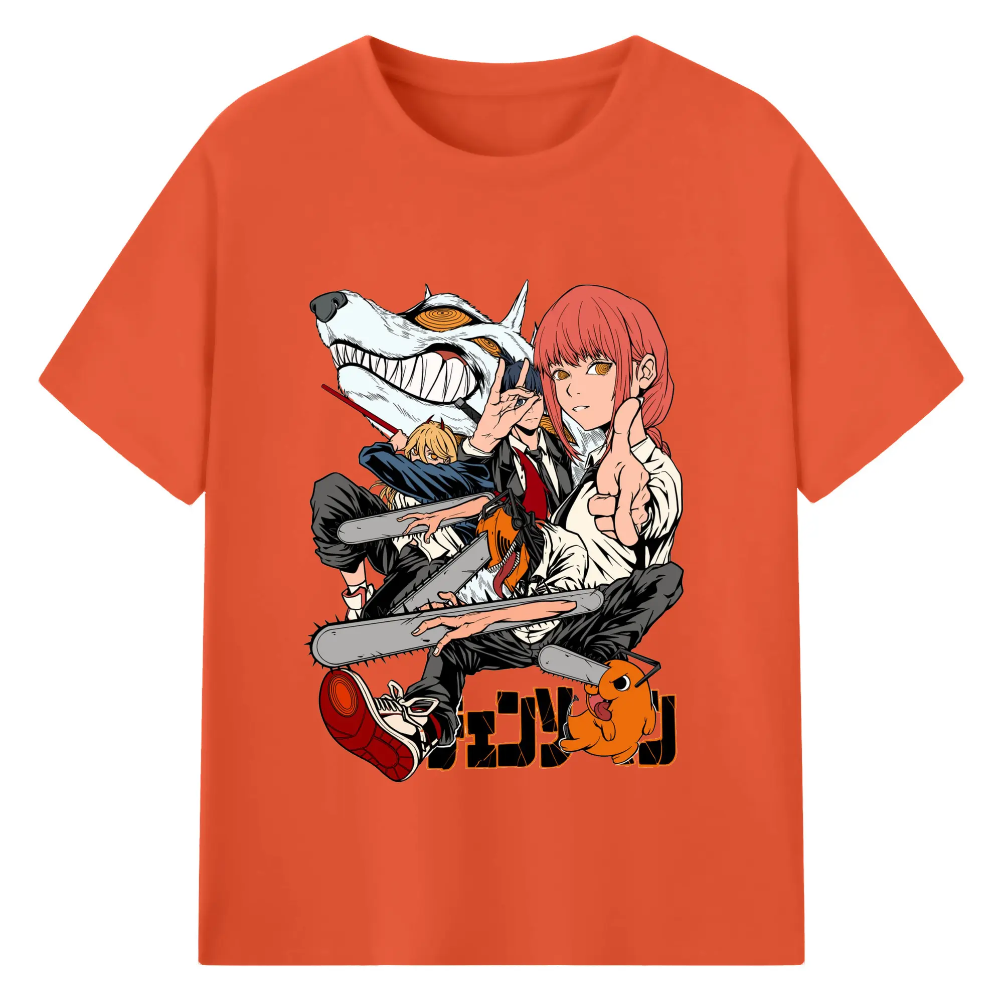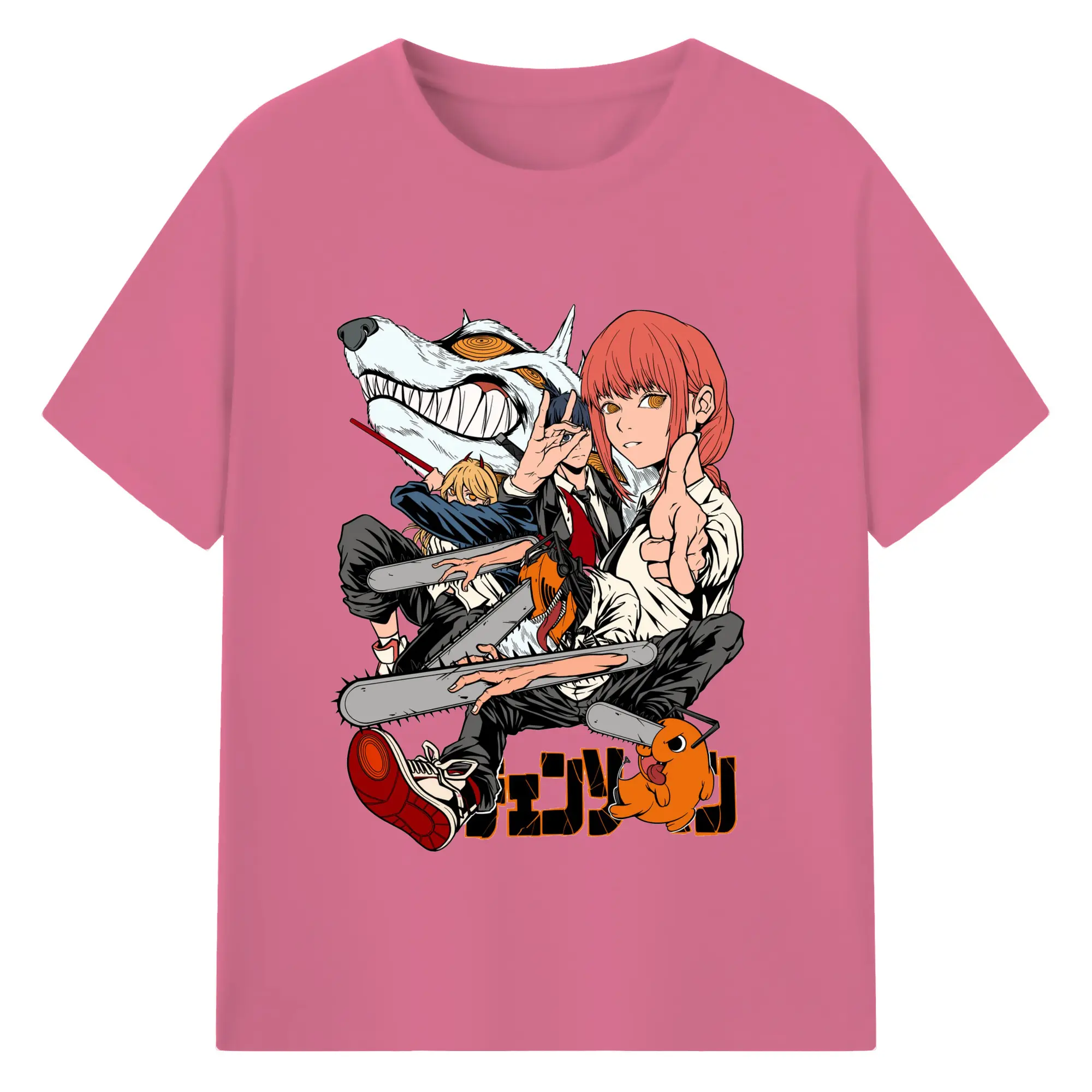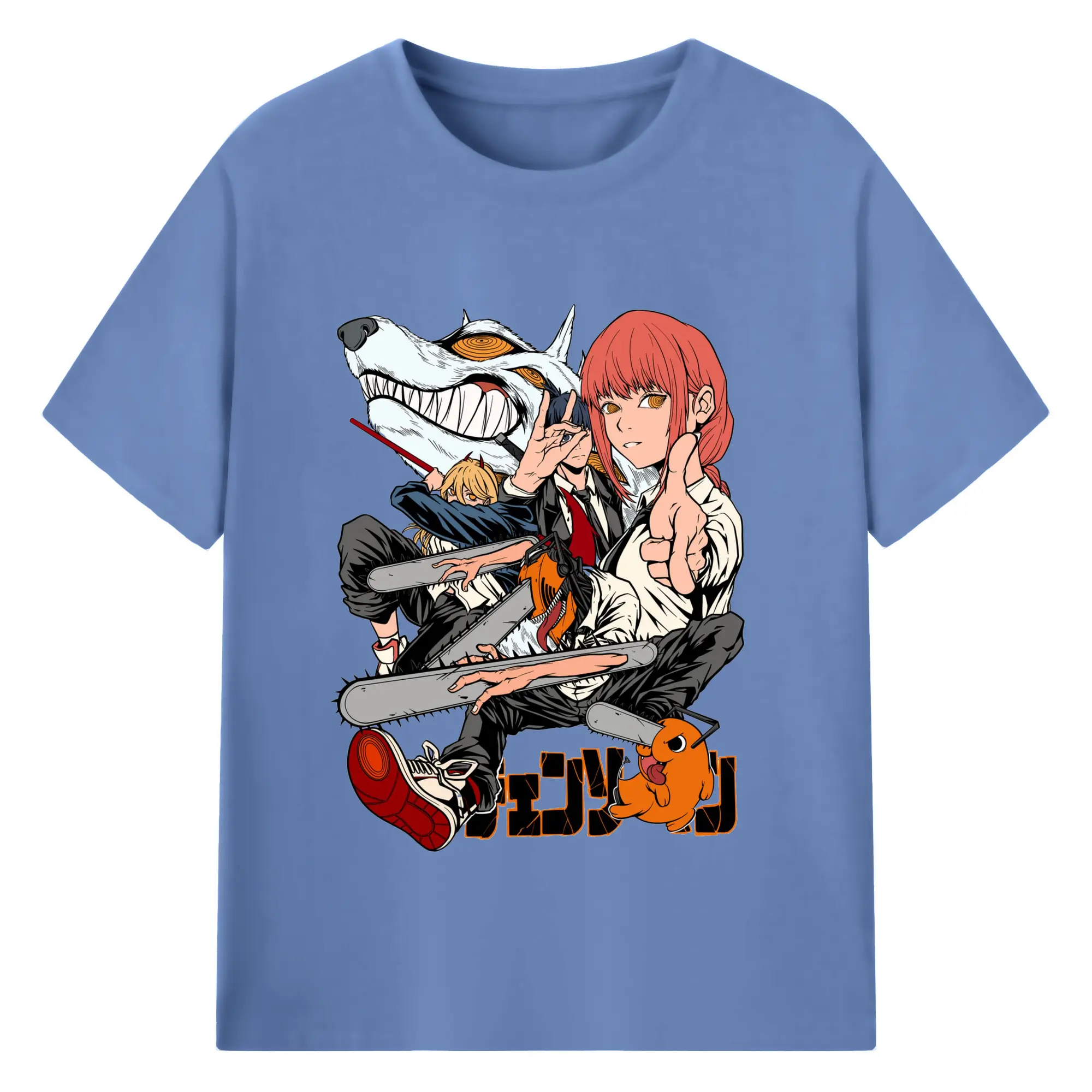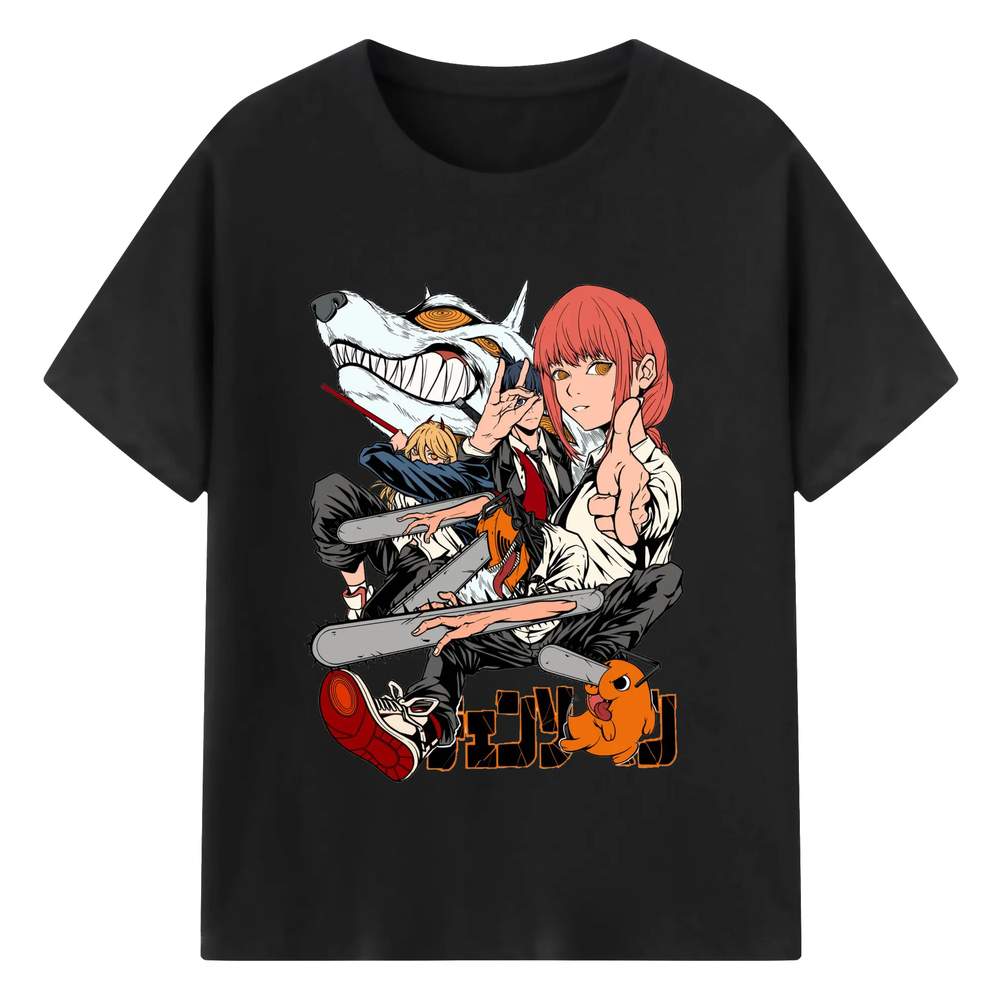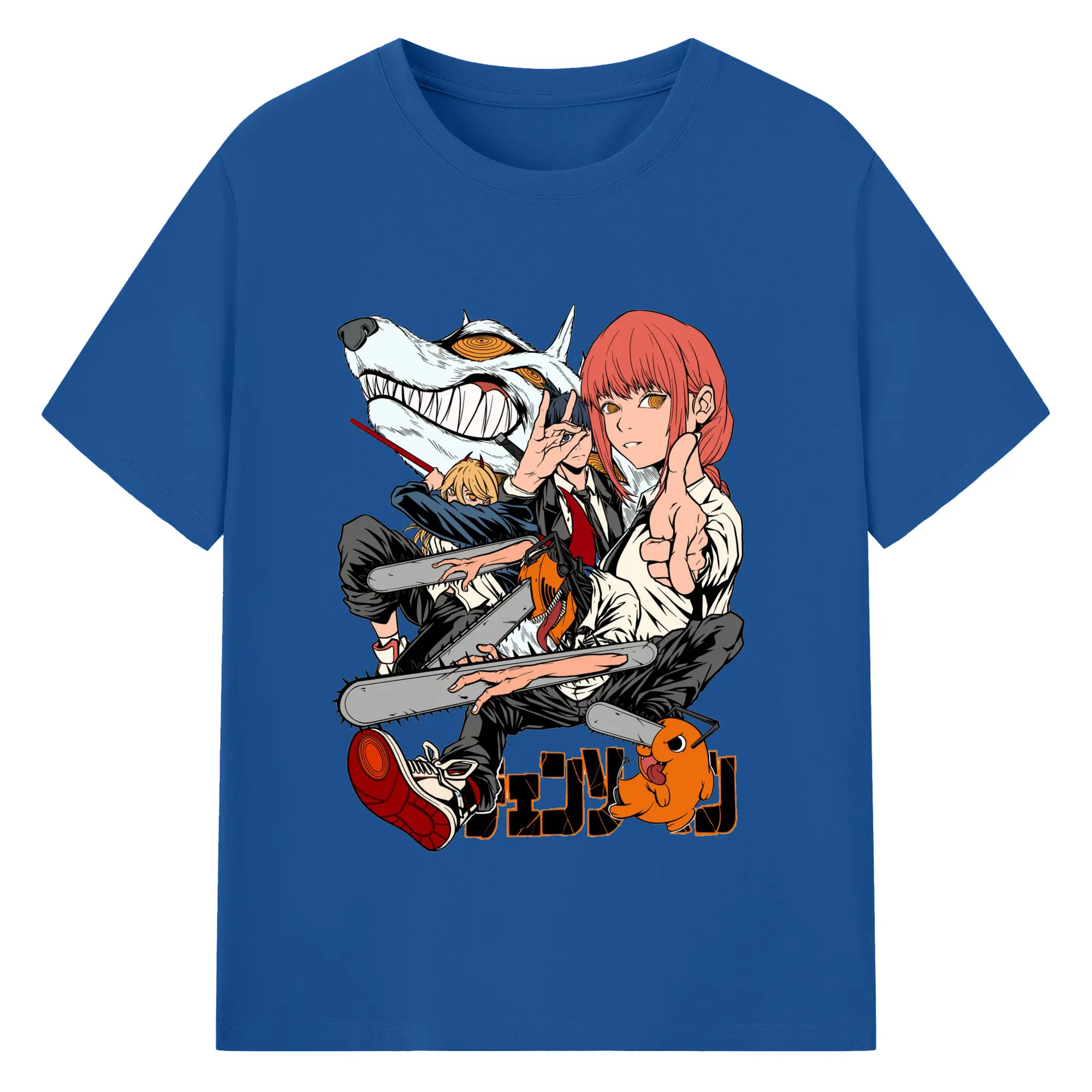 Chainsaw Man Main Characters Battle Style DIY Shirt - 180g Cotton T-Shirt With Front Heat Transfer Print – Soft, Lightweight, Fitted Design – Comfortable Casual Wear For Sports & Everyday Use