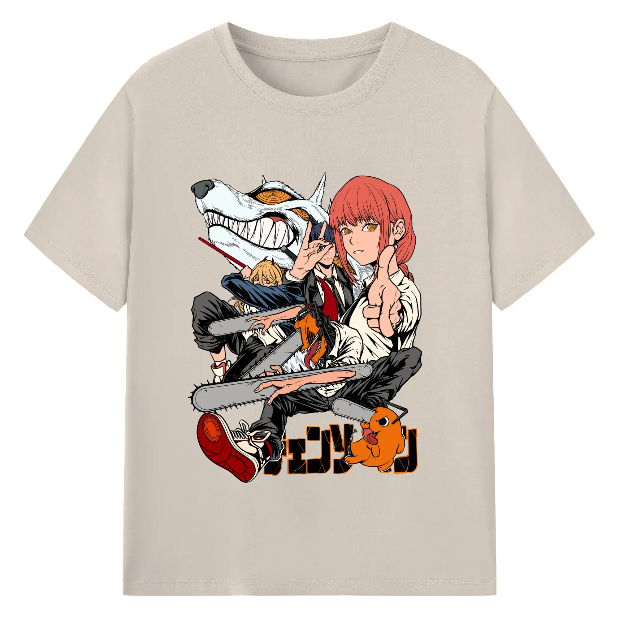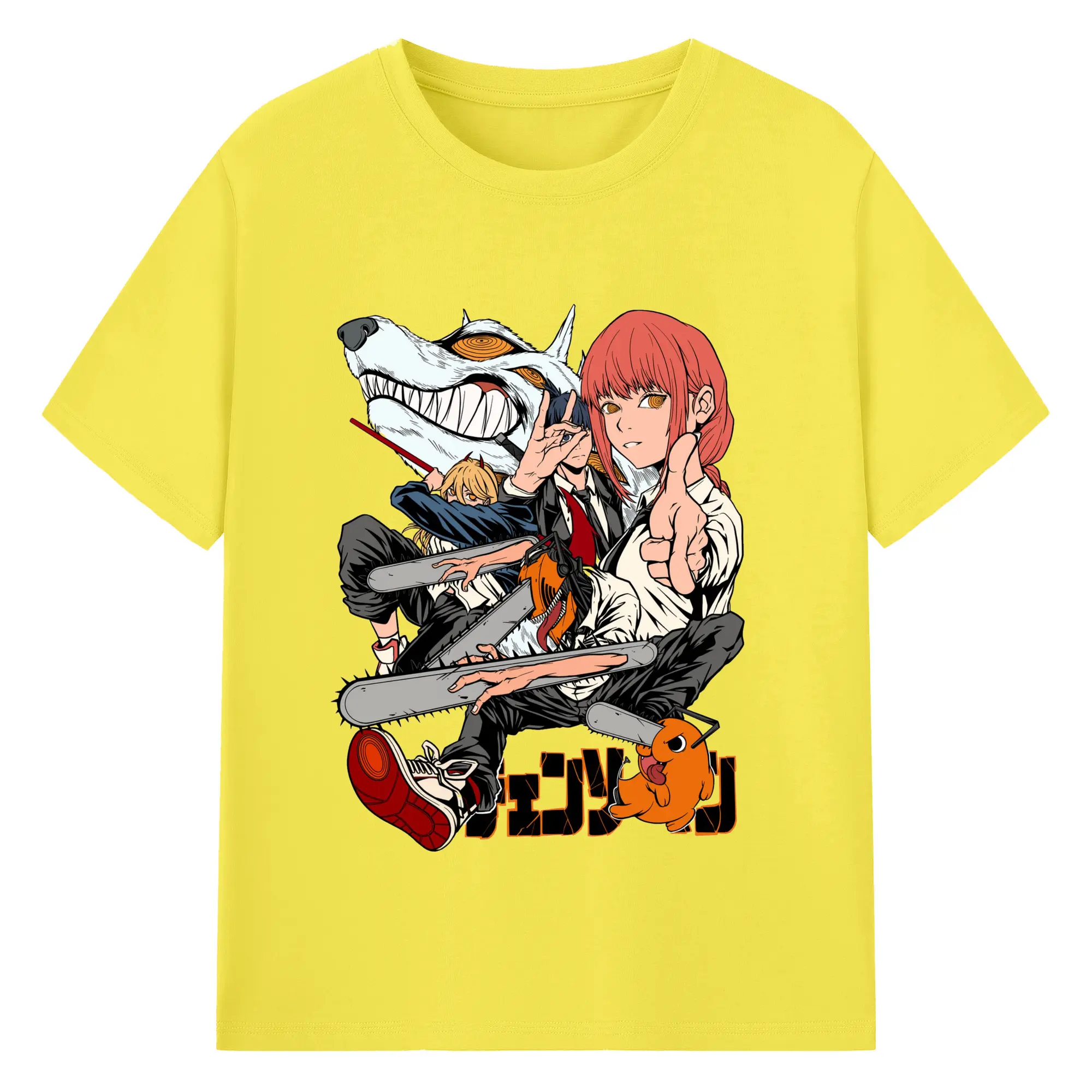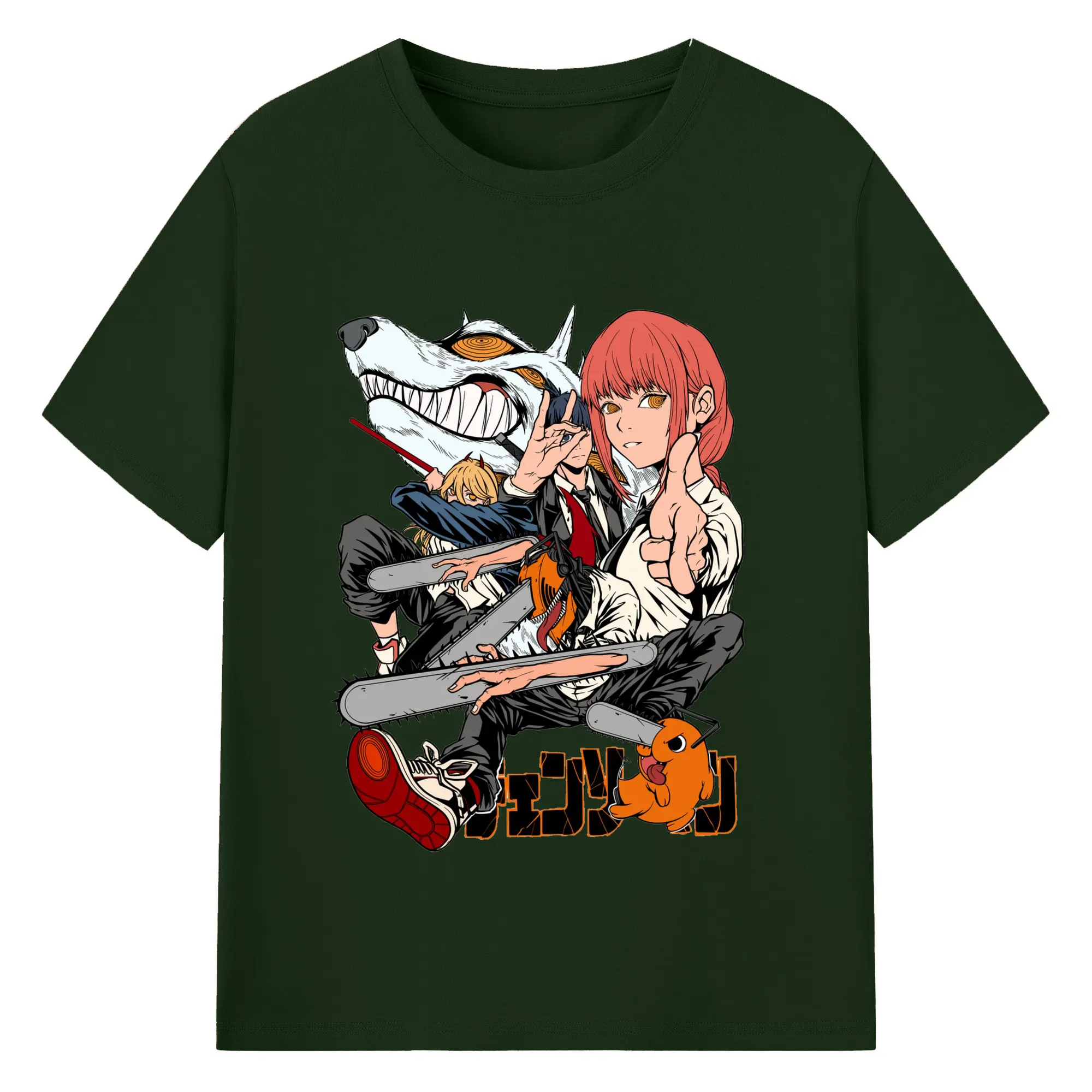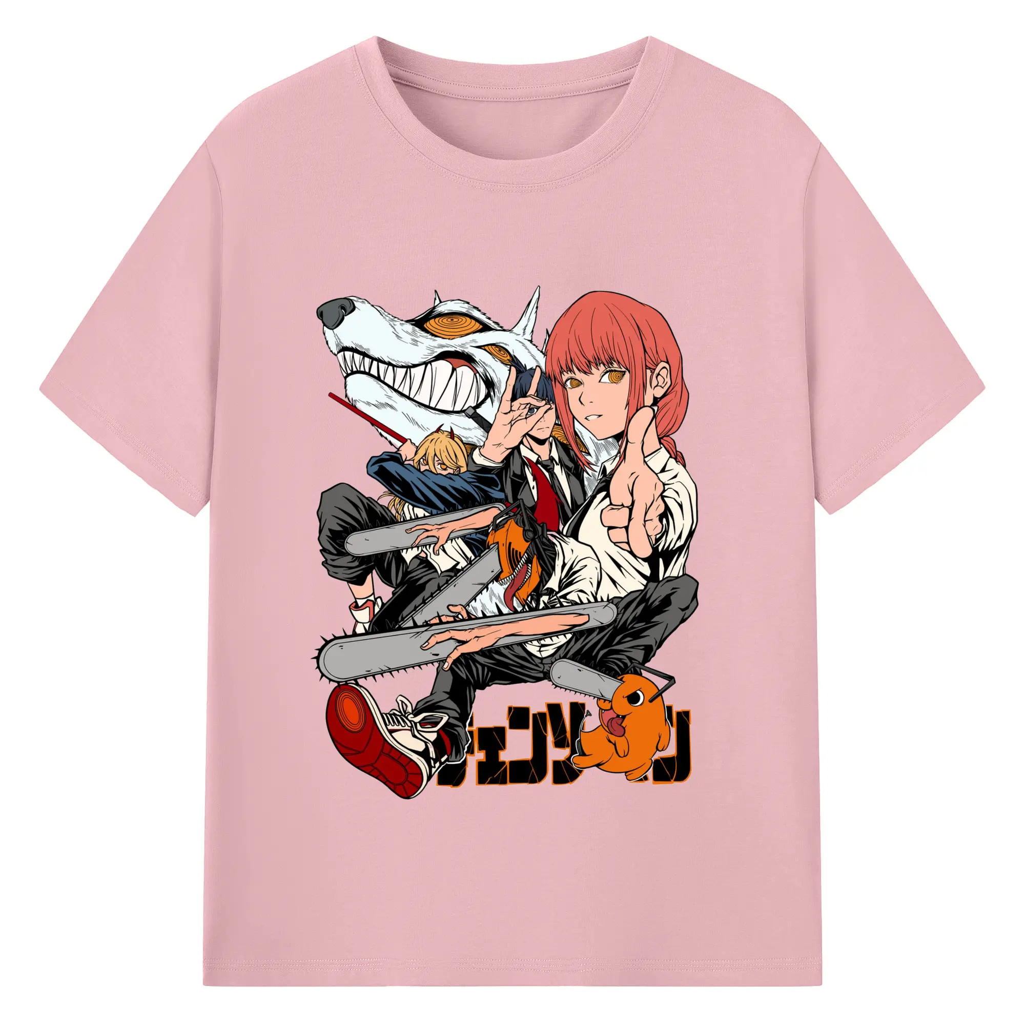 Chainsaw Man Main Characters Battle Style DIY Shirt - 180g Cotton T-Shirt With Front Heat Transfer Print – Soft, Lightweight, Fitted Design – Comfortable Casual Wear For Sports & Everyday Use