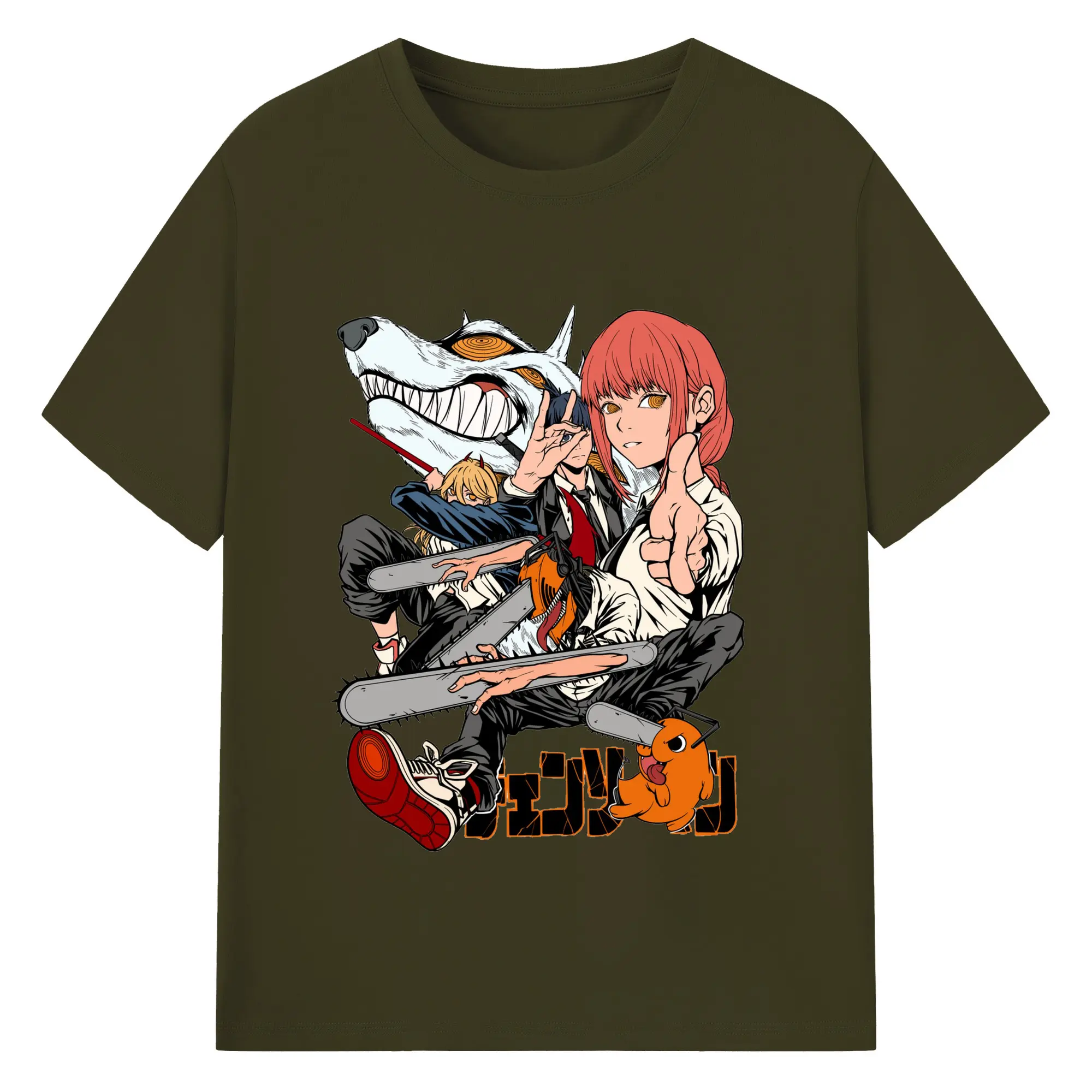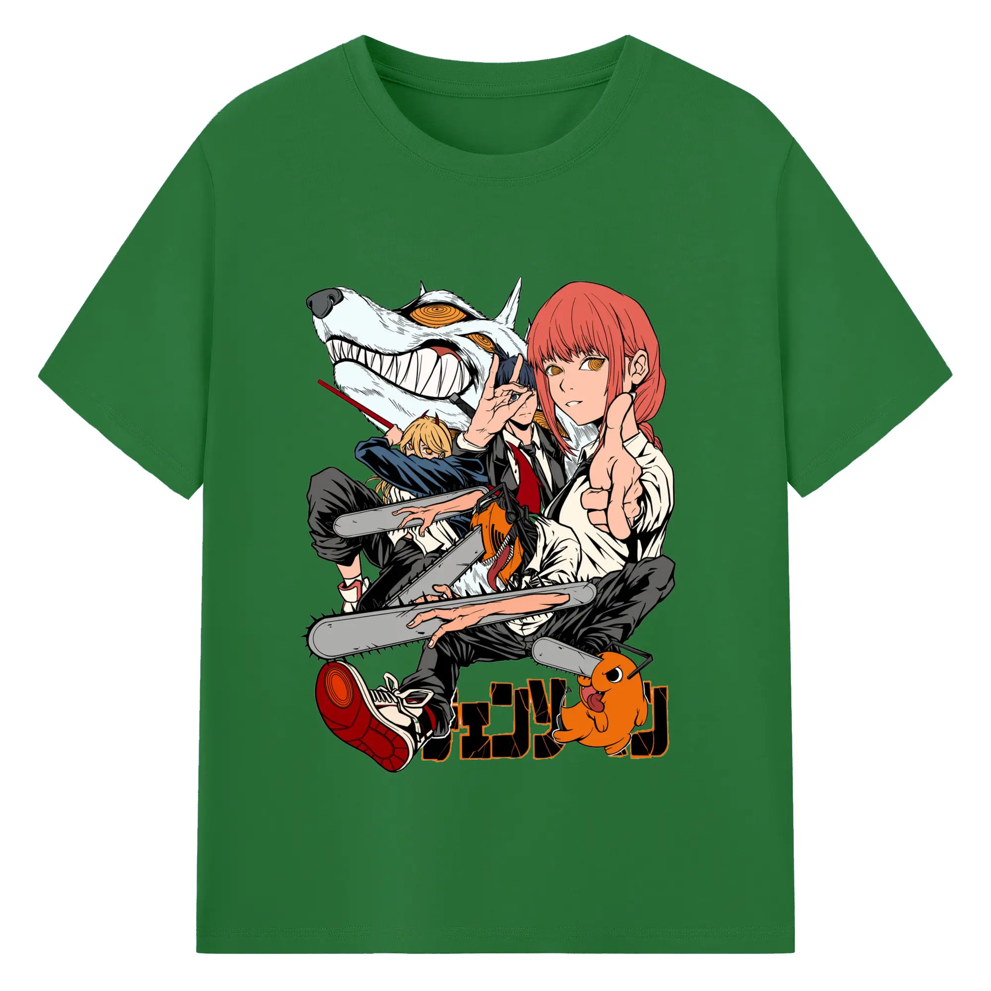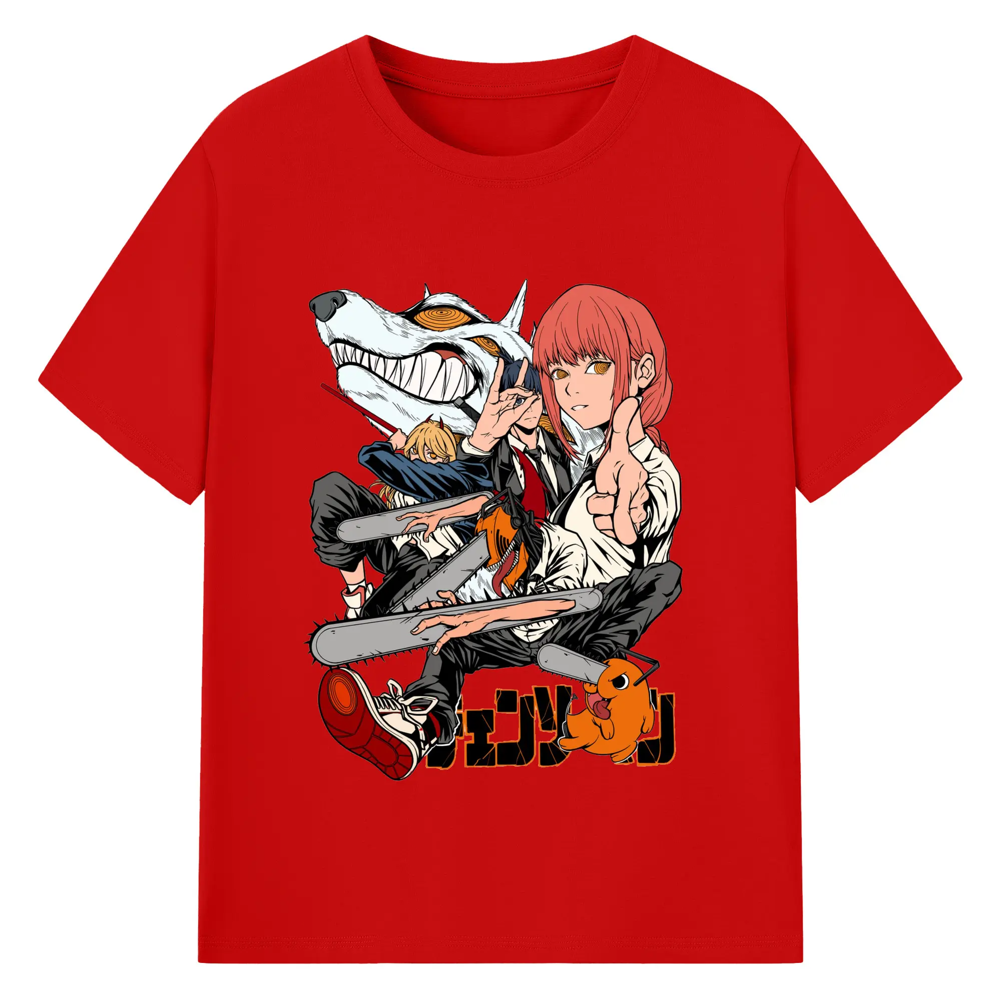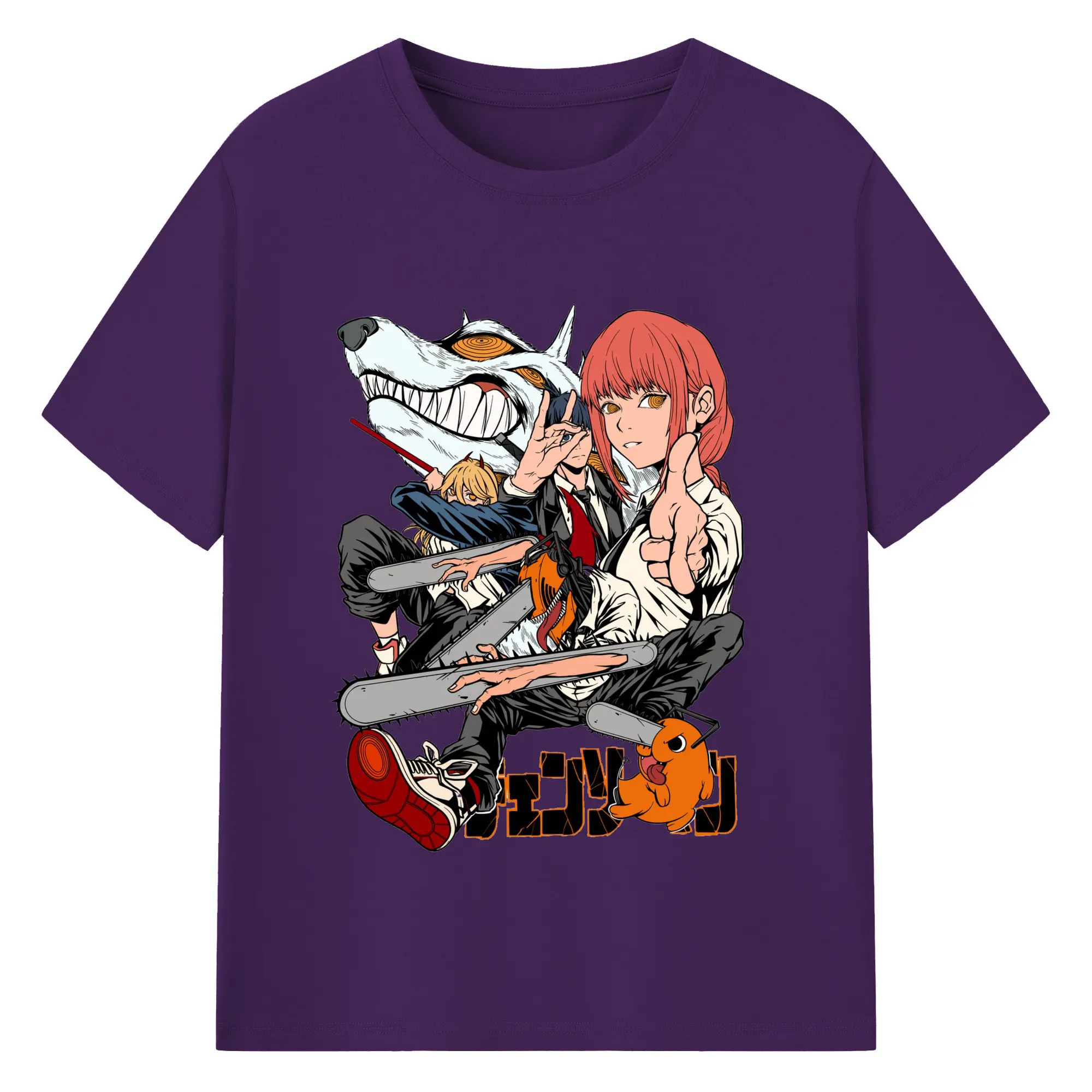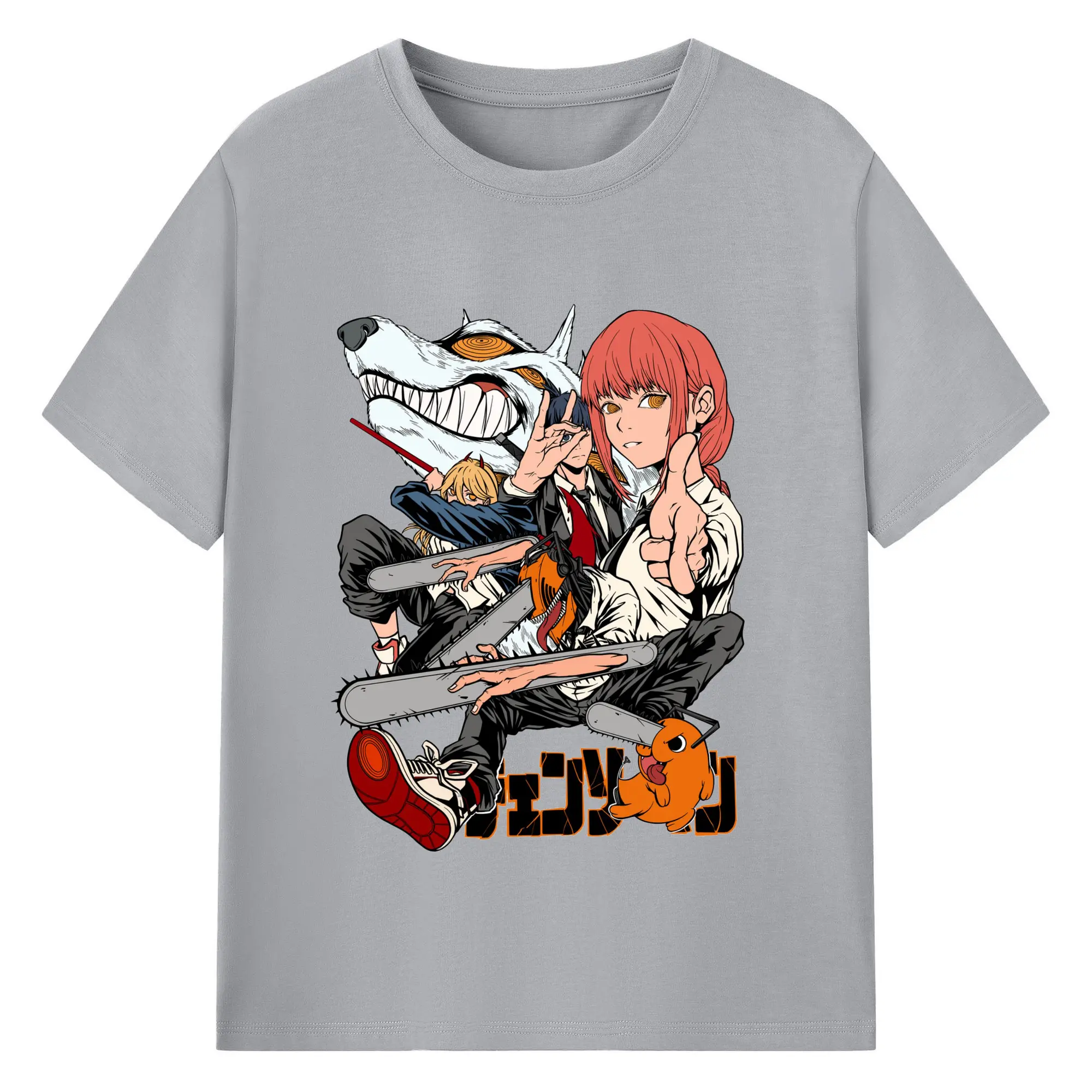 Chainsaw Man Main Characters Battle Style DIY Shirt - 180g Cotton T-Shirt With Front Heat Transfer Print – Soft, Lightweight, Fitted Design – Comfortable Casual Wear For Sports & Everyday Use