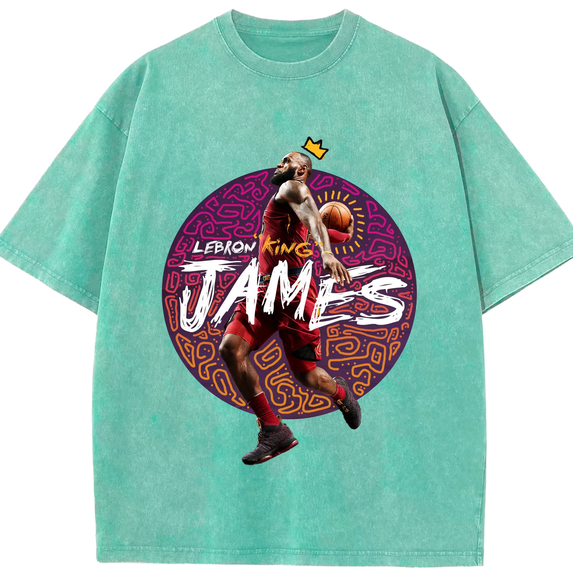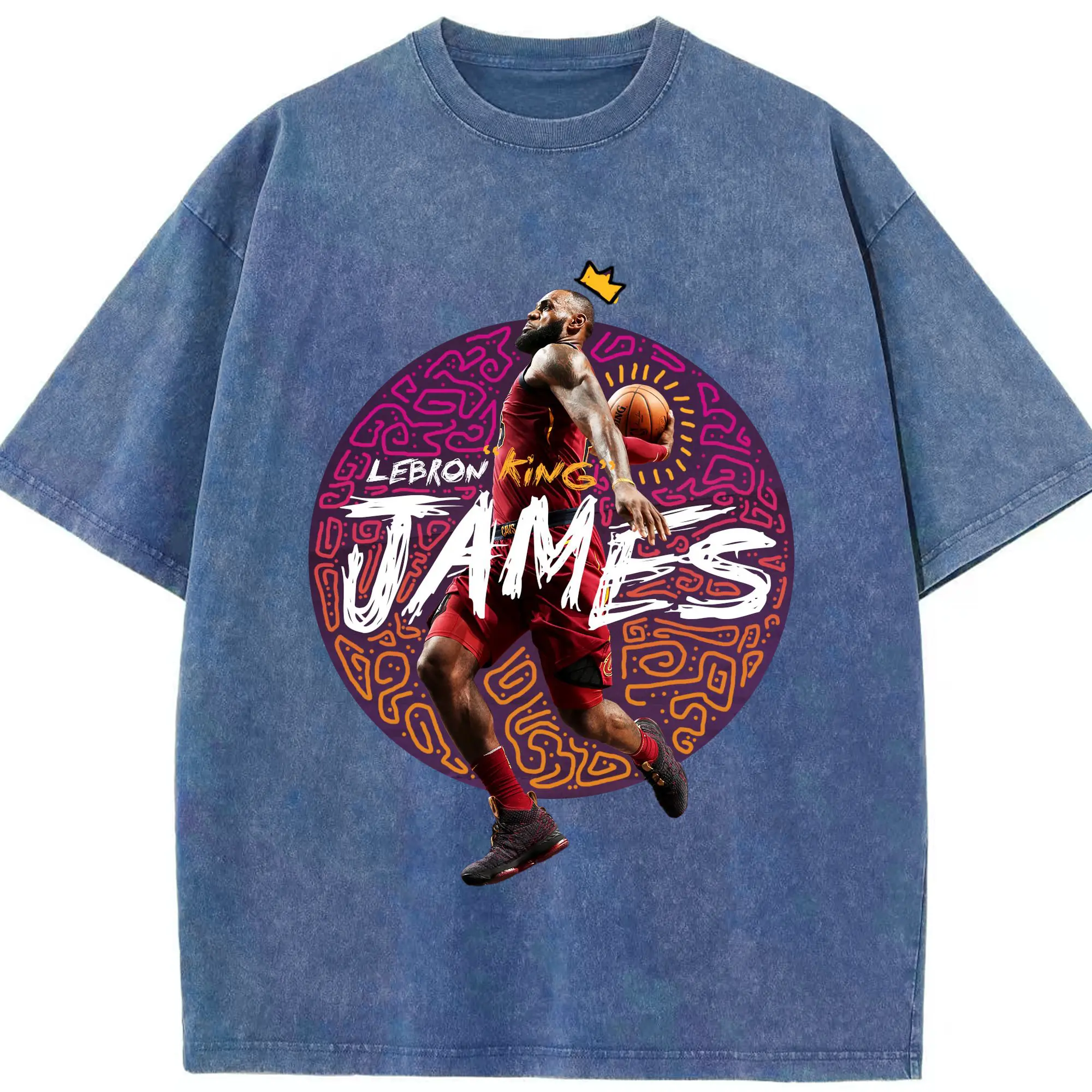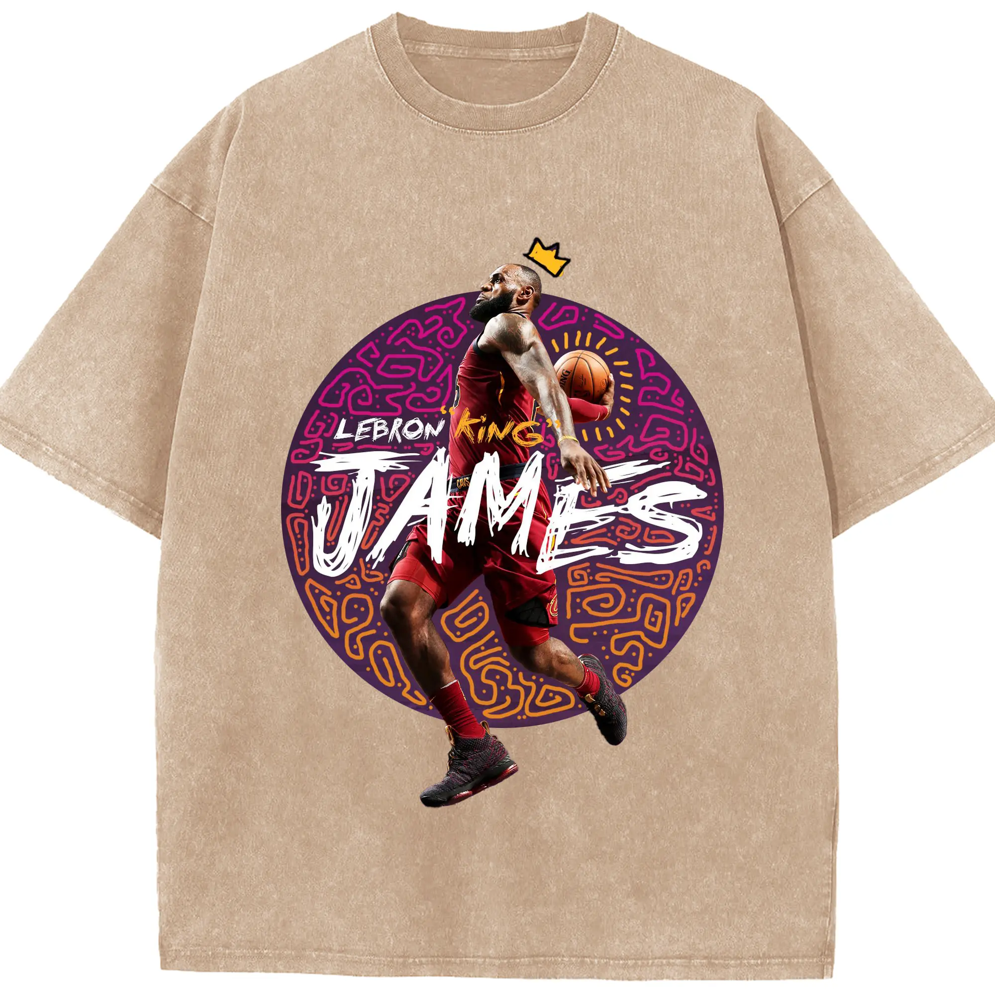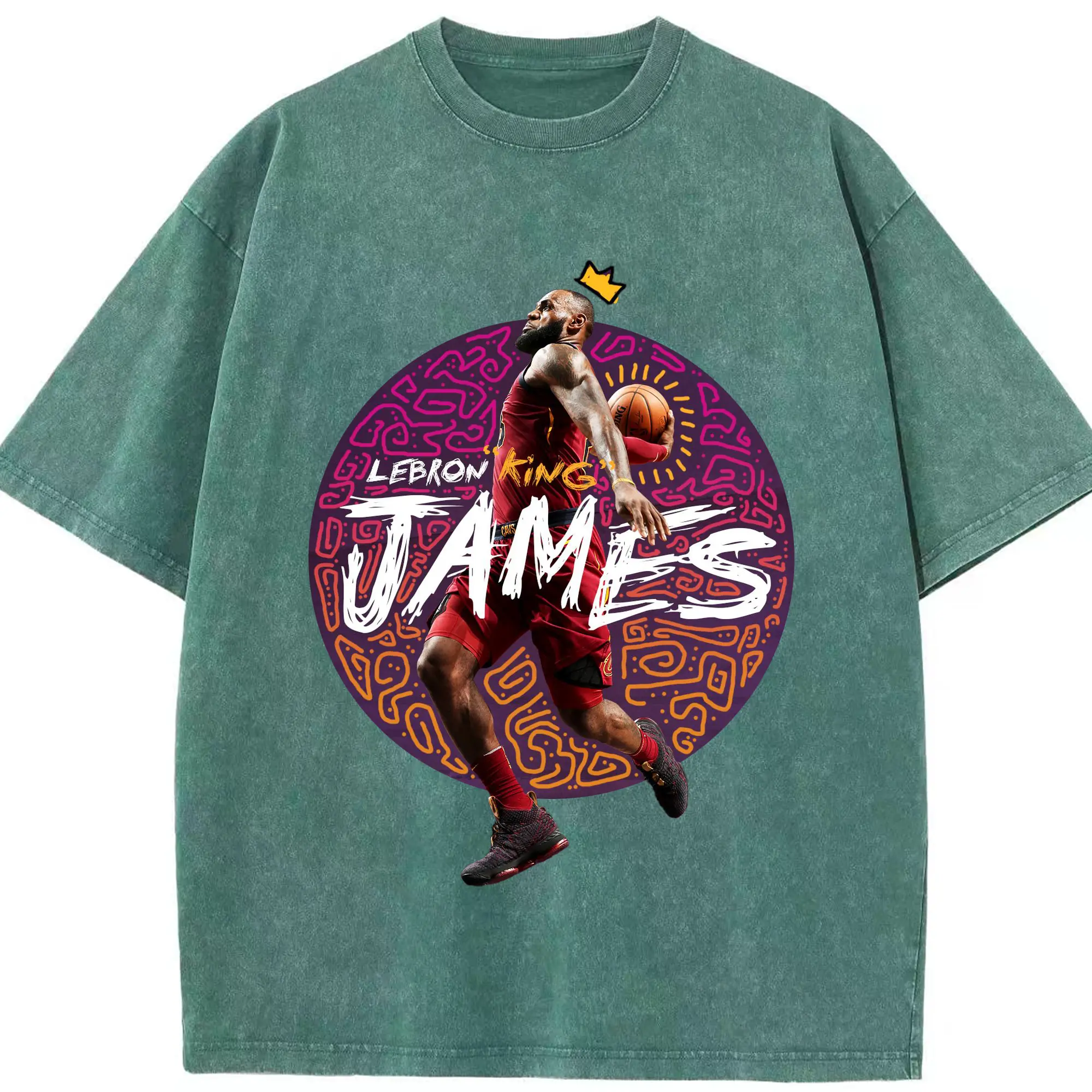Cleveland King LeBron Dunk Shirt - Washed Vintage Look 230g Cotton Oversized T-Shirt With Front Heat Transfer Print – Soft, Lightweight, Stylish Fit – Comfortable Casual Wear For Sports & Everyday Use