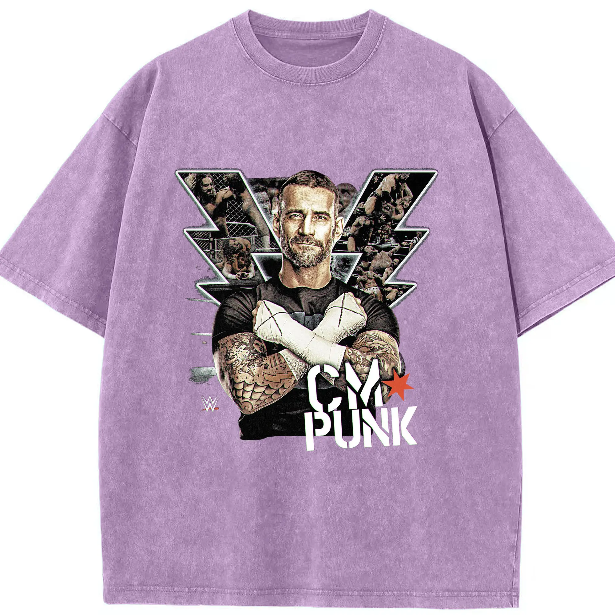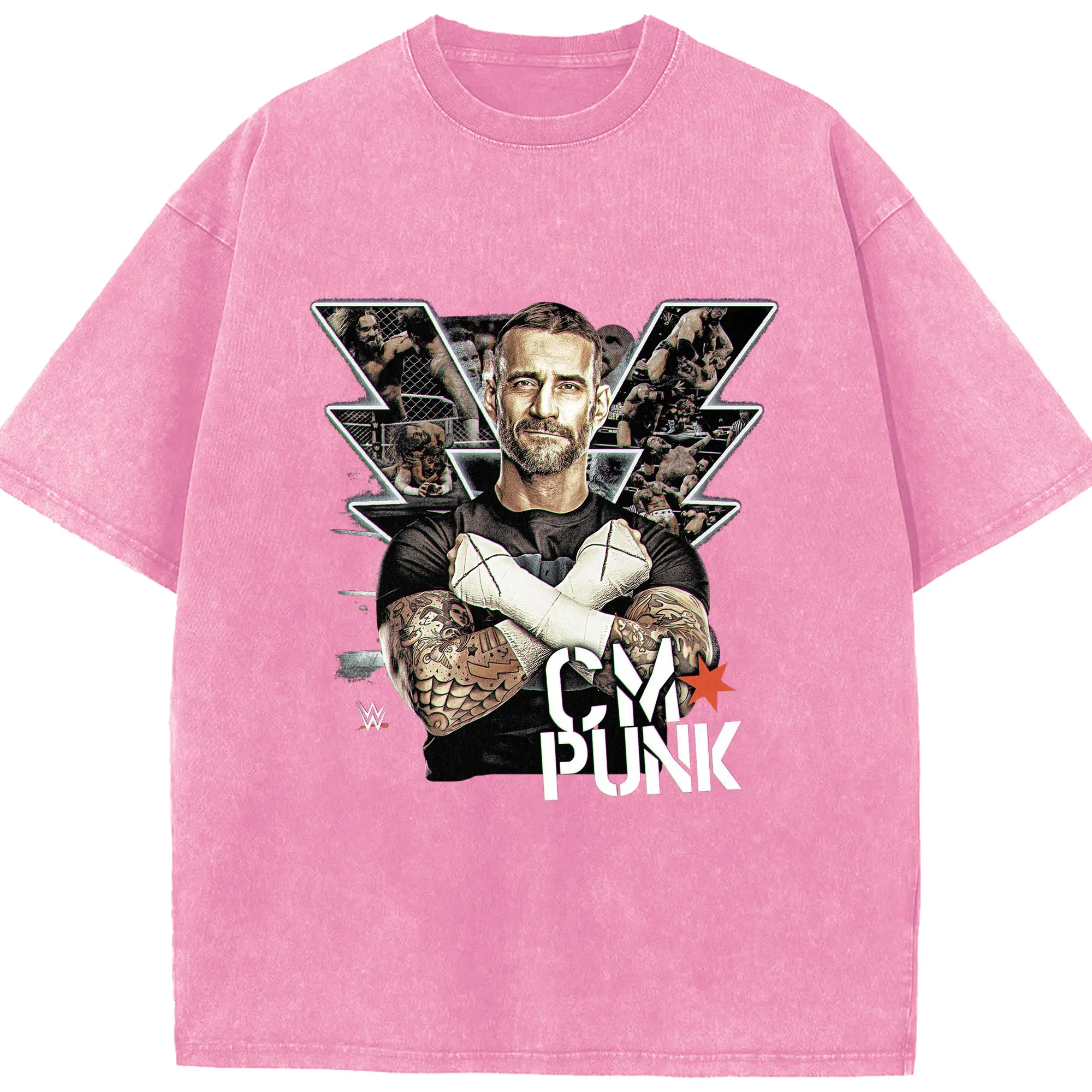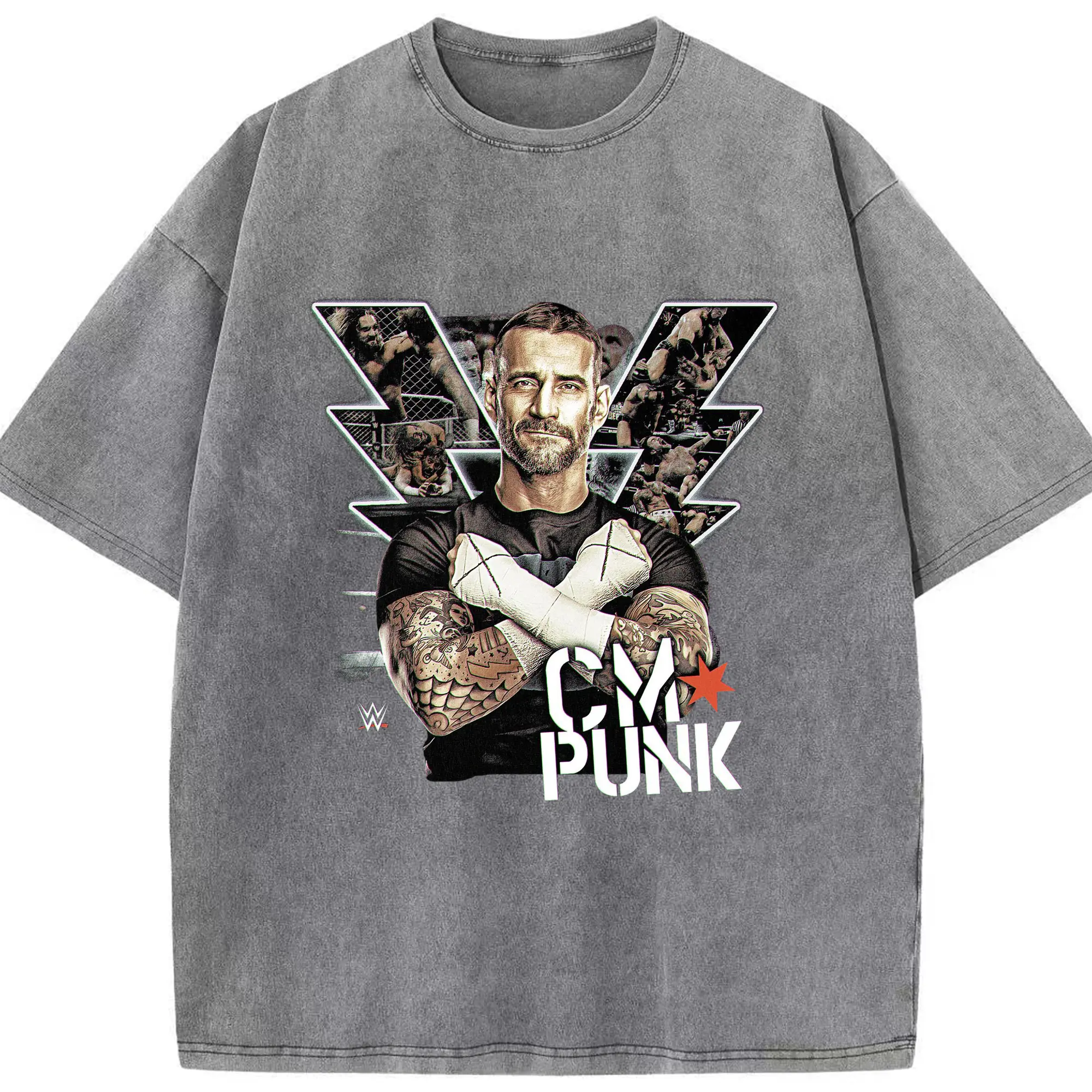 CM Punk WWE Wrestling Legend DIY Shirt - Washed Vintage Look 230g Cotton Oversized T-Shirt With Front Heat Transfer Print – Soft, Lightweight, Stylish Fit – Comfortable Casual Wear For Sports & Everyday Use