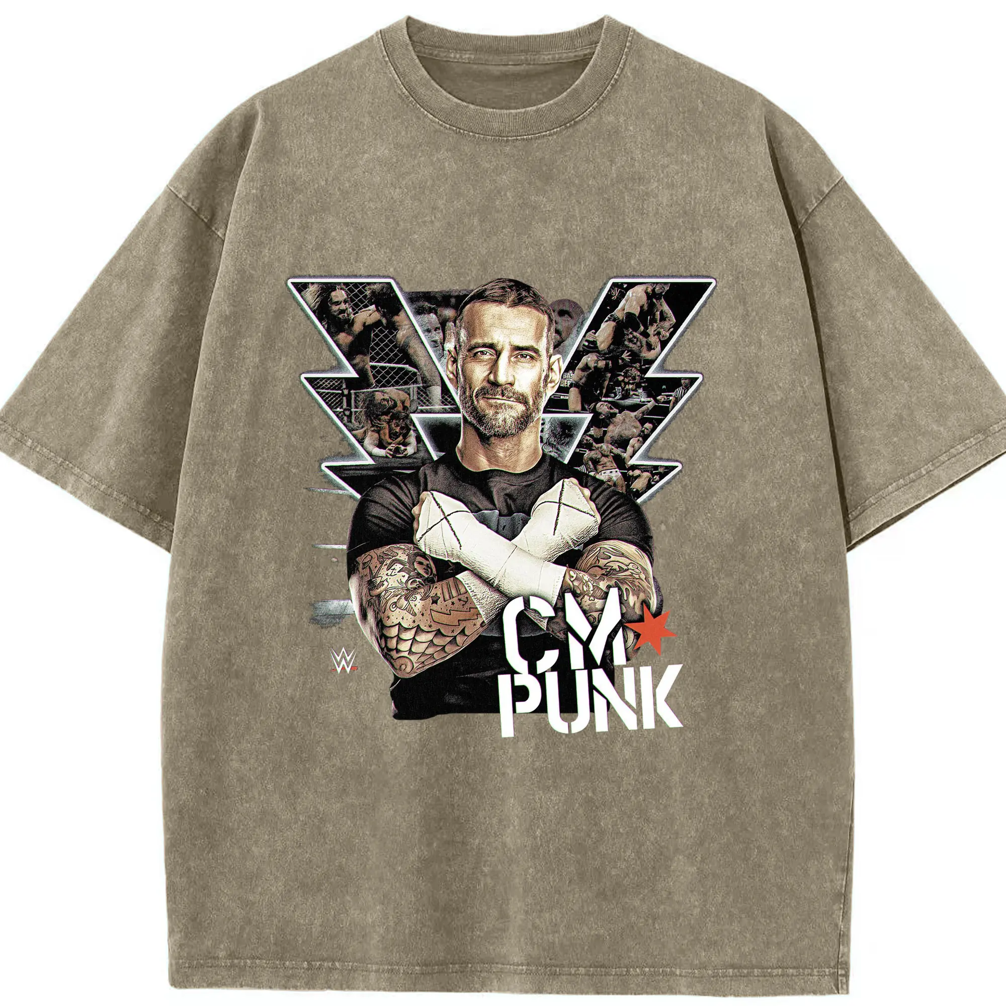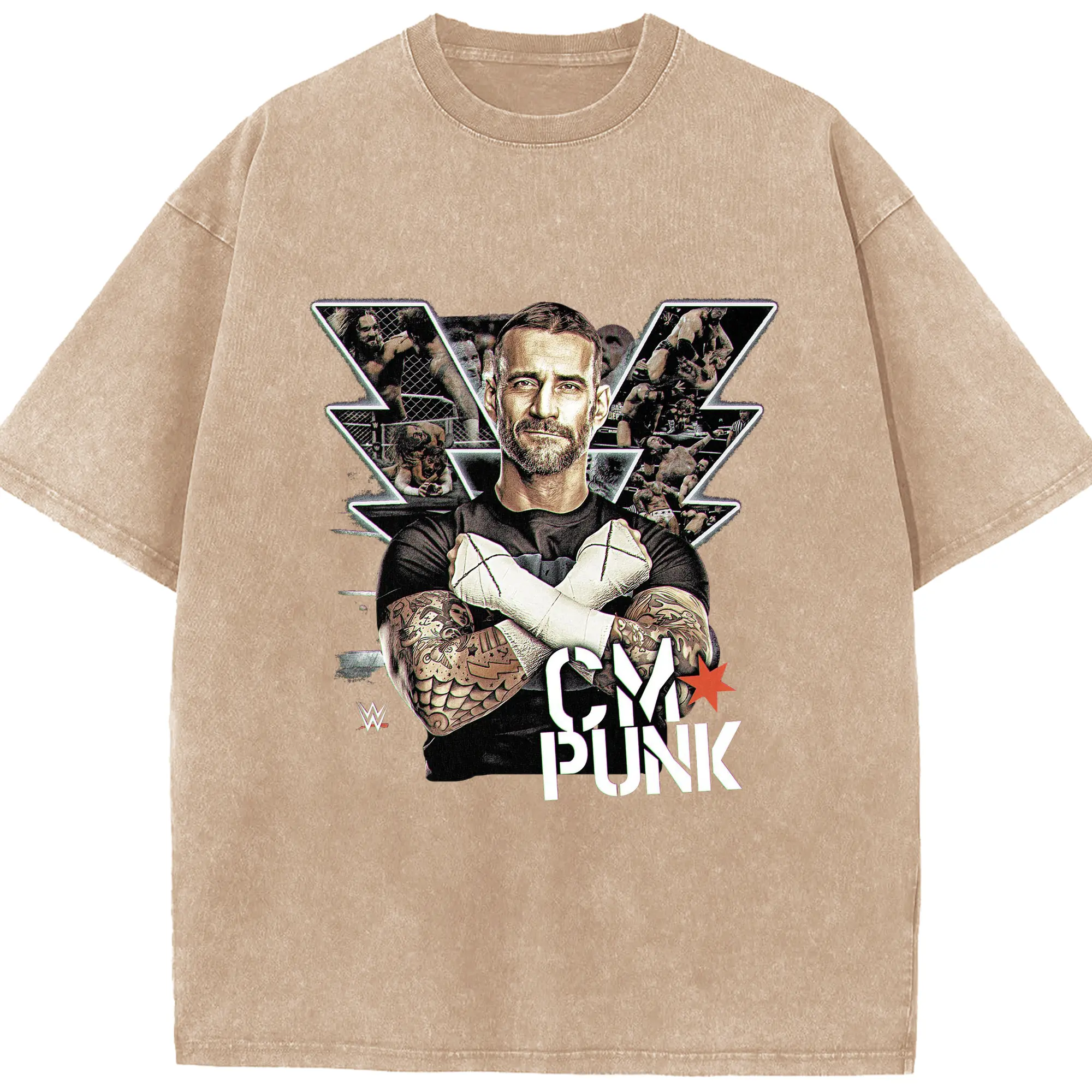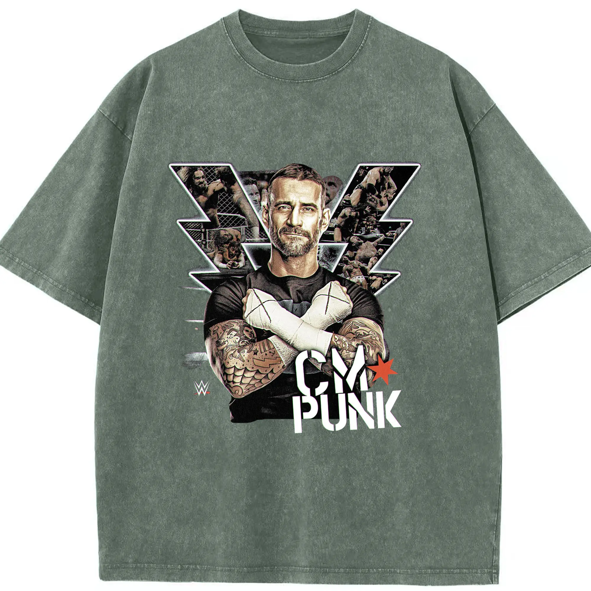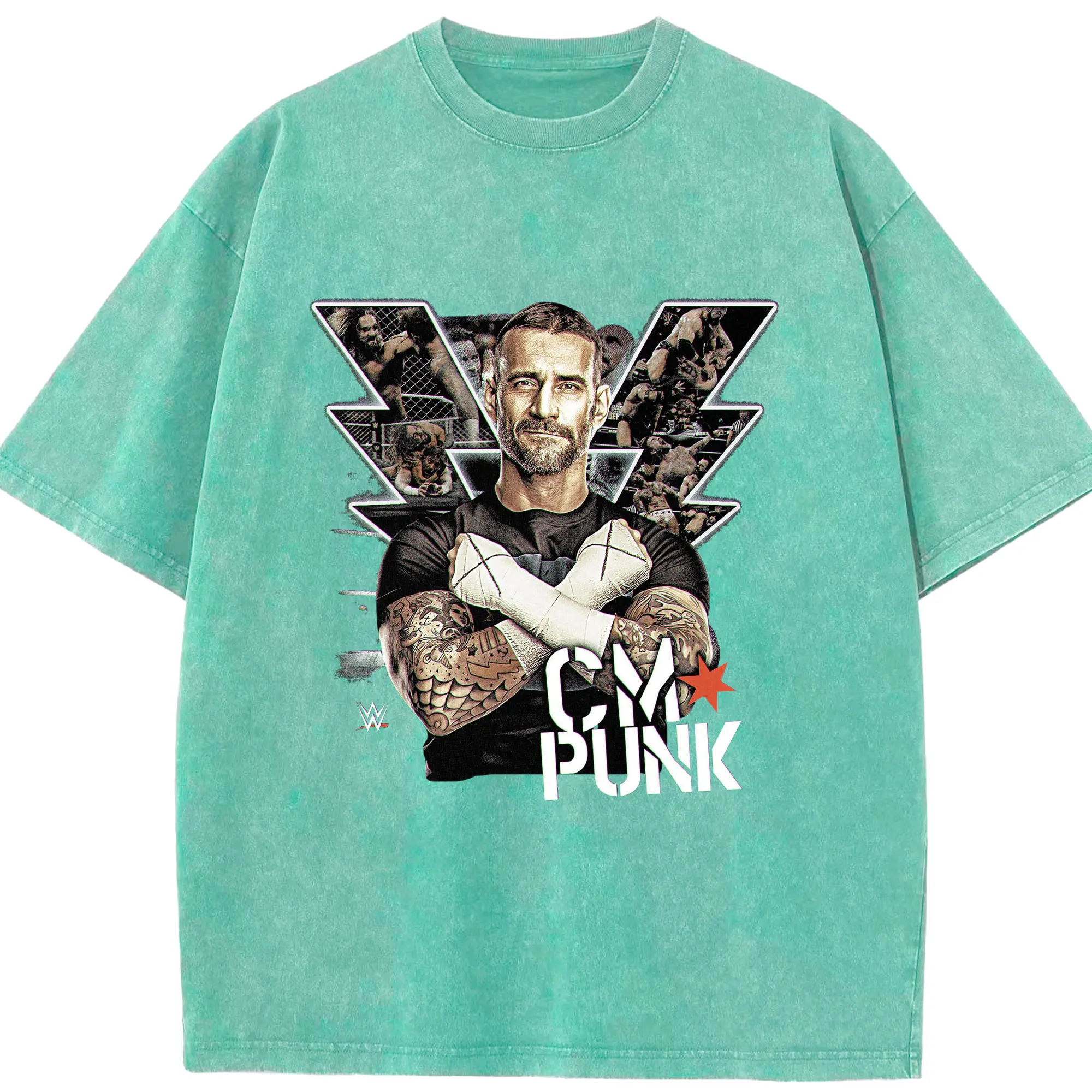 CM Punk WWE Wrestling Legend DIY Shirt - Washed Vintage Look 230g Cotton Oversized T-Shirt With Front Heat Transfer Print – Soft, Lightweight, Stylish Fit – Comfortable Casual Wear For Sports & Everyday Use