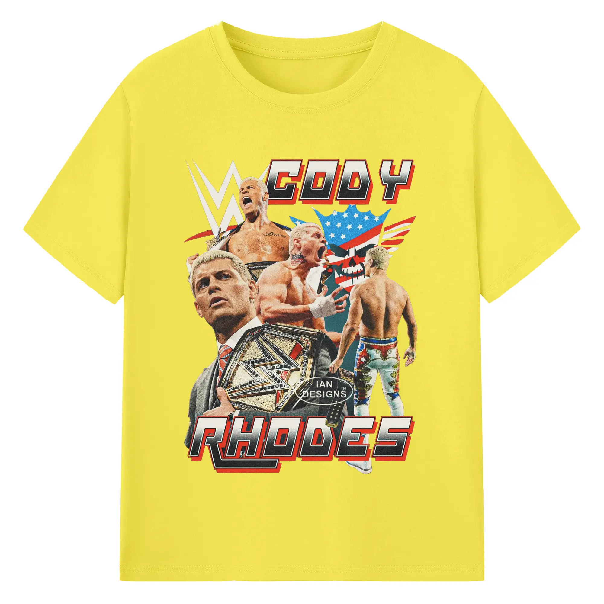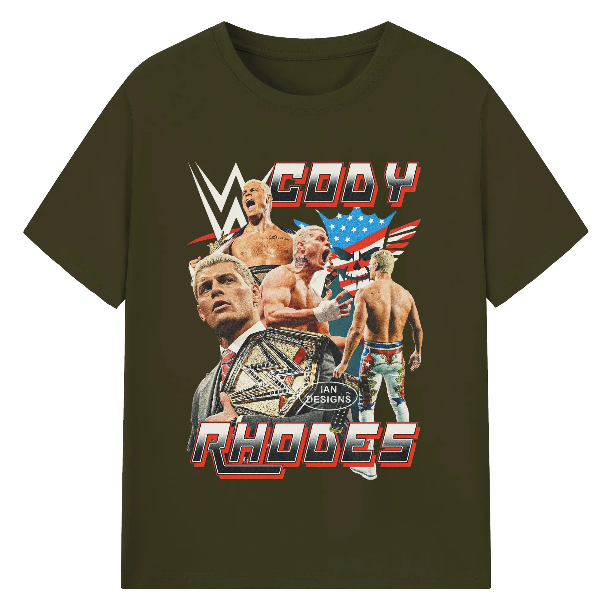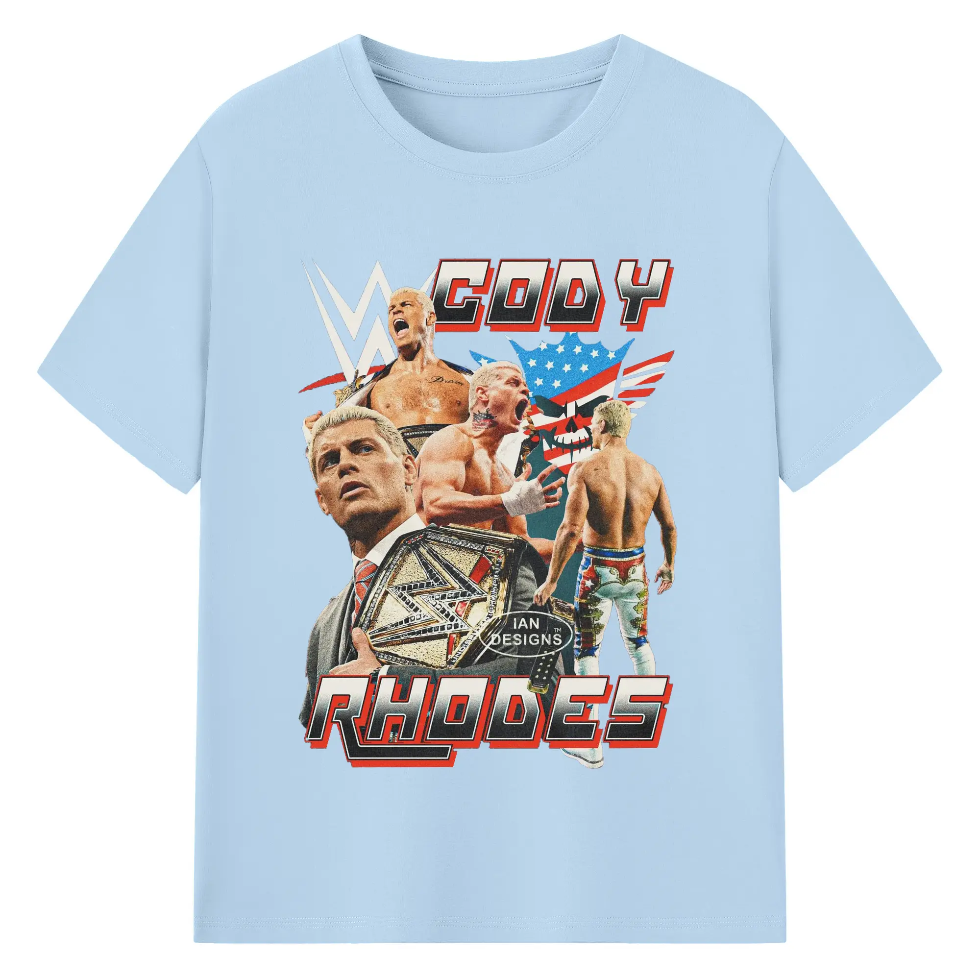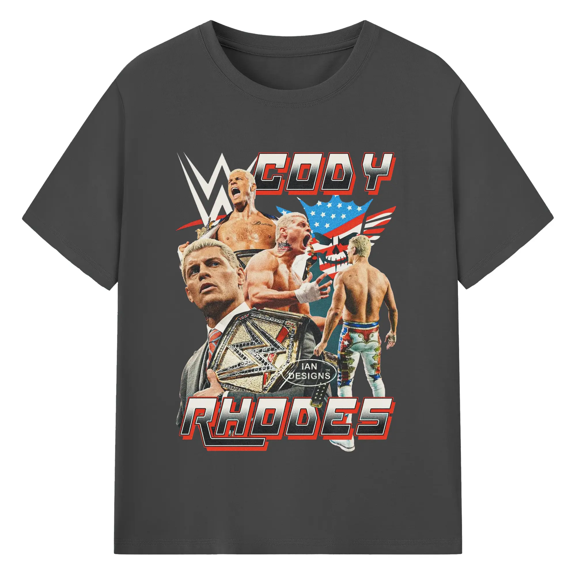 Cody Rhodes WWE Champion Collage DIY Shirt - 180g Cotton T-Shirt With Front Heat Transfer Print – Soft, Lightweight, Fitted Design – Comfortable Casual Wear For Sports & Everyday Use