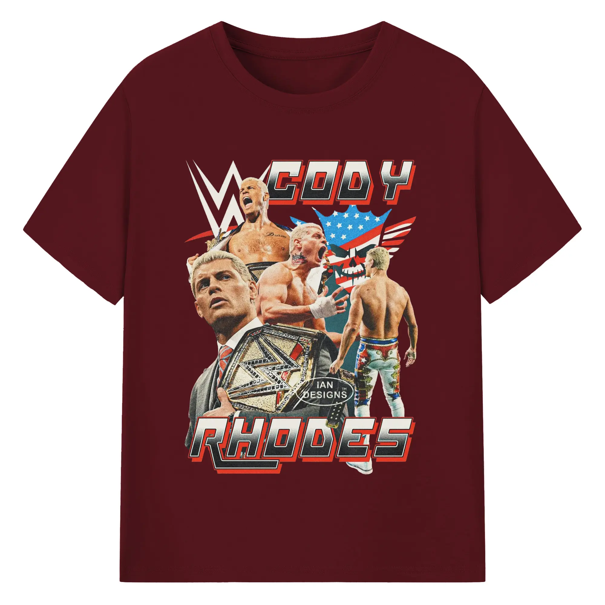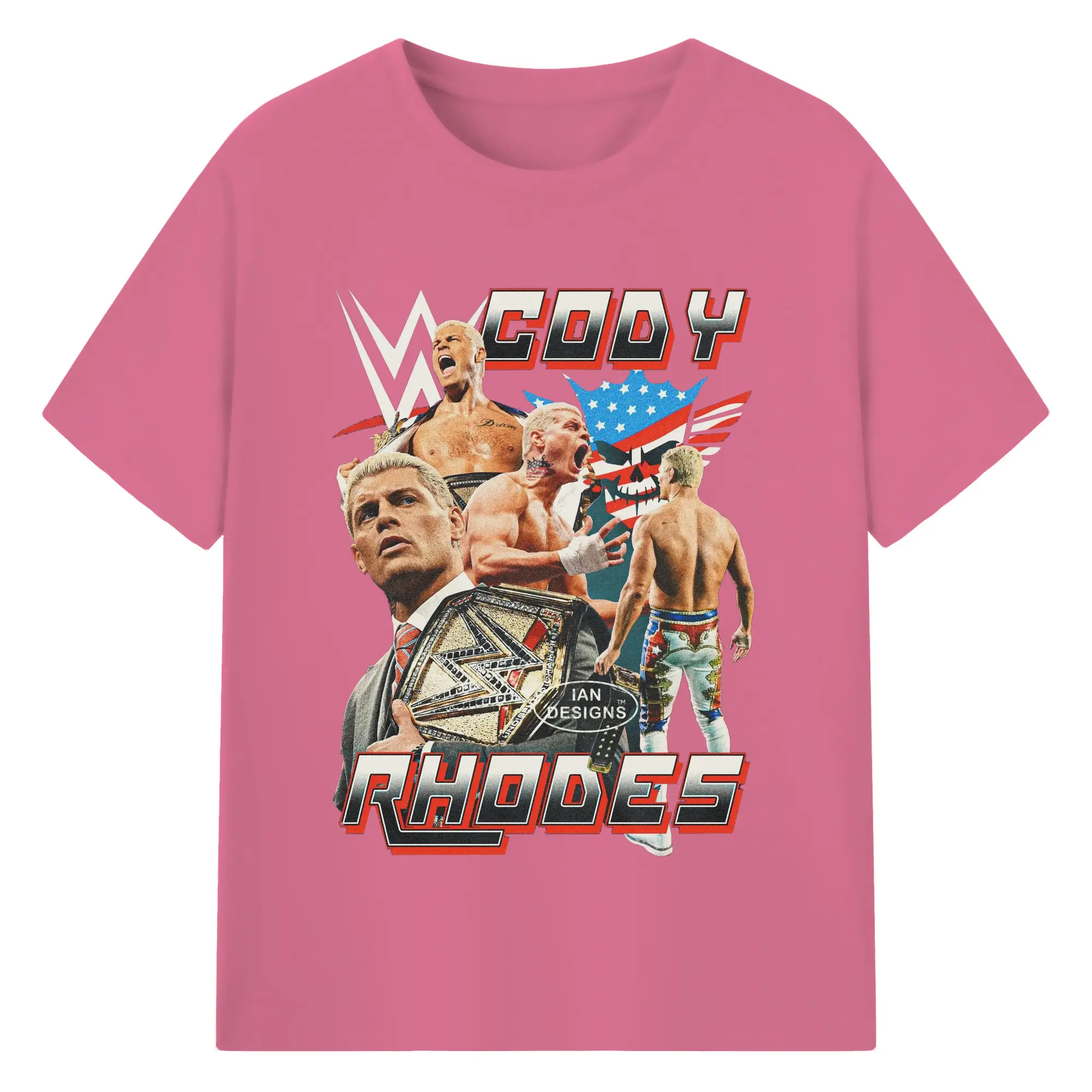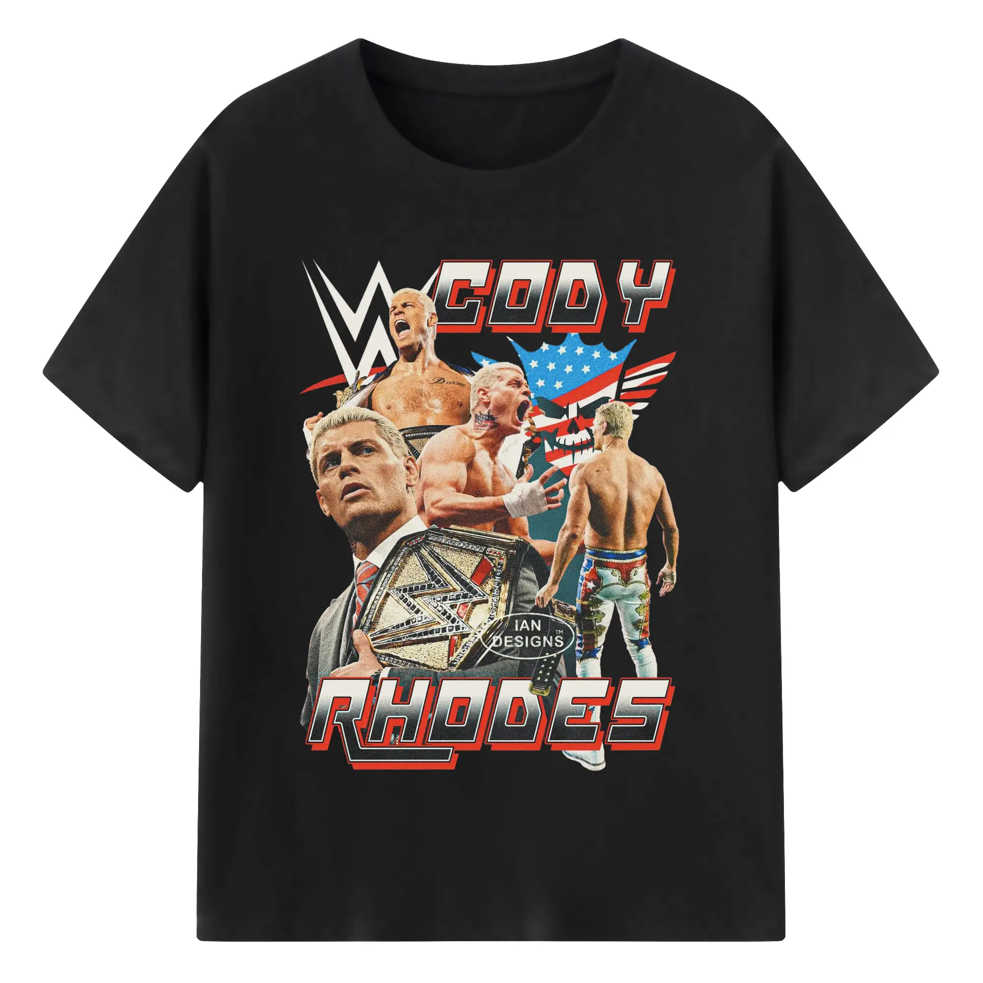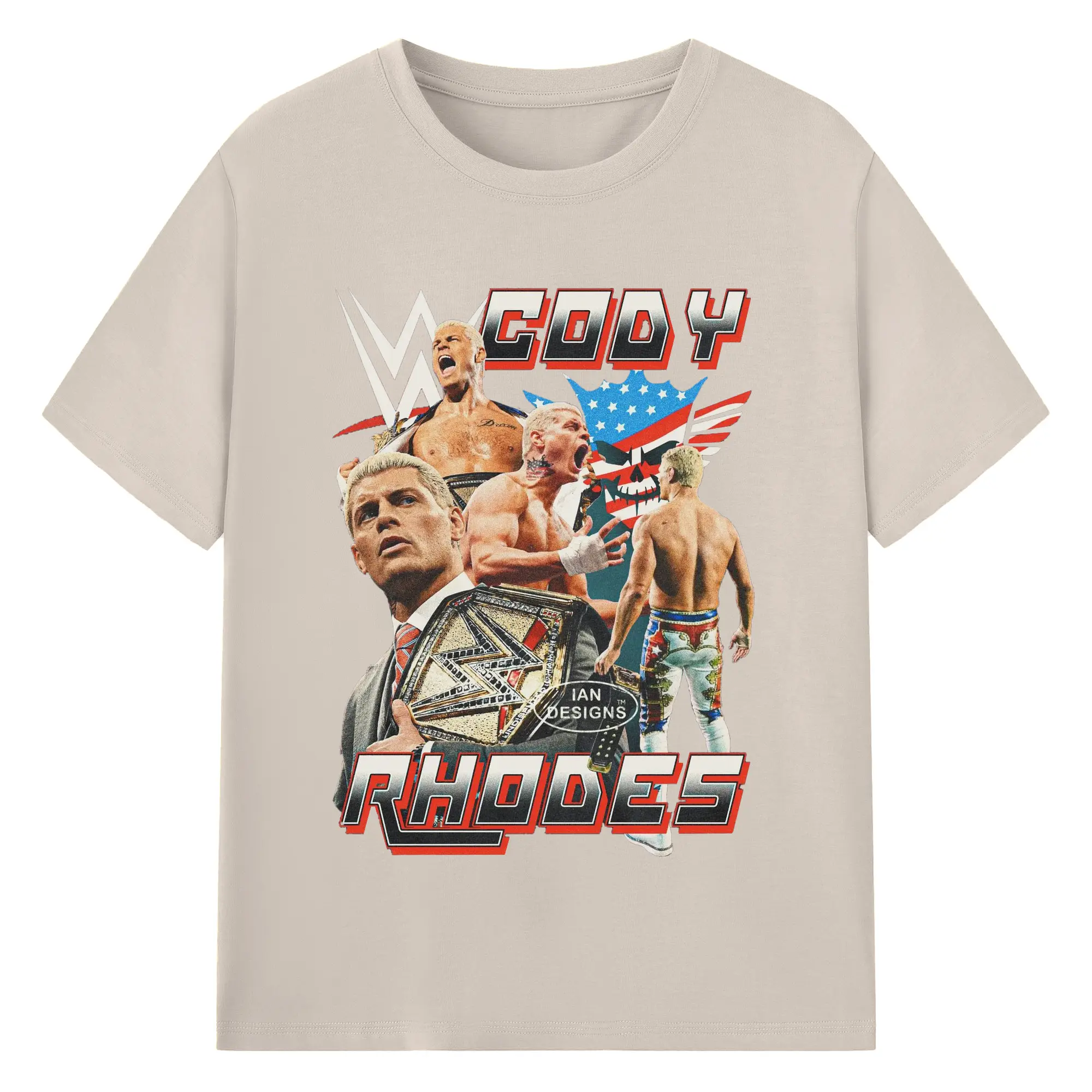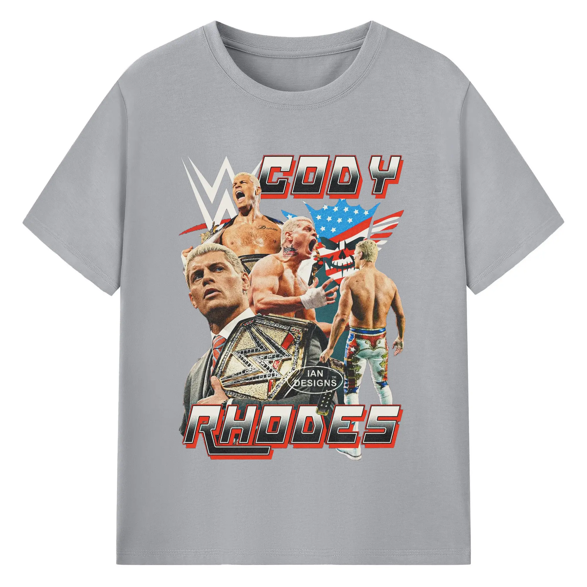 Cody Rhodes WWE Champion Collage DIY Shirt - 180g Cotton T-Shirt With Front Heat Transfer Print – Soft, Lightweight, Fitted Design – Comfortable Casual Wear For Sports & Everyday Use