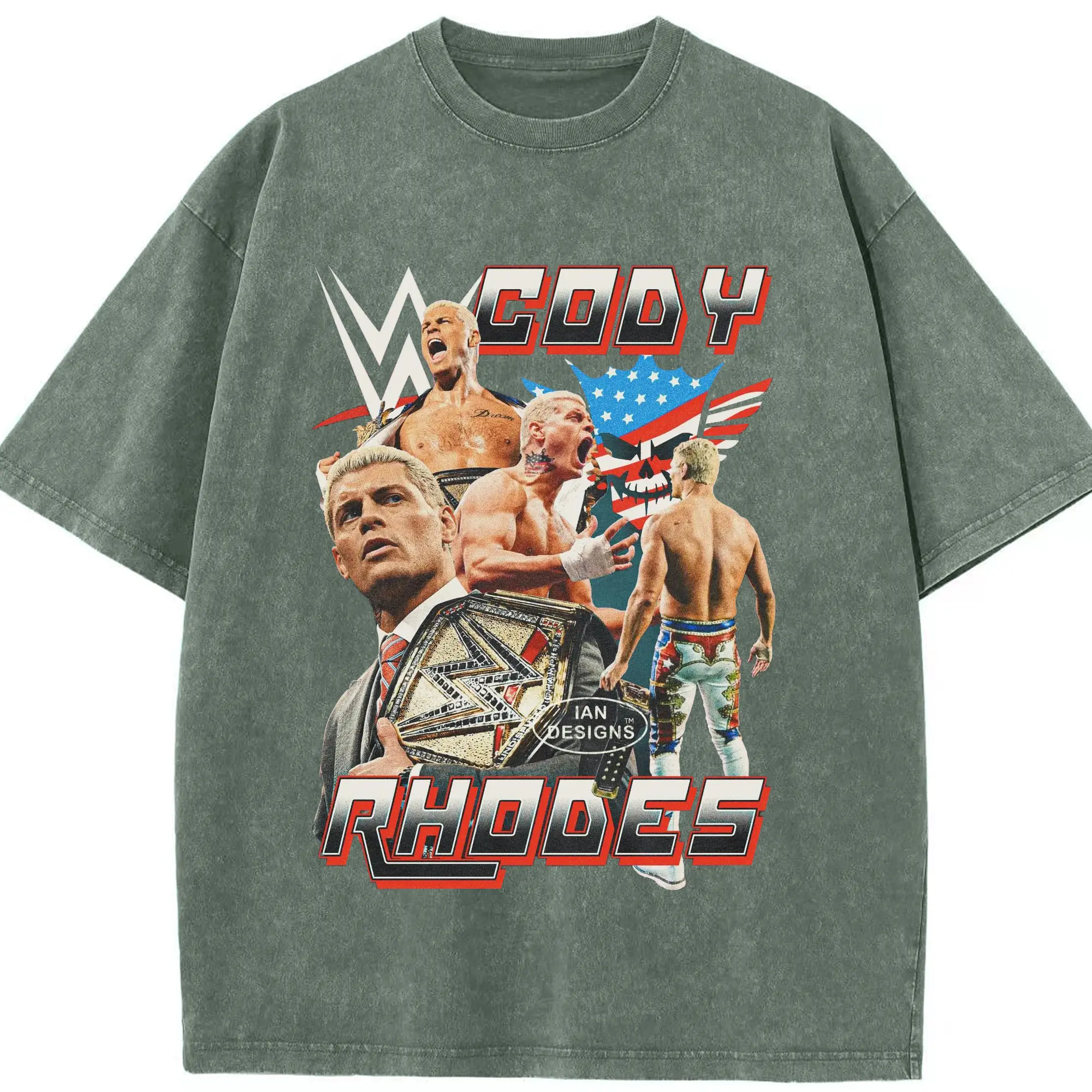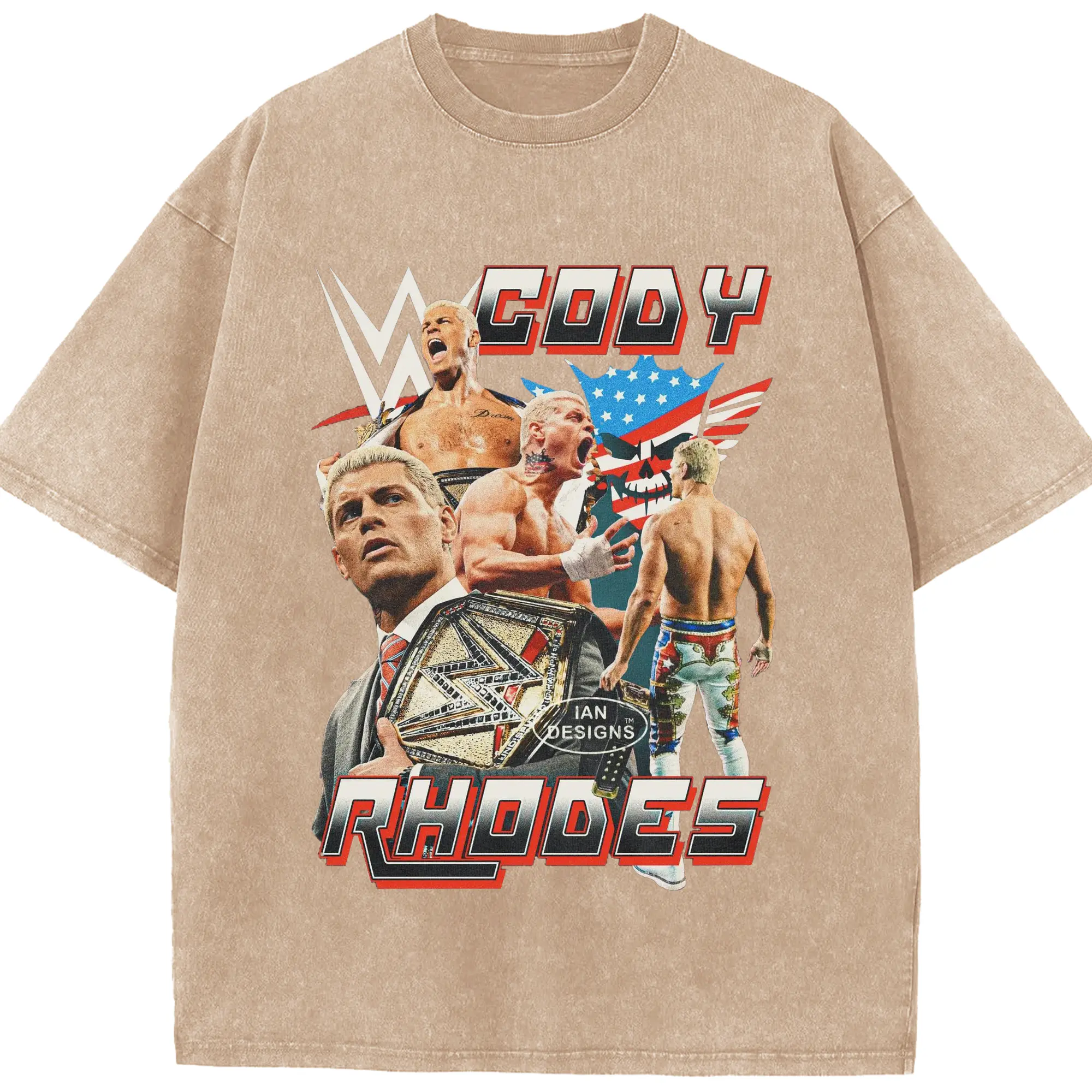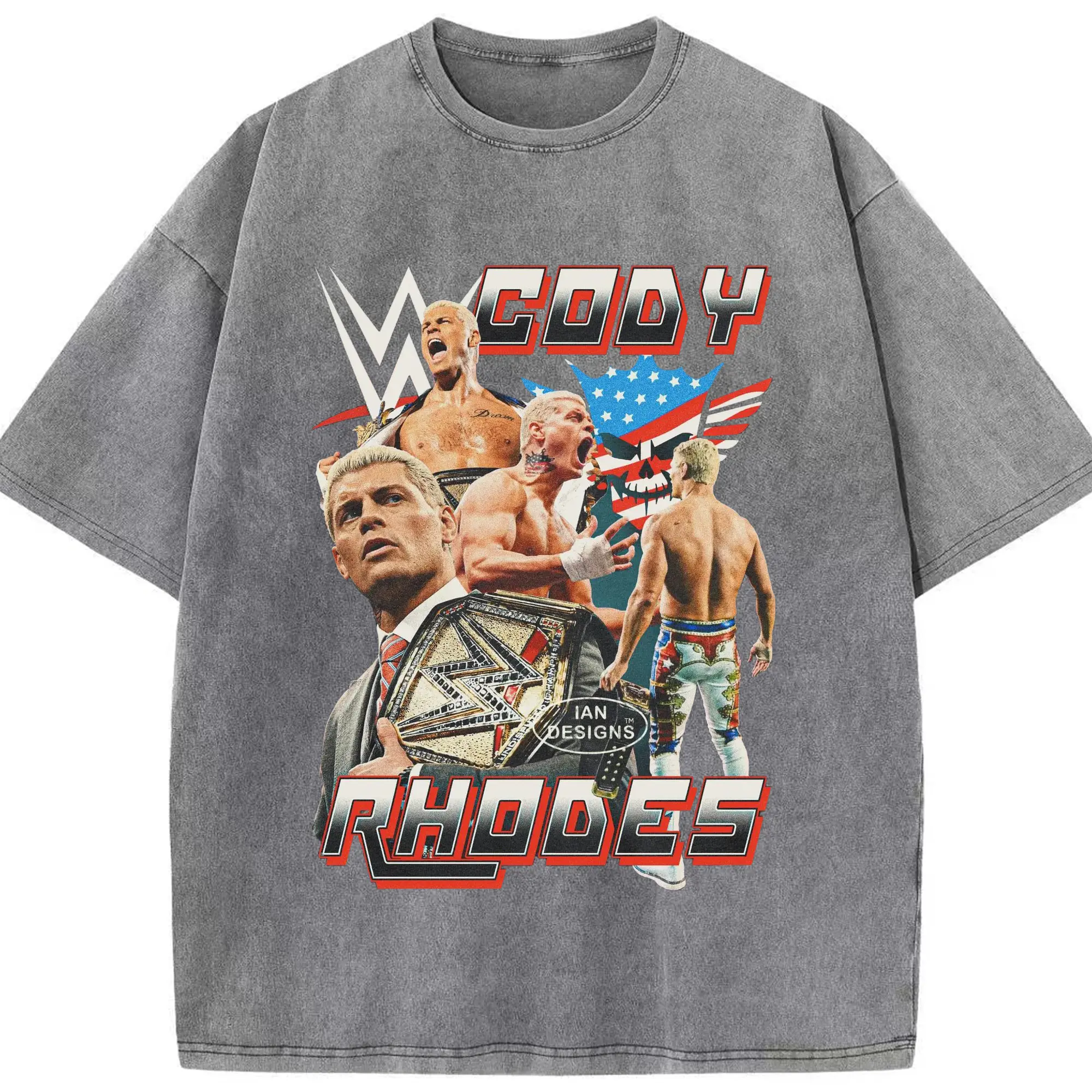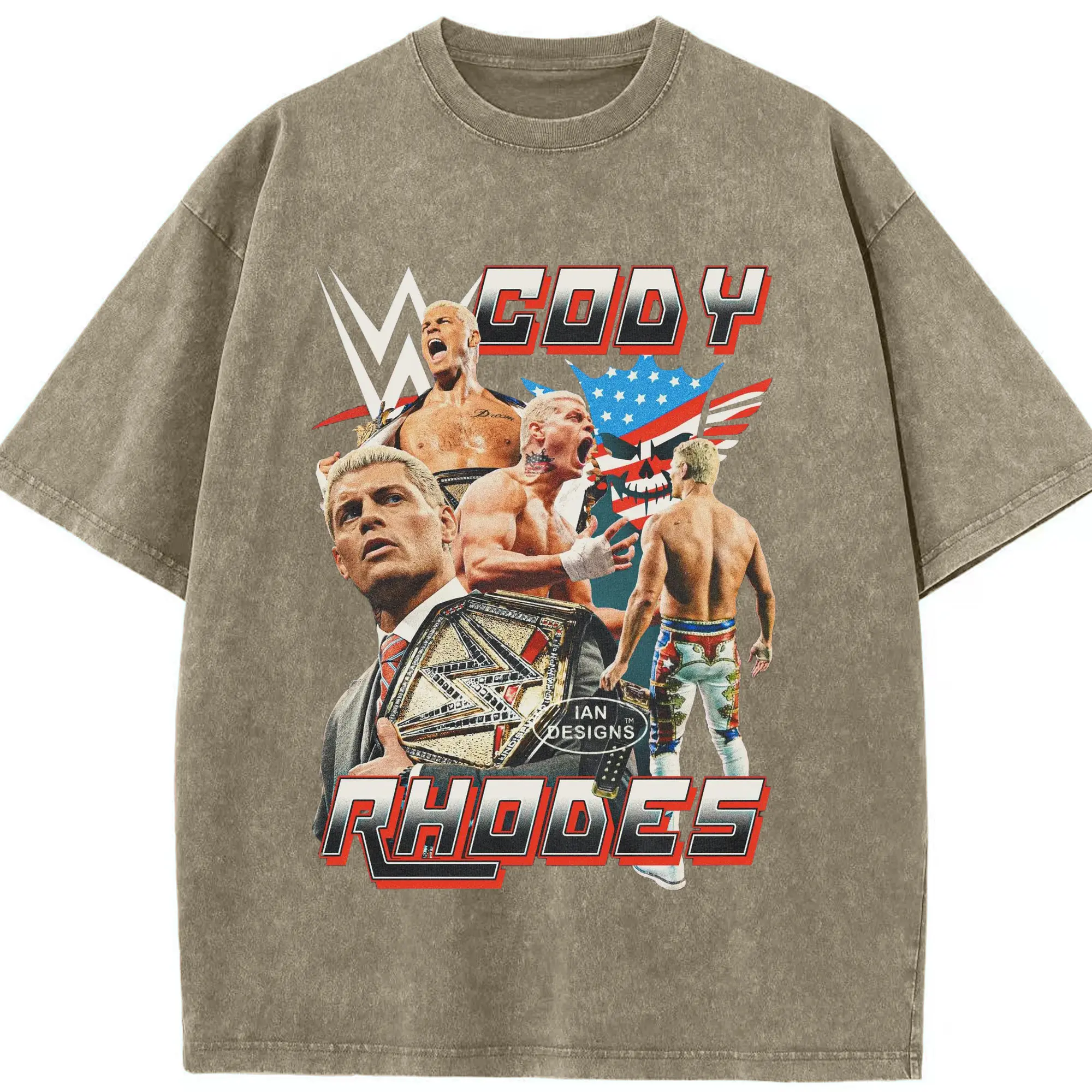 Cody Rhodes WWE Champion Collage DIY Shirt - Washed Vintage Look 230g Cotton Oversized T-Shirt With Front Heat Transfer Print – Soft, Lightweight, Stylish Fit – Comfortable Casual Wear For Sports & Everyday Use