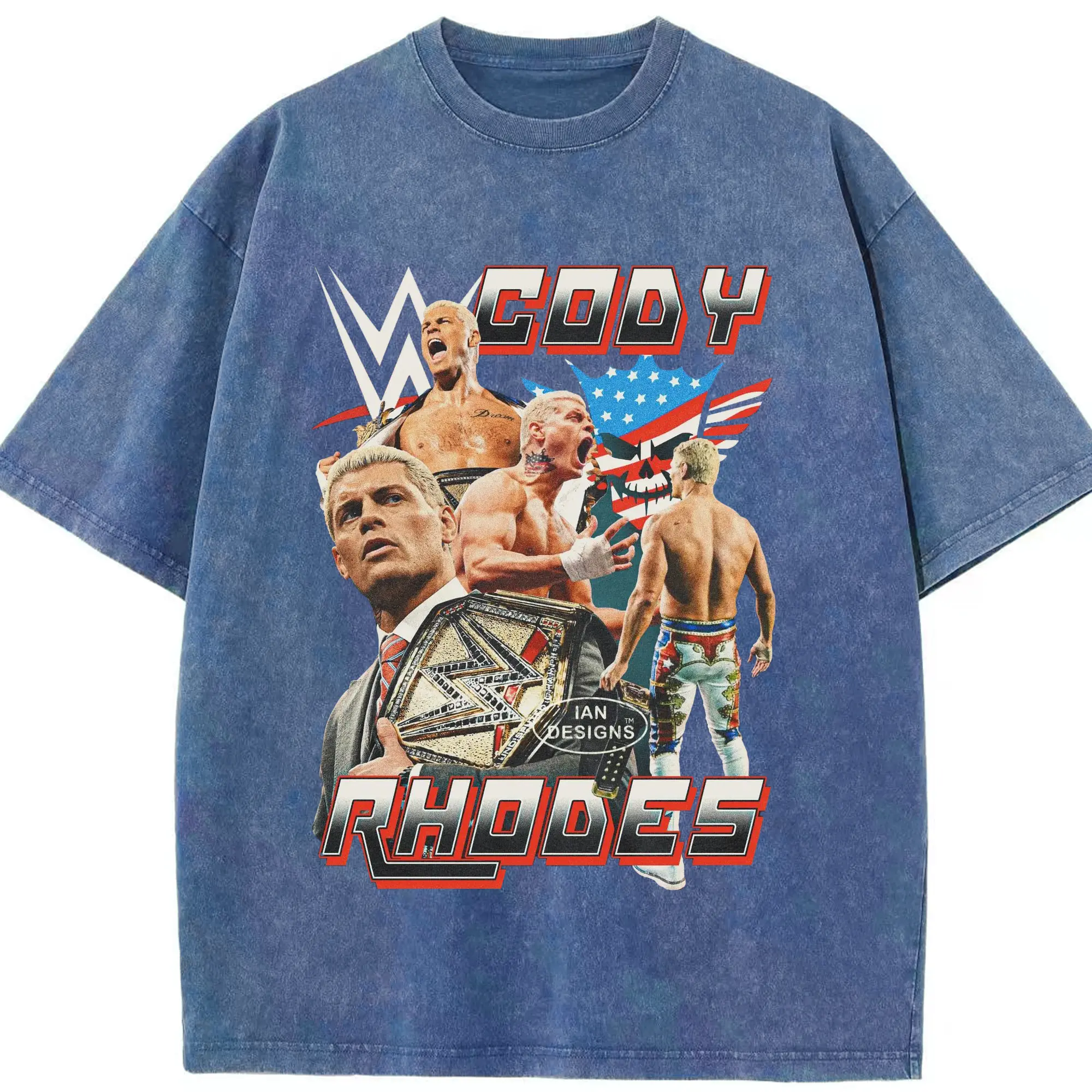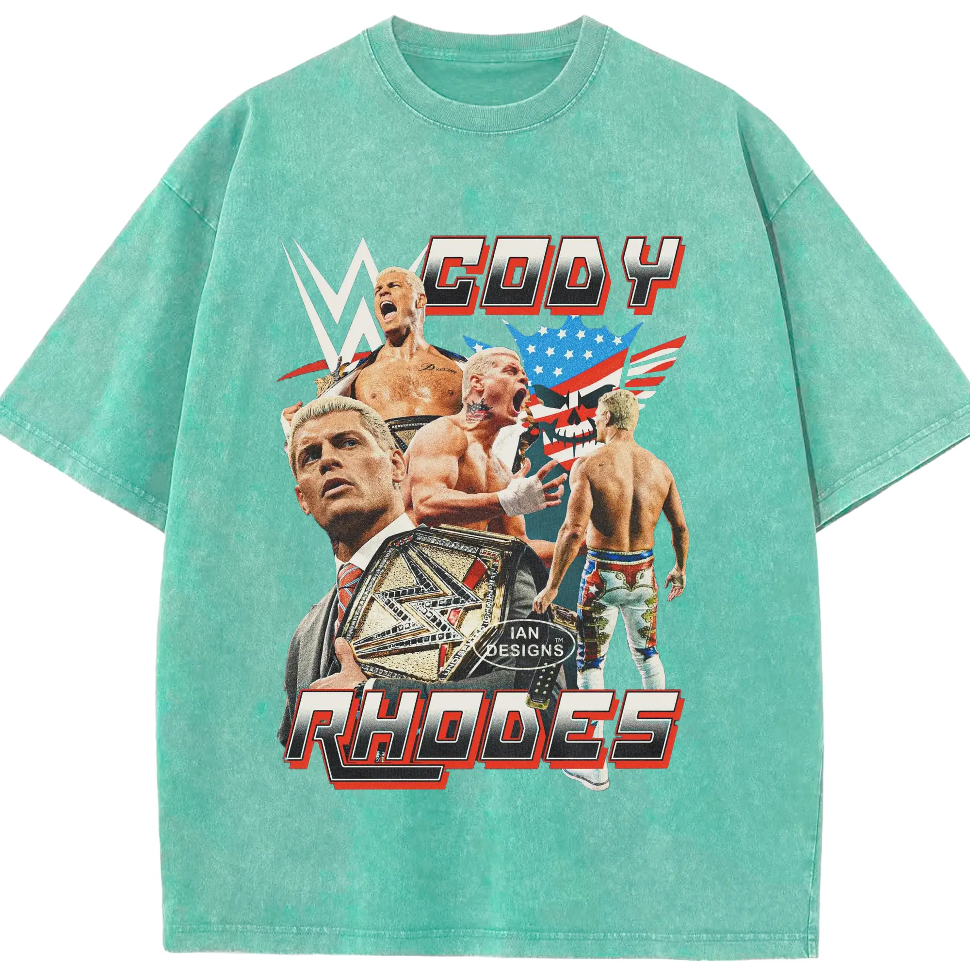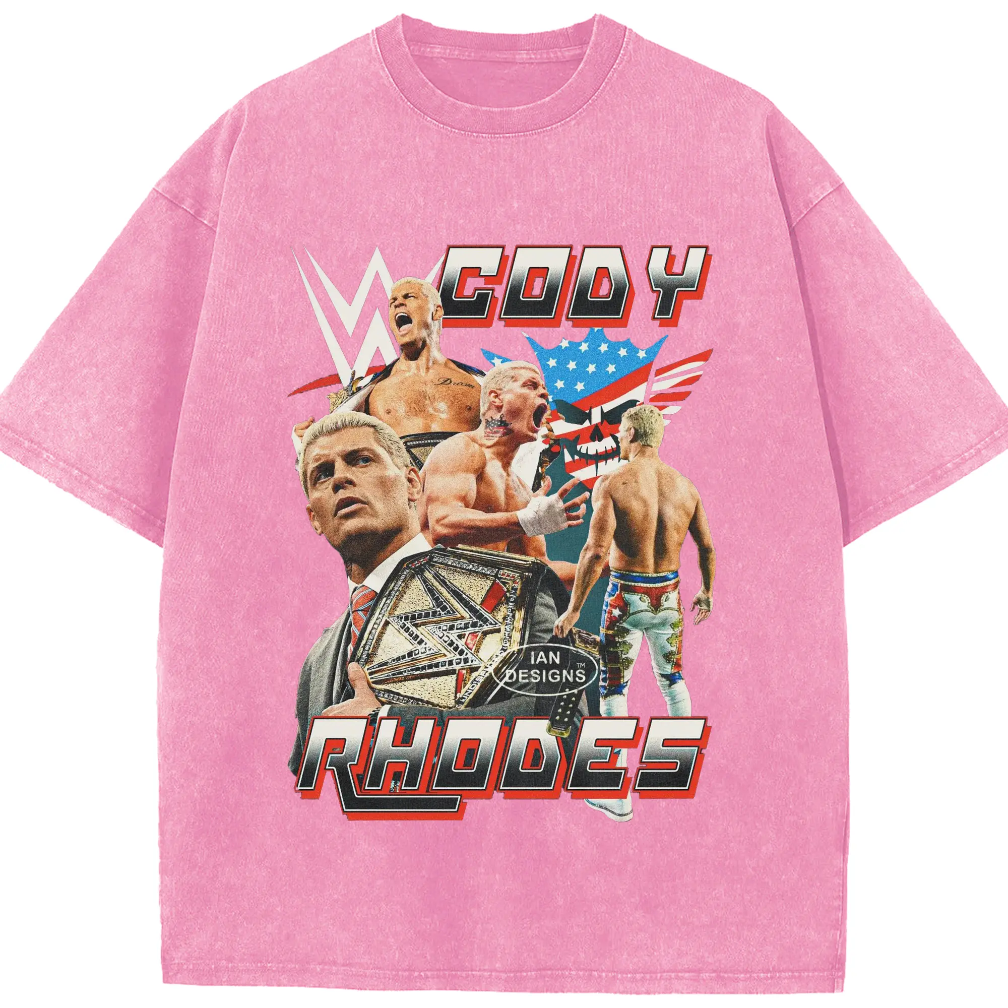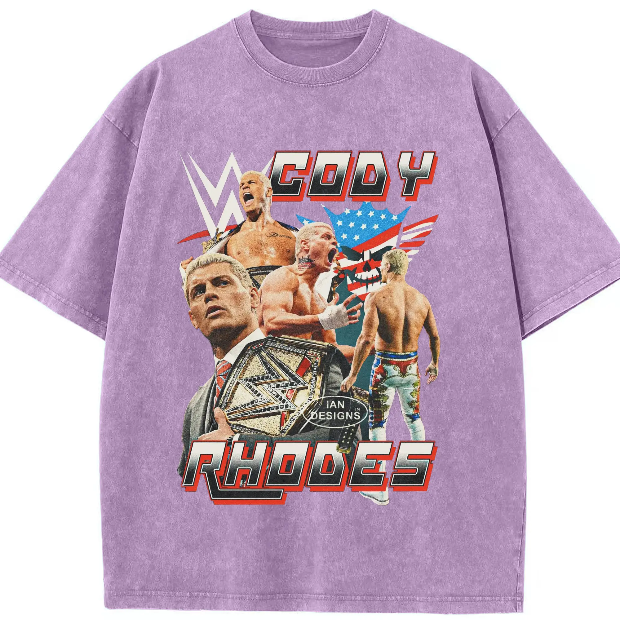 Cody Rhodes WWE Champion Collage DIY Shirt - Washed Vintage Look 230g Cotton Oversized T-Shirt With Front Heat Transfer Print – Soft, Lightweight, Stylish Fit – Comfortable Casual Wear For Sports & Everyday Use