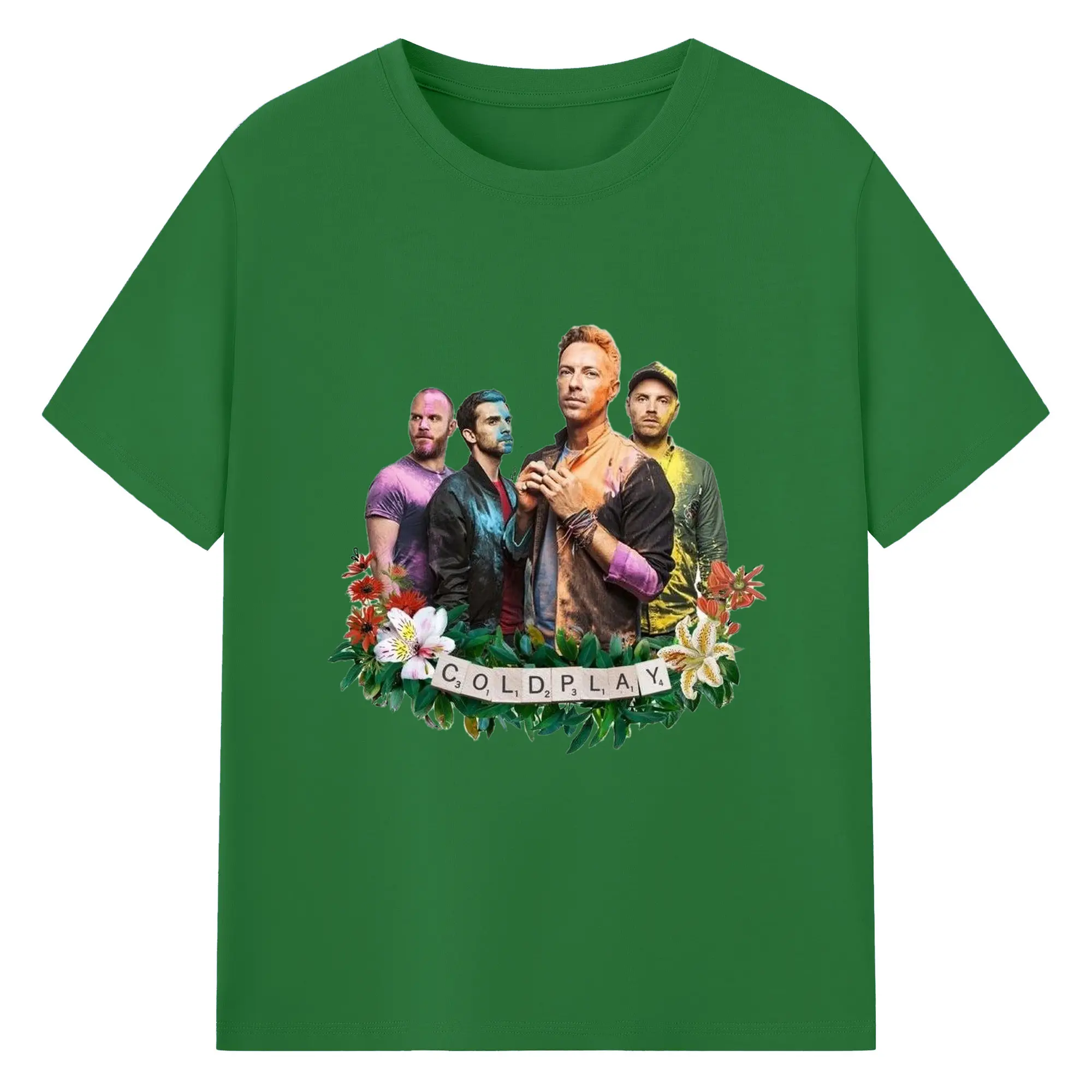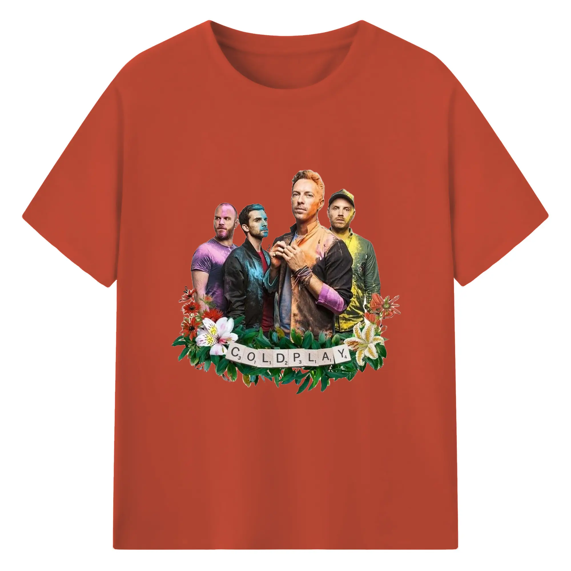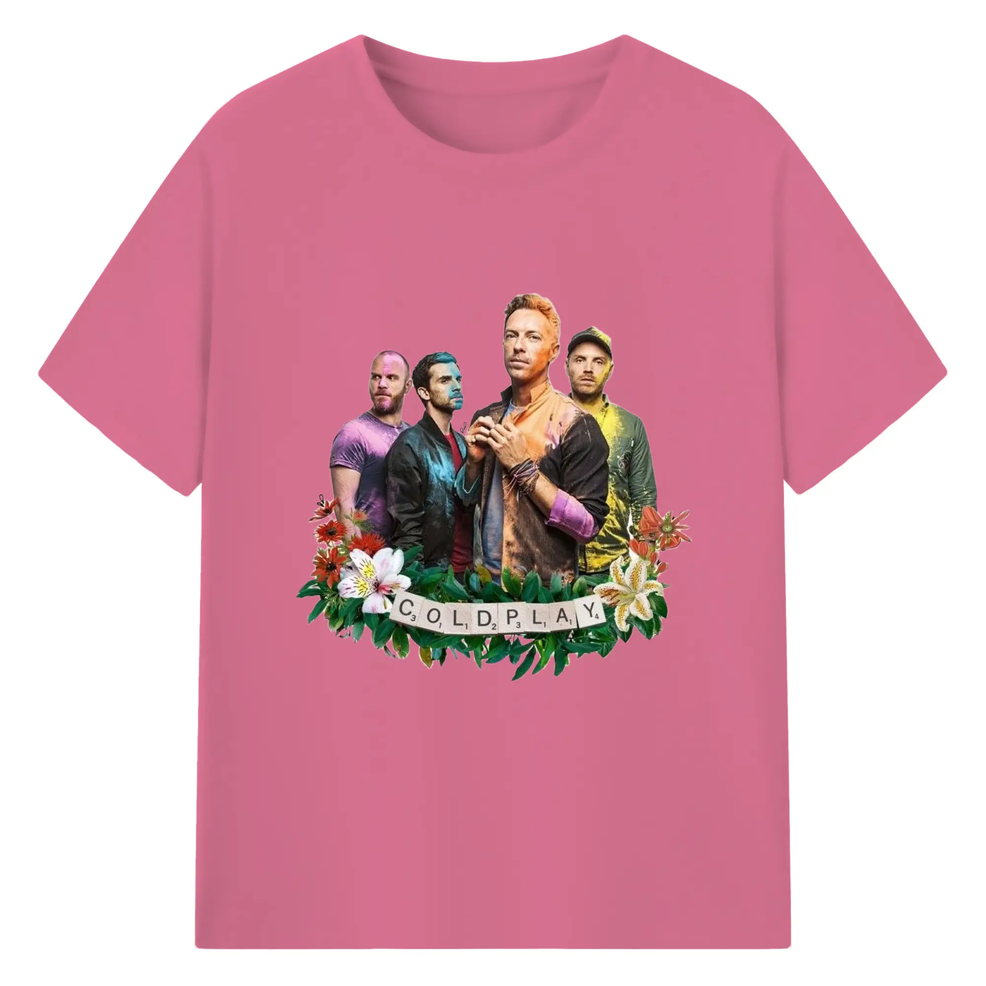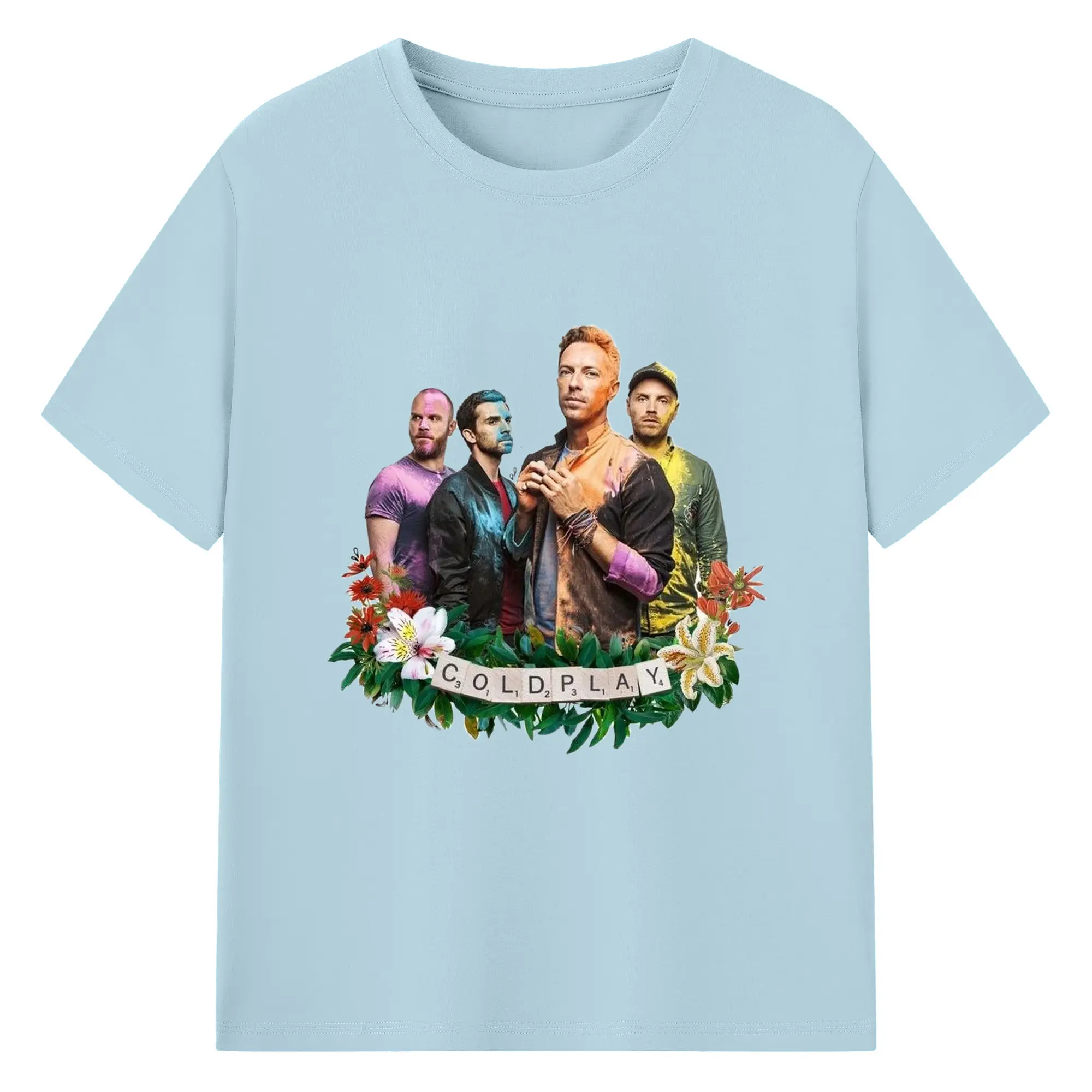 Coldplay Floral Art Rock DIY - 180g Cotton T-Shirt With Front Heat Transfer Print – Soft, Lightweight, Fitted Design – Comfortable Casual Wear For Sports & Everyday Use