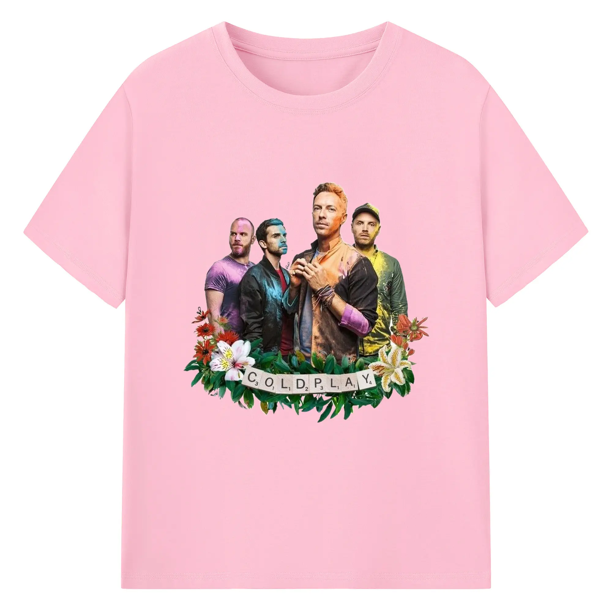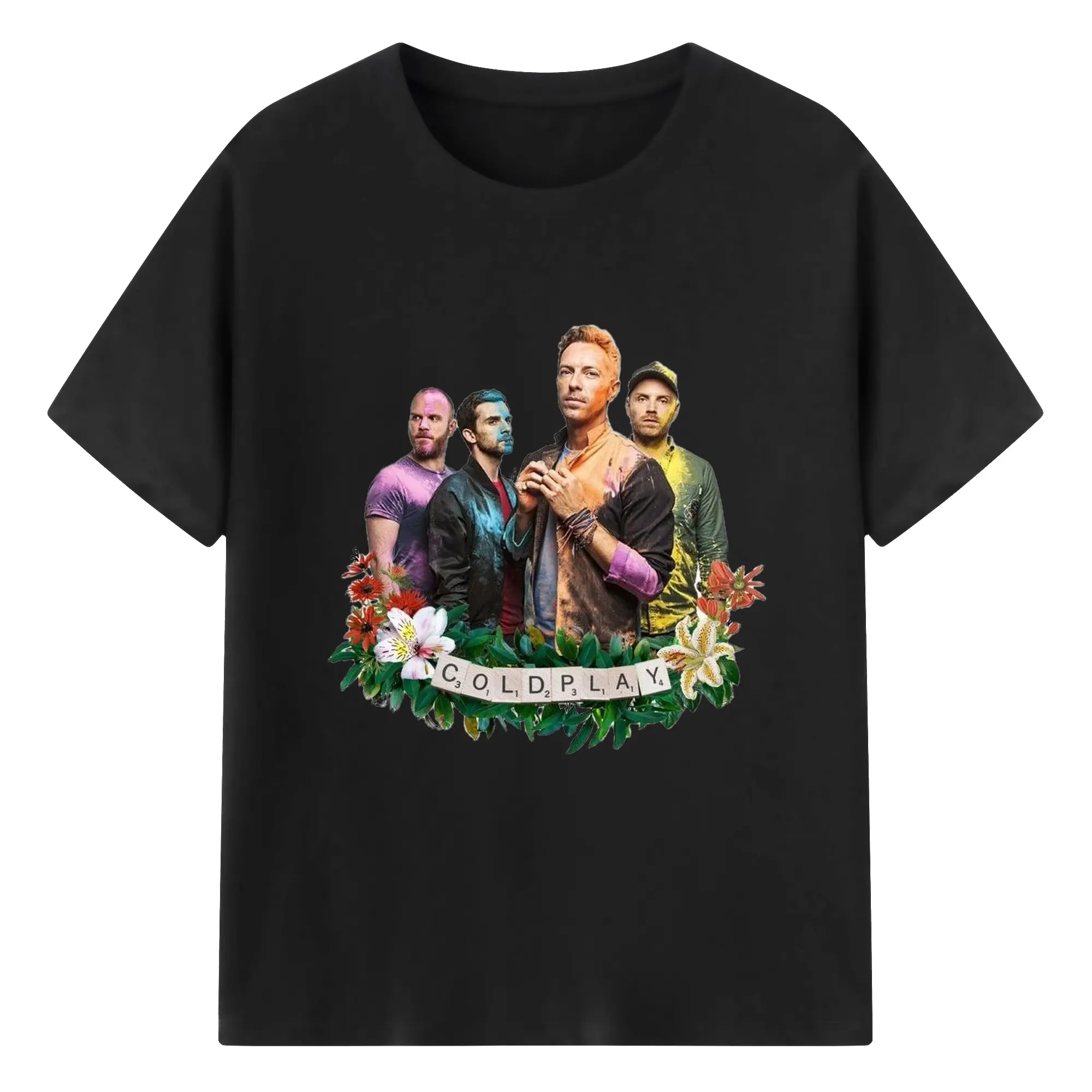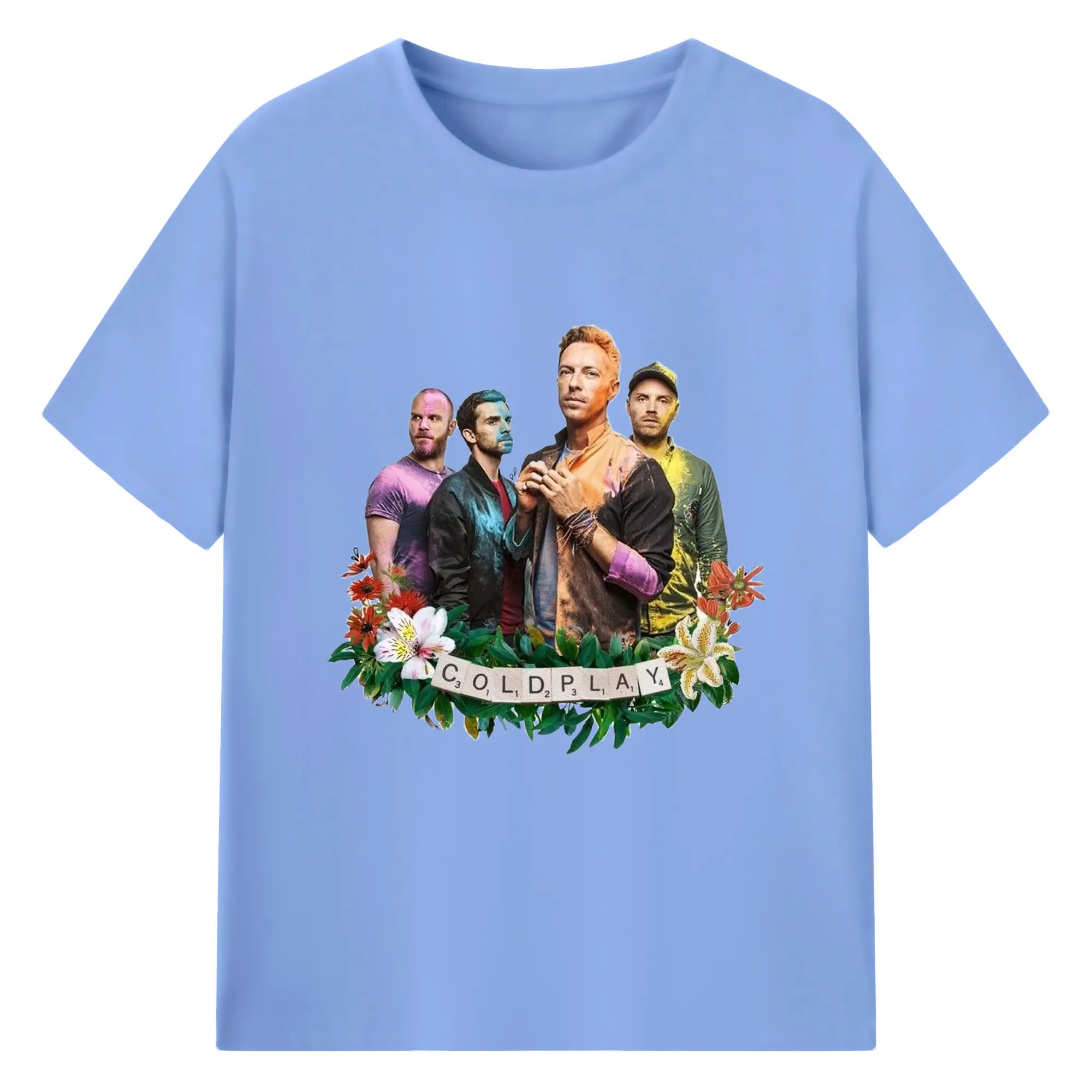 Coldplay Floral Art Rock DIY - 180g Cotton T-Shirt With Front Heat Transfer Print – Soft, Lightweight, Fitted Design – Comfortable Casual Wear For Sports & Everyday Use
