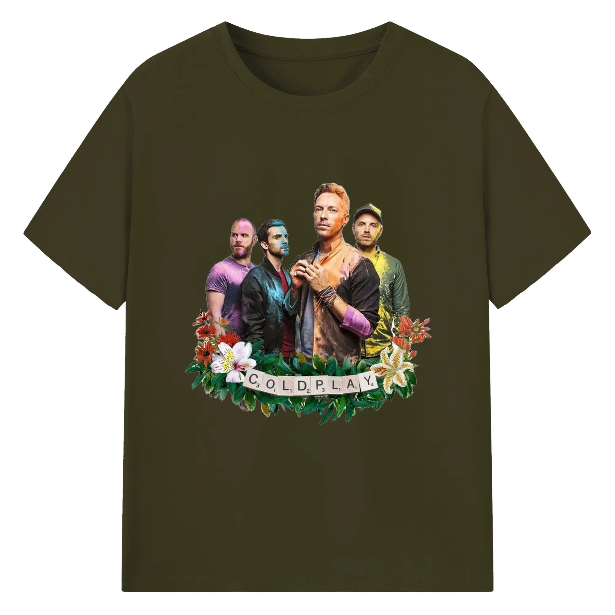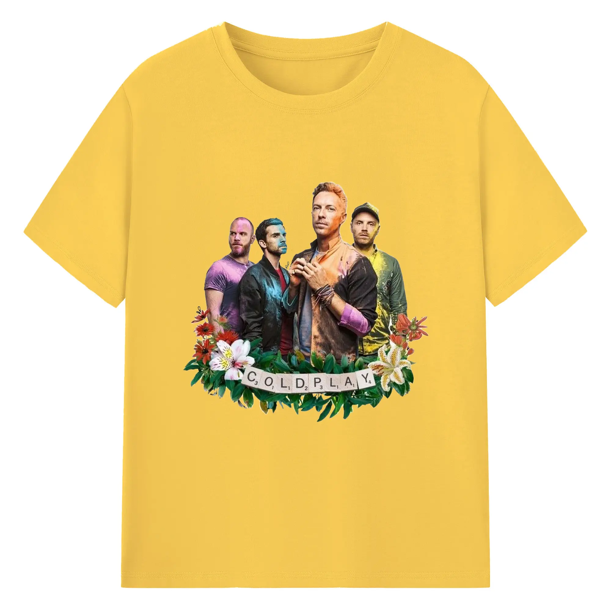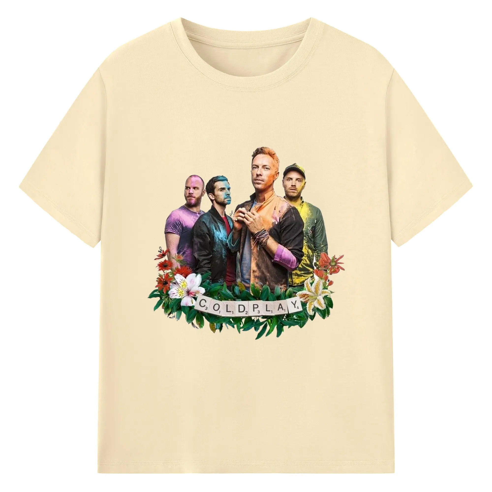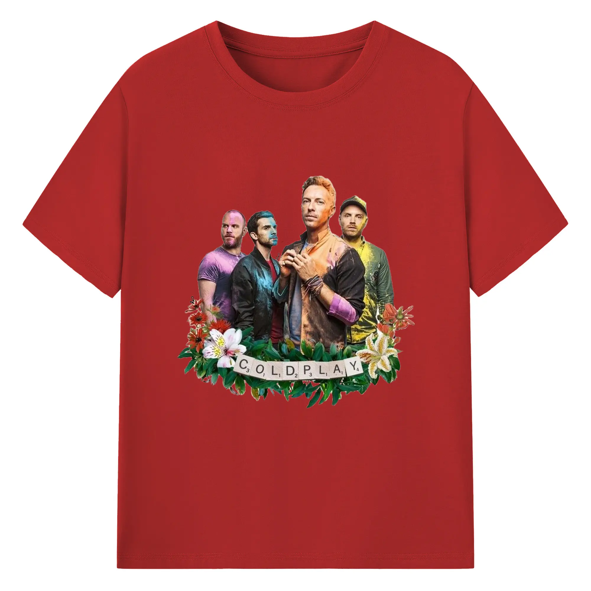 Coldplay Floral Art Rock DIY - 180g Cotton T-Shirt With Front Heat Transfer Print – Soft, Lightweight, Fitted Design – Comfortable Casual Wear For Sports & Everyday Use