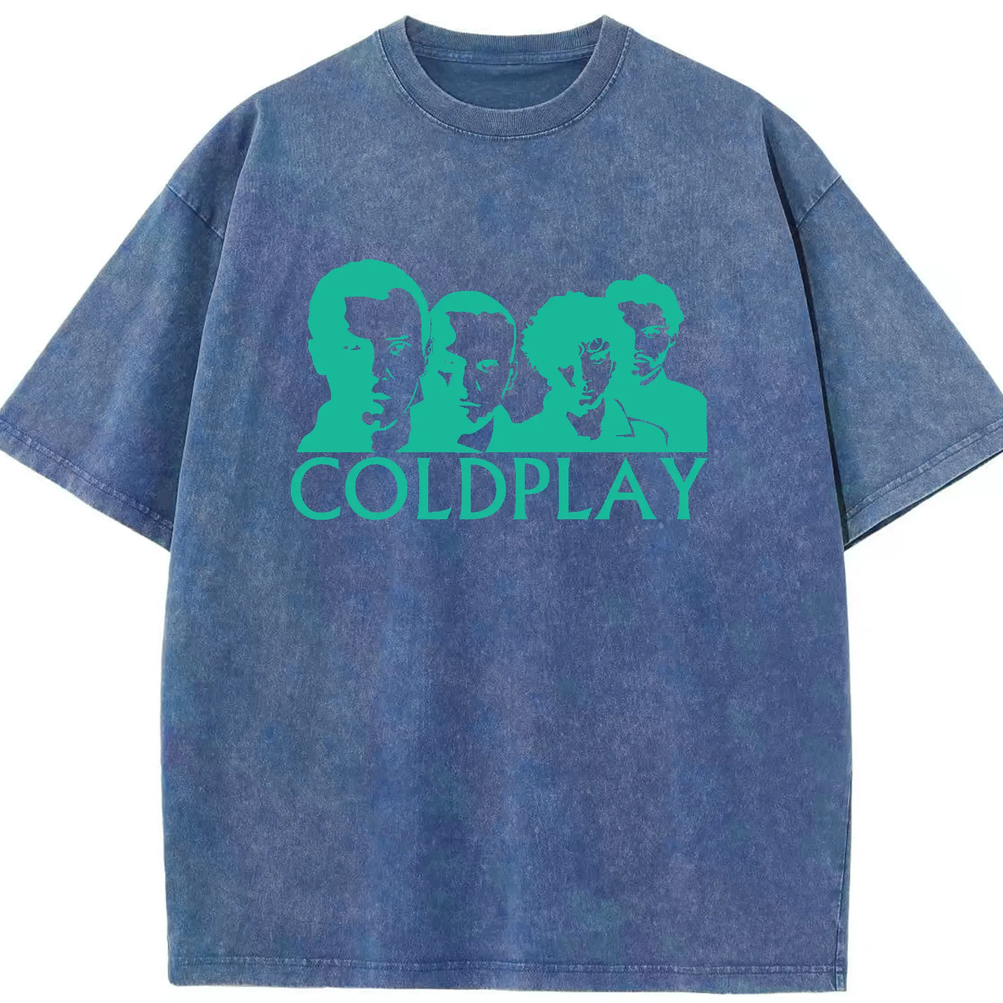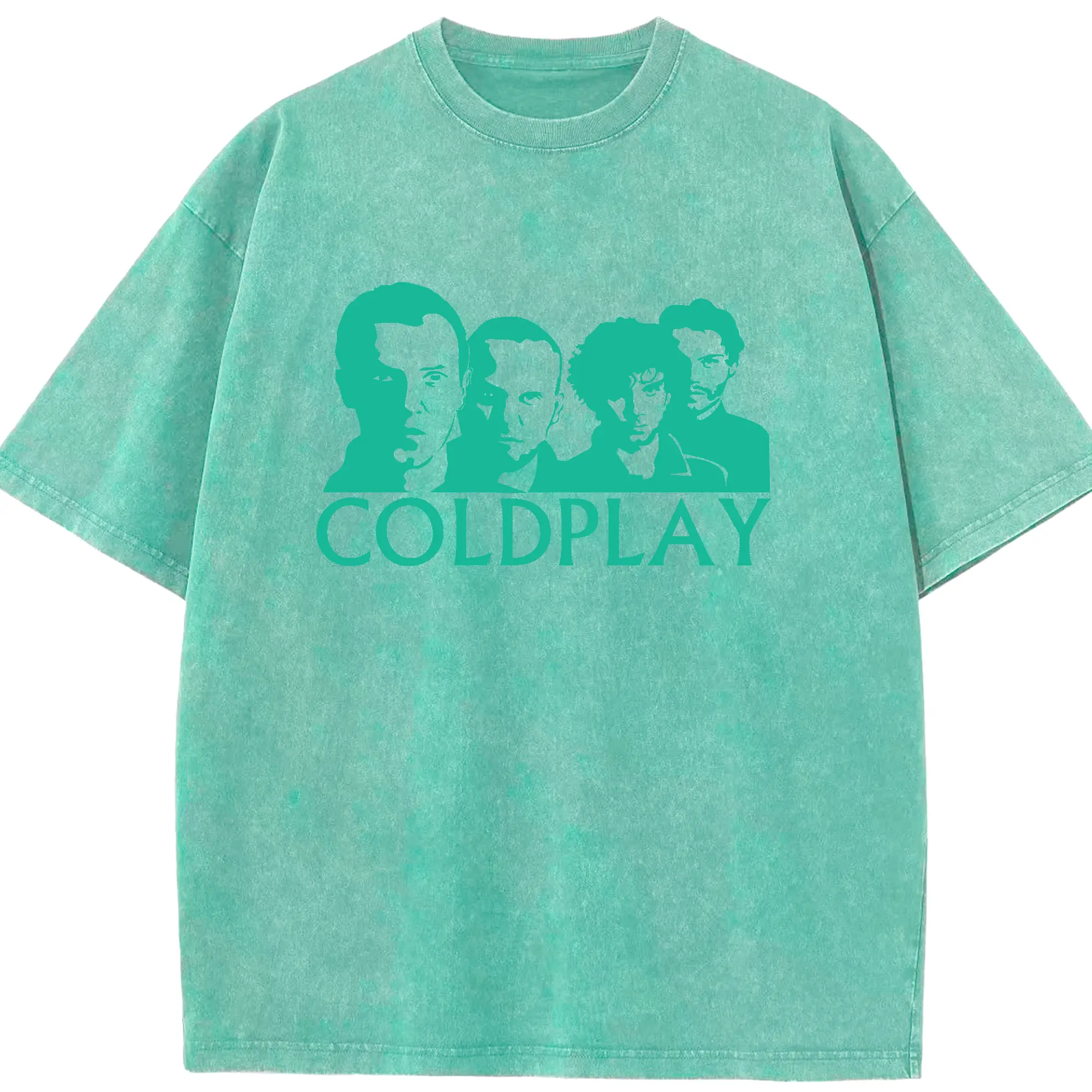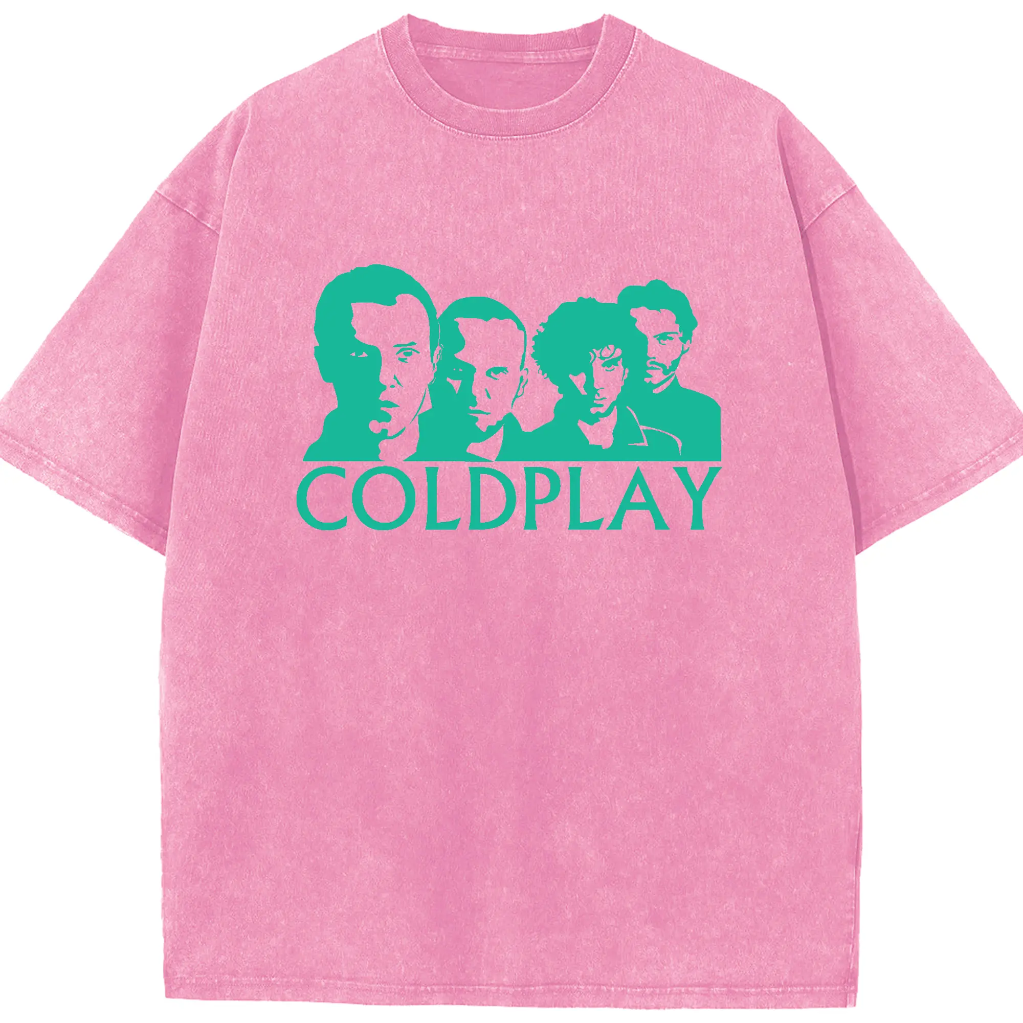 Coldplay Tiffany color Logo DIY - Washed Vintage Look 230g Cotton Oversized T-Shirt With Front Heat Transfer Print – Soft, Lightweight, Stylish Fit – Comfortable Casual Wear For Sports & Everyday Use