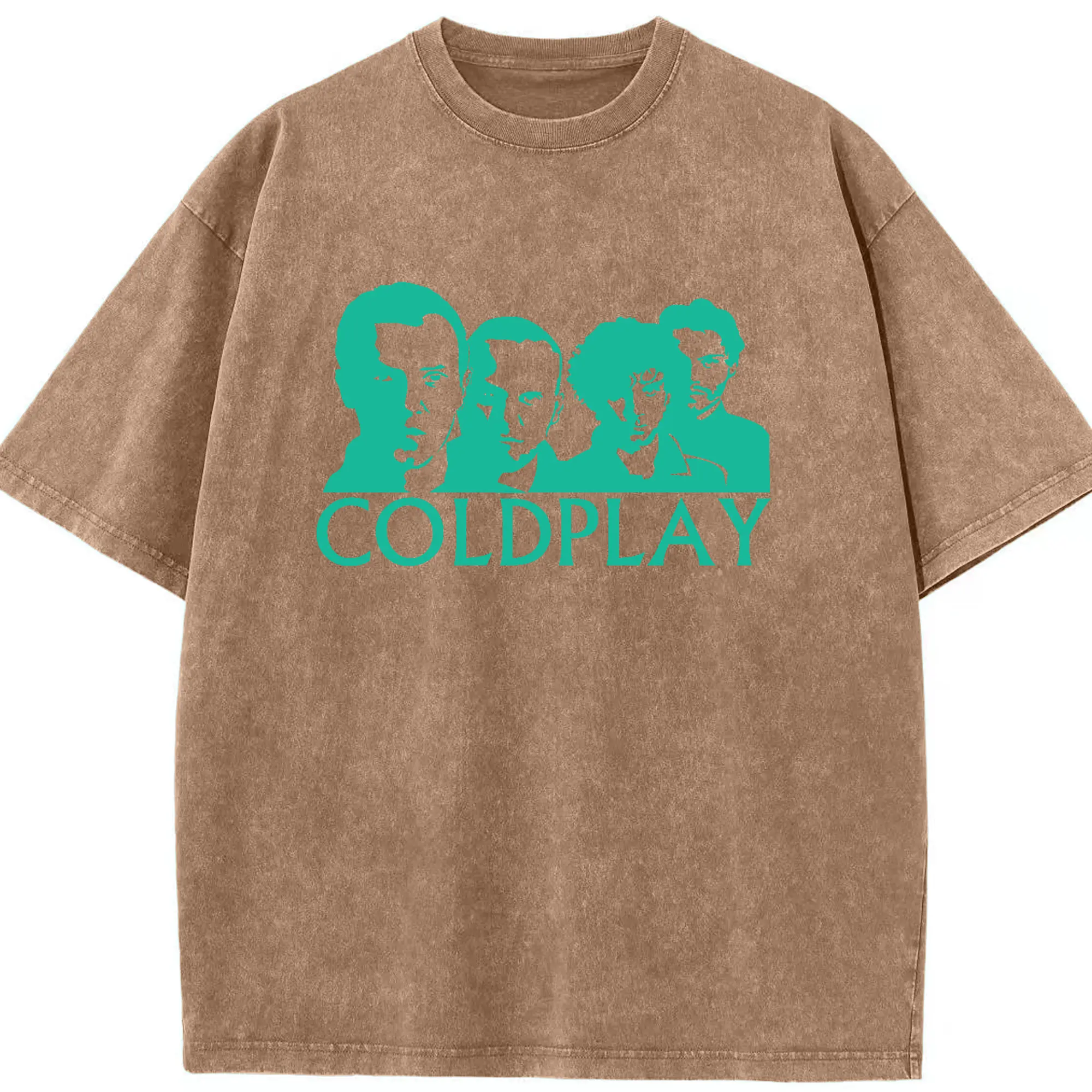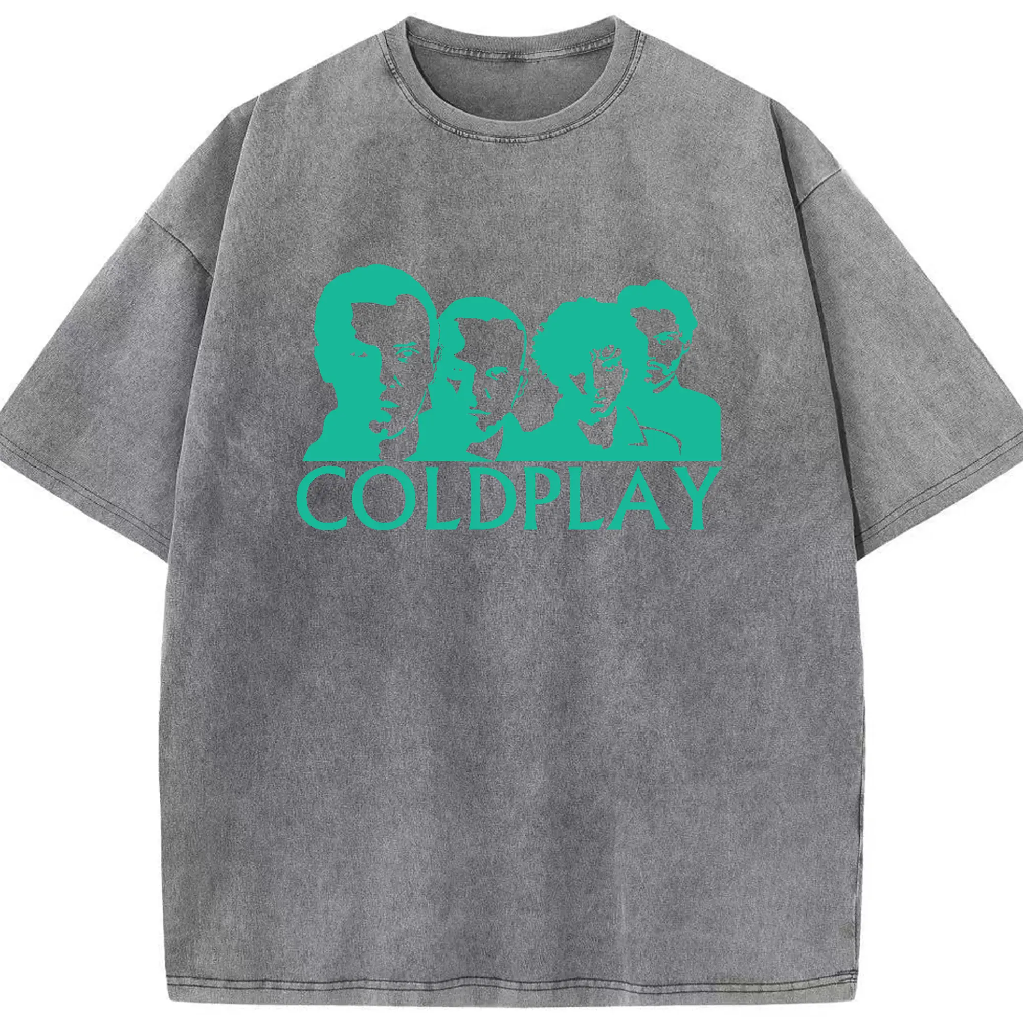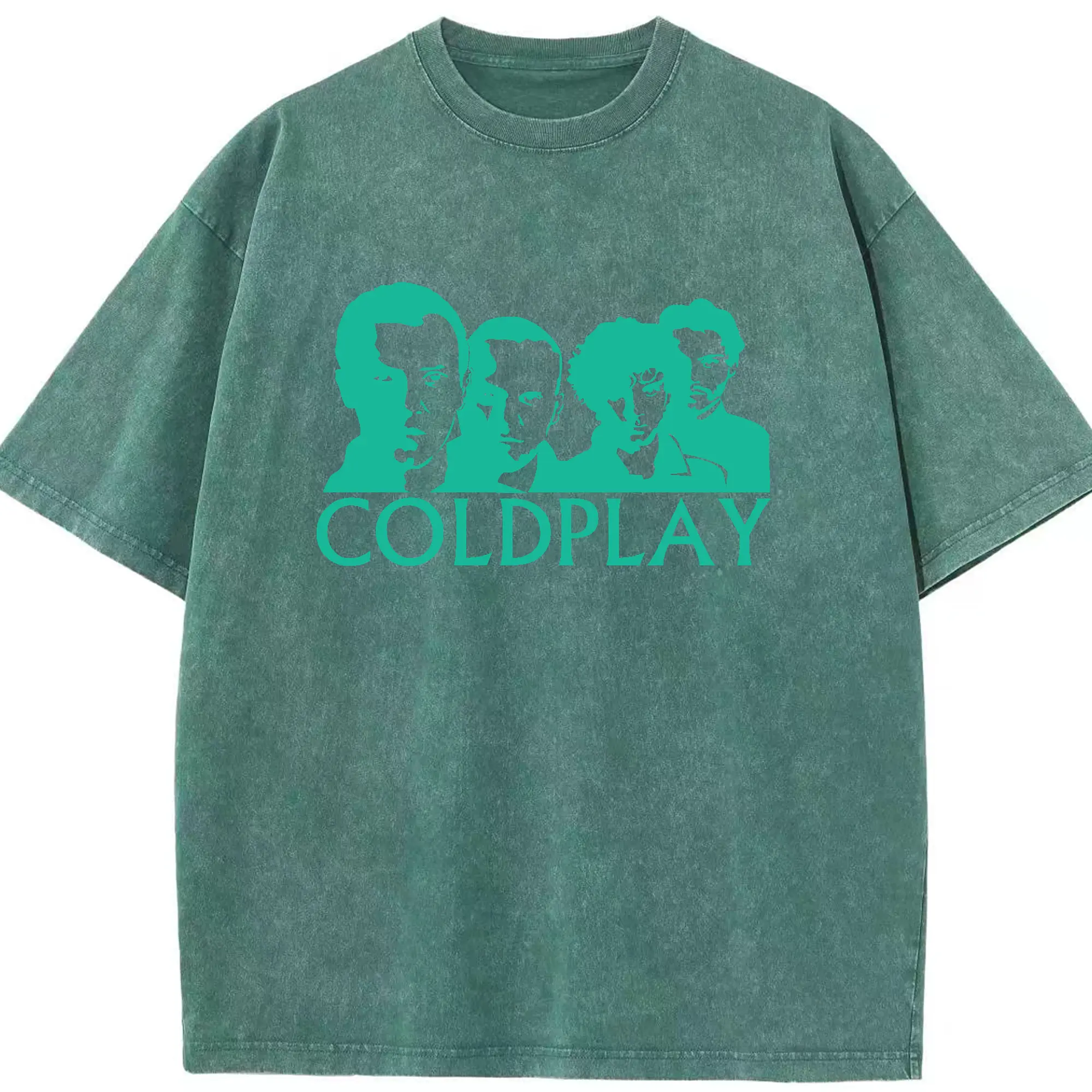 Coldplay Tiffany color Logo DIY - Washed Vintage Look 230g Cotton Oversized T-Shirt With Front Heat Transfer Print – Soft, Lightweight, Stylish Fit – Comfortable Casual Wear For Sports & Everyday Use