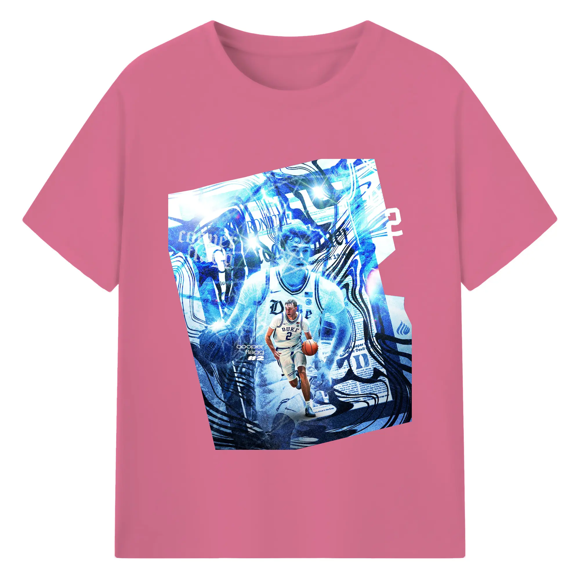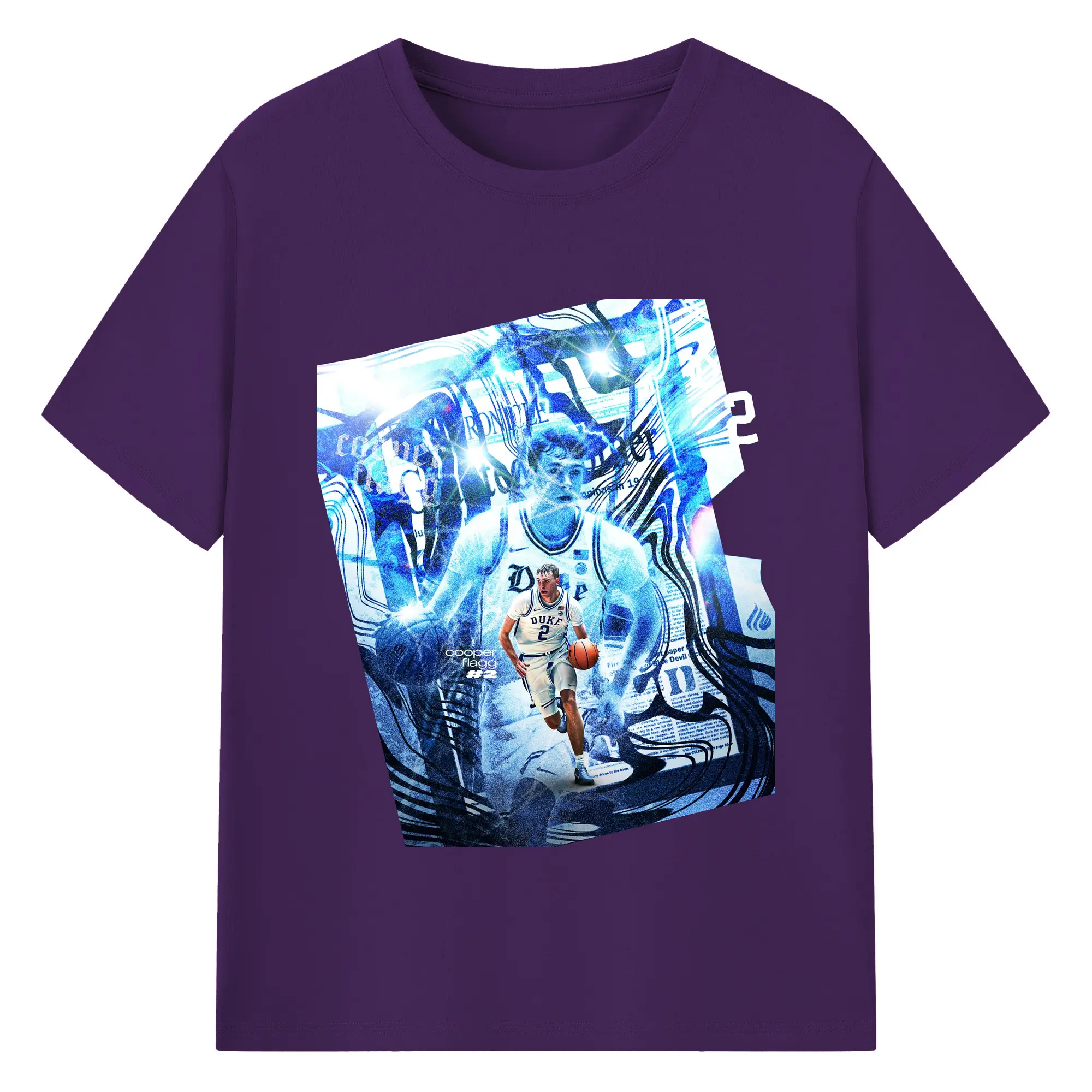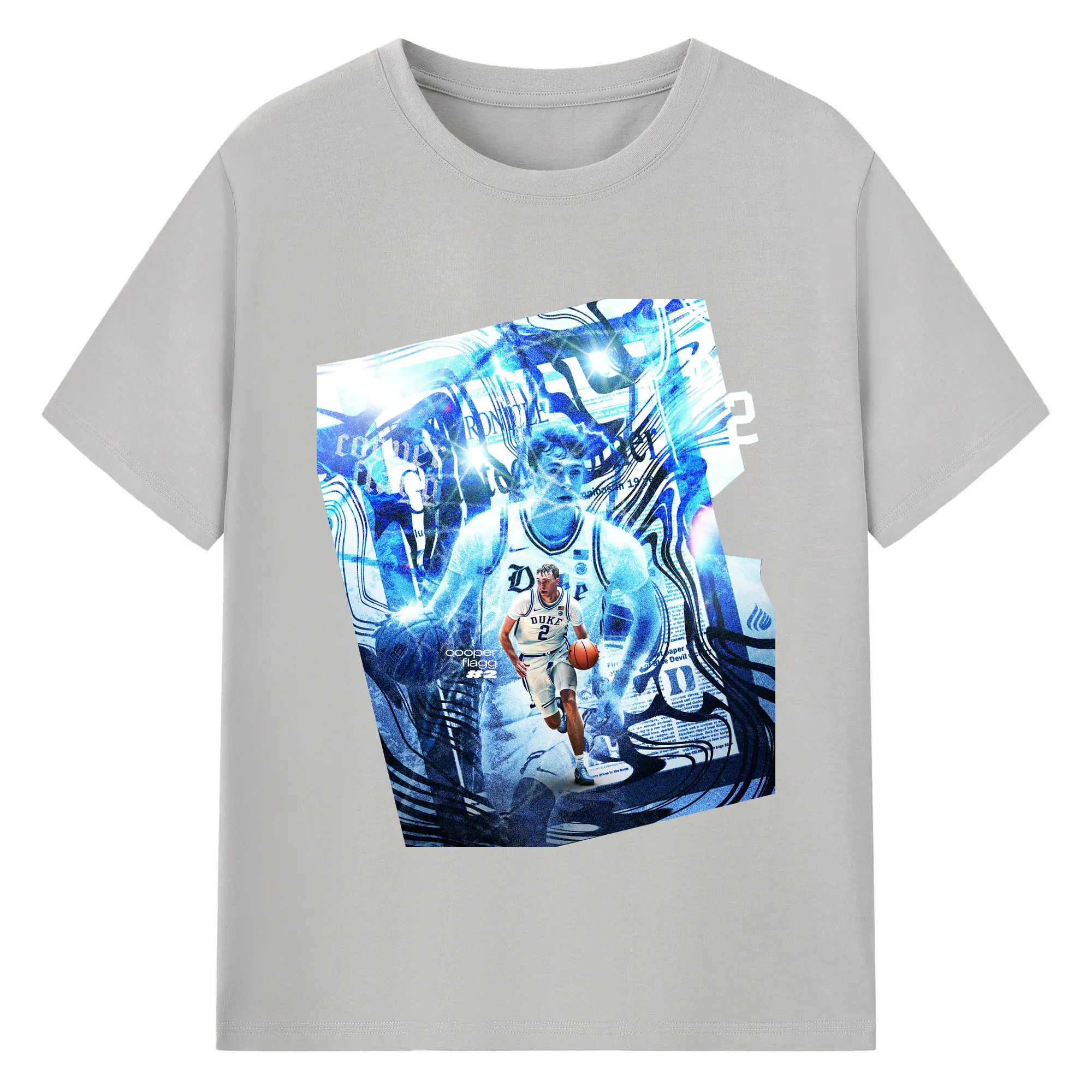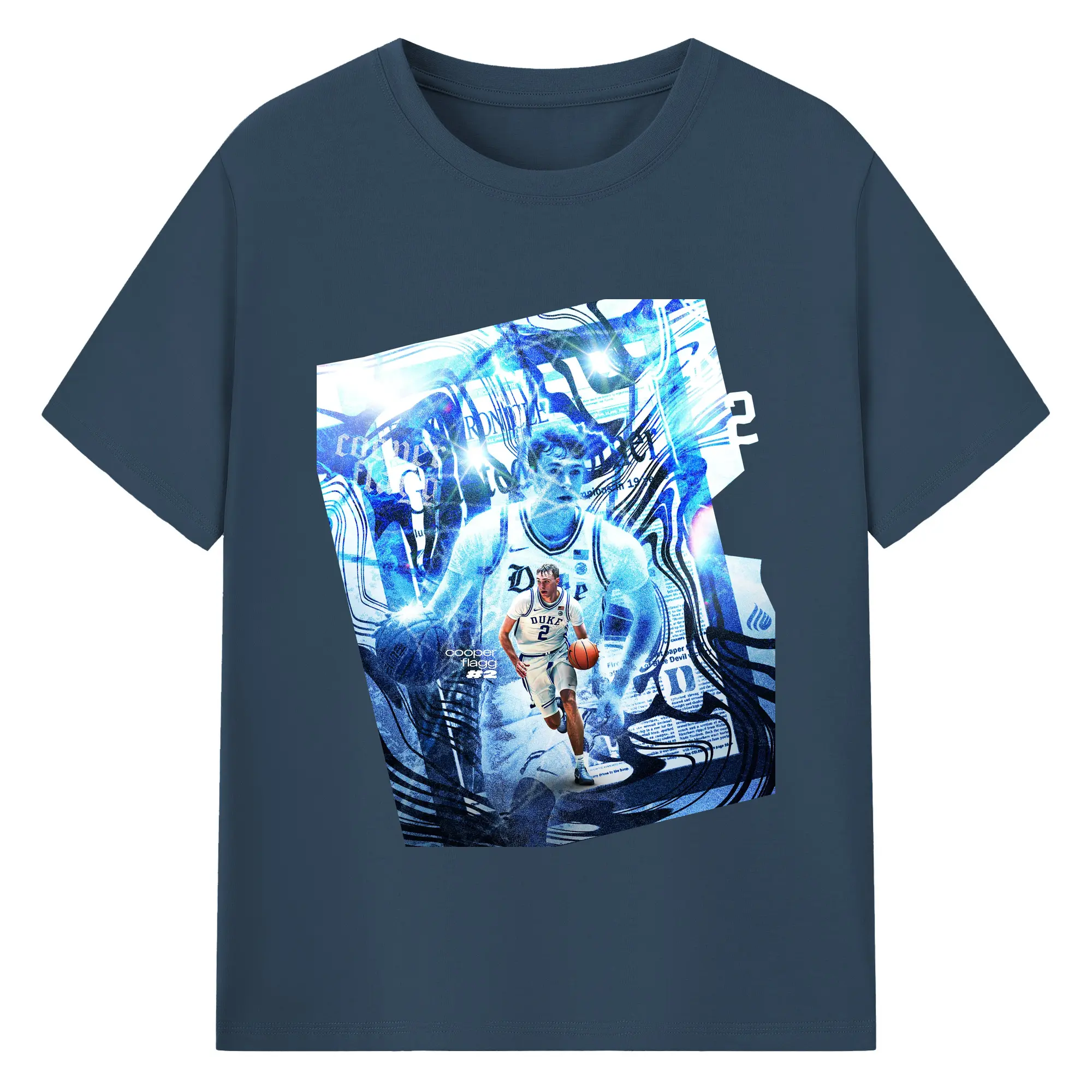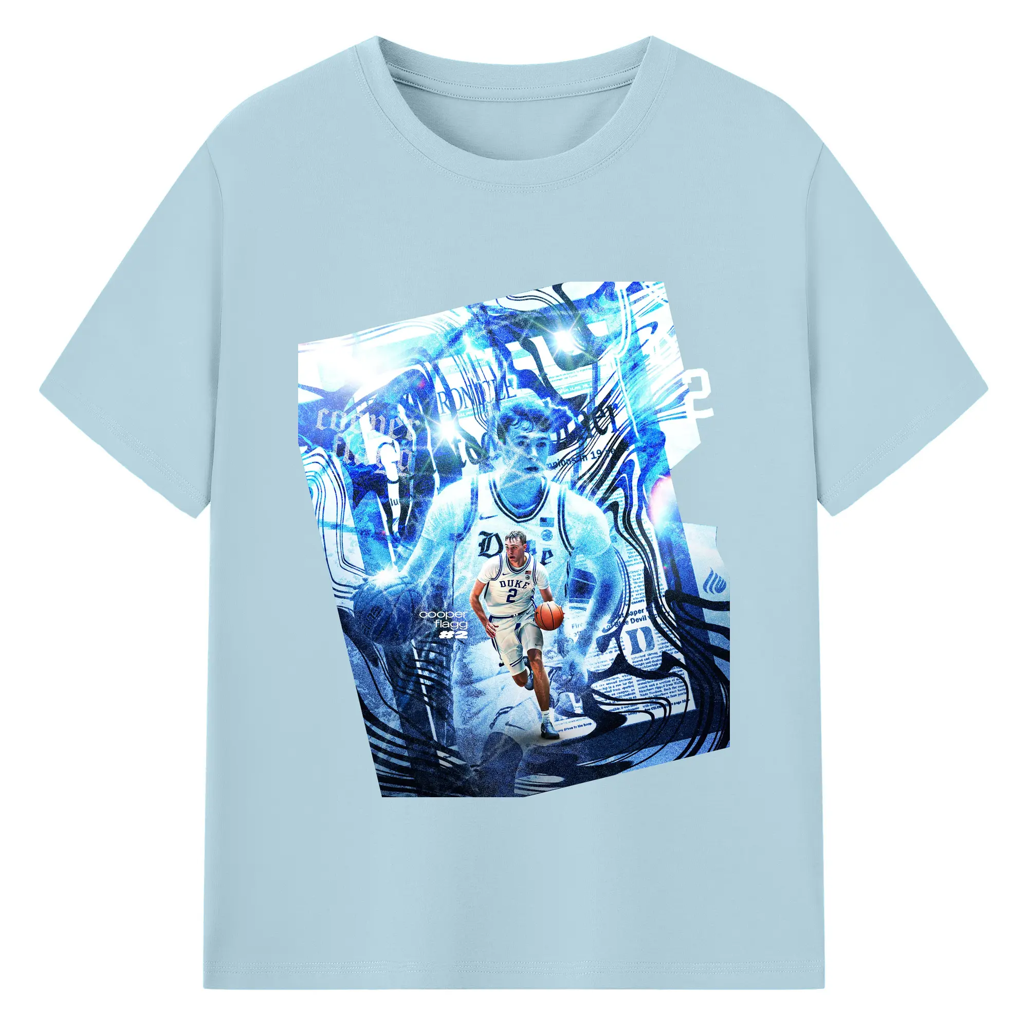 Cooper Flagg NCAA Duke Cyber Collage - 180g Cotton T-Shirt With Front Heat Transfer Print – Soft, Lightweight, Fitted Design – Comfortable Casual Wear For Sports & Everyday Use