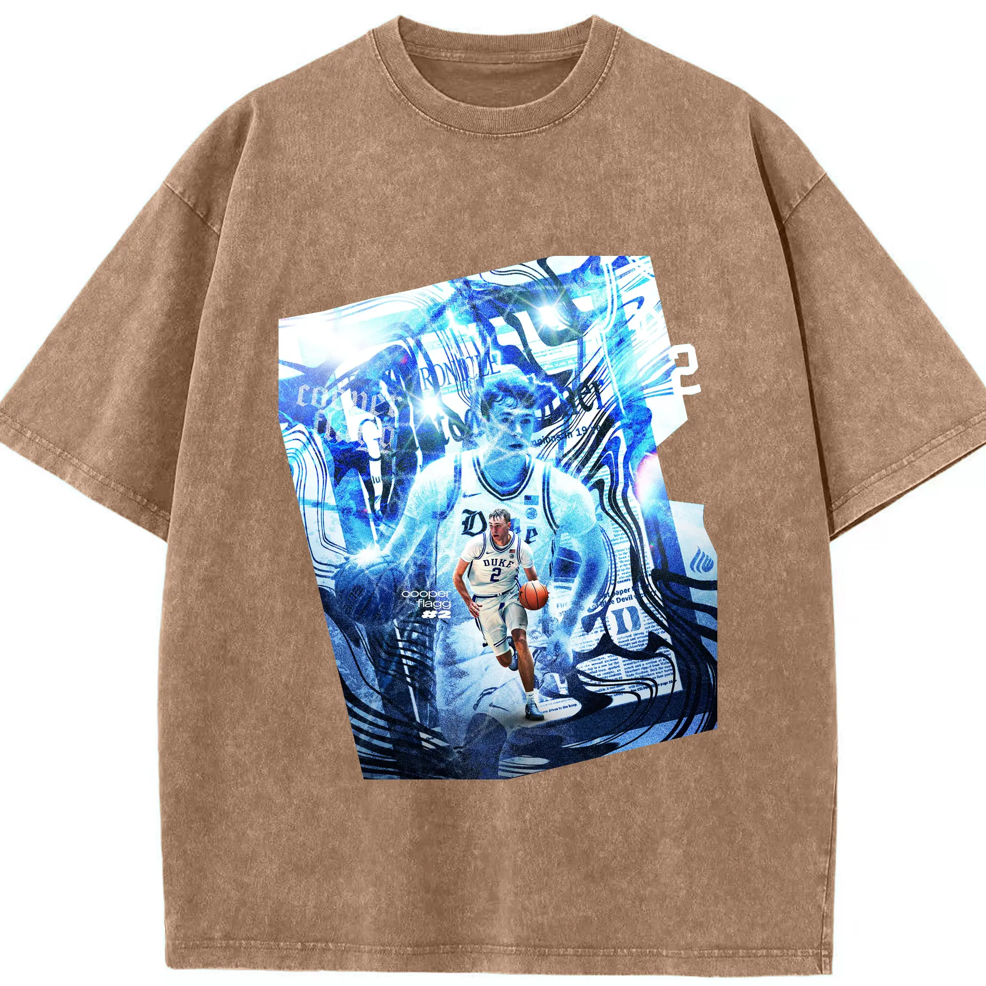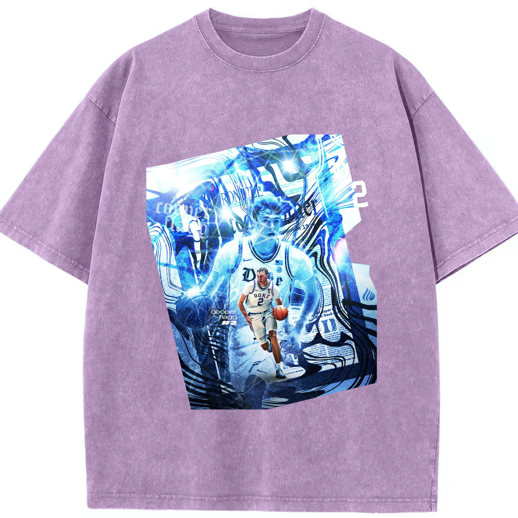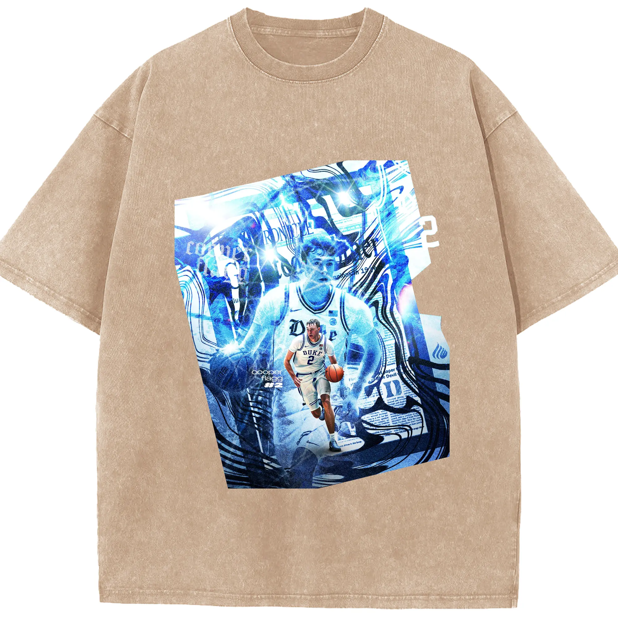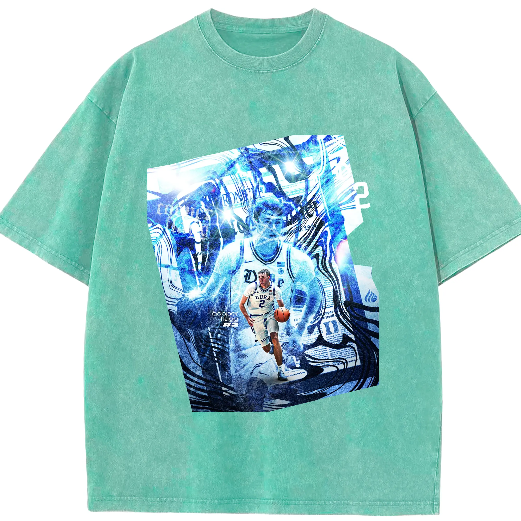 Cooper Flagg NCAA Duke Cyber Collage - Washed Vintage Look 230g Cotton Oversized T-Shirt With Front Heat Transfer Print – Soft, Lightweight, Stylish Fit – Comfortable Casual Wear For Sports & Everyday Use
