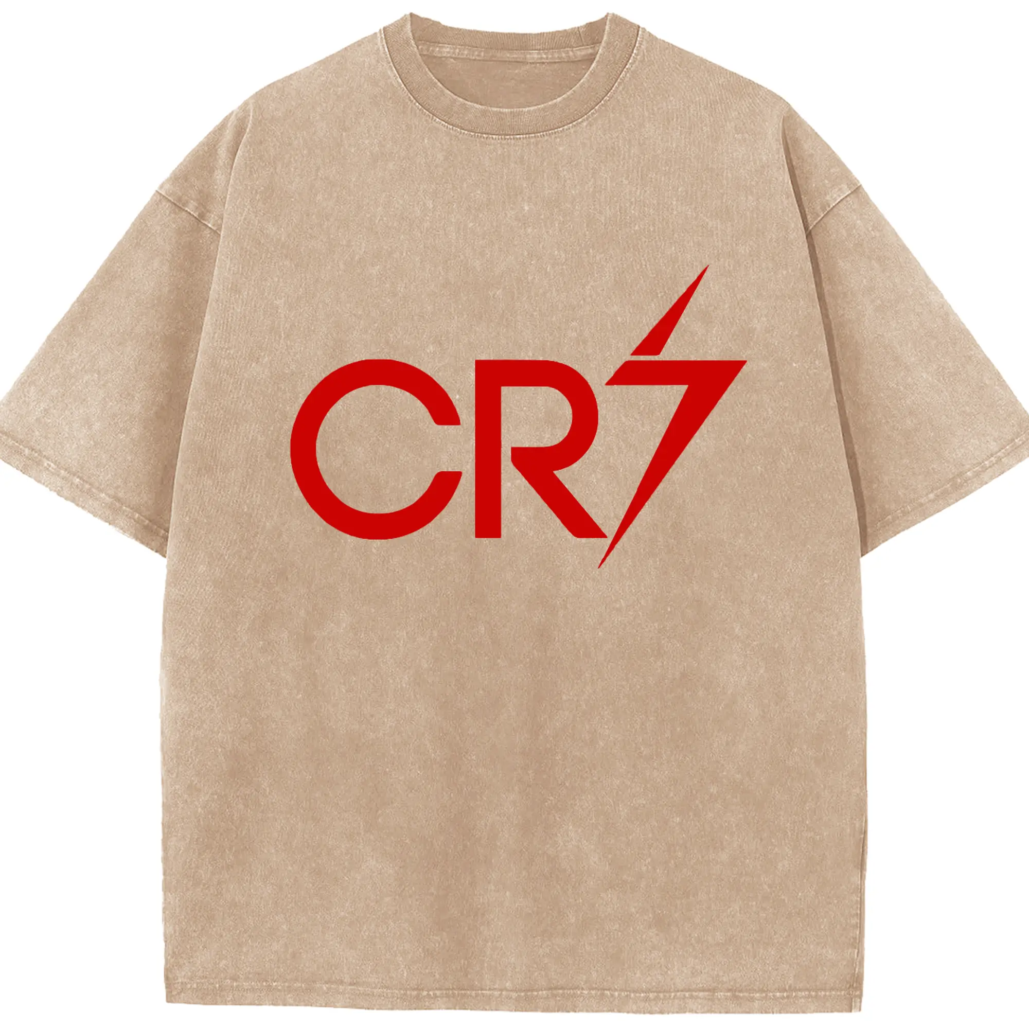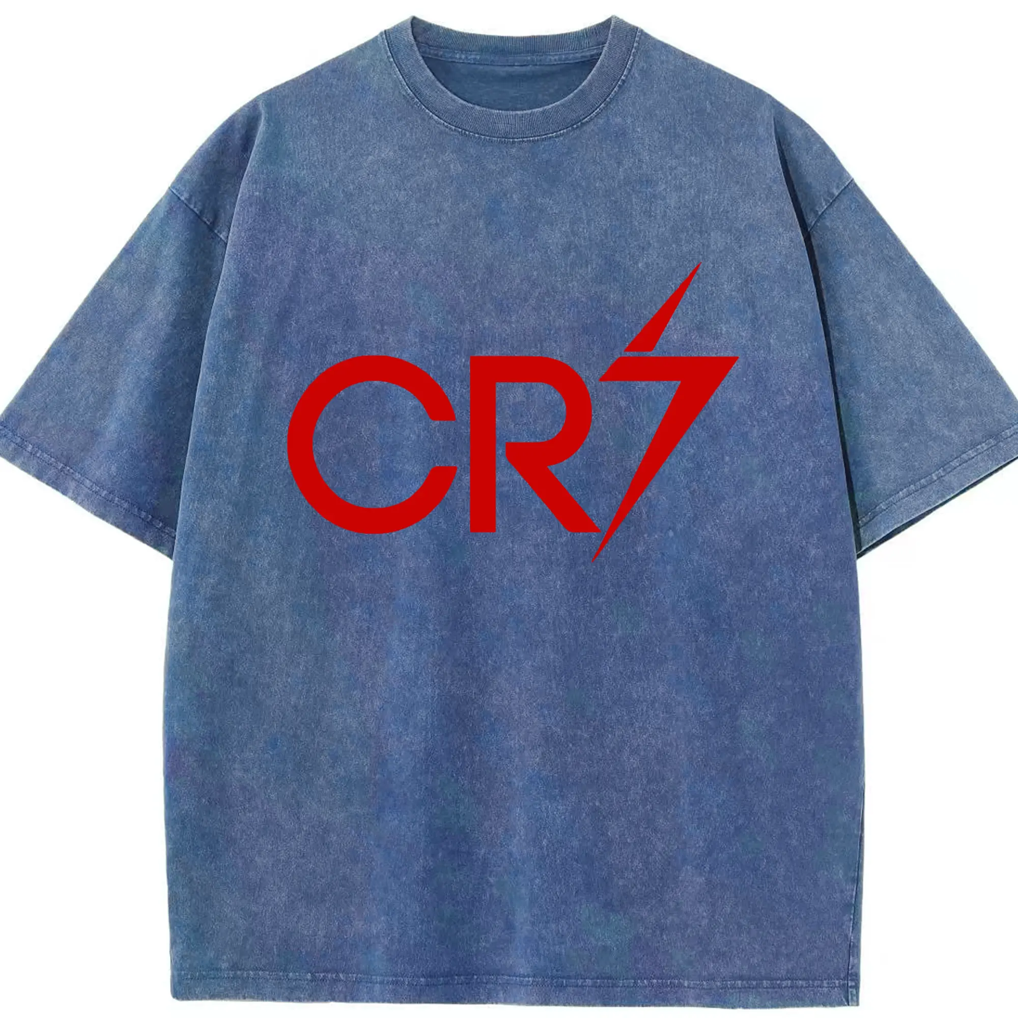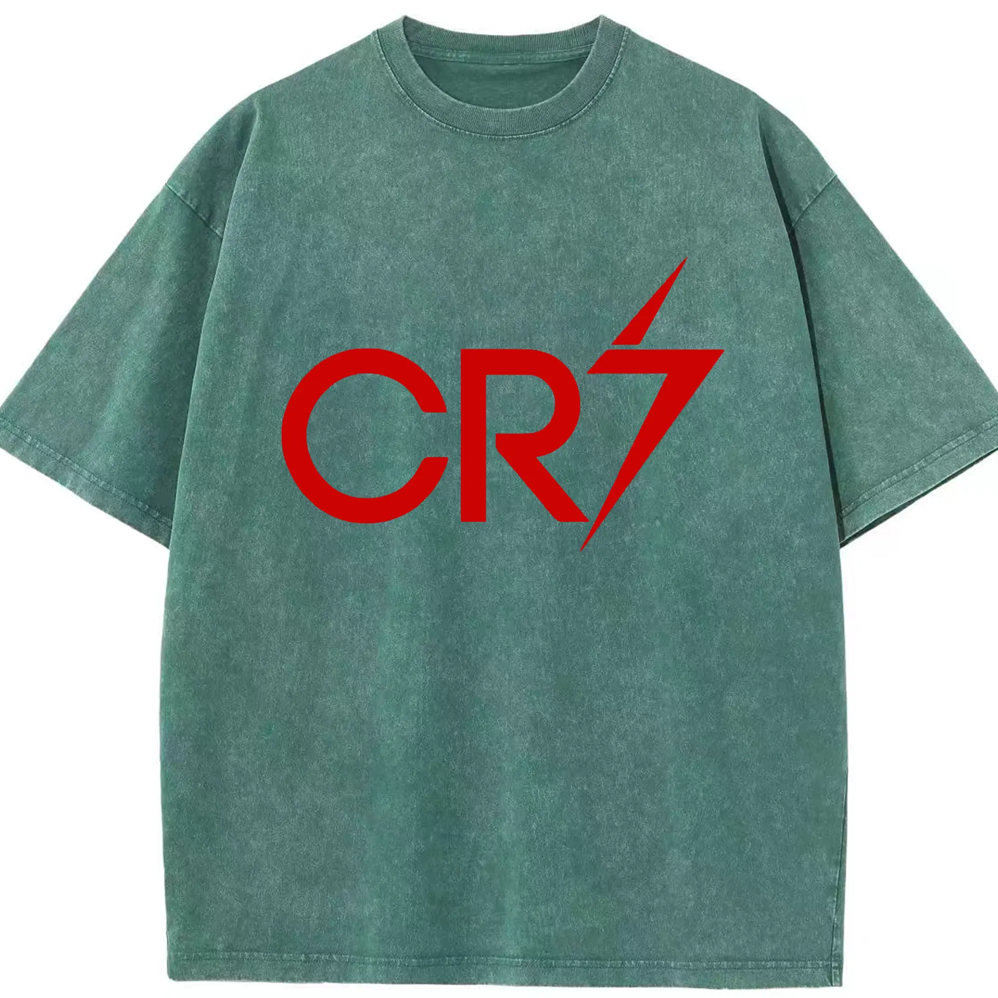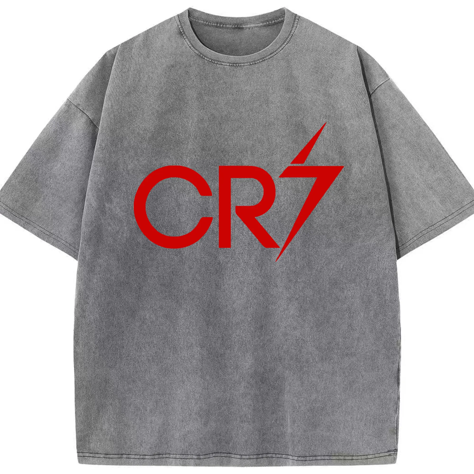 CR7 Cristiano Ronaldo Signature Logo DIY Shirt - Washed Vintage Look 230g Cotton Oversized T-Shirt With Front Heat Transfer Print – Soft, Lightweight, Stylish Fit – Comfortable Casual Wear For Sports & Everyday Use