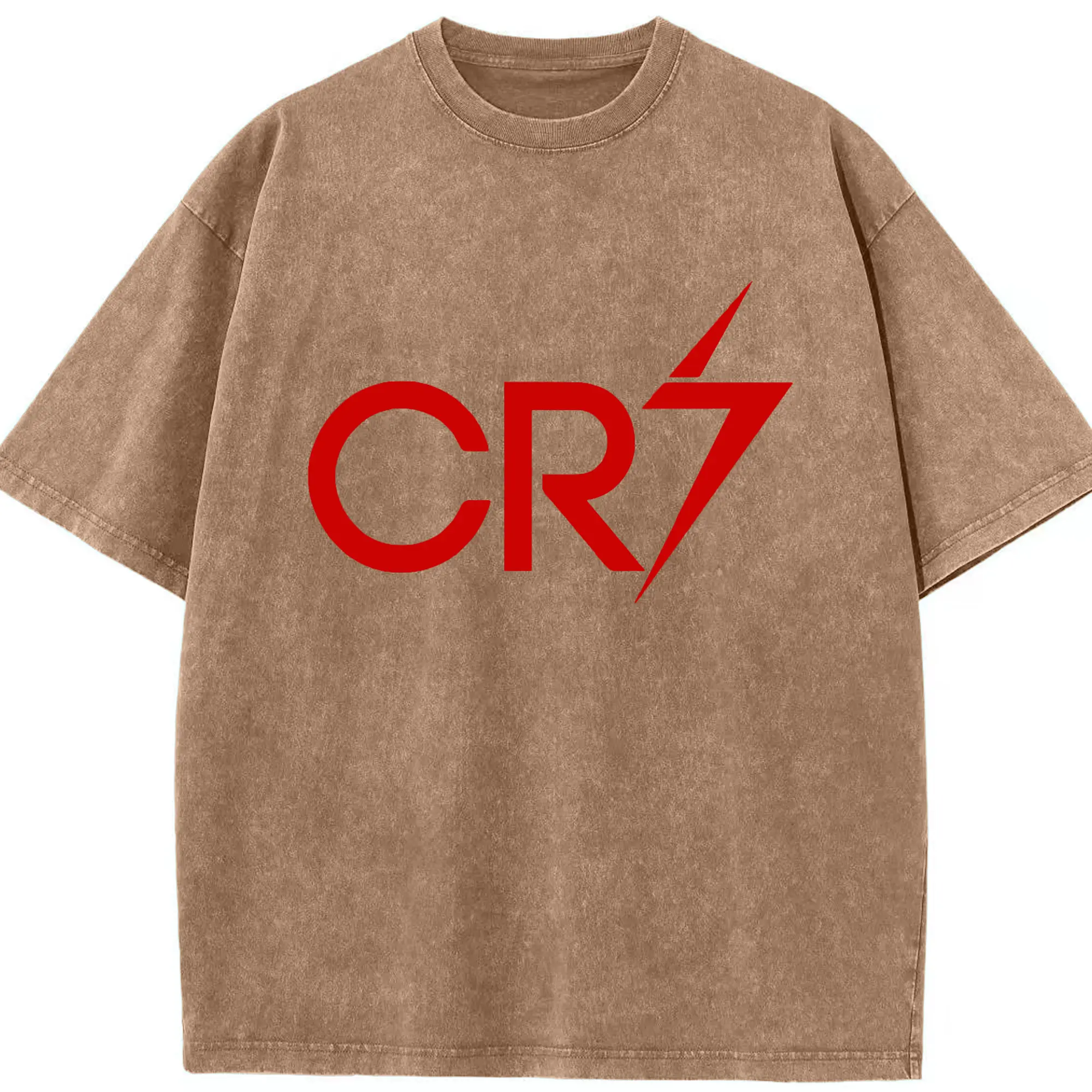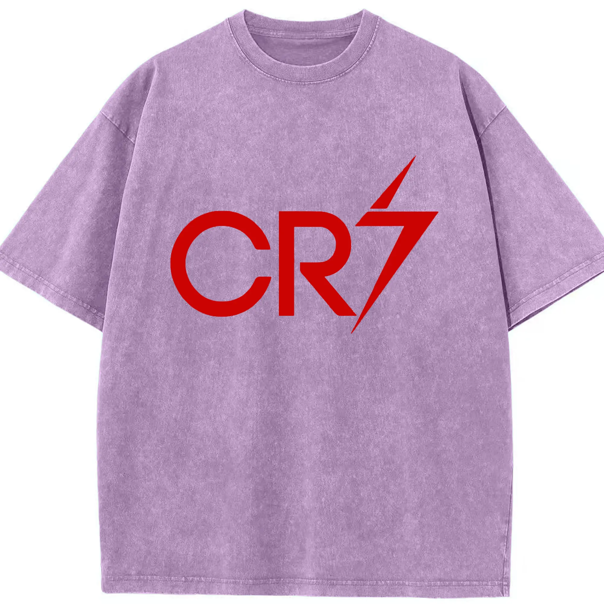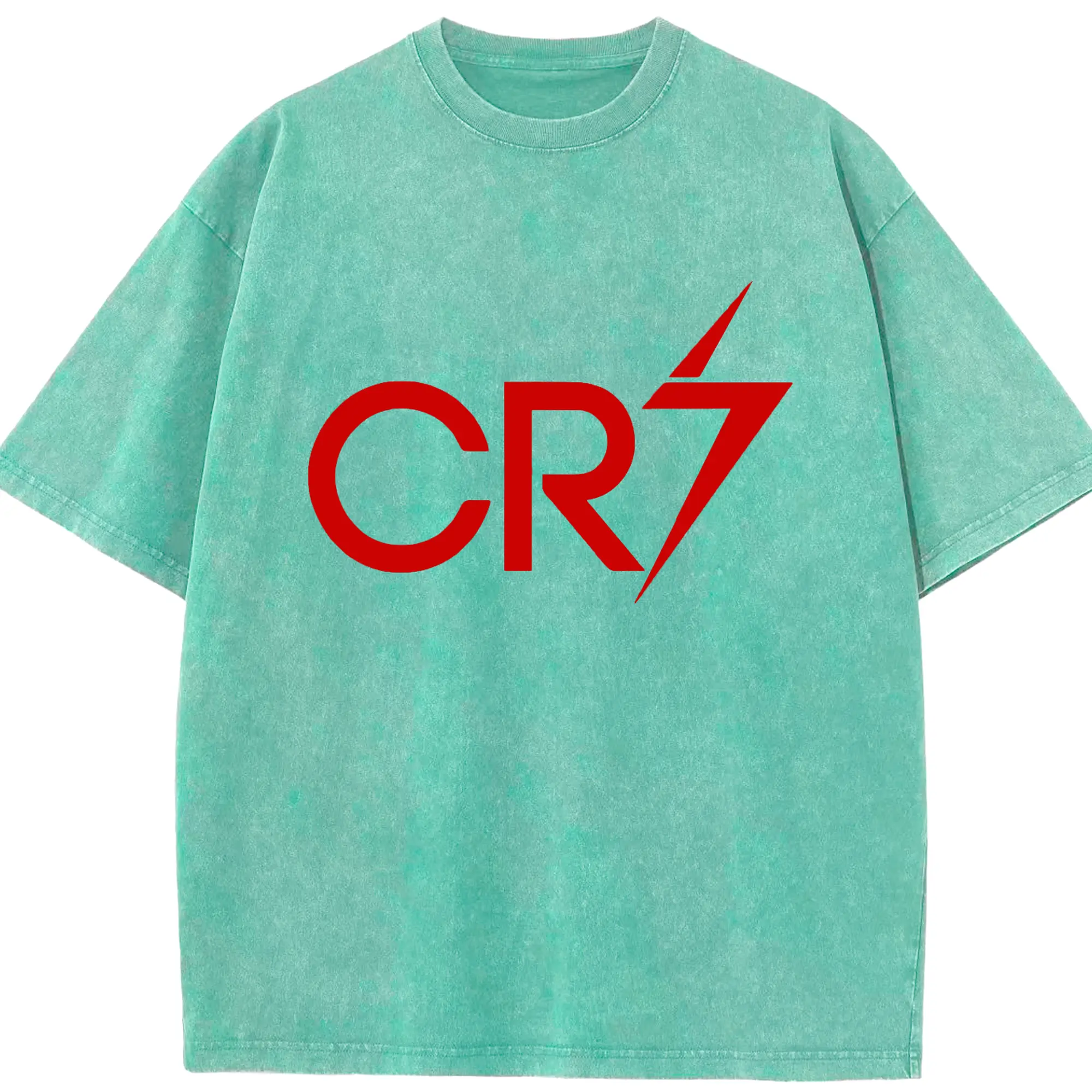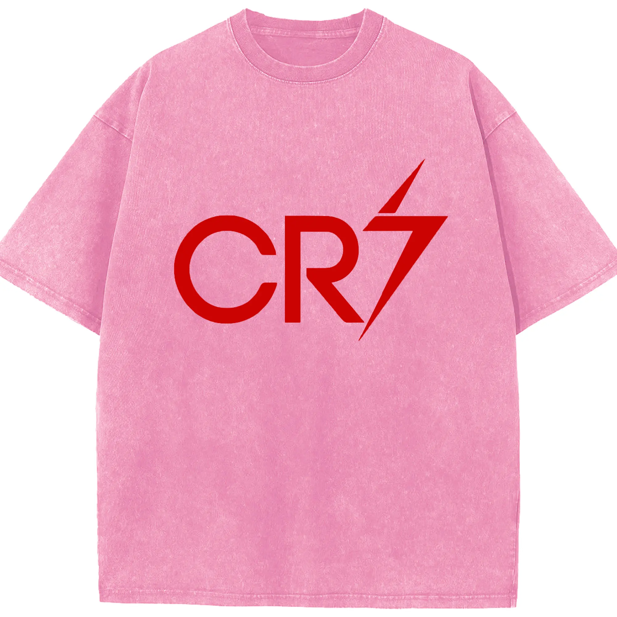 CR7 Cristiano Ronaldo Signature Logo DIY Shirt - Washed Vintage Look 230g Cotton Oversized T-Shirt With Front Heat Transfer Print – Soft, Lightweight, Stylish Fit – Comfortable Casual Wear For Sports & Everyday Use