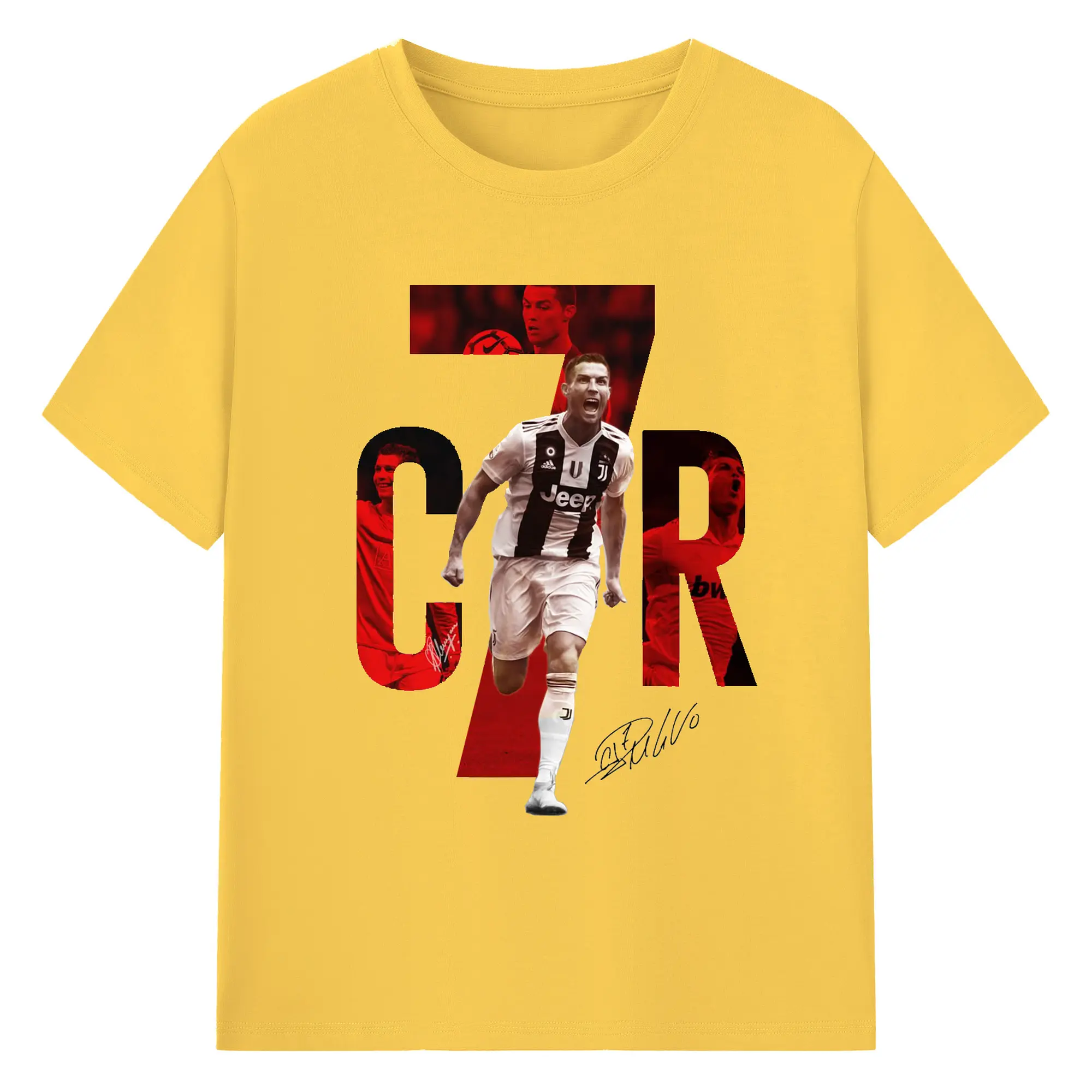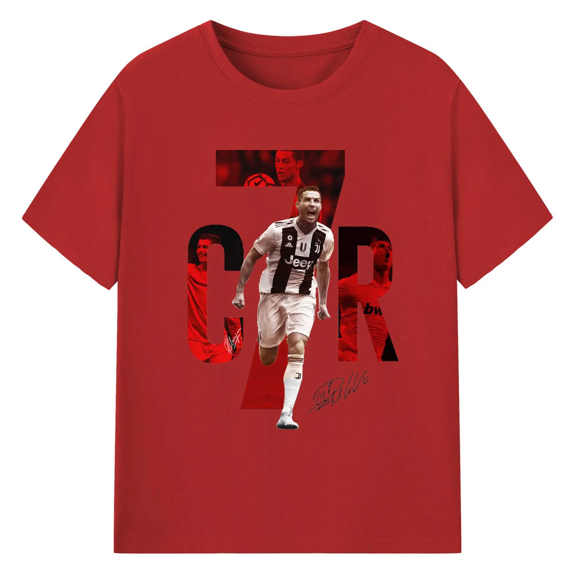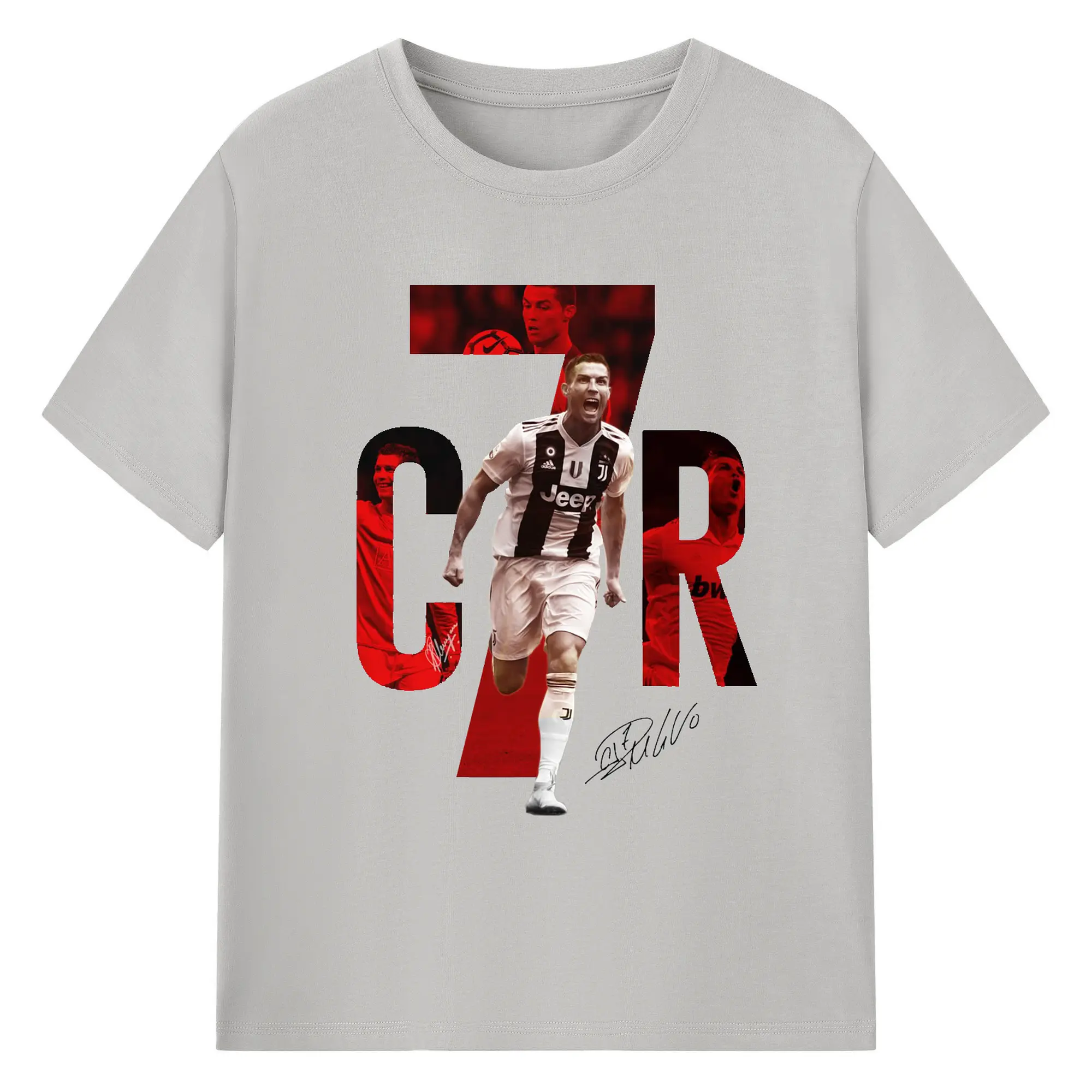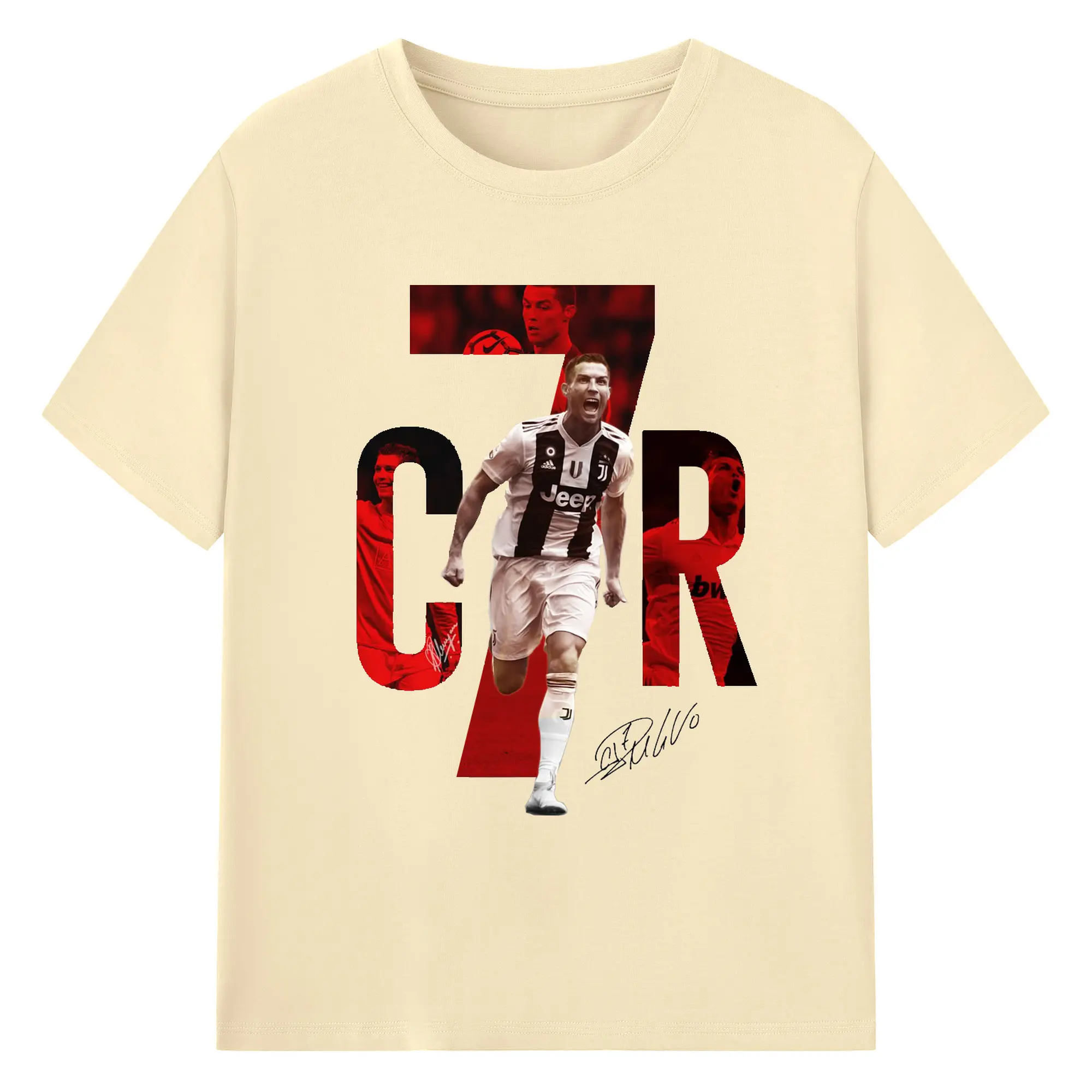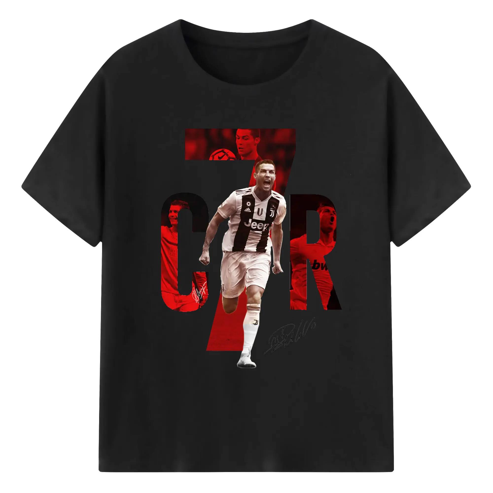 Cristiano Ronaldo CR7 Career Collage DIY Shirt - 180g Cotton T-Shirt With Front Heat Transfer Print – Soft, Lightweight, Fitted Design – Comfortable Casual Wear For Sports & Everyday Use